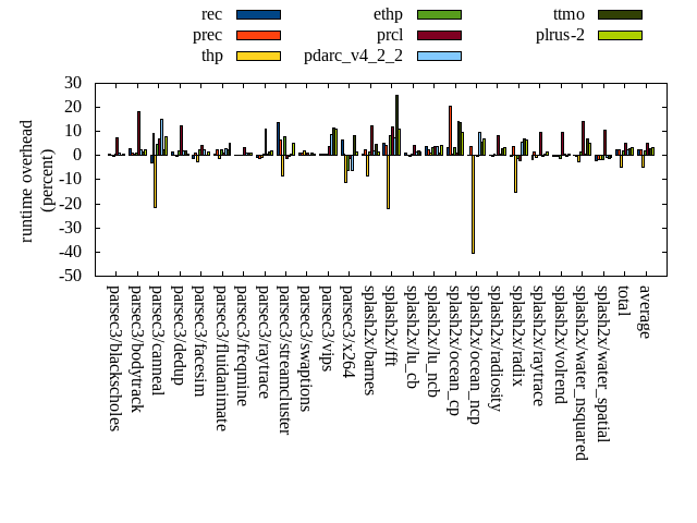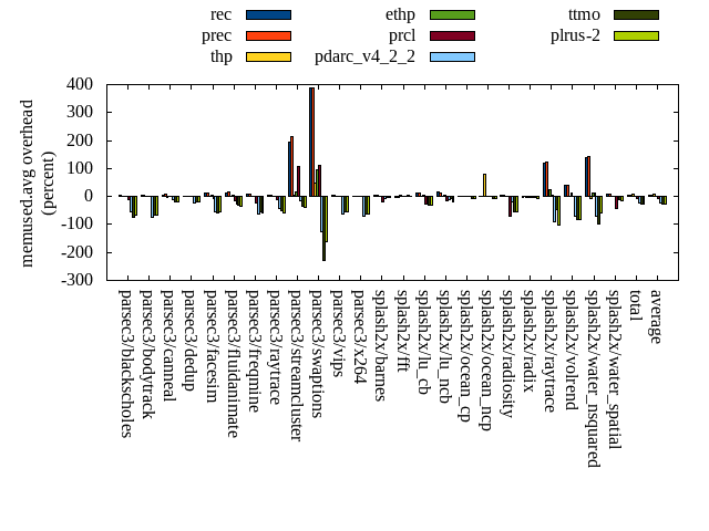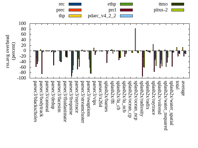 ======= Summary ======= runtime orig rec (overhead) prec (overhead) thp (overhead) ethp (overhead) prcl (overhead) pdarc_v4_2_2 (overhead) ttmo (overhead) plrus-2 (overhead) parsec3/blackscholes 139.136 139.757 (0.45) 139.229 (0.07) 138.801 (-0.24) 139.958 (0.59) 149.173 (7.21) 140.376 (0.89) 139.543 (0.29) 140.066 (0.67) parsec3/bodytrack 122.654 126.404 (3.06) 123.942 (1.05) 123.248 (0.48) 123.845 (0.97) 144.870 (18.11) 125.467 (2.29) 124.482 (1.49) 125.746 (2.52) parsec3/canneal 210.433 203.802 (-3.15) 229.501 (9.06) 165.149 (-21.52) 220.737 (4.90) 225.264 (7.05) 242.634 (15.30) 215.738 (2.52) 226.518 (7.64) parsec3/dedup 18.201 18.455 (1.40) 18.242 (0.23) 18.117 (-0.46) 18.546 (1.90) 20.448 (12.35) 18.577 (2.06) 18.565 (2.00) 18.343 (0.78) parsec3/facesim 344.162 339.706 (-1.29) 347.389 (0.94) 336.090 (-2.35) 352.191 (2.33) 358.712 (4.23) 353.054 (2.58) 344.984 (0.24) 349.357 (1.51) parsec3/fluidanimate 328.832 330.471 (0.50) 337.028 (2.49) 325.025 (-1.16) 336.083 (2.21) 332.280 (1.05) 338.132 (2.83) 336.856 (2.44) 345.680 (5.12) parsec3/freqmine 434.557 435.101 (0.12) 435.268 (0.16) 436.049 (0.34) 434.564 (0.00) 448.833 (3.29) 439.411 (1.12) 438.688 (0.95) 438.624 (0.94) parsec3/raytrace 183.862 182.692 (-0.64) 181.992 (-1.02) 182.485 (-0.75) 184.715 (0.46) 204.161 (11.04) 185.287 (0.77) 186.550 (1.46) 187.543 (2.00) parsec3/streamcluster 625.267 711.967 (13.87) 664.767 (6.32) 573.400 (-8.30) 673.008 (7.64) 618.141 (-1.14) 623.871 (-0.22) 628.238 (0.48) 657.267 (5.12) parsec3/swaptions 220.254 222.375 (0.96) 222.273 (0.92) 224.349 (1.86) 220.343 (0.04) 223.084 (1.28) 221.016 (0.35) 222.686 (1.10) 221.834 (0.72) parsec3/vips 87.909 88.446 (0.61) 88.258 (0.40) 88.358 (0.51) 88.388 (0.55) 91.377 (3.95) 95.535 (8.68) 98.081 (11.57) 97.777 (11.23) parsec3/x264 115.694 123.225 (6.51) 116.333 (0.55) 102.895 (-11.06) 108.599 (-6.13) 114.087 (-1.39) 108.474 (-6.24) 125.345 (8.34) 117.365 (1.44) splash2x/barnes 128.753 129.620 (0.67) 132.043 (2.56) 118.058 (-8.31) 130.635 (1.46) 144.622 (12.33) 131.347 (2.01) 134.851 (4.74) 130.919 (1.68) splash2x/fft 59.051 62.219 (5.36) 61.479 (4.11) 46.055 (-22.01) 63.920 (8.25) 66.062 (11.87) 63.490 (7.52) 73.947 (25.23) 65.465 (10.86) splash2x/lu_cb 132.375 133.919 (1.17) 132.375 (0.00) 131.961 (-0.31) 132.926 (0.42) 137.889 (4.17) 134.428 (1.55) 134.775 (1.81) 134.226 (1.40) splash2x/lu_ncb 147.726 153.026 (3.59) 151.152 (2.32) 149.496 (1.20) 152.350 (3.13) 153.119 (3.65) 153.261 (3.75) 149.270 (1.05) 154.104 (4.32) splash2x/ocean_cp 76.628 79.114 (3.24) 92.491 (20.70) 76.970 (0.45) 79.214 (3.37) 77.570 (1.23) 87.417 (14.08) 87.114 (13.69) 84.019 (9.65) splash2x/ocean_ncp 162.689 162.907 (0.13) 169.129 (3.96) 96.894 (-40.44) 162.829 (0.09) 162.030 (-0.41) 178.365 (9.64) 171.873 (5.65) 174.169 (7.06) splash2x/radiosity 142.253 142.235 (-0.01) 141.693 (-0.39) 142.950 (0.49) 142.714 (0.32) 153.757 (8.09) 143.236 (0.69) 146.488 (2.98) 147.232 (3.50) splash2x/radix 51.385 51.166 (-0.43) 53.378 (3.88) 43.630 (-15.09) 50.885 (-0.97) 50.397 (-1.92) 54.209 (5.49) 55.061 (7.15) 54.724 (6.50) splash2x/raytrace 134.636 132.605 (-1.51) 136.442 (1.34) 133.605 (-0.77) 134.851 (0.16) 147.534 (9.58) 134.086 (-0.41) 135.555 (0.68) 136.535 (1.41) splash2x/volrend 121.286 120.736 (-0.45) 121.155 (-0.11) 120.690 (-0.49) 120.004 (-1.06) 132.848 (9.53) 121.838 (0.45) 120.791 (-0.41) 122.178 (0.74) splash2x/water_nsquared 368.285 368.475 (0.05) 366.578 (-0.46) 359.422 (-2.41) 373.976 (1.55) 420.343 (14.14) 371.353 (0.83) 393.593 (6.87) 386.585 (4.97) splash2x/water_spatial 135.574 132.620 (-2.18) 133.139 (-1.80) 133.205 (-1.75) 133.372 (-1.62) 150.093 (10.71) 134.611 (-0.71) 134.023 (-1.14) 134.858 (-0.53) total 4491.620 4591.060 (2.21) 4595.270 (2.31) 4266.900 (-5.00) 4578.650 (1.94) 4726.690 (5.23) 4599.490 (2.40) 4617.090 (2.79) 4651.120 (3.55) average 187.151 191.294 (1.33) 191.470 (2.39) 177.787 (-5.50) 190.777 (1.27) 196.945 (6.25) 191.645 (3.14) 192.379 (4.22) 193.797 (3.80) kdamond_cpu_util orig rec (overhead) prec (overhead) thp (overhead) ethp (overhead) prcl (overhead) pdarc_v4_2_2 (overhead) ttmo (overhead) plrus-2 (overhead) parsec3/blackscholes 0.000 0.000 (0.00) 0.000 (0.00) 0.000 (0.00) 0.000 (0.00) 0.000 (0.00) 0.000 (0.00) 0.000 (0.00) 0.000 (0.00) parsec3/bodytrack 0.000 0.000 (0.00) 0.000 (0.00) 0.000 (0.00) 0.000 (0.00) 0.000 (0.00) 0.000 (0.00) 0.000 (0.00) 0.000 (0.00) parsec3/canneal 0.000 0.000 (0.00) 0.000 (0.00) 0.000 (0.00) 0.000 (0.00) 0.000 (0.00) 0.000 (0.00) 0.000 (0.00) 0.000 (0.00) parsec3/dedup 0.000 0.000 (0.00) 0.000 (0.00) 0.000 (0.00) 0.000 (0.00) 0.000 (0.00) 0.000 (0.00) 0.000 (0.00) 0.000 (0.00) parsec3/facesim 0.000 0.000 (0.00) 0.000 (0.00) 0.000 (0.00) 0.000 (0.00) 0.000 (0.00) 0.000 (0.00) 0.000 (0.00) 0.000 (0.00) parsec3/fluidanimate 0.000 0.000 (0.00) 0.000 (0.00) 0.000 (0.00) 0.000 (0.00) 0.000 (0.00) 0.000 (0.00) 0.000 (0.00) 0.000 (0.00) parsec3/freqmine 0.000 0.000 (0.00) 0.000 (0.00) 0.000 (0.00) 0.000 (0.00) 0.000 (0.00) 0.000 (0.00) 0.000 (0.00) 0.000 (0.00) parsec3/raytrace 0.000 0.000 (0.00) 0.000 (0.00) 0.000 (0.00) 0.000 (0.00) 0.000 (0.00) 0.000 (0.00) 0.000 (0.00) 0.000 (0.00) parsec3/streamcluster 0.000 0.000 (0.00) 0.000 (0.00) 0.000 (0.00) 0.000 (0.00) 0.000 (0.00) 0.000 (0.00) 0.000 (0.00) 0.000 (0.00) parsec3/swaptions 0.000 0.000 (0.00) 0.000 (0.00) 0.000 (0.00) 0.000 (0.00) 0.000 (0.00) 0.000 (0.00) 0.000 (0.00) 0.000 (0.00) parsec3/vips 0.000 0.000 (0.00) 0.000 (0.00) 0.000 (0.00) 0.000 (0.00) 0.000 (0.00) 0.000 (0.00) 0.000 (0.00) 0.000 (0.00) parsec3/x264 0.000 0.000 (0.00) 0.000 (0.00) 0.000 (0.00) 0.000 (0.00) 0.000 (0.00) 0.000 (0.00) 0.000 (0.00) 0.000 (0.00) splash2x/barnes 0.000 0.000 (0.00) 0.000 (0.00) 0.000 (0.00) 0.000 (0.00) 0.000 (0.00) 0.000 (0.00) 0.000 (0.00) 0.000 (0.00) splash2x/fft 0.000 0.000 (0.00) 0.000 (0.00) 0.000 (0.00) 0.000 (0.00) 0.000 (0.00) 0.000 (0.00) 0.000 (0.00) 0.000 (0.00) splash2x/lu_cb 0.000 0.000 (0.00) 0.000 (0.00) 0.000 (0.00) 0.000 (0.00) 0.000 (0.00) 0.000 (0.00) 0