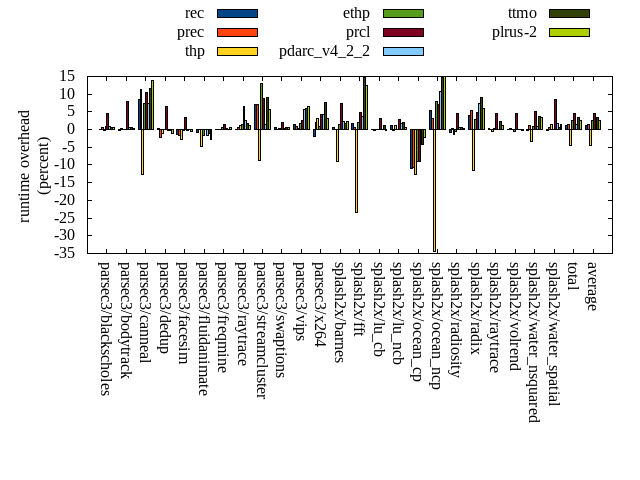 ======= Summary ======= runtime orig rec (overhead) prec (overhead) thp (overhead) ethp (overhead) prcl (overhead) pdarc_v4_2_2 (overhead) ttmo (overhead) plrus-2 (overhead) parsec3/blackscholes 139.351 139.295 (-0.04) 140.063 (0.51) 138.966 (-0.28) 140.436 (0.78) 145.823 (4.64) 140.377 (0.74) 140.065 (0.51) 140.175 (0.59) parsec3/bodytrack 125.298 125.110 (-0.15) 125.761 (0.37) 125.459 (0.13) 125.359 (0.05) 135.355 (8.03) 126.164 (0.69) 125.955 (0.52) 125.696 (0.32) parsec3/canneal 208.362 226.095 (8.51) 232.025 (11.36) 181.691 (-12.80) 223.600 (7.31) 230.330 (10.54) 223.759 (7.39) 232.554 (11.61) 237.082 (13.78) parsec3/dedup 18.733 18.790 (0.30) 18.332 (-2.14) 18.542 (-1.02) 18.728 (-0.03) 19.945 (6.47) 18.679 (-0.29) 18.687 (-0.25) 18.543 (-1.02) parsec3/facesim 347.745 343.203 (-1.31) 341.625 (-1.76) 337.789 (-2.86) 346.765 (-0.28) 359.859 (3.48) 347.049 (-0.20) 348.288 (0.16) 346.344 (-0.40) parsec3/fluidanimate 341.693 338.848 (-0.83) 341.839 (0.04) 325.757 (-4.66) 335.751 (-1.74) 342.192 (0.15) 336.161 (-1.62) 338.202 (-1.02) 332.293 (-2.75) parsec3/freqmine 435.546 435.286 (-0.06) 435.161 (-0.09) 435.246 (-0.07) 437.976 (0.56) 441.589 (1.39) 436.318 (0.18) 436.039 (0.11) 437.944 (0.55) parsec3/raytrace 182.361 182.526 (0.09) 183.281 (0.50) 184.532 (1.19) 185.122 (1.51) 194.340 (6.57) 187.209 (2.66) 185.362 (1.65) 184.707 (1.29) parsec3/streamcluster 625.272 668.934 (6.98) 670.082 (7.17) 571.292 (-8.63) 707.550 (13.16) 679.365 (8.65) 634.609 (1.49) 682.309 (9.12) 660.095 (5.57) parsec3/swaptions 220.757 222.121 (0.62) 220.729 (-0.01) 221.527 (0.35) 221.486 (0.33) 225.463 (2.13) 221.213 (0.21) 221.999 (0.56) 221.929 (0.53) parsec3/vips 87.646 89.029 (1.58) 88.420 (0.88) 87.872 (0.26) 89.156 (1.72) 90.016 (2.70) 92.599 (5.65) 92.975 (6.08) 93.255 (6.40) parsec3/x264 115.722 113.426 (-1.98) 118.105 (2.06) 119.361 (3.14) 116.697 (0.84) 120.792 (4.38) 120.698 (4.30) 124.712 (7.77) 119.336 (3.12) splash2x/barnes 129.701 130.578 (0.68) 129.741 (0.03) 118.173 (-8.89) 131.557 (1.43) 139.193 (7.32) 132.705 (2.32) 131.902 (1.70) 132.784 (2.38) splash2x/fft 60.508 61.596 (1.80) 60.940 (0.71) 46.392 (-23.33) 61.663 (1.91) 63.389 (4.76) 62.831 (3.84) 69.395 (14.69) 68.012 (12.40) splash2x/lu_cb 133.232 133.141 (-0.07) 132.853 (-0.28) 133.096 (-0.10) 133.363 (0.10) 137.269 (3.03) 133.335 (0.08) 134.764 (1.15) 132.928 (-0.23) splash2x/lu_ncb 150.073 151.890 (1.21) 149.687 (-0.26) 151.818 (1.16) 150.281 (0.14) 154.174 (2.73) 152.593 (1.68) 152.975 (1.93) 151.153 (0.72) splash2x/ocean_cp 88.764 78.936 (-11.07) 79.317 (-10.64) 77.402 (-12.80) 80.850 (-8.92) 80.748 (-9.03) 88.521 (-0.27) 84.905 (-4.35) 86.802 (-2.21) splash2x/ocean_ncp 154.681 162.836 (5.27) 159.512 (3.12) 101.366 (-34.47) 167.135 (8.05) 165.695 (7.12) 171.142 (10.64) 177.651 (14.85) 177.843 (14.97) splash2x/radiosity 143.549 142.316 (-0.86) 144.053 (0.35) 141.723 (-1.27) 142.736 (-0.57) 150.003 (4.50) 144.307 (0.53) 144.253 (0.49) 144.038 (0.34) splash2x/radix 49.727 51.664 (3.89) 52.475 (5.53) 44.021 (-11.48) 51.078 (2.72) 52.117 (4.81) 53.454 (7.49) 54.224 (9.04) 52.623 (5.82) splash2x/raytrace 134.943 135.459 (0.38) 135.160 (0.16) 134.372 (-0.42) 135.188 (0.18) 141.237 (4.66) 134.874 (-0.05) 138.010 (2.27) 136.327 (1.03) splash2x/volrend 120.875 120.973 (0.08) 121.101 (0.19) 120.753 (-0.10) 120.181 (-0.57) 126.351 (4.53) 120.896 (0.02) 120.812 (-0.05) 120.563 (-0.26) splash2x/water_nsquared 371.212 370.136 (-0.29) 375.834 (1.25) 358.651 (-3.38) 374.500 (0.89) 389.865 (5.02) 374.785 (0.96) 384.466 (3.57) 384.252 (3.51) splash2x/water_spatial 134.117 133.911 (-0.15) 134.827 (0.53) 135.967 (1.38) 134.098 (-0.01) 145.379 (8.40) 136.471 (1.76) 134.940 (0.61) 135.948 (1.37) total 4519.860 4576.120 (1.24) 4590.910 (1.57) 4311.760 (-4.60) 4631.280 (2.47) 4730.490 (4.66) 4590.730 (1.57) 4675.420 (3.44) 4640.660 (2.67) average 188.327 190.672 (0.61) 191.288 (0.82) 179.657 (-4.96) 192.970 (1.23) 197.104 (4.46) 191.280 (2.09) 194.809 (3.45) 193.361 (2.83) kdamond_cpu_util orig rec (overhead) prec (overhead) thp (overhead) ethp (overhead) prcl (overhead) pdarc_v4_2_2 (overhead) ttmo (overhead) plrus-2 (overhead) parsec3/blackscholes 0.000 0.000 (0.00) 0.000 (0.00) 0.000 (0.00) 0.000 (0.00) 0.000 (0.00) 0.000 (0.00) 0.000 (0.00) 0.000 (0.00) parsec3/bodytrack 0.000 0.000 (0.00) 0.000 (0.00) 0.000 (0.00) 0.000 (0.00) 0.000 (0.00) 0.000 (0.00) 0.000 (0.00) 0.000 (0.00) parsec3/canneal 0.000 0.000 (0.00) 0.000 (0.00) 0.000 (0.00) 0.000 (0.00) 0.000 (0.00) 0.000 (0.00) 0.000 (0.00) 0.000 (0.00) parsec3/dedup 0.000 0.000 (0.00) 0.000 (0.00) 0.000 (0.00) 0.000 (0.00) 0.000 (0.00) 0.000 (0.00) 0.000 (0.00) 0.000 (0.00) parsec3/facesim 0.000 0.000 (0.00) 0.000 (0.00) 0.000 (0.00) 0.000 (0.00) 0.000 (0.00) 0.000 (0.00) 0.000 (0.00) 0.000 (0.00) parsec3/fluidanimate 0.000 0.000 (0.00) 0.000 (0.00) 0.000 (0.00) 0.000 (0.00) 0.000 (0.00) 0.000 (0.00) 0.000 (0.00) 0.000 (0.00) parsec3/freqmine 0.000 0.000 (0.00) 0.000 (0.00) 0.000 (0.00) 0.000 (0.00) 0.000 (0.00) 0.000 (0.00) 0.000 (0.00) 0.000 (0.00) parsec3/raytrace 0.000 0.000 (0.00) 0.000 (0.00) 0.000 (0.00) 0.000 (0.00) 0.000 (0.00) 0.000 (0.00) 0.000 (0.00) 0.000 (0.00) parsec3/streamcluster 0.000 0.000 (0.00) 0.000 (0.00) 0.000 (0.00) 0.000 (0.00) 0.000 (0.00) 0.000 (0.00) 0.000 (0.00) 0.000 (0.00) parsec3/swaptions 0.000 0.000 (0.00) 0.000 (0.00) 0.000 (0.00) 0.000 (0.00) 0.000 (0.00) 0.000 (0.00) 0.000 (0.00) 0.000 (0.00) parsec3/vips 0.000 0.000 (0.00) 0.000 (0.00) 0.000 (0.00) 0.000 (0.00) 0.000 (0.00) 0.000 (0.00) 0.000 (0.00) 0.000 (0.00) parsec3/x264 0.000 0.000 (0.00) 0.000 (0.00) 0.000 (0.00) 0.000 (0.00) 0.000 (0.00) 0.000 (0.00) 0.000 (0.00) 0.000 (0.00) splash2x/barnes 0.000 0.000 (0.00) 0.000 (0.00) 0.000 (0.00) 0.000 (0.00) 0.000 (0.00) 0.000 (0.00) 0.000 (0.00) 0.000 (0.00) splash2x/fft 0.000 0.000 (0.00) 0.000 (0.00) 0.000 (0.00) 0.000 (0.00) 0.000 (0.00) 0.000 (0.00) 0.000 (0.00) 0.000 (0.00) splash2x/lu_cb 0.000 0.000 (0.00) 0.000 (0.00) 0.000 (0.00) 0.000 (0.00) 0.000 (0.00) 0.00