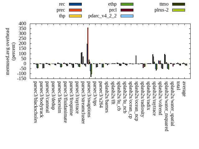 ======= Summary ======= runtime orig rec (overhead) prec (overhead) thp (overhead) ethp (overhead) prcl (overhead) pdarc_v4_2_2 (overhead) ttmo (overhead) plrus-2 (overhead) parsec3/blackscholes 139.539 140.039 (0.36) 139.480 (-0.04) 138.729 (-0.58) 140.054 (0.37) 145.427 (4.22) 139.363 (-0.13) 140.395 (0.61) 140.502 (0.69) parsec3/bodytrack 125.857 126.562 (0.56) 125.868 (0.01) 125.920 (0.05) 126.387 (0.42) 136.890 (8.77) 126.078 (0.18) 126.058 (0.16) 125.349 (-0.40) parsec3/canneal 211.419 227.132 (7.43) 223.233 (5.59) 181.320 (-14.24) 223.150 (5.55) 232.278 (9.87) 236.264 (11.75) 220.838 (4.46) 220.619 (4.35) parsec3/dedup 18.276 18.320 (0.24) 18.514 (1.30) 18.000 (-1.51) 18.617 (1.86) 20.007 (9.47) 18.407 (0.72) 18.414 (0.75) 18.246 (-0.17) parsec3/facesim 348.549 348.149 (-0.11) 345.021 (-1.01) 338.359 (-2.92) 348.501 (-0.01) 357.231 (2.49) 347.991 (-0.16) 350.022 (0.42) 348.277 (-0.08) parsec3/fluidanimate 335.646 339.618 (1.18) 340.691 (1.50) 326.419 (-2.75) 339.605 (1.18) 341.998 (1.89) 336.219 (0.17) 334.980 (-0.20) 337.475 (0.54) parsec3/freqmine 435.974 437.618 (0.38) 436.503 (0.12) 435.978 (0.00) 436.451 (0.11) 442.535 (1.50) 437.097 (0.26) 438.202 (0.51) 438.432 (0.56) parsec3/raytrace 183.815 185.173 (0.74) 183.446 (-0.20) 184.697 (0.48) 186.071 (1.23) 197.515 (7.45) 186.306 (1.35) 186.295 (1.35) 187.836 (2.19) parsec3/streamcluster 660.946 737.870 (11.64) 679.340 (2.78) 591.083 (-10.57) 716.317 (8.38) 706.942 (6.96) 677.654 (2.53) 685.655 (3.74) 666.518 (0.84) parsec3/swaptions 221.349 222.120 (0.35) 221.073 (-0.12) 220.476 (-0.39) 222.121 (0.35) 223.772 (1.09) 222.048 (0.32) 222.290 (0.42) 220.629 (-0.33) parsec3/vips 87.834 88.954 (1.28) 88.995 (1.32) 87.400 (-0.49) 88.044 (0.24) 89.611 (2.02) 92.508 (5.32) 93.262 (6.18) 92.848 (5.71) parsec3/x264 114.896 114.854 (-0.04) 123.121 (7.16) 119.692 (4.17) 110.507 (-3.82) 111.579 (-2.89) 116.558 (1.45) 112.332 (-2.23) 117.129 (1.94) splash2x/barnes 130.695 130.582 (-0.09) 131.065 (0.28) 118.435 (-9.38) 131.393 (0.53) 141.117 (7.97) 133.045 (1.80) 131.636 (0.72) 132.631 (1.48) splash2x/fft 60.623 61.093 (0.78) 62.213 (2.62) 47.831 (-21.10) 61.623 (1.65) 64.696 (6.72) 62.796 (3.59) 68.921 (13.69) 67.734 (11.73) splash2x/lu_cb 132.989 133.034 (0.03) 133.783 (0.60) 133.417 (0.32) 133.430 (0.33) 137.219 (3.18) 134.010 (0.77) 133.612 (0.47) 133.626 (0.48) splash2x/lu_ncb 149.438 152.227 (1.87) 150.903 (0.98) 151.348 (1.28) 151.535 (1.40) 151.418 (1.32) 152.377 (1.97) 151.169 (1.16) 151.395 (1.31) splash2x/ocean_cp 82.870 83.174 (0.37) 82.801 (-0.08) 79.071 (-4.58) 86.307 (4.15) 82.118 (-0.91) 83.747 (1.06) 82.775 (-0.11) 83.450 (0.70) splash2x/ocean_ncp 168.481 164.149 (-2.57) 171.623 (1.87) 101.045 (-40.03) 169.252 (0.46) 169.532 (0.62) 170.638 (1.28) 175.767 (4.32) 175.152 (3.96) splash2x/radiosity 142.366 142.979 (0.43) 142.613 (0.17) 142.283 (-0.06) 142.522 (0.11) 150.122 (5.45) 143.688 (0.93) 145.932 (2.50) 145.117 (1.93) splash2x/radix 50.718 51.764 (2.06) 51.809 (2.15) 45.022 (-11.23) 52.569 (3.65) 52.651 (3.81) 54.637 (7.73) 55.587 (9.60) 54.960 (8.37) splash2x/raytrace 133.709 134.531 (0.61) 134.144 (0.33) 133.376 (-0.25) 135.828 (1.59) 145.266 (8.64) 134.735 (0.77) 138.775 (3.79) 137.256 (2.65) splash2x/volrend 120.277 120.679 (0.33) 120.743 (0.39) 119.789 (-0.41) 121.406 (0.94) 127.191 (5.75) 120.567 (0.24) 120.620 (0.29) 121.257 (0.81) splash2x/water_nsquared 369.560 372.754 (0.86) 371.701 (0.58) 355.299 (-3.86) 372.494 (0.79) 401.366 (8.61) 375.623 (1.64) 386.582 (4.61) 386.313 (4.53) splash2x/water_spatial 133.992 134.718 (0.54) 133.875 (-0.09) 134.231 (0.18) 135.287 (0.97) 144.801 (8.07) 135.476 (1.11) 134.832 (0.63) 135.367 (1.03) total 4559.830 4668.070 (2.37) 4612.530 (1.16) 4329.240 (-5.06) 4649.470 (1.97) 4773.290 (4.68) 4637.860 (1.71) 4654.950 (2.09) 4638.130 (1.72) average 189.993 194.503 (1.22) 192.189 (1.18) 180.385 (-4.91) 193.728 (1.35) 198.887 (4.67) 193.244 (1.94) 193.956 (2.41) 193.255 (2.29) kdamond_cpu_util orig rec (overhead) prec (overhead) thp (overhead) ethp (overhead) prcl (overhead) pdarc_v4_2_2 (overhead) ttmo (overhead) plrus-2 (overhead) parsec3/blackscholes 0.000 0.000 (0.00) 0.000 (0.00) 0.000 (0.00) 0.000 (0.00) 0.000 (0.00) 0.000 (0.00) 0.000 (0.00) 0.000 (0.00) parsec3/bodytrack 0.000 0.000 (0.00) 0.000 (0.00) 0.000 (0.00) 0.000 (0.00) 0.000 (0.00) 0.000 (0.00) 0.000 (0.00) 0.000 (0.00) parsec3/canneal 0.000 0.000 (0.00) 0.000 (0.00) 0.000 (0.00) 0.000 (0.00) 0.000 (0.00) 0.000 (0.00) 0.000 (0.00) 0.000 (0.00) parsec3/dedup 0.000 0.000 (0.00) 0.000 (0.00) 0.000 (0.00) 0.000 (0.00) 0.000 (0.00) 0.000 (0.00) 0.000 (0.00) 0.000 (0.00) parsec3/facesim 0.000 0.000 (0.00) 0.000 (0.00) 0.000 (0.00) 0.000 (0.00) 0.000 (0.00) 0.000 (0.00) 0.000 (0.00) 0.000 (0.00) parsec3/fluidanimate 0.000 0.000 (0.00) 0.000 (0.00) 0.000 (0.00) 0.000 (0.00) 0.000 (0.00) 0.000 (0.00) 0.000 (0.00) 0.000 (0.00) parsec3/freqmine 0.000 0.000 (0.00) 0.000 (0.00) 0.000 (0.00) 0.000 (0.00) 0.000 (0.00) 0.000 (0.00) 0.000 (0.00) 0.000 (0.00) parsec3/raytrace 0.000 0.000 (0.00) 0.000 (0.00) 0.000 (0.00) 0.000 (0.00) 0.000 (0.00) 0.000 (0.00) 0.000 (0.00) 0.000 (0.00) parsec3/streamcluster 0.000 0.000 (0.00) 0.000 (0.00) 0.000 (0.00) 0.000 (0.00) 0.000 (0.00) 0.000 (0.00) 0.000 (0.00) 0.000 (0.00) parsec3/swaptions 0.000 0.000 (0.00) 0.000 (0.00) 0.000 (0.00) 0.000 (0.00) 0.000 (0.00) 0.000 (0.00) 0.000 (0.00) 0.000 (0.00) parsec3/vips 0.000 0.000 (0.00) 0.000 (0.00) 0.000 (0.00) 0.000 (0.00) 0.000 (0.00) 0.000 (0.00) 0.000 (0.00) 0.000 (0.00) parsec3/x264 0.000 0.000 (0.00) 0.000 (0.00) 0.000 (0.00) 0.000 (0.00) 0.000 (0.00) 0.000 (0.00) 0.000 (0.00) 0.000 (0.00) splash2x/barnes 0.000 0.000 (0.00) 0.000 (0.00) 0.000 (0.00) 0.000 (0.00) 0.000 (0.00) 0.000 (0.00) 0.000 (0.00) 0.000 (0.00) splash2x/fft 0.000 0.000 (0.00) 0.000 (0.00) 0.000 (0.00) 0.000 (0.00) 0.000 (0.00) 0.000 (0.00) 0.000 (0.00) 0.000 (0.00) splash2x/lu_cb 0.000 0.000 (0.00) 0.000 (0.00) 0.000 (0.00) 0.000 (0.00) 0.000 (0.00) 0.000 (0.00) 0.000 (0.00) 0.00