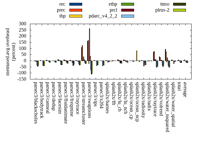 ======= Summary ======= runtime orig rec (overhead) prec (overhead) thp (overhead) ethp (overhead) prcl (overhead) pdarc_v4_2_2 (overhead) ttmo (overhead) plrus-2 (overhead) parsec3/blackscholes 139.435 139.559 (0.09) 139.948 (0.37) 138.709 (-0.52) 139.528 (0.07) 145.840 (4.59) 139.533 (0.07) 139.892 (0.33) 140.459 (0.73) parsec3/bodytrack 125.708 126.453 (0.59) 126.650 (0.75) 126.141 (0.34) 126.043 (0.27) 137.705 (9.54) 125.411 (-0.24) 125.459 (-0.20) 124.624 (-0.86) parsec3/canneal 218.273 211.871 (-2.93) 222.899 (2.12) 192.895 (-11.63) 227.146 (4.07) 218.397 (0.06) 224.227 (2.73) 222.766 (2.06) 221.552 (1.50) parsec3/dedup 18.263 18.446 (1.01) 18.312 (0.27) 18.080 (-1.00) 18.647 (2.10) 19.560 (7.10) 18.417 (0.85) 18.362 (0.55) 18.427 (0.90) parsec3/facesim 348.264 345.032 (-0.93) 346.164 (-0.60) 342.335 (-1.70) 351.723 (0.99) 359.713 (3.29) 351.015 (0.79) 354.433 (1.77) 353.215 (1.42) parsec3/fluidanimate 341.147 334.616 (-1.91) 334.437 (-1.97) 324.484 (-4.88) 342.890 (0.51) 340.056 (-0.32) 342.015 (0.25) 341.124 (-0.01) 336.095 (-1.48) parsec3/freqmine 435.840 437.616 (0.41) 436.495 (0.15) 435.996 (0.04) 436.463 (0.14) 442.664 (1.57) 436.595 (0.17) 437.482 (0.38) 436.437 (0.14) parsec3/raytrace 184.387 184.521 (0.07) 183.594 (-0.43) 185.810 (0.77) 185.677 (0.70) 197.830 (7.29) 185.781 (0.76) 188.811 (2.40) 189.086 (2.55) parsec3/streamcluster 667.861 712.605 (6.70) 662.276 (-0.84) 588.111 (-11.94) 712.805 (6.73) 720.908 (7.94) 666.169 (-0.25) 680.258 (1.86) 698.993 (4.66) parsec3/swaptions 222.329 222.686 (0.16) 221.633 (-0.31) 223.077 (0.34) 220.957 (-0.62) 223.664 (0.60) 222.456 (0.06) 221.905 (-0.19) 222.500 (0.08) parsec3/vips 87.999 87.851 (-0.17) 88.578 (0.66) 87.486 (-0.58) 88.233 (0.27) 90.098 (2.38) 92.196 (4.77) 92.936 (5.61) 94.157 (7.00) parsec3/x264 119.689 116.340 (-2.80) 112.621 (-5.91) 117.028 (-2.22) 118.029 (-1.39) 117.896 (-1.50) 115.726 (-3.31) 119.946 (0.21) 121.786 (1.75) splash2x/barnes 130.706 130.541 (-0.13) 131.251 (0.42) 119.729 (-8.40) 130.684 (-0.02) 142.419 (8.96) 132.067 (1.04) 132.316 (1.23) 132.155 (1.11) splash2x/fft 61.740 61.777 (0.06) 62.707 (1.57) 47.864 (-22.48) 63.212 (2.38) 63.934 (3.55) 62.487 (1.21) 69.771 (13.01) 68.954 (11.68) splash2x/lu_cb 132.685 133.069 (0.29) 133.034 (0.26) 132.266 (-0.32) 133.408 (0.54) 136.628 (2.97) 132.932 (0.19) 133.528 (0.64) 134.682 (1.50) splash2x/lu_ncb 150.021 151.018 (0.66) 152.221 (1.47) 151.016 (0.66) 152.519 (1.66) 153.165 (2.10) 150.597 (0.38) 150.056 (0.02) 153.085 (2.04) splash2x/ocean_cp 80.342 82.743 (2.99) 81.668 (1.65) 81.526 (1.47) 82.556 (2.76) 84.076 (4.65) 82.712 (2.95) 85.188 (6.03) 86.990 (8.28) splash2x/ocean_ncp 166.803 173.391 (3.95) 167.317 (0.31) 104.034 (-37.63) 166.589 (-0.13) 168.432 (0.98) 170.402 (2.16) 174.213 (4.44) 176.082 (5.56) splash2x/radiosity 142.671 142.298 (-0.26) 142.593 (-0.05) 141.494 (-0.82) 142.625 (-0.03) 150.396 (5.41) 143.646 (0.68) 145.203 (1.77) 145.289 (1.84) splash2x/radix 51.583 51.299 (-0.55) 51.856 (0.53) 44.296 (-14.13) 52.085 (0.97) 52.646 (2.06) 54.480 (5.62) 54.502 (5.66) 54.261 (5.19) splash2x/raytrace 134.656 135.602 (0.70) 134.557 (-0.07) 134.359 (-0.22) 136.517 (1.38) 142.339 (5.71) 136.614 (1.45) 137.259 (1.93) 137.933 (2.43) splash2x/volrend 120.771 121.022 (0.21) 120.792 (0.02) 120.047 (-0.60) 120.920 (0.12) 127.870 (5.88) 120.938 (0.14) 120.883 (0.09) 121.183 (0.34) splash2x/water_nsquared 370.209 373.275 (0.83) 375.323 (1.38) 356.253 (-3.77) 373.427 (0.87) 393.046 (6.17) 374.821 (1.25) 387.044 (4.55) 386.253 (4.33) splash2x/water_spatial 133.872 133.007 (-0.65) 134.981 (0.83) 133.882 (0.01) 135.484 (1.20) 145.847 (8.95) 135.848 (1.48) 135.106 (0.92) 135.320 (1.08) total 4585.260 4626.650 (0.90) 4581.910 (-0.07) 4346.930 (-5.20) 4658.180 (1.59) 4775.140 (4.14) 4617.110 (0.69) 4668.460 (1.81) 4689.510 (2.27) average 191.053 192.777 (0.35) 190.913 (0.11) 181.122 (-4.97) 194.091 (1.07) 198.964 (4.16) 192.380 (1.05) 194.519 (2.29) 195.396 (2.66) kdamond_cpu_util orig rec (overhead) prec (overhead) thp (overhead) ethp (overhead) prcl (overhead) pdarc_v4_2_2 (overhead) ttmo (overhead) plrus-2 (overhead) parsec3/blackscholes 0.000 0.000 (0.00) 0.000 (0.00) 0.000 (0.00) 0.000 (0.00) 0.000 (0.00) 0.000 (0.00) 0.000 (0.00) 0.000 (0.00) parsec3/bodytrack 0.000 0.000 (0.00) 0.000 (0.00) 0.000 (0.00) 0.000 (0.00) 0.000 (0.00) 0.000 (0.00) 0.000 (0.00) 0.000 (0.00) parsec3/canneal 0.000 0.000 (0.00) 0.000 (0.00) 0.000 (0.00) 0.000 (0.00) 0.000 (0.00) 0.000 (0.00) 0.000 (0.00) 0.000 (0.00) parsec3/dedup 0.000 0.000 (0.00) 0.000 (0.00) 0.000 (0.00) 0.000 (0.00) 0.000 (0.00) 0.000 (0.00) 0.000 (0.00) 0.000 (0.00) parsec3/facesim 0.000 0.000 (0.00) 0.000 (0.00) 0.000 (0.00) 0.000 (0.00) 0.000 (0.00) 0.000 (0.00) 0.000 (0.00) 0.000 (0.00) parsec3/fluidanimate 0.000 0.000 (0.00) 0.000 (0.00) 0.000 (0.00) 0.000 (0.00) 0.000 (0.00) 0.000 (0.00) 0.000 (0.00) 0.000 (0.00) parsec3/freqmine 0.000 0.000 (0.00) 0.000 (0.00) 0.000 (0.00) 0.000 (0.00) 0.000 (0.00) 0.000 (0.00) 0.000 (0.00) 0.000 (0.00) parsec3/raytrace 0.000 0.000 (0.00) 0.000 (0.00) 0.000 (0.00) 0.000 (0.00) 0.000 (0.00) 0.000 (0.00) 0.000 (0.00) 0.000 (0.00) parsec3/streamcluster 0.000 0.000 (0.00) 0.000 (0.00) 0.000 (0.00) 0.000 (0.00) 0.000 (0.00) 0.000 (0.00) 0.000 (0.00) 0.000 (0.00) parsec3/swaptions 0.000 0.000 (0.00) 0.000 (0.00) 0.000 (0.00) 0.000 (0.00) 0.000 (0.00) 0.000 (0.00) 0.000 (0.00) 0.000 (0.00) parsec3/vips 0.000 0.000 (0.00) 0.000 (0.00) 0.000 (0.00) 0.000 (0.00) 0.000 (0.00) 0.000 (0.00) 0.000 (0.00) 0.000 (0.00) parsec3/x264 0.000 0.000 (0.00) 0.000 (0.00) 0.000 (0.00) 0.000 (0.00) 0.000 (0.00) 0.000 (0.00) 0.000 (0.00) 0.000 (0.00) splash2x/barnes 0.000 0.000 (0.00) 0.000 (0.00) 0.000 (0.00) 0.000 (0.00) 0.000 (0.00) 0.000 (0.00) 0.000 (0.00) 0.000 (0.00) splash2x/fft 0.000 0.000 (0.00) 0.000 (0.00) 0.000 (0.00) 0.000 (0.00) 0.000 (0.00) 0.000 (0.00) 0.000 (0.00) 0.000 (0.00) splash2x/lu_cb 0.000 0.000 (0.00) 0.000 (0.00) 0.000 (0.00) 0.000 (0.00) 0.000 (0.00) 0.000 (0.00) 0.000 (0.