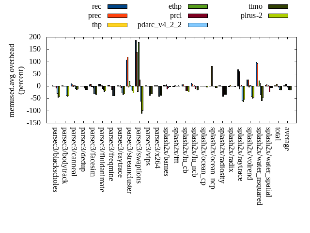 ======= Summary ======= runtime orig rec (overhead) prec (overhead) thp (overhead) ethp (overhead) prcl (overhead) pdarc_v4_2_2 (overhead) ttmo (overhead) plrus-2 (overhead) parsec3/blackscholes 139.422 140.424 (0.72) 139.593 (0.12) 138.881 (-0.39) 139.881 (0.33) 145.800 (4.57) 140.393 (0.70) 139.922 (0.36) 140.079 (0.47) parsec3/bodytrack 125.030 126.156 (0.90) 126.120 (0.87) 124.908 (-0.10) 125.763 (0.59) 138.061 (10.42) 125.680 (0.52) 126.254 (0.98) 125.205 (0.14) parsec3/canneal 207.166 236.417 (14.12) 215.373 (3.96) 185.205 (-10.60) 222.958 (7.62) 228.806 (10.45) 230.155 (11.10) 227.099 (9.62) 226.390 (9.28) parsec3/dedup 18.294 18.260 (-0.19) 18.424 (0.71) 18.254 (-0.22) 18.501 (1.13) 19.893 (8.74) 18.464 (0.93) 18.481 (1.02) 18.499 (1.12) parsec3/facesim 350.930 343.904 (-2.00) 345.612 (-1.52) 337.882 (-3.72) 348.158 (-0.79) 357.416 (1.85) 347.416 (-1.00) 349.153 (-0.51) 351.717 (0.22) parsec3/fluidanimate 333.633 342.980 (2.80) 336.086 (0.74) 329.492 (-1.24) 340.061 (1.93) 339.870 (1.87) 340.016 (1.91) 336.857 (0.97) 344.032 (3.12) parsec3/freqmine 436.154 437.075 (0.21) 436.347 (0.04) 436.741 (0.13) 436.946 (0.18) 443.488 (1.68) 437.565 (0.32) 438.257 (0.48) 435.905 (-0.06) parsec3/raytrace 182.080 184.225 (1.18) 186.372 (2.36) 184.662 (1.42) 185.265 (1.75) 195.223 (7.22) 186.231 (2.28) 187.302 (2.87) 189.329 (3.98) parsec3/streamcluster 691.233 692.844 (0.23) 665.729 (-3.69) 555.947 (-19.57) 698.439 (1.04) 705.684 (2.09) 706.949 (2.27) 695.486 (0.62) 660.885 (-4.39) parsec3/swaptions 222.799 221.778 (-0.46) 221.281 (-0.68) 220.175 (-1.18) 220.962 (-0.82) 223.438 (0.29) 223.479 (0.31) 221.901 (-0.40) 221.989 (-0.36) parsec3/vips 87.783 88.886 (1.26) 88.169 (0.44) 87.608 (-0.20) 87.655 (-0.15) 90.073 (2.61) 92.441 (5.31) 93.107 (6.06) 93.364 (6.36) parsec3/x264 115.392 122.878 (6.49) 119.011 (3.14) 117.007 (1.40) 117.488 (1.82) 109.995 (-4.68) 118.028 (2.28) 109.864 (-4.79) 124.588 (7.97) splash2x/barnes 129.695 132.080 (1.84) 131.042 (1.04) 120.284 (-7.26) 131.146 (1.12) 139.675 (7.69) 132.517 (2.18) 132.100 (1.85) 131.510 (1.40) splash2x/fft 60.970 62.492 (2.50) 62.380 (2.31) 47.277 (-22.46) 62.989 (3.31) 63.929 (4.85) 64.434 (5.68) 68.239 (11.92) 70.911 (16.30) splash2x/lu_cb 133.717 133.101 (-0.46) 132.960 (-0.57) 133.146 (-0.43) 133.090 (-0.47) 136.654 (2.20) 132.641 (-0.80) 134.319 (0.45) 135.174 (1.09) splash2x/lu_ncb 151.087 151.932 (0.56) 152.098 (0.67) 151.308 (0.15) 152.086 (0.66) 153.114 (1.34) 151.755 (0.44) 151.914 (0.55) 153.450 (1.56) splash2x/ocean_cp 81.360 82.308 (1.17) 84.017 (3.27) 79.651 (-2.10) 82.194 (1.02) 82.960 (1.97) 82.685 (1.63) 86.940 (6.86) 84.705 (4.11) splash2x/ocean_ncp 164.301 163.693 (-0.37) 168.135 (2.33) 109.546 (-33.33) 167.968 (2.23) 170.125 (3.54) 171.130 (4.16) 180.353 (9.77) 175.882 (7.05) splash2x/radiosity 142.014 142.562 (0.39) 142.456 (0.31) 142.207 (0.14) 142.909 (0.63) 149.239 (5.09) 143.331 (0.93) 145.673 (2.58) 145.580 (2.51) splash2x/radix 51.050 52.066 (1.99) 52.249 (2.35) 46.999 (-7.94) 52.289 (2.43) 52.088 (2.03) 53.994 (5.77) 55.145 (8.02) 53.889 (5.56) splash2x/raytrace 134.324 134.911 (0.44) 133.811 (-0.38) 135.380 (0.79) 137.030 (2.01) 140.251 (4.41) 135.025 (0.52) 137.233 (2.17) 137.647 (2.47) splash2x/volrend 120.953 120.367 (-0.48) 120.266 (-0.57) 120.423 (-0.44) 120.796 (-0.13) 127.177 (5.15) 120.866 (-0.07) 120.725 (-0.19) 120.696 (-0.21) splash2x/water_nsquared 370.114 373.398 (0.89) 371.088 (0.26) 355.033 (-4.07) 373.398 (0.89) 410.084 (10.80) 377.138 (1.90) 383.089 (3.51) 387.171 (4.61) splash2x/water_spatial 134.426 135.113 (0.51) 135.158 (0.54) 134.627 (0.15) 134.537 (0.08) 145.994 (8.61) 135.944 (1.13) 135.670 (0.93) 136.479 (1.53) total 4583.910 4639.840 (1.22) 4583.800 (-0.00) 4312.660 (-5.92) 4632.540 (1.06) 4769.030 (4.04) 4668.270 (1.84) 4675.080 (1.99) 4665.070 (1.77) average 190.996 193.327 (1.43) 190.992 (0.75) 179.694 (-4.63) 193.023 (1.18) 198.710 (4.37) 194.511 (2.10) 194.795 (2.74) 194.378 (3.16) kdamond_cpu_util orig rec (overhead) prec (overhead) thp (overhead) ethp (overhead) prcl (overhead) pdarc_v4_2_2 (overhead) ttmo (overhead) plrus-2 (overhead) parsec3/blackscholes 0.000 0.000 (0.00) 0.000 (0.00) 0.000 (0.00) 0.000 (0.00) 0.000 (0.00) 0.000 (0.00) 0.000 (0.00) 0.000 (0.00) parsec3/bodytrack 0.000 0.000 (0.00) 0.000 (0.00) 0.000 (0.00) 0.000 (0.00) 0.000 (0.00) 0.000 (0.00) 0.000 (0.00) 0.000 (0.00) parsec3/canneal 0.000 0.000 (0.00) 0.000 (0.00) 0.000 (0.00) 0.000 (0.00) 0.000 (0.00) 0.000 (0.00) 0.000 (0.00) 0.000 (0.00) parsec3/dedup 0.000 0.000 (0.00) 0.000 (0.00) 0.000 (0.00) 0.000 (0.00) 0.000 (0.00) 0.000 (0.00) 0.000 (0.00) 0.000 (0.00) parsec3/facesim 0.000 0.000 (0.00) 0.000 (0.00) 0.000 (0.00) 0.000 (0.00) 0.000 (0.00) 0.000 (0.00) 0.000 (0.00) 0.000 (0.00) parsec3/fluidanimate 0.000 0.000 (0.00) 0.000 (0.00) 0.000 (0.00) 0.000 (0.00) 0.000 (0.00) 0.000 (0.00) 0.000 (0.00) 0.000 (0.00) parsec3/freqmine 0.000 0.000 (0.00) 0.000 (0.00) 0.000 (0.00) 0.000 (0.00) 0.000 (0.00) 0.000 (0.00) 0.000 (0.00) 0.000 (0.00) parsec3/raytrace 0.000 0.000 (0.00) 0.000 (0.00) 0.000 (0.00) 0.000 (0.00) 0.000 (0.00) 0.000 (0.00) 0.000 (0.00) 0.000 (0.00) parsec3/streamcluster 0.000 0.000 (0.00) 0.000 (0.00) 0.000 (0.00) 0.000 (0.00) 0.000 (0.00) 0.000 (0.00) 0.000 (0.00) 0.000 (0.00) parsec3/swaptions 0.000 0.000 (0.00) 0.000 (0.00) 0.000 (0.00) 0.000 (0.00) 0.000 (0.00) 0.000 (0.00) 0.000 (0.00) 0.000 (0.00) parsec3/vips 0.000 0.000 (0.00) 0.000 (0.00) 0.000 (0.00) 0.000 (0.00) 0.000 (0.00) 0.000 (0.00) 0.000 (0.00) 0.000 (0.00) parsec3/x264 0.000 0.000 (0.00) 0.000 (0.00) 0.000 (0.00) 0.000 (0.00) 0.000 (0.00) 0.000 (0.00) 0.000 (0.00) 0.000 (0.00) splash2x/barnes 0.000 0.000 (0.00) 0.000 (0.00) 0.000 (0.00) 0.000 (0.00) 0.000 (0.00) 0.000 (0.00) 0.000 (0.00) 0.000 (0.00) splash2x/fft 0.000 0.000 (0.00) 0.000 (0.00) 0.000 (0.00) 0.000 (0.00) 0.000 (0.00) 0.000 (0.00) 0.000 (0.00) 0.000 (0.00) splash2x/lu_cb 0.000 0.000 (0.00) 0.000 (0.00) 0.000 (0.00) 0.000 (0.00) 0.000 (0.00) 0.000 (0.00) 0.000 (0