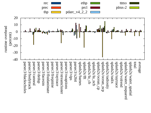 ======= Summary ======= runtime orig rec (overhead) prec (overhead) thp (overhead) ethp (overhead) prcl (overhead) pdarc_v4_2_2 (overhead) ttmo (overhead) plrus-2 (overhead) parsec3/blackscholes 139.390 139.654 (0.19) 139.668 (0.20) 139.233 (-0.11) 139.685 (0.21) 142.884 (2.51) 139.590 (0.14) 139.924 (0.38) 140.010 (0.44) parsec3/bodytrack 126.263 125.909 (-0.28) 126.393 (0.10) 126.840 (0.46) 126.301 (0.03) 132.447 (4.90) 127.177 (0.72) 126.243 (-0.02) 126.579 (0.25) parsec3/canneal 220.847 212.982 (-3.56) 213.191 (-3.47) 180.473 (-18.28) 217.153 (-1.67) 230.740 (4.48) 224.026 (1.44) 225.605 (2.15) 233.799 (5.86) parsec3/dedup 18.205 18.386 (0.99) 18.688 (2.65) 18.514 (1.69) 18.614 (2.24) 19.120 (5.02) 18.449 (1.34) 18.538 (1.83) 18.531 (1.79) parsec3/facesim 352.950 352.753 (-0.06) 345.983 (-1.97) 348.644 (-1.22) 357.204 (1.21) 351.638 (-0.37) 347.952 (-1.42) 346.780 (-1.75) 344.020 (-2.53) parsec3/fluidanimate 340.034 333.067 (-2.05) 341.151 (0.33) 326.914 (-3.86) 341.383 (0.40) 341.365 (0.39) 347.583 (2.22) 336.575 (-1.02) 343.125 (0.91) parsec3/freqmine 434.330 437.573 (0.75) 434.844 (0.12) 435.251 (0.21) 435.232 (0.21) 439.821 (1.26) 436.030 (0.39) 435.908 (0.36) 437.502 (0.73) parsec3/raytrace 183.025 184.018 (0.54) 183.200 (0.10) 184.390 (0.75) 183.900 (0.48) 190.895 (4.30) 185.213 (1.20) 183.904 (0.48) 185.849 (1.54) parsec3/streamcluster 682.473 695.207 (1.87) 706.318 (3.49) 573.649 (-15.95) 697.205 (2.16) 697.841 (2.25) 675.731 (-0.99) 652.443 (-4.40) 687.184 (0.69) parsec3/swaptions 221.348 220.904 (-0.20) 222.135 (0.36) 223.119 (0.80) 221.952 (0.27) 222.922 (0.71) 221.571 (0.10) 220.984 (-0.16) 222.371 (0.46) parsec3/vips 88.318 88.963 (0.73) 88.952 (0.72) 87.906 (-0.47) 88.581 (0.30) 89.355 (1.17) 90.474 (2.44) 92.519 (4.76) 91.243 (3.31) parsec3/x264 115.839 109.790 (-5.22) 117.311 (1.27) 117.366 (1.32) 111.577 (-3.68) 130.581 (12.73) 126.786 (9.45) 105.297 (-9.10) 119.614 (3.26) splash2x/barnes 131.408 131.193 (-0.16) 146.649 (11.60) 120.922 (-7.98) 131.201 (-0.16) 140.443 (6.88) 131.626 (0.17) 132.143 (0.56) 132.316 (0.69) splash2x/fft 61.128 60.733 (-0.65) 61.667 (0.88) 47.385 (-22.48) 61.851 (1.18) 63.649 (4.12) 63.047 (3.14) 66.797 (9.27) 66.387 (8.60) splash2x/lu_cb 132.870 133.825 (0.72) 133.435 (0.43) 133.575 (0.53) 133.689 (0.62) 134.915 (1.54) 132.768 (-0.08) 134.106 (0.93) 133.323 (0.34) splash2x/lu_ncb 151.651 151.955 (0.20) 152.049 (0.26) 152.902 (0.82) 152.719 (0.70) 152.305 (0.43) 149.501 (-1.42) 152.558 (0.60) 151.040 (-0.40) splash2x/ocean_cp 79.901 82.838 (3.68) 82.801 (3.63) 81.933 (2.54) 82.824 (3.66) 83.834 (4.92) 80.875 (1.22) 81.869 (2.46) 87.182 (9.11) splash2x/ocean_ncp 157.705 165.095 (4.69) 164.454 (4.28) 100.243 (-36.44) 167.130 (5.98) 166.987 (5.89) 166.059 (5.30) 170.759 (8.28) 181.966 (15.38) splash2x/radiosity 143.921 141.857 (-1.43) 142.586 (-0.93) 140.895 (-2.10) 142.812 (-0.77) 146.776 (1.98) 143.363 (-0.39) 142.637 (-0.89) 144.032 (0.08) splash2x/radix 50.826 51.374 (1.08) 51.586 (1.49) 45.584 (-10.31) 52.356 (3.01) 51.502 (1.33) 52.749 (3.78) 52.781 (3.85) 54.289 (6.81) splash2x/raytrace 134.713 136.240 (1.13) 134.424 (-0.21) 136.538 (1.35) 136.279 (1.16) 137.398 (1.99) 135.040 (0.24) 137.838 (2.32) 136.010 (0.96) splash2x/volrend 121.272 122.015 (0.61) 121.004 (-0.22) 120.278 (-0.82) 120.543 (-0.60) 124.421 (2.60) 120.771 (-0.41) 120.614 (-0.54) 120.692 (-0.48) splash2x/water_nsquared 373.119 371.060 (-0.55) 375.088 (0.53) 354.052 (-5.11) 376.585 (0.93) 388.075 (4.01) 375.045 (0.52) 379.566 (1.73) 379.978 (1.84) splash2x/water_spatial 134.948 135.115 (0.12) 136.471 (1.13) 136.540 (1.18) 134.409 (-0.40) 140.428 (4.06) 134.810 (-0.10) 134.385 (-0.42) 135.170 (0.16) total 4596.490 4602.510 (0.13) 4640.040 (0.95) 4333.150 (-5.73) 4631.180 (0.75) 4720.330 (2.69) 4626.240 (0.65) 4590.770 (-0.12) 4672.200 (1.65) average 191.520 191.771 (0.13) 193.335 (1.11) 180.548 (-4.73) 192.966 (0.73) 196.680 (3.30) 192.760 (1.21) 191.282 (0.90) 194.675 (2.49) kdamond_cpu_util orig rec (overhead) prec (overhead) thp (overhead) ethp (overhead) prcl (overhead) pdarc_v4_2_2 (overhead) ttmo (overhead) plrus-2 (overhead) parsec3/blackscholes 0.000 0.000 (0.00) 0.000 (0.00) 0.000 (0.00) 0.000 (0.00) 0.000 (0.00) 0.000 (0.00) 0.000 (0.00) 0.000 (0.00) parsec3/bodytrack 0.000 0.000 (0.00) 0.000 (0.00) 0.000 (0.00) 0.000 (0.00) 0.000 (0.00) 0.000 (0.00) 0.000 (0.00) 0.000 (0.00) parsec3/canneal 0.000 0.000 (0.00) 0.000 (0.00) 0.000 (0.00) 0.000 (0.00) 0.000 (0.00) 0.000 (0.00) 0.000 (0.00) 0.000 (0.00) parsec3/dedup 0.000 0.000 (0.00) 0.000 (0.00) 0.000 (0.00) 0.000 (0.00) 0.000 (0.00) 0.000 (0.00) 0.000 (0.00) 0.000 (0.00) parsec3/facesim 0.000 0.000 (0.00) 0.000 (0.00) 0.000 (0.00) 0.000 (0.00) 0.000 (0.00) 0.000 (0.00) 0.000 (0.00) 0.000 (0.00) parsec3/fluidanimate 0.000 0.000 (0.00) 0.000 (0.00) 0.000 (0.00) 0.000 (0.00) 0.000 (0.00) 0.000 (0.00) 0.000 (0.00) 0.000 (0.00) parsec3/freqmine 0.000 0.000 (0.00) 0.000 (0.00) 0.000 (0.00) 0.000 (0.00) 0.000 (0.00) 0.000 (0.00) 0.000 (0.00) 0.000 (0.00) parsec3/raytrace 0.000 0.000 (0.00) 0.000 (0.00) 0.000 (0.00) 0.000 (0.00) 0.000 (0.00) 0.000 (0.00) 0.000 (0.00) 0.000 (0.00) parsec3/streamcluster 0.000 0.000 (0.00) 0.000 (0.00) 0.000 (0.00) 0.000 (0.00) 0.000 (0.00) 0.000 (0.00) 0.000 (0.00) 0.000 (0.00) parsec3/swaptions 0.000 0.000 (0.00) 0.000 (0.00) 0.000 (0.00) 0.000 (0.00) 0.000 (0.00) 0.000 (0.00) 0.000 (0.00) 0.000 (0.00) parsec3/vips 0.000 0.000 (0.00) 0.000 (0.00) 0.000 (0.00) 0.000 (0.00) 0.000 (0.00) 0.000 (0.00) 0.000 (0.00) 0.000 (0.00) parsec3/x264 0.000 0.000 (0.00) 0.000 (0.00) 0.000 (0.00) 0.000 (0.00) 0.000 (0.00) 0.000 (0.00) 0.000 (0.00) 0.000 (0.00) splash2x/barnes 0.000 0.000 (0.00) 0.000 (0.00) 0.000 (0.00) 0.000 (0.00) 0.000 (0.00) 0.000 (0.00) 0.000 (0.00) 0.000 (0.00) splash2x/fft 0.000 0.000 (0.00) 0.000 (0.00) 0.000 (0.00) 0.000 (0.00) 0.000 (0.00) 0.000 (0.00) 0.000 (0.00) 0.000 (0.00) splash2x/lu_cb 0.000 0.000 (0.00) 0.000 (0.00) 0.000 (0.00) 0.000 (0.00) 0.000 (0.00) 0.000 (0.00) 0.0