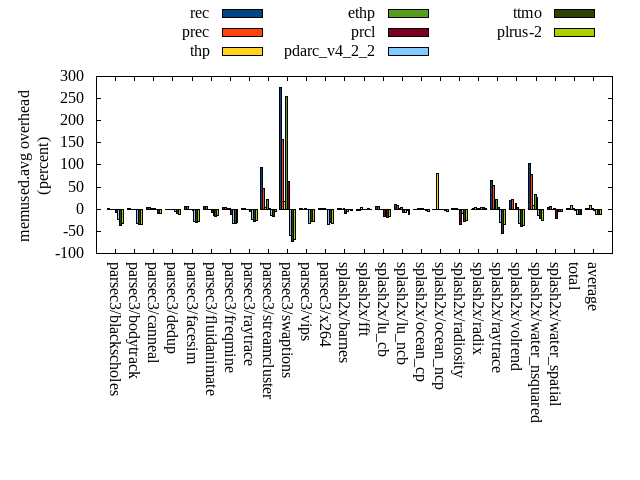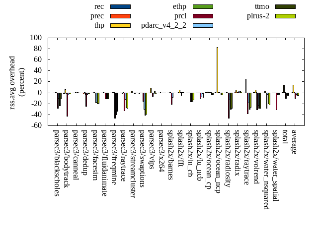 ======= Summary ======= runtime orig rec (overhead) prec (overhead) thp (overhead) ethp (overhead) prcl (overhead) pdarc_v4_2_2 (overhead) ttmo (overhead) plrus-2 (overhead) parsec3/blackscholes 139.690 140.417 (0.52) 140.052 (0.26) 139.159 (-0.38) 140.510 (0.59) 145.187 (3.94) 140.471 (0.56) 139.623 (-0.05) 140.269 (0.41) parsec3/bodytrack 126.775 125.491 (-1.01) 126.146 (-0.50) 125.589 (-0.94) 126.708 (-0.05) 135.000 (6.49) 126.639 (-0.11) 125.279 (-1.18) 125.959 (-0.64) parsec3/canneal 203.191 212.679 (4.67) 227.480 (11.95) 175.495 (-13.63) 228.648 (12.53) 226.044 (11.25) 220.517 (8.53) 226.761 (11.60) 224.236 (10.36) parsec3/dedup 18.418 18.636 (1.19) 18.640 (1.20) 18.184 (-1.27) 18.569 (0.82) 19.650 (6.69) 18.639 (1.20) 18.262 (-0.85) 18.534 (0.63) parsec3/facesim 357.499 346.393 (-3.11) 344.229 (-3.71) 339.159 (-5.13) 350.235 (-2.03) 353.869 (-1.02) 348.350 (-2.56) 352.108 (-1.51) 350.224 (-2.04) parsec3/fluidanimate 336.308 338.067 (0.52) 345.603 (2.76) 327.131 (-2.73) 339.303 (0.89) 344.689 (2.49) 340.368 (1.21) 340.778 (1.33) 338.566 (0.67) parsec3/freqmine 434.181 434.828 (0.15) 436.460 (0.52) 437.323 (0.72) 436.683 (0.58) 442.092 (1.82) 437.930 (0.86) 436.852 (0.62) 439.979 (1.34) parsec3/raytrace 184.458 183.652 (-0.44) 183.136 (-0.72) 184.988 (0.29) 186.680 (1.20) 194.278 (5.32) 185.870 (0.77) 187.731 (1.77) 187.548 (1.68) parsec3/streamcluster 636.334 685.368 (7.71) 666.979 (4.82) 584.420 (-8.16) 686.204 (7.84) 681.268 (7.06) 663.366 (4.25) 650.394 (2.21) 707.302 (11.15) parsec3/swaptions 221.436 221.521 (0.04) 221.312 (-0.06) 222.585 (0.52) 221.564 (0.06) 223.573 (0.97) 221.785 (0.16) 221.310 (-0.06) 221.546 (0.05) parsec3/vips 87.958 89.209 (1.42) 88.560 (0.68) 87.310 (-0.74) 88.314 (0.40) 90.203 (2.55) 91.705 (4.26) 92.411 (5.06) 93.641 (6.46) parsec3/x264 115.017 121.778 (5.88) 120.463 (4.73) 116.005 (0.86) 120.548 (4.81) 114.963 (-0.05) 115.206 (0.16) 116.575 (1.36) 118.631 (3.14) splash2x/barnes 130.090 131.602 (1.16) 130.339 (0.19) 120.072 (-7.70) 131.864 (1.36) 137.832 (5.95) 133.008 (2.24) 132.611 (1.94) 131.478 (1.07) splash2x/fft 60.422 60.772 (0.58) 61.615 (1.98) 47.592 (-21.23) 61.862 (2.38) 64.205 (6.26) 63.240 (4.67) 66.712 (10.41) 66.230 (9.61) splash2x/lu_cb 133.332 132.973 (-0.27) 132.923 (-0.31) 133.183 (-0.11) 133.347 (0.01) 136.572 (2.43) 133.209 (-0.09) 134.689 (1.02) 134.082 (0.56) splash2x/lu_ncb 151.955 152.643 (0.45) 150.181 (-1.17) 151.380 (-0.38) 152.226 (0.18) 152.614 (0.43) 151.947 (-0.01) 152.147 (0.13) 151.832 (-0.08) splash2x/ocean_cp 80.420 80.651 (0.29) 80.653 (0.29) 77.399 (-3.76) 91.360 (13.60) 86.661 (7.76) 83.369 (3.67) 83.613 (3.97) 83.722 (4.10) splash2x/ocean_ncp 158.991 162.986 (2.51) 165.942 (4.37) 104.958 (-33.99) 169.328 (6.50) 171.997 (8.18) 172.930 (8.77) 179.550 (12.93) 179.024 (12.60) splash2x/radiosity 142.398 142.508 (0.08) 142.569 (0.12) 141.988 (-0.29) 142.133 (-0.19) 149.754 (5.17) 142.860 (0.32) 144.903 (1.76) 145.308 (2.04) splash2x/radix 50.746 51.355 (1.20) 51.846 (2.17) 46.084 (-9.19) 51.526 (1.54) 52.844 (4.13) 55.321 (9.02) 55.103 (8.58) 54.127 (6.66) splash2x/raytrace 135.617 136.393 (0.57) 133.232 (-1.76) 134.506 (-0.82) 133.887 (-1.28) 140.571 (3.65) 136.253 (0.47) 137.418 (1.33) 137.735 (1.56) splash2x/volrend 120.689 120.827 (0.11) 121.048 (0.30) 120.379 (-0.26) 120.780 (0.08) 126.576 (4.88) 120.839 (0.12) 121.389 (0.58) 120.963 (0.23) splash2x/water_nsquared 373.244 376.562 (0.89) 374.615 (0.37) 358.141 (-4.05) 376.340 (0.83) 392.312 (5.11) 376.143 (0.78) 384.900 (3.12) 388.930 (4.20) splash2x/water_spatial 134.752 134.219 (-0.39) 134.791 (0.03) 134.418 (-0.25) 135.282 (0.39) 144.386 (7.15) 136.621 (1.39) 134.474 (-0.21) 136.785 (1.51) total 4533.930 4601.520 (1.49) 4598.820 (1.43) 4327.450 (-4.55) 4643.890 (2.43) 4727.130 (4.26) 4616.580 (1.82) 4635.580 (2.24) 4696.640 (3.59) average 188.914 191.730 (1.03) 191.617 (1.19) 180.310 (-4.69) 193.495 (2.21) 196.964 (4.53) 192.357 (2.11) 193.149 (2.74) 195.693 (3.22) kdamond_cpu_util orig rec (overhead) prec (overhead) thp (overhead) ethp (overhead) prcl (overhead) pdarc_v4_2_2 (overhead) ttmo (overhead) plrus-2 (overhead) parsec3/blackscholes 0.000 0.000 (0.00) 0.000 (0.00) 0.000 (0.00) 0.000 (0.00) 0.000 (0.00) 0.000 (0.00) 0.000 (0.00) 0.000 (0.00) parsec3/bodytrack 0.000 0.000 (0.00) 0.000 (0.00) 0.000 (0.00) 0.000 (0.00) 0.000 (0.00) 0.000 (0.00) 0.000 (0.00) 0.000 (0.00) parsec3/canneal 0.000 0.000 (0.00) 0.000 (0.00) 0.000 (0.00) 0.000 (0.00) 0.000 (0.00) 0.000 (0.00) 0.000 (0.00) 0.000 (0.00) parsec3/dedup 0.000 0.000 (0.00) 0.000 (0.00) 0.000 (0.00) 0.000 (0.00) 0.000 (0.00) 0.000 (0.00) 0.000 (0.00) 0.000 (0.00) parsec3/facesim 0.000 0.000 (0.00) 0.000 (0.00) 0.000 (0.00) 0.000 (0.00) 0.000 (0.00) 0.000 (0.00) 0.000 (0.00) 0.000 (0.00) parsec3/fluidanimate 0.000 0.000 (0.00) 0.000 (0.00) 0.000 (0.00) 0.000 (0.00) 0.000 (0.00) 0.000 (0.00) 0.000 (0.00) 0.000 (0.00) parsec3/freqmine 0.000 0.000 (0.00) 0.000 (0.00) 0.000 (0.00) 0.000 (0.00) 0.000 (0.00) 0.000 (0.00) 0.000 (0.00) 0.000 (0.00) parsec3/raytrace 0.000 0.000 (0.00) 0.000 (0.00) 0.000 (0.00) 0.000 (0.00) 0.000 (0.00) 0.000 (0.00) 0.000 (0.00) 0.000 (0.00) parsec3/streamcluster 0.000 0.000 (0.00) 0.000 (0.00) 0.000 (0.00) 0.000 (0.00) 0.000 (0.00) 0.000 (0.00) 0.000 (0.00) 0.000 (0.00) parsec3/swaptions 0.000 0.000 (0.00) 0.000 (0.00) 0.000 (0.00) 0.000 (0.00) 0.000 (0.00) 0.000 (0.00) 0.000 (0.00) 0.000 (0.00) parsec3/vips 0.000 0.000 (0.00) 0.000 (0.00) 0.000 (0.00) 0.000 (0.00) 0.000 (0.00) 0.000 (0.00) 0.000 (0.00) 0.000 (0.00) parsec3/x264 0.000 0.000 (0.00) 0.000 (0.00) 0.000 (0.00) 0.000 (0.00) 0.000 (0.00) 0.000 (0.00) 0.000 (0.00) 0.000 (0.00) splash2x/barnes 0.000 0.000 (0.00) 0.000 (0.00) 0.000 (0.00) 0.000 (0.00) 0.000 (0.00) 0.000 (0.00) 0.000 (0.00) 0.000 (0.00) splash2x/fft 0.000 0.000 (0.00) 0.000 (0.00) 0.000 (0.00) 0.000 (0.00) 0.000 (0.00) 0.000 (0.00) 0.000 (0.00) 0.000 (0.00) splash2x/lu_cb 0.000 0.000 (0.00) 0.000 (0.00) 0.000 (0.00) 0.000 (0.00) 0.000 (0.00) 0.000 (0.00) 0.