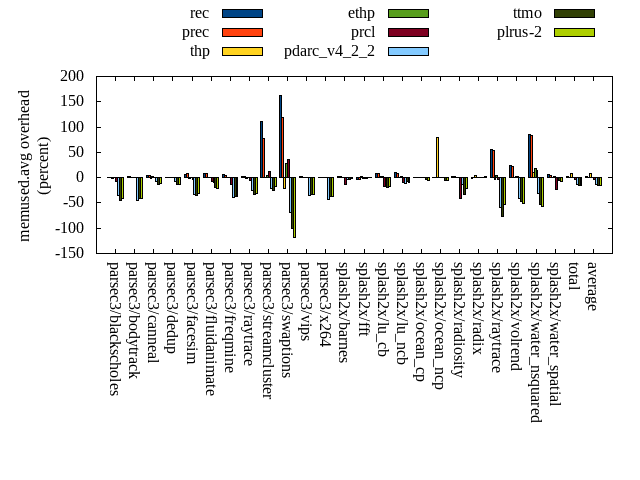 ======= Summary ======= runtime orig rec (overhead) prec (overhead) thp (overhead) ethp (overhead) prcl (overhead) pdarc_v4_2_2 (overhead) ttmo (overhead) plrus-2 (overhead) parsec3/blackscholes 139.040 139.697 (0.47) 139.528 (0.35) 138.574 (-0.33) 140.346 (0.94) 145.987 (5.00) 140.113 (0.77) 140.096 (0.76) 140.770 (1.24) parsec3/bodytrack 125.277 125.949 (0.54) 124.923 (-0.28) 125.289 (0.01) 126.389 (0.89) 137.639 (9.87) 126.168 (0.71) 125.839 (0.45) 125.266 (-0.01) parsec3/canneal 223.264 226.363 (1.39) 220.284 (-1.33) 182.124 (-18.43) 231.697 (3.78) 222.962 (-0.14) 241.681 (8.25) 232.833 (4.29) 231.467 (3.67) parsec3/dedup 18.189 18.219 (0.16) 18.432 (1.34) 18.229 (0.22) 18.417 (1.26) 19.884 (9.32) 18.572 (2.10) 18.488 (1.64) 18.463 (1.51) parsec3/facesim 353.036 347.347 (-1.61) 349.680 (-0.95) 344.331 (-2.47) 346.469 (-1.86) 360.705 (2.17) 348.664 (-1.24) 353.846 (0.23) 353.864 (0.23) parsec3/fluidanimate 336.975 336.341 (-0.19) 339.140 (0.64) 331.228 (-1.71) 339.134 (0.64) 340.319 (0.99) 339.171 (0.65) 344.181 (2.14) 341.343 (1.30) parsec3/freqmine 436.117 438.125 (0.46) 437.703 (0.36) 436.400 (0.06) 437.083 (0.22) 443.814 (1.76) 437.638 (0.35) 437.069 (0.22) 437.876 (0.40) parsec3/raytrace 184.557 184.625 (0.04) 183.851 (-0.38) 184.413 (-0.08) 184.997 (0.24) 197.864 (7.21) 187.652 (1.68) 187.313 (1.49) 186.966 (1.31) parsec3/streamcluster 654.968 702.019 (7.18) 698.873 (6.70) 563.689 (-13.94) 712.437 (8.77) 700.939 (7.02) 755.245 (15.31) 707.206 (7.98) 702.110 (7.20) parsec3/swaptions 220.681 221.457 (0.35) 222.106 (0.65) 221.183 (0.23) 222.300 (0.73) 222.951 (1.03) 221.905 (0.55) 222.082 (0.63) 221.910 (0.56) parsec3/vips 87.783 88.713 (1.06) 88.346 (0.64) 87.198 (-0.67) 88.297 (0.59) 89.460 (1.91) 91.821 (4.60) 93.499 (6.51) 94.387 (7.52) parsec3/x264 118.183 114.253 (-3.33) 112.705 (-4.64) 120.971 (2.36) 119.615 (1.21) 113.333 (-4.10) 112.515 (-4.80) 126.774 (7.27) 119.393 (1.02) splash2x/barnes 130.979 131.399 (0.32) 130.765 (-0.16) 118.604 (-9.45) 131.176 (0.15) 142.772 (9.00) 131.900 (0.70) 132.261 (0.98) 133.194 (1.69) splash2x/fft 61.355 61.545 (0.31) 62.664 (2.13) 47.958 (-21.83) 63.341 (3.24) 65.807 (7.26) 63.289 (3.15) 69.913 (13.95) 70.900 (15.56) splash2x/lu_cb 132.738 133.382 (0.49) 133.270 (0.40) 133.089 (0.26) 133.286 (0.41) 136.995 (3.21) 133.456 (0.54) 134.373 (1.23) 133.213 (0.36) splash2x/lu_ncb 150.824 152.889 (1.37) 152.201 (0.91) 152.326 (1.00) 152.581 (1.16) 153.087 (1.50) 151.751 (0.61) 151.851 (0.68) 152.214 (0.92) splash2x/ocean_cp 86.075 86.246 (0.20) 81.166 (-5.70) 79.933 (-7.14) 85.095 (-1.14) 85.109 (-1.12) 87.131 (1.23) 84.907 (-1.36) 87.425 (1.57) splash2x/ocean_ncp 164.163 168.046 (2.37) 169.022 (2.96) 110.319 (-32.80) 166.518 (1.44) 174.421 (6.25) 168.272 (2.50) 182.931 (11.43) 178.569 (8.78) splash2x/radiosity 142.285 142.517 (0.16) 142.283 (-0.00) 141.158 (-0.79) 143.042 (0.53) 150.442 (5.73) 144.782 (1.76) 145.607 (2.33) 145.074 (1.96) splash2x/radix 50.819 51.689 (1.71) 52.356 (3.02) 47.200 (-7.12) 52.815 (3.93) 52.312 (2.94) 53.980 (6.22) 54.464 (7.17) 55.059 (8.34) splash2x/raytrace 133.278 135.814 (1.90) 134.781 (1.13) 131.093 (-1.64) 136.554 (2.46) 141.857 (6.44) 134.630 (1.01) 140.430 (5.37) 137.100 (2.87) splash2x/volrend 120.896 121.123 (0.19) 120.802 (-0.08) 119.622 (-1.05) 121.384 (0.40) 128.821 (6.56) 121.208 (0.26) 120.514 (-0.32) 121.155 (0.21) splash2x/water_nsquared 373.631 373.999 (0.10) 372.593 (-0.28) 355.878 (-4.75) 372.522 (-0.30) 396.922 (6.23) 372.587 (-0.28) 385.889 (3.28) 388.992 (4.11) splash2x/water_spatial 133.387 134.343 (0.72) 135.250 (1.40) 134.782 (1.05) 134.278 (0.67) 146.244 (9.64) 135.825 (1.83) 136.668 (2.46) 136.344 (2.22) total 4578.500 4636.110 (1.26) 4622.720 (0.97) 4325.580 (-5.52) 4659.780 (1.78) 4770.630 (4.20) 4719.960 (3.09) 4729.020 (3.29) 4713.040 (2.94) average 190.771 193.171 (0.68) 192.613 (0.37) 180.232 (-4.96) 194.157 (1.27) 198.776 (4.40) 196.665 (2.02) 197.043 (3.37) 196.377 (3.11) kdamond_cpu_util orig rec (overhead) prec (overhead) thp (overhead) ethp (overhead) prcl (overhead) pdarc_v4_2_2 (overhead) ttmo (overhead) plrus-2 (overhead) parsec3/blackscholes 0.000 0.000 (0.00) 0.000 (0.00) 0.000 (0.00) 0.000 (0.00) 0.000 (0.00) 0.000 (0.00) 0.000 (0.00) 0.000 (0.00) parsec3/bodytrack 0.000 0.000 (0.00) 0.000 (0.00) 0.000 (0.00) 0.000 (0.00) 0.000 (0.00) 0.000 (0.00) 0.000 (0.00) 0.000 (0.00) parsec3/canneal 0.000 0.000 (0.00) 0.000 (0.00) 0.000 (0.00) 0.000 (0.00) 0.000 (0.00) 0.000 (0.00) 0.000 (0.00) 0.000 (0.00) parsec3/dedup 0.000 0.000 (0.00) 0.000 (0.00) 0.000 (0.00) 0.000 (0.00) 0.000 (0.00) 0.000 (0.00) 0.000 (0.00) 0.000 (0.00) parsec3/facesim 0.000 0.000 (0.00) 0.000 (0.00) 0.000 (0.00) 0.000 (0.00) 0.000 (0.00) 0.000 (0.00) 0.000 (0.00) 0.000 (0.00) parsec3/fluidanimate 0.000 0.000 (0.00) 0.000 (0.00) 0.000 (0.00) 0.000 (0.00) 0.000 (0.00) 0.000 (0.00) 0.000 (0.00) 0.000 (0.00) parsec3/freqmine 0.000 0.000 (0.00) 0.000 (0.00) 0.000 (0.00) 0.000 (0.00) 0.000 (0.00) 0.000 (0.00) 0.000 (0.00) 0.000 (0.00) parsec3/raytrace 0.000 0.000 (0.00) 0.000 (0.00) 0.000 (0.00) 0.000 (0.00) 0.000 (0.00) 0.000 (0.00) 0.000 (0.00) 0.000 (0.00) parsec3/streamcluster 0.000 0.000 (0.00) 0.000 (0.00) 0.000 (0.00) 0.000 (0.00) 0.000 (0.00) 0.000 (0.00) 0.000 (0.00) 0.000 (0.00) parsec3/swaptions 0.000 0.000 (0.00) 0.000 (0.00) 0.000 (0.00) 0.000 (0.00) 0.000 (0.00) 0.000 (0.00) 0.000 (0.00) 0.000 (0.00) parsec3/vips 0.000 0.000 (0.00) 0.000 (0.00) 0.000 (0.00) 0.000 (0.00) 0.000 (0.00) 0.000 (0.00) 0.000 (0.00) 0.000 (0.00) parsec3/x264 0.000 0.000 (0.00) 0.000 (0.00) 0.000 (0.00) 0.000 (0.00) 0.000 (0.00) 0.000 (0.00) 0.000 (0.00) 0.000 (0.00) splash2x/barnes 0.000 0.000 (0.00) 0.000 (0.00) 0.000 (0.00) 0.000 (0.00) 0.000 (0.00) 0.000 (0.00) 0.000 (0.00) 0.000 (0.00) splash2x/fft 0.000 0.000 (0.00) 0.000 (0.00) 0.000 (0.00) 0.000 (0.00) 0.000 (0.00) 0.000 (0.00) 0.000 (0.00) 0.000 (0.00) splash2x/lu_cb 0.000 0.000 (0.00) 0.000 (0.00) 0.000 (0.00) 0.000 (0.00) 0.000 (0.00) 0.000 (0.00) 0.000 (0.00) 0.00