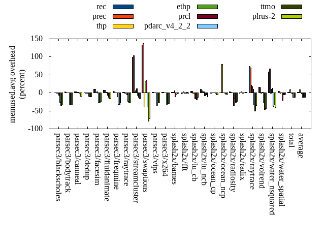 ======= Summary ======= runtime orig rec (overhead) prec (overhead) thp (overhead) ethp (overhead) prcl (overhead) pdarc_v4_2_2 (overhead) ttmo (overhead) plrus-2 (overhead) parsec3/blackscholes 139.029 140.043 (0.73) 140.292 (0.91) 138.080 (-0.68) 140.601 (1.13) 144.656 (4.05) 140.950 (1.38) 139.832 (0.58) 140.097 (0.77) parsec3/bodytrack 125.991 126.358 (0.29) 126.411 (0.33) 125.918 (-0.06) 126.731 (0.59) 135.938 (7.90) 125.812 (-0.14) 126.590 (0.48) 125.817 (-0.14) parsec3/canneal 230.063 225.103 (-2.16) 222.674 (-3.21) 194.886 (-15.29) 224.781 (-2.30) 232.578 (1.09) 233.058 (1.30) 235.944 (2.56) 230.609 (0.24) parsec3/dedup 18.403 18.359 (-0.24) 18.319 (-0.46) 17.958 (-2.42) 18.566 (0.89) 19.595 (6.48) 18.432 (0.16) 18.373 (-0.16) 18.269 (-0.72) parsec3/facesim 348.700 352.549 (1.10) 349.272 (0.16) 345.604 (-0.89) 347.893 (-0.23) 359.951 (3.23) 352.671 (1.14) 352.771 (1.17) 350.763 (0.59) parsec3/fluidanimate 337.767 337.978 (0.06) 339.516 (0.52) 329.953 (-2.31) 338.228 (0.14) 344.609 (2.03) 343.906 (1.82) 338.989 (0.36) 339.880 (0.63) parsec3/freqmine 434.655 436.928 (0.52) 437.004 (0.54) 434.906 (0.06) 435.590 (0.21) 443.139 (1.95) 438.199 (0.82) 436.582 (0.44) 436.086 (0.33) parsec3/raytrace 185.680 184.375 (-0.70) 184.040 (-0.88) 187.116 (0.77) 185.379 (-0.16) 193.857 (4.40) 186.516 (0.45) 187.093 (0.76) 187.720 (1.10) parsec3/streamcluster 712.450 725.181 (1.79) 706.106 (-0.89) 596.111 (-16.33) 731.210 (2.63) 716.936 (0.63) 689.947 (-3.16) 702.332 (-1.42) 707.585 (-0.68) parsec3/swaptions 223.565 221.418 (-0.96) 220.734 (-1.27) 219.900 (-1.64) 221.711 (-0.83) 223.831 (0.12) 221.905 (-0.74) 223.896 (0.15) 222.249 (-0.59) parsec3/vips 87.587 87.887 (0.34) 88.178 (0.67) 87.625 (0.04) 88.394 (0.92) 90.223 (3.01) 92.299 (5.38) 93.630 (6.90) 93.110 (6.31) parsec3/x264 109.932 119.727 (8.91) 114.938 (4.55) 114.908 (4.53) 115.257 (4.84) 119.769 (8.95) 118.075 (7.41) 109.861 (-0.07) 114.213 (3.89) splash2x/barnes 130.927 131.438 (0.39) 131.064 (0.10) 119.344 (-8.85) 131.960 (0.79) 140.416 (7.25) 132.301 (1.05) 132.138 (0.92) 132.089 (0.89) splash2x/fft 61.913 63.406 (2.41) 63.324 (2.28) 49.380 (-20.24) 62.585 (1.09) 64.446 (4.09) 63.446 (2.48) 68.928 (11.33) 66.676 (7.69) splash2x/lu_cb 132.818 133.061 (0.18) 133.024 (0.15) 132.759 (-0.04) 133.354 (0.40) 136.328 (2.64) 133.532 (0.54) 134.093 (0.96) 133.678 (0.65) splash2x/lu_ncb 150.297 152.883 (1.72) 151.304 (0.67) 151.962 (1.11) 151.991 (1.13) 153.456 (2.10) 151.932 (1.09) 151.351 (0.70) 153.147 (1.90) splash2x/ocean_cp 85.594 85.318 (-0.32) 83.717 (-2.19) 81.425 (-4.87) 86.080 (0.57) 85.561 (-0.04) 87.200 (1.88) 84.824 (-0.90) 85.645 (0.06) splash2x/ocean_ncp 165.704 164.770 (-0.56) 170.594 (2.95) 104.924 (-36.68) 170.148 (2.68) 171.601 (3.56) 175.521 (5.92) 178.642 (7.81) 181.571 (9.58) splash2x/radiosity 142.072 142.759 (0.48) 142.709 (0.45) 141.919 (-0.11) 142.514 (0.31) 149.586 (5.29) 143.942 (1.32) 145.109 (2.14) 144.586 (1.77) splash2x/radix 51.320 52.050 (1.42) 52.570 (2.44) 45.623 (-11.10) 52.075 (1.47) 52.663 (2.62) 53.750 (4.73) 54.369 (5.94) 55.534 (8.21) splash2x/raytrace 135.228 134.045 (-0.87) 134.082 (-0.85) 134.255 (-0.72) 134.930 (-0.22) 139.306 (3.02) 134.552 (-0.50) 138.031 (2.07) 135.669 (0.33) splash2x/volrend 120.621 120.074 (-0.45) 121.043 (0.35) 119.620 (-0.83) 120.331 (-0.24) 128.115 (6.21) 120.404 (-0.18) 120.992 (0.31) 120.810 (0.16) splash2x/water_nsquared 373.582 371.501 (-0.56) 373.185 (-0.11) 354.420 (-5.13) 372.855 (-0.19) 398.149 (6.58) 374.713 (0.30) 382.363 (2.35) 386.399 (3.43) splash2x/water_spatial 134.578 135.336 (0.56) 135.090 (0.38) 134.619 (0.03) 135.645 (0.79) 144.599 (7.45) 135.983 (1.04) 134.676 (0.07) 134.461 (-0.09) total 4638.470 4662.560 (0.52) 4639.170 (0.02) 4363.220 (-5.93) 4668.820 (0.65) 4789.340 (3.25) 4669.050 (0.66) 4691.400 (1.14) 4696.660 (1.25) average 193.270 194.273 (0.59) 193.299 (0.32) 181.801 (-5.07) 194.534 (0.68) 199.556 (3.94) 194.544 (1.48) 195.475 (1.89) 195.694 (1.93) kdamond_cpu_util orig rec (overhead) prec (overhead) thp (overhead) ethp (overhead) prcl (overhead) pdarc_v4_2_2 (overhead) ttmo (overhead) plrus-2 (overhead) parsec3/blackscholes 0.000 0.000 (0.00) 0.000 (0.00) 0.000 (0.00) 0.000 (0.00) 0.000 (0.00) 0.000 (0.00) 0.000 (0.00) 0.000 (0.00) parsec3/bodytrack 0.000 0.000 (0.00) 0.000 (0.00) 0.000 (0.00) 0.000 (0.00) 0.000 (0.00) 0.000 (0.00) 0.000 (0.00) 0.000 (0.00) parsec3/canneal 0.000 0.000 (0.00) 0.000 (0.00) 0.000 (0.00) 0.000 (0.00) 0.000 (0.00) 0.000 (0.00) 0.000 (0.00) 0.000 (0.00) parsec3/dedup 0.000 0.000 (0.00) 0.000 (0.00) 0.000 (0.00) 0.000 (0.00) 0.000 (0.00) 0.000 (0.00) 0.000 (0.00) 0.000 (0.00) parsec3/facesim 0.000 0.000 (0.00) 0.000 (0.00) 0.000 (0.00) 0.000 (0.00) 0.000 (0.00) 0.000 (0.00) 0.000 (0.00) 0.000 (0.00) parsec3/fluidanimate 0.000 0.000 (0.00) 0.000 (0.00) 0.000 (0.00) 0.000 (0.00) 0.000 (0.00) 0.000 (0.00) 0.000 (0.00) 0.000 (0.00) parsec3/freqmine 0.000 0.000 (0.00) 0.000 (0.00) 0.000 (0.00) 0.000 (0.00) 0.000 (0.00) 0.000 (0.00) 0.000 (0.00) 0.000 (0.00) parsec3/raytrace 0.000 0.000 (0.00) 0.000 (0.00) 0.000 (0.00) 0.000 (0.00) 0.000 (0.00) 0.000 (0.00) 0.000 (0.00) 0.000 (0.00) parsec3/streamcluster 0.000 0.000 (0.00) 0.000 (0.00) 0.000 (0.00) 0.000 (0.00) 0.000 (0.00) 0.000 (0.00) 0.000 (0.00) 0.000 (0.00) parsec3/swaptions 0.000 0.000 (0.00) 0.000 (0.00) 0.000 (0.00) 0.000 (0.00) 0.000 (0.00) 0.000 (0.00) 0.000 (0.00) 0.000 (0.00) parsec3/vips 0.000 0.000 (0.00) 0.000 (0.00) 0.000 (0.00) 0.000 (0.00) 0.000 (0.00) 0.000 (0.00) 0.000 (0.00) 0.000 (0.00) parsec3/x264 0.000 0.000 (0.00) 0.000 (0.00) 0.000 (0.00) 0.000 (0.00) 0.000 (0.00) 0.000 (0.00) 0.000 (0.00) 0.000 (0.00) splash2x/barnes 0.000 0.000 (0.00) 0.000 (0.00) 0.000 (0.00) 0.000 (0.00) 0.000 (0.00) 0.000 (0.00) 0.000 (0.00) 0.000 (0.00) splash2x/fft 0.000 0.000 (0.00) 0.000 (0.00) 0.000 (0.00) 0.000 (0.00) 0.000 (0.00) 0.000 (0.00) 0.000 (0.00) 0.000 (0.00) splash2x/lu_cb 0.000 0.000 (0.00) 0.000 (0.00) 0.000 (0.00) 0.000 (0.00) 0.000 (0.00) 0.000 (0.00) 0.0