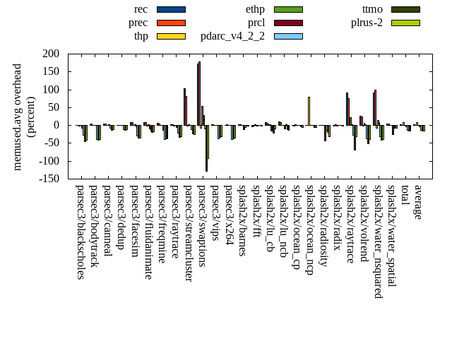 ======= Summary ======= runtime orig rec (overhead) prec (overhead) thp (overhead) ethp (overhead) prcl (overhead) pdarc_v4_2_2 (overhead) ttmo (overhead) plrus-2 (overhead) parsec3/blackscholes 139.080 140.746 (1.20) 139.444 (0.26) 138.697 (-0.27) 140.015 (0.67) 145.183 (4.39) 140.406 (0.95) 139.694 (0.44) 140.178 (0.79) parsec3/bodytrack 125.887 126.314 (0.34) 127.576 (1.34) 125.810 (-0.06) 127.133 (0.99) 136.817 (8.68) 125.382 (-0.40) 125.045 (-0.67) 125.170 (-0.57) parsec3/canneal 214.972 213.277 (-0.79) 223.659 (4.04) 190.246 (-11.50) 221.934 (3.24) 224.984 (4.66) 232.187 (8.01) 228.353 (6.22) 238.518 (10.95) parsec3/dedup 18.426 18.400 (-0.14) 18.324 (-0.55) 18.247 (-0.97) 18.424 (-0.01) 19.517 (5.92) 18.756 (1.79) 18.390 (-0.19) 18.250 (-0.95) parsec3/facesim 343.925 351.077 (2.08) 345.225 (0.38) 343.724 (-0.06) 347.195 (0.95) 356.303 (3.60) 353.636 (2.82) 351.325 (2.15) 354.299 (3.02) parsec3/fluidanimate 336.975 333.247 (-1.11) 341.687 (1.40) 324.595 (-3.67) 338.450 (0.44) 341.377 (1.31) 337.511 (0.16) 338.067 (0.32) 337.323 (0.10) parsec3/freqmine 435.669 436.015 (0.08) 435.853 (0.04) 436.046 (0.09) 436.937 (0.29) 441.840 (1.42) 438.401 (0.63) 437.166 (0.34) 436.857 (0.27) parsec3/raytrace 182.133 182.776 (0.35) 183.738 (0.88) 184.562 (1.33) 183.499 (0.75) 196.759 (8.03) 186.511 (2.40) 188.894 (3.71) 186.856 (2.59) parsec3/streamcluster 648.690 690.353 (6.42) 654.625 (0.91) 544.997 (-15.98) 689.761 (6.33) 742.441 (14.45) 723.275 (11.50) 687.399 (5.97) 688.684 (6.17) parsec3/swaptions 222.494 221.802 (-0.31) 221.905 (-0.26) 221.273 (-0.55) 223.267 (0.35) 223.054 (0.25) 221.737 (-0.34) 221.574 (-0.41) 222.309 (-0.08) parsec3/vips 88.055 88.447 (0.44) 88.981 (1.05) 87.164 (-1.01) 88.634 (0.66) 90.359 (2.62) 92.633 (5.20) 93.344 (6.01) 92.736 (5.32) parsec3/x264 116.182 109.276 (-5.94) 115.396 (-0.68) 113.318 (-2.47) 115.014 (-1.01) 117.367 (1.02) 114.084 (-1.81) 117.734 (1.34) 121.427 (4.51) splash2x/barnes 131.002 131.780 (0.59) 130.240 (-0.58) 118.363 (-9.65) 132.251 (0.95) 140.891 (7.55) 133.274 (1.73) 132.345 (1.03) 132.451 (1.11) splash2x/fft 61.411 62.129 (1.17) 62.179 (1.25) 47.488 (-22.67) 61.506 (0.15) 64.088 (4.36) 62.961 (2.52) 70.299 (14.47) 65.309 (6.35) splash2x/lu_cb 132.661 133.678 (0.77) 132.671 (0.01) 132.975 (0.24) 132.828 (0.13) 136.678 (3.03) 133.273 (0.46) 133.735 (0.81) 133.744 (0.82) splash2x/lu_ncb 149.942 151.884 (1.29) 150.713 (0.51) 151.053 (0.74) 151.115 (0.78) 152.042 (1.40) 152.289 (1.57) 151.506 (1.04) 152.208 (1.51) splash2x/ocean_cp 84.236 87.323 (3.67) 82.875 (-1.62) 85.355 (1.33) 85.024 (0.94) 82.483 (-2.08) 84.767 (0.63) 86.260 (2.40) 84.588 (0.42) splash2x/ocean_ncp 163.282 163.108 (-0.11) 167.244 (2.43) 99.151 (-39.28) 168.149 (2.98) 171.572 (5.08) 167.581 (2.63) 177.039 (8.43) 181.985 (11.45) splash2x/radiosity 142.298 142.205 (-0.07) 142.830 (0.37) 142.113 (-0.13) 143.031 (0.51) 149.129 (4.80) 143.287 (0.69) 143.160 (0.61) 145.164 (2.01) splash2x/radix 51.711 52.668 (1.85) 51.322 (-0.75) 45.191 (-12.61) 51.808 (0.19) 52.171 (0.89) 53.619 (3.69) 54.252 (4.91) 54.174 (4.76) splash2x/raytrace 134.320 137.133 (2.09) 135.127 (0.60) 134.395 (0.06) 134.192 (-0.09) 144.131 (7.30) 137.439 (2.32) 137.448 (2.33) 135.556 (0.92) splash2x/volrend 120.667 120.794 (0.10) 120.562 (-0.09) 119.191 (-1.22) 120.396 (-0.22) 127.736 (5.86) 121.594 (0.77) 121.095 (0.35) 120.811 (0.12) splash2x/water_nsquared 370.969 371.404 (0.12) 374.551 (0.97) 355.905 (-4.06) 373.461 (0.67) 396.005 (6.75) 373.752 (0.75) 385.120 (3.81) 384.644 (3.69) splash2x/water_spatial 133.635 135.132 (1.12) 134.804 (0.88) 135.528 (1.42) 134.485 (0.64) 146.316 (9.49) 136.021 (1.79) 135.351 (1.28) 136.004 (1.77) total 4548.610 4600.960 (1.15) 4581.510 (0.72) 4295.360 (-5.57) 4618.510 (1.54) 4799.250 (5.51) 4684.370 (2.98) 4674.590 (2.77) 4689.240 (3.09) average 189.525 191.707 (0.63) 190.896 (0.53) 178.973 (-5.04) 192.438 (0.89) 199.969 (4.62) 195.182 (2.10) 194.775 (2.78) 195.385 (2.79) kdamond_cpu_util orig rec (overhead) prec (overhead) thp (overhead) ethp (overhead) prcl (overhead) pdarc_v4_2_2 (overhead) ttmo (overhead) plrus-2 (overhead) parsec3/blackscholes 0.000 0.000 (0.00) 0.000 (0.00) 0.000 (0.00) 0.000 (0.00) 0.000 (0.00) 0.000 (0.00) 0.000 (0.00) 0.000 (0.00) parsec3/bodytrack 0.000 0.000 (0.00) 0.000 (0.00) 0.000 (0.00) 0.000 (0.00) 0.000 (0.00) 0.000 (0.00) 0.000 (0.00) 0.000 (0.00) parsec3/canneal 0.000 0.000 (0.00) 0.000 (0.00) 0.000 (0.00) 0.000 (0.00) 0.000 (0.00) 0.000 (0.00) 0.000 (0.00) 0.000 (0.00) parsec3/dedup 0.000 0.000 (0.00) 0.000 (0.00) 0.000 (0.00) 0.000 (0.00) 0.000 (0.00) 0.000 (0.00) 0.000 (0.00) 0.000 (0.00) parsec3/facesim 0.000 0.000 (0.00) 0.000 (0.00) 0.000 (0.00) 0.000 (0.00) 0.000 (0.00) 0.000 (0.00) 0.000 (0.00) 0.000 (0.00) parsec3/fluidanimate 0.000 0.000 (0.00) 0.000 (0.00) 0.000 (0.00) 0.000 (0.00) 0.000 (0.00) 0.000 (0.00) 0.000 (0.00) 0.000 (0.00) parsec3/freqmine 0.000 0.000 (0.00) 0.000 (0.00) 0.000 (0.00) 0.000 (0.00) 0.000 (0.00) 0.000 (0.00) 0.000 (0.00) 0.000 (0.00) parsec3/raytrace 0.000 0.000 (0.00) 0.000 (0.00) 0.000 (0.00) 0.000 (0.00) 0.000 (0.00) 0.000 (0.00) 0.000 (0.00) 0.000 (0.00) parsec3/streamcluster 0.000 0.000 (0.00) 0.000 (0.00) 0.000 (0.00) 0.000 (0.00) 0.000 (0.00) 0.000 (0.00) 0.000 (0.00) 0.000 (0.00) parsec3/swaptions 0.000 0.000 (0.00) 0.000 (0.00) 0.000 (0.00) 0.000 (0.00) 0.000 (0.00) 0.000 (0.00) 0.000 (0.00) 0.000 (0.00) parsec3/vips 0.000 0.000 (0.00) 0.000 (0.00) 0.000 (0.00) 0.000 (0.00) 0.000 (0.00) 0.000 (0.00) 0.000 (0.00) 0.000 (0.00) parsec3/x264 0.000 0.000 (0.00) 0.000 (0.00) 0.000 (0.00) 0.000 (0.00) 0.000 (0.00) 0.000 (0.00) 0.000 (0.00) 0.000 (0.00) splash2x/barnes 0.000 0.000 (0.00) 0.000 (0.00) 0.000 (0.00) 0.000 (0.00) 0.000 (0.00) 0.000 (0.00) 0.000 (0.00) 0.000 (0.00) splash2x/fft 0.000 0.000 (0.00) 0.000 (0.00) 0.000 (0.00) 0.000 (0.00) 0.000 (0.00) 0.000 (0.00) 0.000 (0.00) 0.000 (0.00) splash2x/lu_cb 0.000 0.000 (0.00) 0.000 (0.00) 0.000 (0.00) 0.000 (0.00) 0.000 (0.00) 0.000 (0.00) 0.000 (0.00)