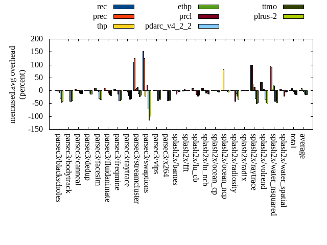 ======= Summary ======= runtime orig rec (overhead) prec (overhead) thp (overhead) ethp (overhead) prcl (overhead) pdarc_v4_2_2 (overhead) ttmo (overhead) plrus-2 (overhead) parsec3/blackscholes 139.432 139.908 (0.34) 139.755 (0.23) 139.196 (-0.17) 139.879 (0.32) 146.032 (4.73) 139.936 (0.36) 140.235 (0.58) 140.344 (0.65) parsec3/bodytrack 125.137 125.654 (0.41) 126.213 (0.86) 125.567 (0.34) 125.796 (0.53) 137.928 (10.22) 126.196 (0.85) 126.086 (0.76) 125.564 (0.34) parsec3/canneal 211.260 221.045 (4.63) 224.781 (6.40) 190.628 (-9.77) 227.506 (7.69) 234.657 (11.08) 225.358 (6.67) 234.527 (11.01) 227.948 (7.90) parsec3/dedup 18.274 18.309 (0.19) 18.325 (0.28) 17.953 (-1.76) 18.412 (0.75) 19.868 (8.72) 18.704 (2.35) 18.354 (0.44) 18.534 (1.42) parsec3/facesim 345.981 349.396 (0.99) 348.176 (0.63) 341.620 (-1.26) 347.511 (0.44) 359.597 (3.94) 347.954 (0.57) 347.875 (0.55) 351.813 (1.69) parsec3/fluidanimate 337.692 336.914 (-0.23) 340.170 (0.73) 329.721 (-2.36) 334.556 (-0.93) 346.795 (2.70) 339.767 (0.61) 336.151 (-0.46) 341.165 (1.03) parsec3/freqmine 435.404 435.717 (0.07) 435.620 (0.05) 433.956 (-0.33) 438.395 (0.69) 443.107 (1.77) 436.577 (0.27) 436.504 (0.25) 436.619 (0.28) parsec3/raytrace 181.913 185.134 (1.77) 184.565 (1.46) 185.034 (1.72) 187.179 (2.89) 198.545 (9.14) 186.611 (2.58) 186.148 (2.33) 186.712 (2.64) parsec3/streamcluster 708.093 690.656 (-2.46) 676.233 (-4.50) 620.432 (-12.38) 681.480 (-3.76) 682.531 (-3.61) 682.478 (-3.62) 682.876 (-3.56) 699.605 (-1.20) parsec3/swaptions 221.262 221.877 (0.28) 220.863 (-0.18) 221.282 (0.01) 222.124 (0.39) 222.801 (0.70) 221.437 (0.08) 222.468 (0.54) 221.886 (0.28) parsec3/vips 87.517 89.569 (2.34) 88.620 (1.26) 87.379 (-0.16) 89.139 (1.85) 90.203 (3.07) 92.573 (5.78) 93.893 (7.29) 93.808 (7.19) parsec3/x264 114.452 116.826 (2.07) 119.700 (4.58) 113.222 (-1.07) 114.768 (0.28) 109.883 (-3.99) 122.397 (6.94) 124.731 (8.98) 119.886 (4.75) splash2x/barnes 131.004 131.996 (0.76) 131.895 (0.68) 119.046 (-9.13) 131.079 (0.06) 142.964 (9.13) 132.754 (1.34) 132.365 (1.04) 132.888 (1.44) splash2x/fft 61.095 61.477 (0.62) 62.516 (2.33) 49.414 (-19.12) 62.241 (1.88) 64.492 (5.56) 64.147 (5.00) 70.575 (15.52) 69.193 (13.25) splash2x/lu_cb 132.622 133.119 (0.38) 133.204 (0.44) 133.794 (0.88) 132.834 (0.16) 136.601 (3.00) 133.789 (0.88) 134.024 (1.06) 134.075 (1.10) splash2x/lu_ncb 150.744 153.167 (1.61) 150.788 (0.03) 151.598 (0.57) 154.513 (2.50) 153.051 (1.53) 153.398 (1.76) 153.403 (1.76) 154.384 (2.41) splash2x/ocean_cp 81.684 81.127 (-0.68) 86.781 (6.24) 78.828 (-3.50) 83.059 (1.68) 82.439 (0.93) 85.268 (4.39) 88.559 (8.42) 83.654 (2.41) splash2x/ocean_ncp 159.503 168.137 (5.41) 162.575 (1.93) 103.959 (-34.82) 167.146 (4.79) 171.132 (7.29) 171.230 (7.35) 177.460 (11.26) 181.218 (13.61) splash2x/radiosity 142.517 142.148 (-0.26) 142.540 (0.02) 142.456 (-0.04) 142.804 (0.20) 149.191 (4.68) 143.764 (0.87) 144.761 (1.58) 144.840 (1.63) splash2x/radix 50.987 52.530 (3.03) 52.281 (2.54) 45.643 (-10.48) 51.948 (1.89) 52.270 (2.52) 53.858 (5.63) 54.263 (6.43) 55.010 (7.89) splash2x/raytrace 135.310 135.505 (0.14) 134.119 (-0.88) 132.837 (-1.83) 134.545 (-0.56) 142.164 (5.07) 135.103 (-0.15) 136.057 (0.55) 139.253 (2.91) splash2x/volrend 121.069 121.314 (0.20) 120.780 (-0.24) 120.033 (-0.86) 120.476 (-0.49) 127.829 (5.58) 121.004 (-0.05) 121.007 (-0.05) 121.085 (0.01) splash2x/water_nsquared 370.275 372.256 (0.54) 371.005 (0.20) 358.350 (-3.22) 371.302 (0.28) 401.964 (8.56) 373.690 (0.92) 387.390 (4.62) 383.658 (3.61) splash2x/water_spatial 134.390 135.081 (0.51) 133.588 (-0.60) 134.604 (0.16) 134.271 (-0.09) 145.927 (8.58) 135.893 (1.12) 135.940 (1.15) 134.505 (0.09) total 4597.590 4618.900 (0.46) 4605.080 (0.16) 4376.540 (-4.81) 4612.960 (0.33) 4761.960 (3.58) 4643.880 (1.01) 4685.640 (1.92) 4697.660 (2.18) average 191.566 192.454 (0.94) 191.878 (1.02) 182.356 (-4.52) 192.207 (0.98) 198.415 (4.62) 193.495 (2.19) 195.235 (3.42) 195.736 (3.22) kdamond_cpu_util orig rec (overhead) prec (overhead) thp (overhead) ethp (overhead) prcl (overhead) pdarc_v4_2_2 (overhead) ttmo (overhead) plrus-2 (overhead) parsec3/blackscholes 0.000 0.000 (0.00) 0.000 (0.00) 0.000 (0.00) 0.000 (0.00) 0.000 (0.00) 0.000 (0.00) 0.000 (0.00) 0.000 (0.00) parsec3/bodytrack 0.000 0.000 (0.00) 0.000 (0.00) 0.000 (0.00) 0.000 (0.00) 0.000 (0.00) 0.000 (0.00) 0.000 (0.00) 0.000 (0.00) parsec3/canneal 0.000 0.000 (0.00) 0.000 (0.00) 0.000 (0.00) 0.000 (0.00) 0.000 (0.00) 0.000 (0.00) 0.000 (0.00) 0.000 (0.00) parsec3/dedup 0.000 0.000 (0.00) 0.000 (0.00) 0.000 (0.00) 0.000 (0.00) 0.000 (0.00) 0.000 (0.00) 0.000 (0.00) 0.000 (0.00) parsec3/facesim 0.000 0.000 (0.00) 0.000 (0.00) 0.000 (0.00) 0.000 (0.00) 0.000 (0.00) 0.000 (0.00) 0.000 (0.00) 0.000 (0.00) parsec3/fluidanimate 0.000 0.000 (0.00) 0.000 (0.00) 0.000 (0.00) 0.000 (0.00) 0.000 (0.00) 0.000 (0.00) 0.000 (0.00) 0.000 (0.00) parsec3/freqmine 0.000 0.000 (0.00) 0.000 (0.00) 0.000 (0.00) 0.000 (0.00) 0.000 (0.00) 0.000 (0.00) 0.000 (0.00) 0.000 (0.00) parsec3/raytrace 0.000 0.000 (0.00) 0.000 (0.00) 0.000 (0.00) 0.000 (0.00) 0.000 (0.00) 0.000 (0.00) 0.000 (0.00) 0.000 (0.00) parsec3/streamcluster 0.000 0.000 (0.00) 0.000 (0.00) 0.000 (0.00) 0.000 (0.00) 0.000 (0.00) 0.000 (0.00) 0.000 (0.00) 0.000 (0.00) parsec3/swaptions 0.000 0.000 (0.00) 0.000 (0.00) 0.000 (0.00) 0.000 (0.00) 0.000 (0.00) 0.000 (0.00) 0.000 (0.00) 0.000 (0.00) parsec3/vips 0.000 0.000 (0.00) 0.000 (0.00) 0.000 (0.00) 0.000 (0.00) 0.000 (0.00) 0.000 (0.00) 0.000 (0.00) 0.000 (0.00) parsec3/x264 0.000 0.000 (0.00) 0.000 (0.00) 0.000 (0.00) 0.000 (0.00) 0.000 (0.00) 0.000 (0.00) 0.000 (0.00) 0.000 (0.00) splash2x/barnes 0.000 0.000 (0.00) 0.000 (0.00) 0.000 (0.00) 0.000 (0.00) 0.000 (0.00) 0.000 (0.00) 0.000 (0.00) 0.000 (0.00) splash2x/fft 0.000 0.000 (0.00) 0.000 (0.00) 0.000 (0.00) 0.000 (0.00) 0.000 (0.00) 0.000 (0.00) 0.000 (0.00) 0.000 (0.00) splash2x/lu_cb 0.000 0.000 (0.00) 0.000 (0.00) 0.000 (0.00) 0.000 (0.00) 0.000 (0.00) 0.000 (0.00) 0.000 (0.00) 0