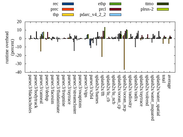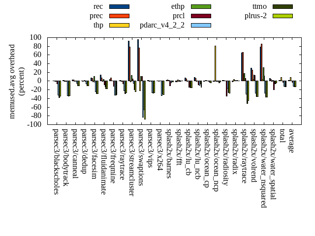 ======= Summary ======= runtime orig rec (overhead) prec (overhead) thp (overhead) ethp (overhead) prcl (overhead) pdarc_v4_2_2 (overhead) ttmo (overhead) plrus-2 (overhead) parsec3/blackscholes 139.852 139.997 (0.10) 139.802 (-0.04) 139.110 (-0.53) 139.630 (-0.16) 145.196 (3.82) 140.548 (0.50) 139.680 (-0.12) 140.094 (0.17) parsec3/bodytrack 125.923 127.355 (1.14) 126.302 (0.30) 125.674 (-0.20) 125.433 (-0.39) 136.460 (8.37) 126.355 (0.34) 125.336 (-0.47) 125.525 (-0.32) parsec3/canneal 216.601 217.369 (0.35) 222.503 (2.72) 184.318 (-14.90) 228.373 (5.43) 225.280 (4.01) 232.891 (7.52) 223.238 (3.06) 234.355 (8.20) parsec3/dedup 18.251 18.391 (0.77) 18.135 (-0.63) 18.095 (-0.85) 18.292 (0.22) 19.697 (7.93) 18.430 (0.98) 18.499 (1.36) 18.584 (1.82) parsec3/facesim 347.364 348.435 (0.31) 344.203 (-0.91) 340.955 (-1.85) 354.005 (1.91) 354.861 (2.16) 353.361 (1.73) 350.285 (0.84) 351.244 (1.12) parsec3/fluidanimate 339.488 338.763 (-0.21) 346.510 (2.07) 327.927 (-3.41) 338.635 (-0.25) 342.491 (0.88) 338.847 (-0.19) 339.383 (-0.03) 337.898 (-0.47) parsec3/freqmine 435.549 436.116 (0.13) 435.603 (0.01) 436.093 (0.12) 436.575 (0.24) 440.142 (1.05) 437.284 (0.40) 436.516 (0.22) 437.725 (0.50) parsec3/raytrace 183.184 184.680 (0.82) 184.742 (0.85) 185.324 (1.17) 185.323 (1.17) 193.906 (5.85) 188.154 (2.71) 187.914 (2.58) 186.433 (1.77) parsec3/streamcluster 697.980 690.270 (-1.10) 672.974 (-3.58) 599.223 (-14.15) 724.192 (3.76) 713.408 (2.21) 701.120 (0.45) 721.885 (3.42) 686.774 (-1.61) parsec3/swaptions 222.076 220.172 (-0.86) 221.881 (-0.09) 221.638 (-0.20) 222.678 (0.27) 223.273 (0.54) 222.569 (0.22) 221.836 (-0.11) 222.065 (-0.01) parsec3/vips 88.320 88.398 (0.09) 87.891 (-0.49) 87.740 (-0.66) 88.827 (0.57) 89.355 (1.17) 91.791 (3.93) 92.740 (5.00) 92.846 (5.12) parsec3/x264 119.791 110.606 (-7.67) 115.967 (-3.19) 106.627 (-10.99) 116.717 (-2.57) 118.271 (-1.27) 117.798 (-1.66) 113.801 (-5.00) 120.849 (0.88) splash2x/barnes 129.416 130.834 (1.10) 131.100 (1.30) 119.192 (-7.90) 132.090 (2.07) 139.609 (7.88) 132.602 (2.46) 131.851 (1.88) 132.803 (2.62) splash2x/fft 60.704 61.641 (1.54) 62.238 (2.53) 47.790 (-21.27) 61.944 (2.04) 66.246 (9.13) 62.166 (2.41) 66.338 (9.28) 68.934 (13.56) splash2x/lu_cb 133.102 132.962 (-0.11) 133.746 (0.48) 133.101 (-0.00) 133.418 (0.24) 135.998 (2.18) 133.454 (0.26) 133.854 (0.56) 133.637 (0.40) splash2x/lu_ncb 151.038 153.911 (1.90) 152.238 (0.79) 150.359 (-0.45) 152.671 (1.08) 152.902 (1.23) 153.310 (1.50) 152.769 (1.15) 154.672 (2.41) splash2x/ocean_cp 81.141 82.485 (1.66) 85.443 (5.30) 78.879 (-2.79) 86.381 (6.46) 85.667 (5.58) 83.947 (3.46) 88.350 (8.88) 84.896 (4.63) splash2x/ocean_ncp 160.170 164.285 (2.57) 166.858 (4.18) 101.737 (-36.48) 170.102 (6.20) 175.055 (9.29) 172.924 (7.96) 177.383 (10.75) 176.689 (10.31) splash2x/radiosity 142.016 142.435 (0.30) 143.204 (0.84) 142.076 (0.04) 142.564 (0.39) 149.565 (5.32) 144.162 (1.51) 144.891 (2.02) 145.732 (2.62) splash2x/radix 51.173 51.174 (0.00) 51.514 (0.67) 46.164 (-9.79) 52.385 (2.37) 52.856 (3.29) 54.617 (6.73) 53.861 (5.25) 55.894 (9.23) splash2x/raytrace 134.596 134.732 (0.10) 135.701 (0.82) 132.145 (-1.82) 136.585 (1.48) 140.207 (4.17) 133.785 (-0.60) 137.523 (2.17) 134.992 (0.29) splash2x/volrend 120.197 120.798 (0.50) 120.520 (0.27) 120.088 (-0.09) 121.724 (1.27) 126.398 (5.16) 120.413 (0.18) 120.513 (0.26) 121.203 (0.84) splash2x/water_nsquared 371.662 372.700 (0.28) 373.245 (0.43) 355.509 (-4.35) 374.949 (0.88) 392.411 (5.58) 376.484 (1.30) 383.964 (3.31) 384.894 (3.56) splash2x/water_spatial 133.280 134.258 (0.73) 134.912 (1.22) 135.187 (1.43) 134.815 (1.15) 145.218 (8.96) 137.016 (2.80) 135.384 (1.58) 135.957 (2.01) total 4602.880 4602.760 (-0.00) 4607.220 (0.09) 4334.950 (-5.82) 4678.300 (1.64) 4764.510 (3.51) 4674.020 (1.55) 4697.770 (2.06) 4684.690 (1.78) average 191.787 191.782 (0.18) 191.968 (0.66) 180.623 (-5.41) 194.929 (1.49) 198.521 (4.35) 194.751 (1.95) 195.740 (2.41) 195.195 (2.90) kdamond_cpu_util orig rec (overhead) prec (overhead) thp (overhead) ethp (overhead) prcl (overhead) pdarc_v4_2_2 (overhead) ttmo (overhead) plrus-2 (overhead) parsec3/blackscholes 0.000 0.000 (0.00) 0.000 (0.00) 0.000 (0.00) 0.000 (0.00) 0.000 (0.00) 0.000 (0.00) 0.000 (0.00) 0.000 (0.00) parsec3/bodytrack 0.000 0.000 (0.00) 0.000 (0.00) 0.000 (0.00) 0.000 (0.00) 0.000 (0.00) 0.000 (0.00) 0.000 (0.00) 0.000 (0.00) parsec3/canneal 0.000 0.000 (0.00) 0.000 (0.00) 0.000 (0.00) 0.000 (0.00) 0.000 (0.00) 0.000 (0.00) 0.000 (0.00) 0.000 (0.00) parsec3/dedup 0.000 0.000 (0.00) 0.000 (0.00) 0.000 (0.00) 0.000 (0.00) 0.000 (0.00) 0.000 (0.00) 0.000 (0.00) 0.000 (0.00) parsec3/facesim 0.000 0.000 (0.00) 0.000 (0.00) 0.000 (0.00) 0.000 (0.00) 0.000 (0.00) 0.000 (0.00) 0.000 (0.00) 0.000 (0.00) parsec3/fluidanimate 0.000 0.000 (0.00) 0.000 (0.00) 0.000 (0.00) 0.000 (0.00) 0.000 (0.00) 0.000 (0.00) 0.000 (0.00) 0.000 (0.00) parsec3/freqmine 0.000 0.000 (0.00) 0.000 (0.00) 0.000 (0.00) 0.000 (0.00) 0.000 (0.00) 0.000 (0.00) 0.000 (0.00) 0.000 (0.00) parsec3/raytrace 0.000 0.000 (0.00) 0.000 (0.00) 0.000 (0.00) 0.000 (0.00) 0.000 (0.00) 0.000 (0.00) 0.000 (0.00) 0.000 (0.00) parsec3/streamcluster 0.000 0.000 (0.00) 0.000 (0.00) 0.000 (0.00) 0.000 (0.00) 0.000 (0.00) 0.000 (0.00) 0.000 (0.00) 0.000 (0.00) parsec3/swaptions 0.000 0.000 (0.00) 0.000 (0.00) 0.000 (0.00) 0.000 (0.00) 0.000 (0.00) 0.000 (0.00) 0.000 (0.00) 0.000 (0.00) parsec3/vips 0.000 0.000 (0.00) 0.000 (0.00) 0.000 (0.00) 0.000 (0.00) 0.000 (0.00) 0.000 (0.00) 0.000 (0.00) 0.000 (0.00) parsec3/x264 0.000 0.000 (0.00) 0.000 (0.00) 0.000 (0.00) 0.000 (0.00) 0.000 (0.00) 0.000 (0.00) 0.000 (0.00) 0.000 (0.00) splash2x/barnes 0.000 0.000 (0.00) 0.000 (0.00) 0.000 (0.00) 0.000 (0.00) 0.000 (0.00) 0.000 (0.00) 0.000 (0.00) 0.000 (0.00) splash2x/fft 0.000 0.000 (0.00) 0.000 (0.00) 0.000 (0.00) 0.000 (0.00) 0.000 (0.00) 0.000 (0.00) 0.000 (0.00) 0.000 (0.00) splash2x/lu_cb 0.000 0.000 (0.00) 0.000 (0.00) 0.000 (0.00) 0.000 (0.00) 0.000 (0.00) 0.000 (0.00) 0.000 (0