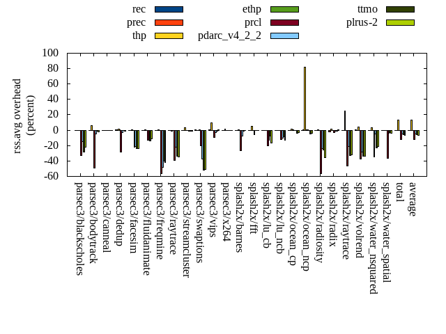 ======= Summary ======= runtime orig rec (overhead) prec (overhead) thp (overhead) ethp (overhead) prcl (overhead) pdarc_v4_2_2 (overhead) ttmo (overhead) plrus-2 (overhead) parsec3/blackscholes 139.143 140.013 (0.63) 139.766 (0.45) 139.343 (0.14) 140.282 (0.82) 145.030 (4.23) 139.738 (0.43) 140.298 (0.83) 140.284 (0.82) parsec3/bodytrack 124.500 125.250 (0.60) 125.678 (0.95) 124.805 (0.24) 125.518 (0.82) 137.402 (10.36) 125.903 (1.13) 125.758 (1.01) 125.493 (0.80) parsec3/canneal 214.849 224.454 (4.47) 222.389 (3.51) 188.207 (-12.40) 225.751 (5.07) 223.621 (4.08) 230.099 (7.10) 230.674 (7.37) 229.056 (6.61) parsec3/dedup 18.323 18.338 (0.08) 18.500 (0.96) 18.338 (0.08) 18.379 (0.30) 19.713 (7.58) 18.318 (-0.03) 18.372 (0.26) 18.525 (1.10) parsec3/facesim 346.677 350.405 (1.08) 350.454 (1.09) 342.604 (-1.17) 350.980 (1.24) 358.438 (3.39) 350.938 (1.23) 348.553 (0.54) 352.672 (1.73) parsec3/fluidanimate 342.137 339.084 (-0.89) 343.048 (0.27) 327.480 (-4.28) 338.992 (-0.92) 342.017 (-0.04) 338.900 (-0.95) 339.929 (-0.65) 339.016 (-0.91) parsec3/freqmine 435.728 437.625 (0.44) 437.924 (0.50) 435.604 (-0.03) 437.148 (0.33) 443.051 (1.68) 437.519 (0.41) 436.298 (0.13) 438.970 (0.74) parsec3/raytrace 183.349 185.132 (0.97) 183.393 (0.02) 185.511 (1.18) 184.809 (0.80) 197.658 (7.80) 187.124 (2.06) 187.251 (2.13) 188.313 (2.71) parsec3/streamcluster 679.898 713.655 (4.96) 725.490 (6.71) 606.686 (-10.77) 726.151 (6.80) 721.253 (6.08) 704.226 (3.58) 711.730 (4.68) 701.516 (3.18) parsec3/swaptions 222.095 222.870 (0.35) 221.323 (-0.35) 221.747 (-0.16) 221.940 (-0.07) 223.885 (0.81) 221.627 (-0.21) 220.692 (-0.63) 220.557 (-0.69) parsec3/vips 88.044 88.941 (1.02) 88.365 (0.36) 88.242 (0.23) 88.811 (0.87) 90.099 (2.33) 92.502 (5.06) 94.572 (7.41) 94.329 (7.14) parsec3/x264 120.812 124.405 (2.97) 114.268 (-5.42) 117.041 (-3.12) 112.127 (-7.19) 118.172 (-2.19) 123.097 (1.89) 117.948 (-2.37) 121.925 (0.92) splash2x/barnes 129.843 131.138 (1.00) 135.627 (4.46) 119.452 (-8.00) 132.001 (1.66) 141.405 (8.91) 132.836 (2.31) 132.451 (2.01) 132.618 (2.14) splash2x/fft 62.148 61.348 (-1.29) 62.511 (0.58) 47.651 (-23.33) 62.596 (0.72) 64.617 (3.97) 62.556 (0.66) 70.831 (13.97) 66.892 (7.63) splash2x/lu_cb 133.368 134.003 (0.48) 133.242 (-0.09) 133.930 (0.42) 132.992 (-0.28) 137.273 (2.93) 133.304 (-0.05) 133.189 (-0.13) 134.103 (0.55) splash2x/lu_ncb 150.999 153.363 (1.57) 152.744 (1.16) 151.615 (0.41) 151.990 (0.66) 153.945 (1.95) 152.142 (0.76) 151.529 (0.35) 152.664 (1.10) splash2x/ocean_cp 82.330 82.689 (0.44) 83.233 (1.10) 81.733 (-0.73) 83.032 (0.85) 83.346 (1.23) 84.698 (2.88) 86.776 (5.40) 84.220 (2.30) splash2x/ocean_ncp 163.088 163.612 (0.32) 167.974 (3.00) 102.164 (-37.36) 170.048 (4.27) 170.083 (4.29) 170.103 (4.30) 178.239 (9.29) 177.510 (8.84) splash2x/radiosity 143.091 142.667 (-0.30) 142.426 (-0.46) 143.682 (0.41) 142.596 (-0.35) 150.174 (4.95) 144.251 (0.81) 145.025 (1.35) 145.864 (1.94) splash2x/radix 52.527 51.844 (-1.30) 51.638 (-1.69) 45.834 (-12.74) 52.962 (0.83) 51.502 (-1.95) 53.767 (2.36) 55.656 (5.96) 57.147 (8.80) splash2x/raytrace 134.494 135.704 (0.90) 136.142 (1.23) 132.408 (-1.55) 134.524 (0.02) 142.638 (6.06) 135.110 (0.46) 137.966 (2.58) 136.511 (1.50) splash2x/volrend 120.356 120.781 (0.35) 121.203 (0.70) 119.972 (-0.32) 120.882 (0.44) 127.594 (6.01) 120.900 (0.45) 120.677 (0.27) 120.808 (0.38) splash2x/water_nsquared 371.818 374.278 (0.66) 373.421 (0.43) 352.523 (-5.19) 371.967 (0.04) 400.022 (7.59) 378.022 (1.67) 382.358 (2.83) 384.439 (3.39) splash2x/water_spatial 134.763 135.386 (0.46) 135.685 (0.68) 134.507 (-0.19) 134.341 (-0.31) 146.253 (8.53) 135.985 (0.91) 135.579 (0.61) 137.134 (1.76) total 4594.390 4656.970 (1.36) 4666.430 (1.57) 4361.070 (-5.08) 4660.820 (1.45) 4789.180 (4.24) 4673.670 (1.73) 4702.370 (2.35) 4700.570 (2.31) average 191.433 194.040 (0.83) 194.435 (0.84) 181.711 (-4.93) 194.201 (0.73) 199.549 (4.19) 194.736 (1.63) 195.932 (2.72) 195.857 (2.69) kdamond_cpu_util orig rec (overhead) prec (overhead) thp (overhead) ethp (overhead) prcl (overhead) pdarc_v4_2_2 (overhead) ttmo (overhead) plrus-2 (overhead) parsec3/blackscholes 0.000 0.000 (0.00) 0.000 (0.00) 0.000 (0.00) 0.000 (0.00) 0.000 (0.00) 0.000 (0.00) 0.000 (0.00) 0.000 (0.00) parsec3/bodytrack 0.000 0.000 (0.00) 0.000 (0.00) 0.000 (0.00) 0.000 (0.00) 0.000 (0.00) 0.000 (0.00) 0.000 (0.00) 0.000 (0.00) parsec3/canneal 0.000 0.000 (0.00) 0.000 (0.00) 0.000 (0.00) 0.000 (0.00) 0.000 (0.00) 0.000 (0.00) 0.000 (0.00) 0.000 (0.00) parsec3/dedup 0.000 0.000 (0.00) 0.000 (0.00) 0.000 (0.00) 0.000 (0.00) 0.000 (0.00) 0.000 (0.00) 0.000 (0.00) 0.000 (0.00) parsec3/facesim 0.000 0.000 (0.00) 0.000 (0.00) 0.000 (0.00) 0.000 (0.00) 0.000 (0.00) 0.000 (0.00) 0.000 (0.00) 0.000 (0.00) parsec3/fluidanimate 0.000 0.000 (0.00) 0.000 (0.00) 0.000 (0.00) 0.000 (0.00) 0.000 (0.00) 0.000 (0.00) 0.000 (0.00) 0.000 (0.00) parsec3/freqmine 0.000 0.000 (0.00) 0.000 (0.00) 0.000 (0.00) 0.000 (0.00) 0.000 (0.00) 0.000 (0.00) 0.000 (0.00) 0.000 (0.00) parsec3/raytrace 0.000 0.000 (0.00) 0.000 (0.00) 0.000 (0.00) 0.000 (0.00) 0.000 (0.00) 0.000 (0.00) 0.000 (0.00) 0.000 (0.00) parsec3/streamcluster 0.000 0.000 (0.00) 0.000 (0.00) 0.000 (0.00) 0.000 (0.00) 0.000 (0.00) 0.000 (0.00) 0.000 (0.00) 0.000 (0.00) parsec3/swaptions 0.000 0.000 (0.00) 0.000 (0.00) 0.000 (0.00) 0.000 (0.00) 0.000 (0.00) 0.000 (0.00) 0.000 (0.00) 0.000 (0.00) parsec3/vips 0.000 0.000 (0.00) 0.000 (0.00) 0.000 (0.00) 0.000 (0.00) 0.000 (0.00) 0.000 (0.00) 0.000 (0.00) 0.000 (0.00) parsec3/x264 0.000 0.000 (0.00) 0.000 (0.00) 0.000 (0.00) 0.000 (0.00) 0.000 (0.00) 0.000 (0.00) 0.000 (0.00) 0.000 (0.00) splash2x/barnes 0.000 0.000 (0.00) 0.000 (0.00) 0.000 (0.00) 0.000 (0.00) 0.000 (0.00) 0.000 (0.00) 0.000 (0.00) 0.000 (0.00) splash2x/fft 0.000 0.000 (0.00) 0.000 (0.00) 0.000 (0.00) 0.000 (0.00) 0.000 (0.00) 0.000 (0.00) 0.000 (0.00) 0.000 (0.00) splash2x/lu_cb 0.000 0.000 (0.00) 0.000 (0.00) 0.000 (0.00) 0.000 (0.00) 0.000 (0.00) 0.000 (0.00) 0.000 (0.00) 0.