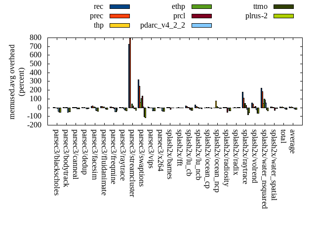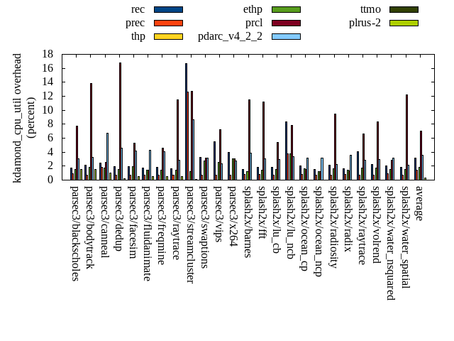 ======= Summary ======= runtime orig rec (overhead) prec (overhead) thp (overhead) ethp (overhead) prcl (overhead) pdarc_v4_2_2 (overhead) ttmo (overhead) plrus-2 (overhead) parsec3/blackscholes 139.096 140.104 (0.72) 139.433 (0.24) 138.816 (-0.20) 139.519 (0.30) 148.027 (6.42) 140.558 (1.05) 139.939 (0.61) 140.430 (0.96) parsec3/bodytrack 124.230 125.727 (1.20) 124.800 (0.46) 124.557 (0.26) 125.267 (0.83) 142.035 (14.33) 126.355 (1.71) 125.522 (1.04) 126.911 (2.16) parsec3/canneal 219.910 235.456 (7.07) 227.840 (3.61) 190.200 (-13.51) 221.194 (0.58) 228.145 (3.74) 240.412 (9.32) 232.121 (5.55) 235.422 (7.05) parsec3/dedup 18.194 18.334 (0.77) 18.452 (1.42) 17.961 (-1.28) 18.435 (1.32) 20.282 (11.47) 18.499 (1.67) 18.301 (0.58) 18.437 (1.33) parsec3/facesim 351.989 351.666 (-0.09) 346.991 (-1.42) 341.838 (-2.88) 346.459 (-1.57) 364.453 (3.54) 349.789 (-0.63) 349.134 (-0.81) 351.733 (-0.07) parsec3/fluidanimate 337.694 340.263 (0.76) 339.709 (0.60) 328.234 (-2.80) 336.824 (-0.26) 344.394 (1.98) 340.626 (0.87) 338.217 (0.15) 340.643 (0.87) parsec3/freqmine 435.528 437.113 (0.36) 435.877 (0.08) 435.642 (0.03) 437.873 (0.54) 448.305 (2.93) 437.913 (0.55) 439.019 (0.80) 439.219 (0.85) parsec3/raytrace 186.060 184.460 (-0.86) 184.915 (-0.62) 184.325 (-0.93) 186.075 (0.01) 202.633 (8.91) 188.936 (1.55) 184.993 (-0.57) 190.612 (2.45) parsec3/streamcluster 702.577 707.459 (0.69) 671.349 (-4.44) 614.982 (-12.47) 614.659 (-12.51) 710.574 (1.14) 722.486 (2.83) 700.875 (-0.24) 689.139 (-1.91) parsec3/swaptions 221.035 223.138 (0.95) 220.909 (-0.06) 222.155 (0.51) 222.452 (0.64) 224.229 (1.45) 223.022 (0.90) 221.700 (0.30) 221.724 (0.31) parsec3/vips 87.461 89.000 (1.76) 87.907 (0.51) 87.479 (0.02) 88.721 (1.44) 91.691 (4.84) 93.273 (6.65) 96.136 (9.92) 96.009 (9.77) parsec3/x264 115.409 118.965 (3.08) 113.372 (-1.77) 113.780 (-1.41) 109.763 (-4.89) 110.399 (-4.34) 117.622 (1.92) 125.316 (8.58) 111.844 (-3.09) splash2x/barnes 130.582 131.818 (0.95) 131.737 (0.88) 120.241 (-7.92) 131.303 (0.55) 146.808 (12.43) 133.247 (2.04) 133.385 (2.15) 134.226 (2.79) splash2x/fft 62.153 62.951 (1.28) 62.944 (1.27) 48.744 (-21.57) 62.051 (-0.16) 65.725 (5.75) 64.574 (3.89) 70.032 (12.68) 71.983 (15.82) splash2x/lu_cb 132.914 133.897 (0.74) 133.221 (0.23) 133.759 (0.64) 134.606 (1.27) 139.211 (4.74) 134.000 (0.82) 135.715 (2.11) 134.557 (1.24) splash2x/lu_ncb 150.825 152.361 (1.02) 153.356 (1.68) 152.933 (1.40) 152.916 (1.39) 154.496 (2.43) 151.591 (0.51) 153.866 (2.02) 153.617 (1.85) splash2x/ocean_cp 85.077 84.092 (-1.16) 83.946 (-1.33) 81.886 (-3.75) 82.795 (-2.68) 84.079 (-1.17) 85.155 (0.09) 82.928 (-2.53) 87.398 (2.73) splash2x/ocean_ncp 159.111 169.472 (6.51) 168.810 (6.10) 105.052 (-33.98) 154.313 (-3.02) 175.093 (10.04) 174.161 (9.46) 187.545 (17.87) 186.205 (17.03) splash2x/radiosity 142.912 143.009 (0.07) 142.877 (-0.02) 141.853 (-0.74) 142.807 (-0.07) 151.804 (6.22) 144.178 (0.89) 145.515 (1.82) 145.089 (1.52) splash2x/radix 52.073 52.542 (0.90) 52.666 (1.14) 47.117 (-9.52) 51.554 (-1.00) 53.057 (1.89) 54.893 (5.42) 58.108 (11.59) 59.143 (13.58) splash2x/raytrace 134.410 135.748 (1.00) 135.389 (0.73) 132.237 (-1.62) 135.191 (0.58) 144.837 (7.76) 134.438 (0.02) 138.732 (3.22) 139.316 (3.65) splash2x/volrend 119.603 120.721 (0.94) 120.374 (0.64) 119.649 (0.04) 120.424 (0.69) 127.057 (6.23) 120.873 (1.06) 121.097 (1.25) 121.217 (1.35) splash2x/water_nsquared 369.804 372.843 (0.82) 373.871 (1.10) 353.361 (-4.45) 365.365 (-1.20) 416.432 (12.61) 375.687 (1.59) 386.639 (4.55) 396.702 (7.27) splash2x/water_spatial 134.041 135.392 (1.01) 133.931 (-0.08) 134.546 (0.38) 135.156 (0.83) 149.669 (11.66) 136.139 (1.57) 135.378 (1.00) 137.705 (2.73) total 4612.660 4666.520 (1.17) 4604.700 (-0.17) 4371.350 (-5.23) 4515.710 (-2.10) 4843.450 (5.00) 4708.420 (2.08) 4720.220 (2.33) 4729.300 (2.53) average 192.194 194.438 (1.27) 191.862 (0.46) 182.140 (-4.82) 188.155 (-0.68) 201.810 (5.71) 196.184 (2.32) 196.676 (3.48) 197.054 (3.84) kdamond_cpu_util orig rec (overhead) prec (overhead) thp (overhead) ethp (overhead) prcl (overhead) pdarc_v4_2_2 (overhead) ttmo (overhead) plrus-2 (overhead) parsec3/blackscholes 0.000 1.721 (1.72) 0.932 (0.93) 0.000 (0.00) 1.511 (1.51) 7.680 (7.68) 3.016 (3.02) 0.000 (0.00) 1.536 (1.54) parsec3/bodytrack 0.000 2.160 (2.16) 0.705 (0.70) 0.000 (0.00) 1.802 (1.80) 13.873 (13.87) 3.218 (3.22) 0.000 (0.00) 1.522 (1.52) parsec3/canneal 0.000 2.443 (2.44) 1.835 (1.83) 0.000 (0.00) 1.768 (1.77) 2.564 (2.56) 6.687 (6.69) 0.000 (0.00) 1.054 (1.05) parsec3/dedup 0.000 1.934 (1.93) 0.717 (0.72) 0.000 (0.00) 1.541 (1.54) 16.735 (16.74) 4.580 (4.58) 0.000 (0.00) 0.197 (0.20) parsec3/facesim 0.000 1.968 (1.97) 0.714 (0.71) 0.000 (0.00) 1.949 (1.95) 5.293 (5.29) 4.167 (4.17) 0.000 (0.00) 0.553 (0.55) parsec3/fluidanimate 0.000 1.755 (1.76) 0.716 (0.72) 0.000 (0.00) 1.377 (1.38) 1.457 (1.46) 4.274 (4.27) 0.000 (0.00) 0.552 (0.55) parsec3/freqmine 0.000 1.866 (1.87) 0.717 (0.72) 0.000 (0.00) 1.394 (1.39) 4.563 (4.56) 4.031 (4.03) 0.000 (0.00) 0.548 (0.55) parsec3/raytrace 0.000 1.672 (1.67) 0.730 (0.73) 0.000 (0.00) 1.418 (1.42) 11.506 (11.51) 2.859 (2.86) 0.000 (0.00) 0.533 (0.53) parsec3/streamcluster 0.000 16.659 (16.66) 12.602 (12.60) 0.000 (0.00) 1.249 (1.25) 12.708 (12.71) 8.605 (8.60) 0.000 (0.00) 0.073 (0.07) parsec3/swaptions 0.000 3.294 (3.29) 0.696 (0.70) 0.000 (0.00) 2.715 (2.71) 3.193 (3.19) 3.112 (3.11) 0.000 (0.00) 0.000 (0.00) parsec3/vips 0.000 5.538 (5.54) 0.685 (0.69) 0.000 (0.00) 2.540 (2.54) 7.173 (7.17) 2.376 (2.38) 0.000 (0.00) 0.000 (0.00) parsec3/x264 0.000 4.001 (4.00) 0.703 (0.70) 0.000 (0.00) 3.098 (3.10) 3.030 (3.03) 2.708 (2.71) 0.000 (0.00) 0.000 (0.00) splash2x/barnes 0.000 1.559 (1.56) 0.846 (0.85) 0.000 (0.00) 1.265 (1.27) 11.478 (11.48) 3.850 (3.85) 0.000 (0.00) 0.000 (0.00) splash2x/fft 0.000 1.818 (1.82) 0.814 (0.81) 0.000 (0.00) 1.467 (1.47) 11.136 (11.14) 3.038 (3.04) 0.000 (0.00) 0.000 (0.00) splash2x/lu_cb 0.000 1.867 (1.87) 0.724 (0.72) 0.000 (0.00) 1.509 (1.51) 5.350 (5.