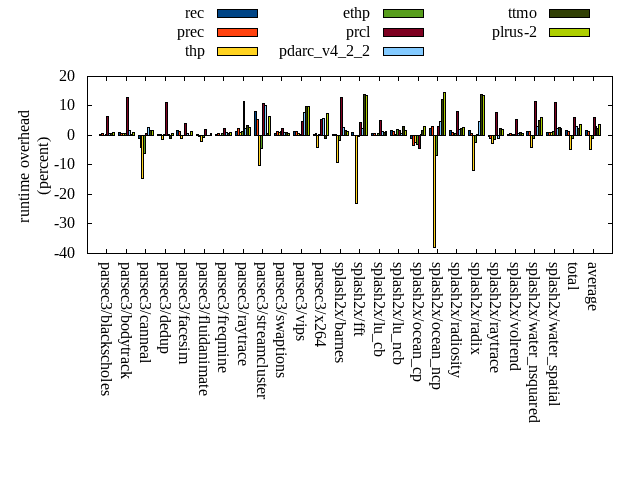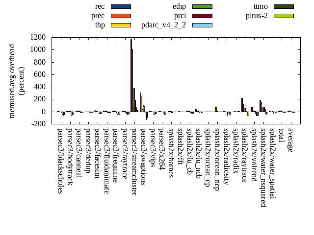 ======= Summary ======= runtime orig rec (overhead) prec (overhead) thp (overhead) ethp (overhead) prcl (overhead) pdarc_v4_2_2 (overhead) ttmo (overhead) plrus-2 (overhead) parsec3/blackscholes 139.526 139.777 (0.18) 140.278 (0.54) 139.477 (-0.03) 139.896 (0.26) 148.678 (6.56) 140.480 (0.68) 140.430 (0.65) 140.729 (0.86) parsec3/bodytrack 124.693 126.128 (1.15) 125.609 (0.74) 125.367 (0.54) 125.426 (0.59) 140.673 (12.82) 126.733 (1.64) 125.055 (0.29) 126.048 (1.09) parsec3/canneal 228.325 226.269 (-0.90) 218.812 (-4.17) 194.840 (-14.67) 214.507 (-6.05) 229.661 (0.59) 234.690 (2.79) 232.075 (1.64) 232.564 (1.86) parsec3/dedup 18.380 18.425 (0.24) 18.440 (0.32) 18.129 (-1.37) 18.421 (0.22) 20.436 (11.18) 18.447 (0.36) 18.195 (-1.01) 18.495 (0.62) parsec3/facesim 347.895 353.493 (1.61) 352.358 (1.28) 344.002 (-1.12) 347.593 (-0.09) 362.528 (4.21) 350.009 (0.61) 348.484 (0.17) 352.742 (1.39) parsec3/fluidanimate 339.023 339.642 (0.18) 337.969 (-0.31) 332.698 (-1.87) 336.501 (-0.74) 346.414 (2.18) 339.397 (0.11) 338.566 (-0.13) 341.280 (0.67) parsec3/freqmine 435.821 437.746 (0.44) 438.070 (0.52) 436.295 (0.11) 438.202 (0.55) 446.537 (2.46) 440.299 (1.03) 439.391 (0.82) 439.566 (0.86) parsec3/raytrace 183.189 185.730 (1.39) 187.296 (2.24) 185.087 (1.04) 185.491 (1.26) 204.607 (11.69) 187.844 (2.54) 189.466 (3.43) 188.233 (2.75) parsec3/streamcluster 669.853 723.351 (7.99) 705.270 (5.29) 600.605 (-10.34) 639.591 (-4.52) 741.459 (10.69) 737.862 (10.15) 673.461 (0.54) 712.651 (6.39) parsec3/swaptions 220.161 221.670 (0.69) 223.188 (1.38) 222.711 (1.16) 222.890 (1.24) 225.388 (2.37) 222.615 (1.11) 222.407 (1.02) 221.686 (0.69) parsec3/vips 87.776 88.969 (1.36) 88.993 (1.39) 88.281 (0.57) 88.205 (0.49) 92.047 (4.87) 94.517 (7.68) 96.284 (9.69) 96.541 (9.99) parsec3/x264 116.795 117.000 (0.18) 117.437 (0.55) 111.995 (-4.11) 117.112 (0.27) 123.145 (5.44) 123.581 (5.81) 115.449 (-1.15) 125.531 (7.48) splash2x/barnes 131.259 131.546 (0.22) 131.599 (0.26) 119.238 (-9.16) 129.217 (-1.56) 148.020 (12.77) 134.671 (2.60) 133.323 (1.57) 133.229 (1.50) splash2x/fft 62.935 63.502 (0.90) 63.034 (0.16) 48.363 (-23.15) 62.765 (-0.27) 65.793 (4.54) 64.344 (2.24) 71.738 (13.99) 71.383 (13.42) splash2x/lu_cb 132.681 133.642 (0.72) 133.710 (0.78) 132.839 (0.12) 133.560 (0.66) 139.397 (5.06) 134.354 (1.26) 134.229 (1.17) 134.576 (1.43) splash2x/lu_ncb 150.685 153.189 (1.66) 152.634 (1.29) 151.376 (0.46) 153.495 (1.87) 153.092 (1.60) 151.704 (0.68) 155.142 (2.96) 153.093 (1.60) splash2x/ocean_cp 86.517 85.752 (-0.88) 83.504 (-3.48) 84.482 (-2.35) 83.889 (-3.04) 82.692 (-4.42) 86.737 (0.25) 87.844 (1.53) 89.111 (3.00) splash2x/ocean_ncp 166.429 170.114 (2.21) 171.602 (3.11) 103.481 (-37.82) 155.067 (-6.83) 171.293 (2.92) 174.156 (4.64) 186.834 (12.26) 190.884 (14.69) splash2x/radiosity 141.781 143.983 (1.55) 143.312 (1.08) 141.757 (-0.02) 142.825 (0.74) 153.442 (8.22) 144.601 (1.99) 145.329 (2.50) 145.728 (2.78) splash2x/radix 52.341 53.152 (1.55) 52.704 (0.69) 46.214 (-11.71) 51.167 (-2.24) 52.516 (0.33) 54.837 (4.77) 59.616 (13.90) 59.414 (13.51) splash2x/raytrace 136.491 136.081 (-0.30) 135.140 (-0.99) 132.898 (-2.63) 134.639 (-1.36) 147.014 (7.71) 134.995 (-1.10) 139.544 (2.24) 139.045 (1.87) splash2x/volrend 120.076 120.556 (0.40) 120.804 (0.61) 120.363 (0.24) 120.281 (0.17) 126.498 (5.35) 120.950 (0.73) 121.353 (1.06) 120.862 (0.66) splash2x/water_nsquared 370.344 375.147 (1.30) 375.703 (1.45) 355.514 (-4.00) 366.094 (-1.15) 412.631 (11.42) 381.786 (3.09) 388.592 (4.93) 392.525 (5.99) splash2x/water_spatial 133.483 134.906 (1.07) 134.639 (0.87) 135.012 (1.15) 135.316 (1.37) 148.453 (11.21) 136.874 (2.54) 137.013 (2.64) 136.623 (2.35) total 4596.460 4679.770 (1.81) 4652.090 (1.21) 4371.030 (-4.90) 4542.160 (-1.18) 4882.420 (6.22) 4736.480 (3.05) 4699.810 (2.25) 4762.530 (3.61) average 191.519 194.990 (1.04) 193.837 (0.65) 182.126 (-4.96) 189.257 (-0.76) 203.434 (5.91) 197.353 (2.43) 195.825 (3.20) 198.439 (4.06) kdamond_cpu_util orig rec (overhead) prec (overhead) thp (overhead) ethp (overhead) prcl (overhead) pdarc_v4_2_2 (overhead) ttmo (overhead) plrus-2 (overhead) parsec3/blackscholes 0.000 1.749 (1.75) 0.934 (0.93) 0.000 (0.00) 1.367 (1.37) 7.854 (7.85) 2.853 (2.85) 0.000 (0.00) 1.574 (1.57) parsec3/bodytrack 0.000 2.192 (2.19) 0.701 (0.70) 0.000 (0.00) 1.764 (1.76) 13.835 (13.84) 3.540 (3.54) 0.000 (0.00) 1.484 (1.48) parsec3/canneal 0.000 2.419 (2.42) 1.208 (1.21) 0.000 (0.00) 1.834 (1.83) 2.529 (2.53) 7.309 (7.31) 0.000 (0.00) 2.926 (2.93) parsec3/dedup 0.000 1.759 (1.76) 0.684 (0.68) 0.000 (0.00) 1.567 (1.57) 18.847 (18.85) 2.466 (2.47) 0.000 (0.00) 0.694 (0.69) parsec3/facesim 0.000 1.963 (1.96) 0.720 (0.72) 0.000 (0.00) 2.035 (2.04) 5.263 (5.26) 4.264 (4.26) 0.000 (0.00) 1.046 (1.05) parsec3/fluidanimate 0.000 1.758 (1.76) 0.731 (0.73) 0.000 (0.00) 1.392 (1.39) 2.228 (2.23) 4.170 (4.17) 0.000 (0.00) 1.082 (1.08) parsec3/freqmine 0.000 1.795 (1.79) 0.717 (0.72) 0.000 (0.00) 1.413 (1.41) 4.806 (4.81) 3.803 (3.80) 0.000 (0.00) 1.093 (1.09) parsec3/raytrace 0.000 1.671 (1.67) 0.737 (0.74) 0.000 (0.00) 1.371 (1.37) 11.529 (11.53) 3.086 (3.09) 0.000 (0.00) 1.055 (1.06) parsec3/streamcluster 0.000 16.448 (16.45) 9.706 (9.71) 0.000 (0.00) 1.336 (1.34) 11.723 (11.72) 8.074 (8.07) 0.000 (0.00) 1.210 (1.21) parsec3/swaptions 0.000 3.370 (3.37) 0.688 (0.69) 0.000 (0.00) 2.544 (2.54) 3.087 (3.09) 4.102 (4.10) 0.000 (0.00) 0.527 (0.53) parsec3/vips 0.000 5.591 (5.59) 0.683 (0.68) 0.000 (0.00) 2.911 (2.91) 6.924 (6.92) 3.182 (3.18) 0.000 (0.00) 0.516 (0.52) parsec3/x264 0.000 4.017 (4.02) 0.712 (0.71) 0.000 (0.00) 3.053 (3.05) 3.181 (3.18) 2.870 (2.87) 0.000 (0.00) 0.517 (0.52) splash2x/barnes 0.000 1.605 (1.61) 0.812 (0.81) 0.000 (0.00) 1.296 (1.30) 12.355 (12.35) 5.592 (5.59) 0.000 (0.00) 0.546 (0.55) splash2x/fft 0.000 1.832 (1.83) 0.823 (0.82) 0.000 (0.00) 1.497 (1.50) 12.217 (12.22) 4.071 (4.07) 0.000 (0.00) 0.447 (0.45) splash2x/lu_cb 0.000 1.923 (1.92) 0.724 (0.72) 0.000 (0.00) 1.548 (1.55) 5.734 (5.73) 2.762 