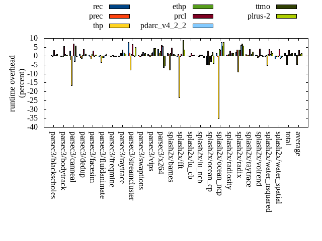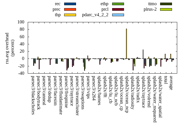 ======= Summary ======= runtime orig rec (overhead) prec (overhead) thp (overhead) ethp (overhead) prcl (overhead) pdarc_v4_2_2 (overhead) ttmo (overhead) plrus-2 (overhead) parsec3/blackscholes 139.193 139.431 (0.17) 139.697 (0.36) 138.948 (-0.18) 139.256 (0.05) 143.784 (3.30) 140.327 (0.81) 139.677 (0.35) 140.514 (0.95) parsec3/bodytrack 125.979 125.964 (-0.01) 125.830 (-0.12) 125.973 (-0.00) 125.396 (-0.46) 132.978 (5.56) 127.229 (0.99) 126.815 (0.66) 126.691 (0.57) parsec3/canneal 225.347 232.243 (3.06) 220.702 (-2.06) 188.345 (-16.42) 225.677 (0.15) 241.006 (6.95) 218.818 (-2.90) 238.238 (5.72) 225.132 (-0.10) parsec3/dedup 18.274 18.481 (1.13) 18.163 (-0.61) 18.035 (-1.31) 18.406 (0.72) 18.952 (3.71) 18.402 (0.70) 18.513 (1.31) 18.307 (0.18) parsec3/facesim 347.867 350.579 (0.78) 346.777 (-0.31) 342.669 (-1.49) 352.056 (1.20) 358.258 (2.99) 346.797 (-0.31) 350.488 (0.75) 350.503 (0.76) parsec3/fluidanimate 341.367 339.563 (-0.53) 342.580 (0.36) 328.958 (-3.64) 338.376 (-0.88) 339.128 (-0.66) 337.489 (-1.14) 342.607 (0.36) 345.228 (1.13) parsec3/freqmine 437.861 437.977 (0.03) 438.555 (0.16) 436.115 (-0.40) 438.363 (0.11) 439.612 (0.40) 437.593 (-0.06) 438.272 (0.09) 436.961 (-0.21) parsec3/raytrace 185.401 184.901 (-0.27) 185.658 (0.14) 188.086 (1.45) 185.869 (0.25) 191.724 (3.41) 188.572 (1.71) 188.676 (1.77) 187.777 (1.28) parsec3/streamcluster 675.784 728.441 (7.79) 687.944 (1.80) 622.214 (-7.93) 682.911 (1.05) 719.791 (6.51) 678.117 (0.35) 675.189 (-0.09) 708.198 (4.80) parsec3/swaptions 220.189 221.130 (0.43) 219.286 (-0.41) 220.069 (-0.05) 221.438 (0.57) 222.957 (1.26) 224.934 (2.15) 222.676 (1.13) 223.466 (1.49) parsec3/vips 87.863 88.771 (1.03) 88.449 (0.67) 87.523 (-0.39) 88.358 (0.56) 89.113 (1.42) 89.927 (2.35) 91.564 (4.21) 91.742 (4.41) parsec3/x264 115.029 119.378 (3.78) 115.448 (0.36) 117.133 (1.83) 117.988 (2.57) 121.906 (5.98) 121.358 (5.50) 107.827 (-6.26) 108.636 (-5.56) splash2x/barnes 130.946 132.764 (1.39) 132.751 (1.38) 120.574 (-7.92) 132.952 (1.53) 136.925 (4.57) 131.952 (0.77) 132.115 (0.89) 131.762 (0.62) splash2x/fft 63.523 63.308 (-0.34) 64.109 (0.92) 48.650 (-23.41) 63.504 (-0.03) 64.299 (1.22) 63.921 (0.63) 69.148 (8.86) 65.714 (3.45) splash2x/lu_cb 133.052 133.325 (0.21) 133.231 (0.13) 132.787 (-0.20) 132.915 (-0.10) 135.061 (1.51) 133.588 (0.40) 133.454 (0.30) 133.865 (0.61) splash2x/lu_ncb 152.300 152.685 (0.25) 152.626 (0.21) 152.238 (-0.04) 153.463 (0.76) 153.364 (0.70) 153.416 (0.73) 152.439 (0.09) 151.302 (-0.66) splash2x/ocean_cp 87.537 83.489 (-4.62) 90.230 (3.08) 83.232 (-4.92) 86.328 (-1.38) 84.913 (-3.00) 87.765 (0.26) 89.423 (2.15) 84.032 (-4.00) splash2x/ocean_ncp 166.202 168.562 (1.42) 165.492 (-0.43) 107.833 (-35.12) 172.368 (3.71) 171.470 (3.17) 179.058 (7.74) 175.926 (5.85) 178.853 (7.61) splash2x/radiosity 141.670 142.462 (0.56) 142.449 (0.55) 141.692 (0.02) 143.233 (1.10) 145.777 (2.90) 142.666 (0.70) 144.186 (1.78) 143.937 (1.60) splash2x/radix 51.400 52.476 (2.09) 53.141 (3.39) 46.835 (-8.88) 53.208 (3.52) 53.028 (3.17) 54.542 (6.11) 55.003 (7.01) 54.402 (5.84) splash2x/raytrace 134.618 135.891 (0.95) 135.671 (0.78) 135.486 (0.64) 135.520 (0.67) 139.661 (3.75) 135.603 (0.73) 136.420 (1.34) 137.938 (2.47) splash2x/volrend 120.479 121.400 (0.76) 121.066 (0.49) 119.627 (-0.71) 120.307 (-0.14) 125.430 (4.11) 121.084 (0.50) 121.059 (0.48) 120.323 (-0.13) splash2x/water_nsquared 373.836 372.697 (-0.30) 375.506 (0.45) 354.420 (-5.19) 377.458 (0.97) 387.549 (3.67) 377.042 (0.86) 383.265 (2.52) 380.049 (1.66) splash2x/water_spatial 136.622 134.565 (-1.51) 136.206 (-0.30) 136.029 (-0.43) 136.262 (-0.26) 141.662 (3.69) 135.013 (-1.18) 135.541 (-0.79) 136.230 (-0.29) total 4612.340 4680.480 (1.48) 4631.590 (0.42) 4393.480 (-4.75) 4641.610 (0.63) 4758.350 (3.17) 4645.200 (0.71) 4668.530 (1.22) 4681.570 (1.50) average 192.181 195.020 (0.76) 192.983 (0.46) 183.062 (-4.78) 193.400 (0.68) 198.265 (2.93) 193.550 (1.18) 194.522 (1.69) 195.065 (1.19) kdamond_cpu_util orig rec (overhead) prec (overhead) thp (overhead) ethp (overhead) prcl (overhead) pdarc_v4_2_2 (overhead) ttmo (overhead) plrus-2 (overhead) parsec3/blackscholes 0.000 0.000 (0.00) 0.000 (0.00) 0.000 (0.00) 0.000 (0.00) 0.000 (0.00) 0.000 (0.00) 0.000 (0.00) 0.000 (0.00) parsec3/bodytrack 0.000 0.000 (0.00) 0.000 (0.00) 0.000 (0.00) 0.000 (0.00) 0.000 (0.00) 0.000 (0.00) 0.000 (0.00) 0.000 (0.00) parsec3/canneal 0.000 0.000 (0.00) 0.000 (0.00) 0.000 (0.00) 0.000 (0.00) 0.000 (0.00) 0.000 (0.00) 0.000 (0.00) 0.000 (0.00) parsec3/dedup 0.000 0.000 (0.00) 0.000 (0.00) 0.000 (0.00) 0.000 (0.00) 0.000 (0.00) 0.000 (0.00) 0.000 (0.00) 0.000 (0.00) parsec3/facesim 0.000 0.000 (0.00) 0.000 (0.00) 0.000 (0.00) 0.000 (0.00) 0.000 (0.00) 0.000 (0.00) 0.000 (0.00) 0.000 (0.00) parsec3/fluidanimate 0.000 0.000 (0.00) 0.000 (0.00) 0.000 (0.00) 0.000 (0.00) 0.000 (0.00) 0.000 (0.00) 0.000 (0.00) 0.000 (0.00) parsec3/freqmine 0.000 0.000 (0.00) 0.000 (0.00) 0.000 (0.00) 0.000 (0.00) 0.000 (0.00) 0.000 (0.00) 0.000 (0.00) 0.000 (0.00) parsec3/raytrace 0.000 0.000 (0.00) 0.000 (0.00) 0.000 (0.00) 0.000 (0.00) 0.000 (0.00) 0.000 (0.00) 0.000 (0.00) 0.000 (0.00) parsec3/streamcluster 0.000 0.000 (0.00) 0.000 (0.00) 0.000 (0.00) 0.000 (0.00) 0.000 (0.00) 0.000 (0.00) 0.000 (0.00) 0.000 (0.00) parsec3/swaptions 0.000 0.000 (0.00) 0.000 (0.00) 0.000 (0.00) 0.000 (0.00) 0.000 (0.00) 0.000 (0.00) 0.000 (0.00) 0.000 (0.00) parsec3/vips 0.000 0.000 (0.00) 0.000 (0.00) 0.000 (0.00) 0.000 (0.00) 0.000 (0.00) 0.000 (0.00) 0.000 (0.00) 0.000 (0.00) parsec3/x264 0.000 0.000 (0.00) 0.000 (0.00) 0.000 (0.00) 0.000 (0.00) 0.000 (0.00) 0.000 (0.00) 0.000 (0.00) 0.000 (0.00) splash2x/barnes 0.000 0.000 (0.00) 0.000 (0.00) 0.000 (0.00) 0.000 (0.00) 0.000 (0.00) 0.000 (0.00) 0.000 (0.00) 0.000 (0.00) splash2x/fft 0.000 0.000 (0.00) 0.000 (0.00) 0.000 (0.00) 0.000 (0.00) 0.000 (0.00) 0.000 (0.00) 0.000 (0.00) 0.000 (0.00) splash2x/lu_cb 0.000 0.000 (0.00) 0.000 (0.00) 0.000 (0.00) 0.000 (0.00) 0.000 (0.00) 0.000 (0.00) 0.000