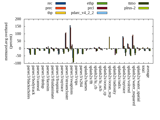 ======= Summary ======= runtime orig rec (overhead) prec (overhead) thp (overhead) ethp (overhead) prcl (overhead) pdarc_v4_2_2 (overhead) ttmo (overhead) plrus-2 (overhead) parsec3/blackscholes 139.836 139.690 (-0.10) 140.729 (0.64) 138.717 (-0.80) 140.007 (0.12) 144.302 (3.19) 140.471 (0.45) 140.524 (0.49) 140.910 (0.77) parsec3/bodytrack 126.831 125.537 (-1.02) 125.563 (-1.00) 124.726 (-1.66) 126.798 (-0.03) 136.714 (7.79) 126.239 (-0.47) 125.792 (-0.82) 126.269 (-0.44) parsec3/canneal 219.856 227.247 (3.36) 228.056 (3.73) 192.034 (-12.65) 228.304 (3.84) 233.073 (6.01) 235.519 (7.12) 233.642 (6.27) 228.277 (3.83) parsec3/dedup 18.608 18.458 (-0.81) 18.547 (-0.33) 18.513 (-0.51) 18.478 (-0.70) 19.538 (4.99) 18.478 (-0.70) 18.377 (-1.25) 18.265 (-1.84) parsec3/facesim 351.057 351.032 (-0.01) 349.752 (-0.37) 346.037 (-1.43) 349.706 (-0.38) 360.834 (2.78) 349.918 (-0.32) 351.098 (0.01) 351.613 (0.16) parsec3/fluidanimate 337.975 339.542 (0.46) 341.991 (1.19) 330.199 (-2.30) 339.787 (0.54) 342.352 (1.30) 343.104 (1.52) 338.321 (0.10) 341.090 (0.92) parsec3/freqmine 436.158 437.143 (0.23) 437.352 (0.27) 435.547 (-0.14) 435.402 (-0.17) 442.358 (1.42) 436.595 (0.10) 437.472 (0.30) 435.917 (-0.06) parsec3/raytrace 183.779 184.432 (0.36) 184.994 (0.66) 185.948 (1.18) 186.007 (1.21) 197.050 (7.22) 187.860 (2.22) 187.203 (1.86) 187.229 (1.88) parsec3/streamcluster 701.446 736.541 (5.00) 699.336 (-0.30) 606.550 (-13.53) 738.389 (5.27) 746.832 (6.47) 709.104 (1.09) 699.516 (-0.28) 702.484 (0.15) parsec3/swaptions 221.554 222.617 (0.48) 221.198 (-0.16) 221.997 (0.20) 221.261 (-0.13) 222.637 (0.49) 221.863 (0.14) 221.823 (0.12) 222.467 (0.41) parsec3/vips 88.006 88.174 (0.19) 88.875 (0.99) 88.267 (0.30) 88.259 (0.29) 90.932 (3.32) 92.654 (5.28) 94.330 (7.19) 94.666 (7.57) parsec3/x264 116.253 113.999 (-1.94) 113.233 (-2.60) 113.347 (-2.50) 115.331 (-0.79) 116.317 (0.05) 110.751 (-4.73) 126.501 (8.82) 113.922 (-2.01) splash2x/barnes 130.852 130.736 (-0.09) 131.547 (0.53) 120.153 (-8.18) 132.235 (1.06) 142.328 (8.77) 132.530 (1.28) 132.514 (1.27) 133.382 (1.93) splash2x/fft 62.388 62.335 (-0.09) 63.126 (1.18) 48.695 (-21.95) 62.636 (0.40) 65.089 (4.33) 63.621 (1.98) 70.230 (12.57) 68.636 (10.01) splash2x/lu_cb 133.204 133.308 (0.08) 133.445 (0.18) 133.311 (0.08) 133.124 (-0.06) 137.532 (3.25) 133.274 (0.05) 133.789 (0.44) 133.856 (0.49) splash2x/lu_ncb 151.617 151.827 (0.14) 151.618 (0.00) 152.342 (0.48) 152.067 (0.30) 152.422 (0.53) 152.833 (0.80) 151.430 (-0.12) 151.795 (0.12) splash2x/ocean_cp 84.032 84.692 (0.78) 84.614 (0.69) 86.376 (2.79) 84.053 (0.03) 83.706 (-0.39) 86.217 (2.60) 86.023 (2.37) 89.114 (6.05) splash2x/ocean_ncp 165.026 168.193 (1.92) 166.566 (0.93) 104.686 (-36.56) 170.440 (3.28) 167.613 (1.57) 168.932 (2.37) 176.996 (7.25) 177.524 (7.57) splash2x/radiosity 142.507 142.173 (-0.23) 142.760 (0.18) 141.376 (-0.79) 143.334 (0.58) 148.707 (4.35) 143.917 (0.99) 146.223 (2.61) 145.700 (2.24) splash2x/radix 51.840 52.051 (0.41) 52.425 (1.13) 46.329 (-10.63) 53.444 (3.10) 52.262 (0.82) 53.889 (3.95) 55.094 (6.28) 55.123 (6.33) splash2x/raytrace 135.019 135.218 (0.15) 134.757 (-0.19) 134.443 (-0.43) 135.100 (0.06) 142.442 (5.50) 134.394 (-0.46) 139.531 (3.34) 136.257 (0.92) splash2x/volrend 120.345 120.620 (0.23) 120.601 (0.21) 120.064 (-0.23) 120.739 (0.33) 124.260 (3.25) 120.545 (0.17) 121.396 (0.87) 121.171 (0.69) splash2x/water_nsquared 371.784 374.048 (0.61) 372.346 (0.15) 355.225 (-4.45) 372.383 (0.16) 399.629 (7.49) 374.946 (0.85) 385.738 (3.75) 385.654 (3.73) splash2x/water_spatial 134.089 134.549 (0.34) 134.559 (0.35) 134.756 (0.50) 135.447 (1.01) 141.910 (5.83) 135.533 (1.08) 136.535 (1.82) 135.863 (1.32) total 4624.060 4674.160 (1.08) 4638.000 (0.30) 4379.670 (-5.29) 4682.730 (1.27) 4810.840 (4.04) 4673.160 (1.06) 4710.090 (1.86) 4697.170 (1.58) average 192.669 194.757 (0.44) 193.250 (0.34) 182.486 (-4.72) 195.114 (0.80) 200.452 (3.76) 194.715 (1.14) 196.254 (2.72) 195.715 (2.20) kdamond_cpu_util orig rec (overhead) prec (overhead) thp (overhead) ethp (overhead) prcl (overhead) pdarc_v4_2_2 (overhead) ttmo (overhead) plrus-2 (overhead) parsec3/blackscholes 0.000 0.000 (0.00) 0.000 (0.00) 0.000 (0.00) 0.000 (0.00) 0.000 (0.00) 0.000 (0.00) 0.000 (0.00) 0.000 (0.00) parsec3/bodytrack 0.000 0.000 (0.00) 0.000 (0.00) 0.000 (0.00) 0.000 (0.00) 0.000 (0.00) 0.000 (0.00) 0.000 (0.00) 0.000 (0.00) parsec3/canneal 0.000 0.000 (0.00) 0.000 (0.00) 0.000 (0.00) 0.000 (0.00) 0.000 (0.00) 0.000 (0.00) 0.000 (0.00) 0.000 (0.00) parsec3/dedup 0.000 0.000 (0.00) 0.000 (0.00) 0.000 (0.00) 0.000 (0.00) 0.000 (0.00) 0.000 (0.00) 0.000 (0.00) 0.000 (0.00) parsec3/facesim 0.000 0.000 (0.00) 0.000 (0.00) 0.000 (0.00) 0.000 (0.00) 0.000 (0.00) 0.000 (0.00) 0.000 (0.00) 0.000 (0.00) parsec3/fluidanimate 0.000 0.000 (0.00) 0.000 (0.00) 0.000 (0.00) 0.000 (0.00) 0.000 (0.00) 0.000 (0.00) 0.000 (0.00) 0.000 (0.00) parsec3/freqmine 0.000 0.000 (0.00) 0.000 (0.00) 0.000 (0.00) 0.000 (0.00) 0.000 (0.00) 0.000 (0.00) 0.000 (0.00) 0.000 (0.00) parsec3/raytrace 0.000 0.000 (0.00) 0.000 (0.00) 0.000 (0.00) 0.000 (0.00) 0.000 (0.00) 0.000 (0.00) 0.000 (0.00) 0.000 (0.00) parsec3/streamcluster 0.000 0.000 (0.00) 0.000 (0.00) 0.000 (0.00) 0.000 (0.00) 0.000 (0.00) 0.000 (0.00) 0.000 (0.00) 0.000 (0.00) parsec3/swaptions 0.000 0.000 (0.00) 0.000 (0.00) 0.000 (0.00) 0.000 (0.00) 0.000 (0.00) 0.000 (0.00) 0.000 (0.00) 0.000 (0.00) parsec3/vips 0.000 0.000 (0.00) 0.000 (0.00) 0.000 (0.00) 0.000 (0.00) 0.000 (0.00) 0.000 (0.00) 0.000 (0.00) 0.000 (0.00) parsec3/x264 0.000 0.000 (0.00) 0.000 (0.00) 0.000 (0.00) 0.000 (0.00) 0.000 (0.00) 0.000 (0.00) 0.000 (0.00) 0.000 (0.00) splash2x/barnes 0.000 0.000 (0.00) 0.000 (0.00) 0.000 (0.00) 0.000 (0.00) 0.000 (0.00) 0.000 (0.00) 0.000 (0.00) 0.000 (0.00) splash2x/fft 0.000 0.000 (0.00) 0.000 (0.00) 0.000 (0.00) 0.000 (0.00) 0.000 (0.00) 0.000 (0.00) 0.000 (0.00) 0.000 (0.00) splash2x/lu_cb 0.000 0.000 (0.00) 0.000 (0.00) 0.000 (0.00) 0.000 (0.00) 0.000 (0.00) 0.000 (0.00) 0.000 