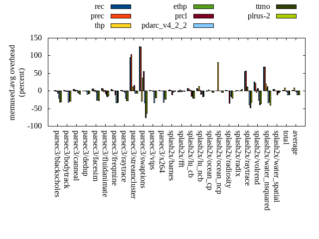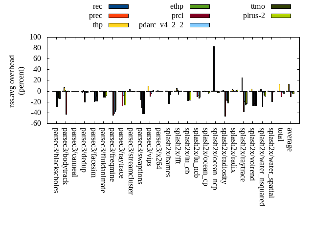 ======= Summary ======= runtime orig rec (overhead) prec (overhead) thp (overhead) ethp (overhead) prcl (overhead) pdarc_v4_2_2 (overhead) ttmo (overhead) plrus-2 (overhead) parsec3/blackscholes 139.275 140.154 (0.63) 139.912 (0.46) 139.150 (-0.09) 140.140 (0.62) 142.835 (2.56) 140.034 (0.54) 140.028 (0.54) 140.352 (0.77) parsec3/bodytrack 124.711 126.163 (1.16) 126.208 (1.20) 124.931 (0.18) 124.966 (0.20) 135.276 (8.47) 126.877 (1.74) 125.423 (0.57) 126.268 (1.25) parsec3/canneal 218.827 228.758 (4.54) 229.346 (4.81) 194.537 (-11.10) 226.652 (3.58) 230.021 (5.12) 229.857 (5.04) 232.551 (6.27) 238.902 (9.17) parsec3/dedup 18.106 18.269 (0.90) 18.589 (2.67) 17.954 (-0.84) 18.207 (0.56) 19.157 (5.80) 18.552 (2.46) 18.139 (0.18) 18.329 (1.23) parsec3/facesim 350.233 349.859 (-0.11) 347.987 (-0.64) 341.826 (-2.40) 350.344 (0.03) 361.404 (3.19) 352.661 (0.69) 354.157 (1.12) 354.944 (1.35) parsec3/fluidanimate 337.865 340.654 (0.83) 340.375 (0.74) 328.104 (-2.89) 338.922 (0.31) 346.172 (2.46) 341.062 (0.95) 342.395 (1.34) 340.592 (0.81) parsec3/freqmine 436.278 435.679 (-0.14) 434.869 (-0.32) 434.416 (-0.43) 437.328 (0.24) 441.783 (1.26) 436.427 (0.03) 439.828 (0.81) 437.251 (0.22) parsec3/raytrace 184.308 183.933 (-0.20) 185.722 (0.77) 186.745 (1.32) 186.554 (1.22) 195.196 (5.91) 186.721 (1.31) 187.429 (1.69) 187.776 (1.88) parsec3/streamcluster 685.837 710.876 (3.65) 735.081 (7.18) 587.856 (-14.29) 720.706 (5.08) 713.140 (3.98) 706.092 (2.95) 693.410 (1.10) 712.222 (3.85) parsec3/swaptions 222.618 221.761 (-0.38) 223.385 (0.34) 221.201 (-0.64) 223.936 (0.59) 223.437 (0.37) 222.731 (0.05) 220.747 (-0.84) 221.743 (-0.39) parsec3/vips 87.883 87.734 (-0.17) 88.161 (0.32) 87.649 (-0.27) 88.071 (0.21) 89.839 (2.22) 92.453 (5.20) 93.488 (6.38) 93.442 (6.33) parsec3/x264 124.238 121.386 (-2.30) 120.770 (-2.79) 123.257 (-0.79) 114.986 (-7.45) 116.162 (-6.50) 112.688 (-9.30) 117.425 (-5.48) 123.173 (-0.86) splash2x/barnes 130.326 131.789 (1.12) 130.836 (0.39) 119.916 (-7.99) 133.517 (2.45) 141.061 (8.24) 132.131 (1.39) 132.583 (1.73) 132.629 (1.77) splash2x/fft 62.924 62.229 (-1.10) 62.656 (-0.43) 48.178 (-23.43) 63.447 (0.83) 63.940 (1.61) 64.237 (2.09) 67.488 (7.25) 66.387 (5.50) splash2x/lu_cb 133.574 133.467 (-0.08) 133.075 (-0.37) 133.562 (-0.01) 133.946 (0.28) 137.174 (2.69) 133.130 (-0.33) 134.328 (0.56) 134.663 (0.82) splash2x/lu_ncb 150.377 152.377 (1.33) 151.792 (0.94) 152.366 (1.32) 153.099 (1.81) 152.603 (1.48) 152.445 (1.38) 154.343 (2.64) 154.666 (2.85) splash2x/ocean_cp 84.052 84.983 (1.11) 84.884 (0.99) 84.190 (0.16) 85.924 (2.23) 84.005 (-0.06) 85.628 (1.87) 88.856 (5.71) 86.705 (3.16) splash2x/ocean_ncp 166.244 170.965 (2.84) 171.293 (3.04) 110.120 (-33.76) 170.584 (2.61) 171.033 (2.88) 173.758 (4.52) 180.147 (8.36) 176.199 (5.99) splash2x/radiosity 142.341 142.885 (0.38) 143.160 (0.58) 141.864 (-0.34) 143.281 (0.66) 148.786 (4.53) 143.215 (0.61) 143.442 (0.77) 143.926 (1.11) splash2x/radix 51.421 52.309 (1.73) 52.453 (2.01) 45.936 (-10.67) 53.072 (3.21) 52.232 (1.58) 54.890 (6.75) 54.436 (5.86) 57.650 (12.12) splash2x/raytrace 135.219 137.631 (1.78) 133.045 (-1.61) 134.631 (-0.43) 135.769 (0.41) 139.916 (3.47) 135.676 (0.34) 138.557 (2.47) 136.975 (1.30) splash2x/volrend 120.262 120.443 (0.15) 121.071 (0.67) 119.673 (-0.49) 120.449 (0.15) 124.377 (3.42) 120.630 (0.31) 121.285 (0.85) 120.900 (0.53) splash2x/water_nsquared 369.867 373.927 (1.10) 371.431 (0.42) 358.180 (-3.16) 372.800 (0.79) 390.664 (5.62) 375.463 (1.51) 382.218 (3.34) 380.980 (3.00) splash2x/water_spatial 135.508 135.717 (0.15) 135.057 (-0.33) 135.588 (0.06) 134.994 (-0.38) 141.761 (4.61) 137.076 (1.16) 135.205 (-0.22) 135.883 (0.28) total 4612.300 4663.970 (1.12) 4681.160 (1.49) 4371.840 (-5.21) 4671.700 (1.29) 4761.970 (3.25) 4674.440 (1.35) 4697.940 (1.86) 4722.560 (2.39) average 192.179 194.332 (0.79) 195.048 (0.88) 182.160 (-4.62) 194.654 (0.84) 198.415 (3.12) 194.768 (1.39) 195.747 (2.21) 196.773 (2.67) kdamond_cpu_util orig rec (overhead) prec (overhead) thp (overhead) ethp (overhead) prcl (overhead) pdarc_v4_2_2 (overhead) ttmo (overhead) plrus-2 (overhead) parsec3/blackscholes 0.000 0.000 (0.00) 0.000 (0.00) 0.000 (0.00) 0.000 (0.00) 0.000 (0.00) 0.000 (0.00) 0.000 (0.00) 0.000 (0.00) parsec3/bodytrack 0.000 0.000 (0.00) 0.000 (0.00) 0.000 (0.00) 0.000 (0.00) 0.000 (0.00) 0.000 (0.00) 0.000 (0.00) 0.000 (0.00) parsec3/canneal 0.000 0.000 (0.00) 0.000 (0.00) 0.000 (0.00) 0.000 (0.00) 0.000 (0.00) 0.000 (0.00) 0.000 (0.00) 0.000 (0.00) parsec3/dedup 0.000 0.000 (0.00) 0.000 (0.00) 0.000 (0.00) 0.000 (0.00) 0.000 (0.00) 0.000 (0.00) 0.000 (0.00) 0.000 (0.00) parsec3/facesim 0.000 0.000 (0.00) 0.000 (0.00) 0.000 (0.00) 0.000 (0.00) 0.000 (0.00) 0.000 (0.00) 0.000 (0.00) 0.000 (0.00) parsec3/fluidanimate 0.000 0.000 (0.00) 0.000 (0.00) 0.000 (0.00) 0.000 (0.00) 0.000 (0.00) 0.000 (0.00) 0.000 (0.00) 0.000 (0.00) parsec3/freqmine 0.000 0.000 (0.00) 0.000 (0.00) 0.000 (0.00) 0.000 (0.00) 0.000 (0.00) 0.000 (0.00) 0.000 (0.00) 0.000 (0.00) parsec3/raytrace 0.000 0.000 (0.00) 0.000 (0.00) 0.000 (0.00) 0.000 (0.00) 0.000 (0.00) 0.000 (0.00) 0.000 (0.00) 0.000 (0.00) parsec3/streamcluster 0.000 0.000 (0.00) 0.000 (0.00) 0.000 (0.00) 0.000 (0.00) 0.000 (0.00) 0.000 (0.00) 0.000 (0.00) 0.000 (0.00) parsec3/swaptions 0.000 0.000 (0.00) 0.000 (0.00) 0.000 (0.00) 0.000 (0.00) 0.000 (0.00) 0.000 (0.00) 0.000 (0.00) 0.000 (0.00) parsec3/vips 0.000 0.000 (0.00) 0.000 (0.00) 0.000 (0.00) 0.000 (0.00) 0.000 (0.00) 0.000 (0.00) 0.000 (0.00) 0.000 (0.00) parsec3/x264 0.000 0.000 (0.00) 0.000 (0.00) 0.000 (0.00) 0.000 (0.00) 0.000 (0.00) 0.000 (0.00) 0.000 (0.00) 0.000 (0.00) splash2x/barnes 0.000 0.000 (0.00) 0.000 (0.00) 0.000 (0.00) 0.000 (0.00) 0.000 (0.00) 0.000 (0.00) 0.000 (0.00) 0.000 (0.00) splash2x/fft 0.000 0.000 (0.00) 0.000 (0.00) 0.000 (0.00) 0.000 (0.00) 0.000 (0.00) 0.000 (0.00) 0.000 (0.00) 0.000 (0.00) splash2x/lu_cb 0.000 0.000 (0.00) 0.000 (0.00) 0.000 (0.00) 0.000 (0.00) 0.000 (0.00) 0.000 (0.00) 0.000 (0.00) 0.