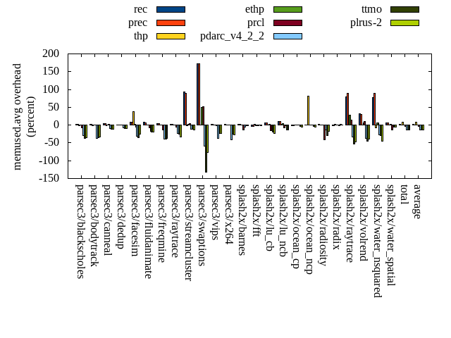 ======= Summary ======= runtime orig rec (overhead) prec (overhead) thp (overhead) ethp (overhead) prcl (overhead) pdarc_v4_2_2 (overhead) ttmo (overhead) plrus-2 (overhead) parsec3/blackscholes 139.590 139.688 (0.07) 140.215 (0.45) 138.949 (-0.46) 139.974 (0.28) 143.877 (3.07) 139.761 (0.12) 140.144 (0.40) 140.186 (0.43) parsec3/bodytrack 125.610 125.304 (-0.24) 126.096 (0.39) 125.342 (-0.21) 125.836 (0.18) 136.873 (8.97) 126.565 (0.76) 125.424 (-0.15) 125.666 (0.04) parsec3/canneal 217.365 227.512 (4.67) 230.085 (5.85) 190.298 (-12.45) 224.779 (3.41) 232.148 (6.80) 226.161 (4.05) 228.436 (5.09) 231.850 (6.66) parsec3/dedup 18.293 18.269 (-0.13) 18.409 (0.64) 18.286 (-0.03) 18.422 (0.71) 19.445 (6.30) 18.484 (1.05) 18.360 (0.37) 18.347 (0.30) parsec3/facesim 345.522 349.631 (1.19) 346.065 (0.16) 344.804 (-0.21) 347.677 (0.62) 359.920 (4.17) 354.422 (2.58) 351.988 (1.87) 352.011 (1.88) parsec3/fluidanimate 337.560 339.367 (0.54) 342.137 (1.36) 329.244 (-2.46) 341.208 (1.08) 343.075 (1.63) 340.018 (0.73) 342.193 (1.37) 340.078 (0.75) parsec3/freqmine 436.512 436.094 (-0.10) 437.058 (0.13) 436.427 (-0.02) 435.905 (-0.14) 442.843 (1.45) 437.955 (0.33) 437.663 (0.26) 438.616 (0.48) parsec3/raytrace 184.537 184.896 (0.19) 185.654 (0.61) 186.353 (0.98) 185.436 (0.49) 193.886 (5.07) 187.758 (1.75) 188.210 (1.99) 188.945 (2.39) parsec3/streamcluster 692.581 712.007 (2.80) 711.434 (2.72) 622.964 (-10.05) 735.543 (6.20) 740.853 (6.97) 709.149 (2.39) 730.478 (5.47) 738.149 (6.58) parsec3/swaptions 221.307 224.114 (1.27) 221.421 (0.05) 222.045 (0.33) 222.286 (0.44) 224.884 (1.62) 223.016 (0.77) 222.765 (0.66) 224.167 (1.29) parsec3/vips 87.471 89.100 (1.86) 88.524 (1.20) 87.917 (0.51) 88.347 (1.00) 90.840 (3.85) 93.147 (6.49) 94.020 (7.49) 94.490 (8.03) parsec3/x264 114.825 114.648 (-0.15) 113.933 (-0.78) 121.805 (6.08) 110.740 (-3.56) 116.065 (1.08) 123.491 (7.55) 117.964 (2.73) 118.088 (2.84) splash2x/barnes 130.616 131.532 (0.70) 131.493 (0.67) 121.710 (-6.82) 132.153 (1.18) 144.027 (10.27) 133.372 (2.11) 132.484 (1.43) 132.352 (1.33) splash2x/fft 61.985 63.182 (1.93) 61.941 (-0.07) 48.624 (-21.55) 63.183 (1.93) 64.572 (4.17) 63.890 (3.07) 69.179 (11.60) 68.243 (10.10) splash2x/lu_cb 133.128 133.394 (0.20) 133.338 (0.16) 132.969 (-0.12) 133.128 (0.00) 138.414 (3.97) 133.922 (0.60) 134.113 (0.74) 134.358 (0.92) splash2x/lu_ncb 150.873 152.420 (1.03) 151.782 (0.60) 153.103 (1.48) 151.061 (0.12) 154.061 (2.11) 152.631 (1.16) 152.917 (1.35) 153.213 (1.55) splash2x/ocean_cp 82.443 86.159 (4.51) 83.858 (1.72) 80.784 (-2.01) 84.923 (3.01) 84.676 (2.71) 84.115 (2.03) 85.835 (4.11) 86.781 (5.26) splash2x/ocean_ncp 162.310 165.762 (2.13) 169.066 (4.16) 108.132 (-33.38) 165.760 (2.13) 170.182 (4.85) 167.932 (3.46) 175.332 (8.02) 178.319 (9.86) splash2x/radiosity 143.022 142.160 (-0.60) 142.611 (-0.29) 141.326 (-1.19) 142.943 (-0.05) 149.142 (4.28) 143.652 (0.44) 145.088 (1.44) 143.959 (0.66) splash2x/radix 51.652 52.358 (1.37) 52.046 (0.76) 45.400 (-12.10) 52.663 (1.96) 52.190 (1.04) 53.472 (3.52) 56.323 (9.04) 55.895 (8.21) splash2x/raytrace 136.277 136.155 (-0.09) 135.904 (-0.27) 134.180 (-1.54) 135.617 (-0.48) 144.195 (5.81) 134.776 (-1.10) 135.932 (-0.25) 137.053 (0.57) splash2x/volrend 120.359 120.539 (0.15) 119.942 (-0.35) 119.367 (-0.82) 120.744 (0.32) 124.080 (3.09) 120.618 (0.21) 120.057 (-0.25) 120.800 (0.37) splash2x/water_nsquared 369.719 371.597 (0.51) 372.692 (0.80) 352.928 (-4.54) 372.137 (0.65) 399.548 (8.07) 375.684 (1.61) 382.071 (3.34) 385.393 (4.24) splash2x/water_spatial 135.175 134.388 (-0.58) 134.300 (-0.65) 135.248 (0.05) 135.867 (0.51) 144.321 (6.77) 135.495 (0.24) 135.863 (0.51) 136.899 (1.28) total 4598.740 4650.280 (1.12) 4649.990 (1.11) 4398.190 (-4.36) 4666.330 (1.47) 4814.100 (4.68) 4679.490 (1.76) 4722.820 (2.70) 4743.850 (3.16) average 191.614 193.762 (0.97) 193.750 (0.83) 183.258 (-4.19) 194.430 (0.92) 200.588 (4.50) 194.979 (1.91) 196.784 (2.86) 197.660 (3.17) kdamond_cpu_util orig rec (overhead) prec (overhead) thp (overhead) ethp (overhead) prcl (overhead) pdarc_v4_2_2 (overhead) ttmo (overhead) plrus-2 (overhead) parsec3/blackscholes 0.000 0.000 (0.00) 0.000 (0.00) 0.000 (0.00) 0.000 (0.00) 0.000 (0.00) 0.000 (0.00) 0.000 (0.00) 0.000 (0.00) parsec3/bodytrack 0.000 0.000 (0.00) 0.000 (0.00) 0.000 (0.00) 0.000 (0.00) 0.000 (0.00) 0.000 (0.00) 0.000 (0.00) 0.000 (0.00) parsec3/canneal 0.000 0.000 (0.00) 0.000 (0.00) 0.000 (0.00) 0.000 (0.00) 0.000 (0.00) 0.000 (0.00) 0.000 (0.00) 0.000 (0.00) parsec3/dedup 0.000 0.000 (0.00) 0.000 (0.00) 0.000 (0.00) 0.000 (0.00) 0.000 (0.00) 0.000 (0.00) 0.000 (0.00) 0.000 (0.00) parsec3/facesim 0.000 0.000 (0.00) 0.000 (0.00) 0.000 (0.00) 0.000 (0.00) 0.000 (0.00) 0.000 (0.00) 0.000 (0.00) 0.000 (0.00) parsec3/fluidanimate 0.000 0.000 (0.00) 0.000 (0.00) 0.000 (0.00) 0.000 (0.00) 0.000 (0.00) 0.000 (0.00) 0.000 (0.00) 0.000 (0.00) parsec3/freqmine 0.000 0.000 (0.00) 0.000 (0.00) 0.000 (0.00) 0.000 (0.00) 0.000 (0.00) 0.000 (0.00) 0.000 (0.00) 0.000 (0.00) parsec3/raytrace 0.000 0.000 (0.00) 0.000 (0.00) 0.000 (0.00) 0.000 (0.00) 0.000 (0.00) 0.000 (0.00) 0.000 (0.00) 0.000 (0.00) parsec3/streamcluster 0.000 0.000 (0.00) 0.000 (0.00) 0.000 (0.00) 0.000 (0.00) 0.000 (0.00) 0.000 (0.00) 0.000 (0.00) 0.000 (0.00) parsec3/swaptions 0.000 0.000 (0.00) 0.000 (0.00) 0.000 (0.00) 0.000 (0.00) 0.000 (0.00) 0.000 (0.00) 0.000 (0.00) 0.000 (0.00) parsec3/vips 0.000 0.000 (0.00) 0.000 (0.00) 0.000 (0.00) 0.000 (0.00) 0.000 (0.00) 0.000 (0.00) 0.000 (0.00) 0.000 (0.00) parsec3/x264 0.000 0.000 (0.00) 0.000 (0.00) 0.000 (0.00) 0.000 (0.00) 0.000 (0.00) 0.000 (0.00) 0.000 (0.00) 0.000 (0.00) splash2x/barnes 0.000 0.000 (0.00) 0.000 (0.00) 0.000 (0.00) 0.000 (0.00) 0.000 (0.00) 0.000 (0.00) 0.000 (0.00) 0.000 (0.00) splash2x/fft 0.000 0.000 (0.00) 0.000 (0.00) 0.000 (0.00) 0.000 (0.00) 0.000 (0.00) 0.000 (0.00) 0.000 (0.00) 0.000 (0.00) splash2x/lu_cb 0.000 0.000 (0.00) 0.000 (0.00) 0.000 (0.00) 0.000 (0.00) 0.000 (0.00) 0.000 (0.00) 0.000 (0.00) 0.000 