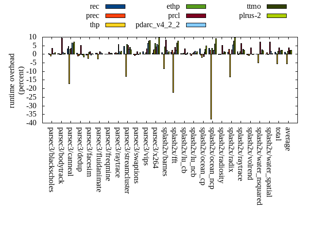 ======= Summary ======= runtime orig rec (overhead) prec (overhead) thp (overhead) ethp (overhead) prcl (overhead) pdarc_v4_2_2 (overhead) ttmo (overhead) plrus-2 (overhead) parsec3/blackscholes 139.687 140.165 (0.34) 139.568 (-0.09) 138.241 (-1.04) 139.868 (0.13) 144.408 (3.38) 140.072 (0.28) 140.121 (0.31) 141.090 (1.00) parsec3/bodytrack 125.042 125.701 (0.53) 125.647 (0.48) 124.733 (-0.25) 124.915 (-0.10) 136.669 (9.30) 126.427 (1.11) 125.686 (0.51) 125.814 (0.62) parsec3/canneal 217.302 224.002 (3.08) 227.151 (4.53) 180.211 (-17.07) 223.391 (2.80) 224.889 (3.49) 231.489 (6.53) 230.978 (6.29) 233.159 (7.30) parsec3/dedup 18.491 18.618 (0.68) 18.299 (-1.04) 18.355 (-0.74) 18.442 (-0.27) 19.476 (5.32) 18.483 (-0.04) 18.418 (-0.40) 18.214 (-1.50) parsec3/facesim 350.768 349.238 (-0.44) 348.891 (-0.54) 342.381 (-2.39) 355.349 (1.31) 356.260 (1.57) 349.600 (-0.33) 352.270 (0.43) 351.344 (0.16) parsec3/fluidanimate 337.276 339.859 (0.77) 340.000 (0.81) 327.707 (-2.84) 337.679 (0.12) 342.441 (1.53) 340.588 (0.98) 338.482 (0.36) 338.844 (0.47) parsec3/freqmine 436.526 436.787 (0.06) 436.455 (-0.02) 437.580 (0.24) 437.000 (0.11) 442.087 (1.27) 438.284 (0.40) 439.390 (0.66) 438.499 (0.45) parsec3/raytrace 184.430 185.782 (0.73) 186.035 (0.87) 185.398 (0.52) 185.615 (0.64) 195.224 (5.85) 187.196 (1.50) 186.026 (0.87) 187.831 (1.84) parsec3/streamcluster 676.470 708.368 (4.72) 677.844 (0.20) 589.974 (-12.79) 715.451 (5.76) 712.142 (5.27) 697.101 (3.05) 704.679 (4.17) 695.225 (2.77) parsec3/swaptions 221.456 220.981 (-0.21) 220.068 (-0.63) 221.031 (-0.19) 221.373 (-0.04) 224.751 (1.49) 221.311 (-0.07) 221.886 (0.19) 223.530 (0.94) parsec3/vips 87.843 89.121 (1.46) 88.042 (0.23) 87.928 (0.10) 88.748 (1.03) 90.637 (3.18) 93.417 (6.35) 94.719 (7.83) 94.931 (8.07) parsec3/x264 114.016 114.648 (0.55) 116.921 (2.55) 116.953 (2.58) 121.355 (6.44) 119.085 (4.45) 120.452 (5.64) 119.849 (5.12) 125.240 (9.84) splash2x/barnes 130.744 131.991 (0.95) 130.710 (-0.03) 119.889 (-8.30) 136.609 (4.49) 141.418 (8.16) 133.869 (2.39) 131.979 (0.94) 132.784 (1.56) splash2x/fft 62.042 62.828 (1.27) 63.487 (2.33) 48.253 (-22.22) 62.624 (0.94) 64.587 (4.10) 63.588 (2.49) 66.184 (6.68) 66.869 (7.78) splash2x/lu_cb 133.108 133.583 (0.36) 133.554 (0.34) 133.539 (0.32) 134.185 (0.81) 137.279 (3.13) 133.047 (-0.05) 133.492 (0.29) 134.370 (0.95) splash2x/lu_ncb 151.297 151.745 (0.30) 150.333 (-0.64) 151.436 (0.09) 152.212 (0.60) 153.199 (1.26) 153.918 (1.73) 152.496 (0.79) 153.639 (1.55) splash2x/ocean_cp 84.129 86.870 (3.26) 83.758 (-0.44) 82.516 (-1.92) 84.189 (0.07) 83.078 (-1.25) 85.111 (1.17) 86.630 (2.97) 88.365 (5.04) splash2x/ocean_ncp 165.449 171.393 (3.59) 169.527 (2.46) 102.834 (-37.85) 171.305 (3.54) 169.561 (2.49) 169.331 (2.35) 175.578 (6.12) 180.425 (9.05) splash2x/radiosity 142.617 142.521 (-0.07) 142.845 (0.16) 142.227 (-0.27) 142.949 (0.23) 150.113 (5.26) 143.337 (0.51) 144.982 (1.66) 144.378 (1.23) splash2x/radix 51.680 52.327 (1.25) 53.147 (2.84) 44.879 (-13.16) 51.751 (0.14) 53.114 (2.77) 54.557 (5.57) 55.619 (7.62) 56.753 (9.81) splash2x/raytrace 133.944 135.879 (1.45) 133.531 (-0.31) 134.424 (0.36) 135.915 (1.47) 142.308 (6.24) 135.029 (0.81) 137.892 (2.95) 137.163 (2.40) splash2x/volrend 120.582 120.393 (-0.16) 120.176 (-0.34) 119.551 (-0.86) 120.689 (0.09) 125.004 (3.67) 120.785 (0.17) 120.366 (-0.18) 120.639 (0.05) splash2x/water_nsquared 374.473 375.123 (0.17) 374.442 (-0.01) 355.678 (-5.02) 374.834 (0.10) 401.430 (7.20) 375.515 (0.28) 384.233 (2.61) 382.651 (2.18) splash2x/water_spatial 135.082 135.350 (0.20) 136.209 (0.83) 134.786 (-0.22) 135.081 (-0.00) 144.593 (7.04) 137.379 (1.70) 135.429 (0.26) 135.680 (0.44) total 4594.460 4653.260 (1.28) 4616.640 (0.48) 4340.510 (-5.53) 4671.510 (1.68) 4773.750 (3.90) 4669.900 (1.64) 4697.390 (2.24) 4707.440 (2.46) average 191.436 193.886 (1.03) 192.360 (0.61) 180.855 (-5.12) 194.646 (1.27) 198.906 (4.01) 194.579 (1.85) 195.725 (2.46) 196.143 (3.08) kdamond_cpu_util orig rec (overhead) prec (overhead) thp (overhead) ethp (overhead) prcl (overhead) pdarc_v4_2_2 (overhead) ttmo (overhead) plrus-2 (overhead) parsec3/blackscholes 0.000 0.000 (0.00) 0.000 (0.00) 0.000 (0.00) 0.000 (0.00) 0.000 (0.00) 0.000 (0.00) 0.000 (0.00) 0.000 (0.00) parsec3/bodytrack 0.000 0.000 (0.00) 0.000 (0.00) 0.000 (0.00) 0.000 (0.00) 0.000 (0.00) 0.000 (0.00) 0.000 (0.00) 0.000 (0.00) parsec3/canneal 0.000 0.000 (0.00) 0.000 (0.00) 0.000 (0.00) 0.000 (0.00) 0.000 (0.00) 0.000 (0.00) 0.000 (0.00) 0.000 (0.00) parsec3/dedup 0.000 0.000 (0.00) 0.000 (0.00) 0.000 (0.00) 0.000 (0.00) 0.000 (0.00) 0.000 (0.00) 0.000 (0.00) 0.000 (0.00) parsec3/facesim 0.000 0.000 (0.00) 0.000 (0.00) 0.000 (0.00) 0.000 (0.00) 0.000 (0.00) 0.000 (0.00) 0.000 (0.00) 0.000 (0.00) parsec3/fluidanimate 0.000 0.000 (0.00) 0.000 (0.00) 0.000 (0.00) 0.000 (0.00) 0.000 (0.00) 0.000 (0.00) 0.000 (0.00) 0.000 (0.00) parsec3/freqmine 0.000 0.000 (0.00) 0.000 (0.00) 0.000 (0.00) 0.000 (0.00) 0.000 (0.00) 0.000 (0.00) 0.000 (0.00) 0.000 (0.00) parsec3/raytrace 0.000 0.000 (0.00) 0.000 (0.00) 0.000 (0.00) 0.000 (0.00) 0.000 (0.00) 0.000 (0.00) 0.000 (0.00) 0.000 (0.00) parsec3/streamcluster 0.000 0.000 (0.00) 0.000 (0.00) 0.000 (0.00) 0.000 (0.00) 0.000 (0.00) 0.000 (0.00) 0.000 (0.00) 0.000 (0.00) parsec3/swaptions 0.000 0.000 (0.00) 0.000 (0.00) 0.000 (0.00) 0.000 (0.00) 0.000 (0.00) 0.000 (0.00) 0.000 (0.00) 0.000 (0.00) parsec3/vips 0.000 0.000 (0.00) 0.000 (0.00) 0.000 (0.00) 0.000 (0.00) 0.000 (0.00) 0.000 (0.00) 0.000 (0.00) 0.000 (0.00) parsec3/x264 0.000 0.000 (0.00) 0.000 (0.00) 0.000 (0.00) 0.000 (0.00) 0.000 (0.00) 0.000 (0.00) 0.000 (0.00) 0.000 (0.00) splash2x/barnes 0.000 0.000 (0.00) 0.000 (0.00) 0.000 (0.00) 0.000 (0.00) 0.000 (0.00) 0.000 (0.00) 0.000 (0.00) 0.000 (0.00) splash2x/fft 0.000 0.000 (0.00) 0.000 (0.00) 0.000 (0.00) 0.000 (0.00) 0.000 (0.00) 0.000 (0.00) 0.000 (0.00) 0.000 (0.00) splash2x/lu_cb 0.000 0.000 (0.00) 0.000 (0.00) 0.000 (0.00) 0.000 (0.00) 0.000 (0.00) 0.000 (0.00) 0.000 (0.00) 0.00