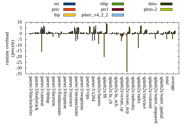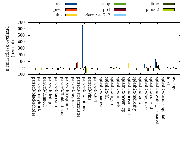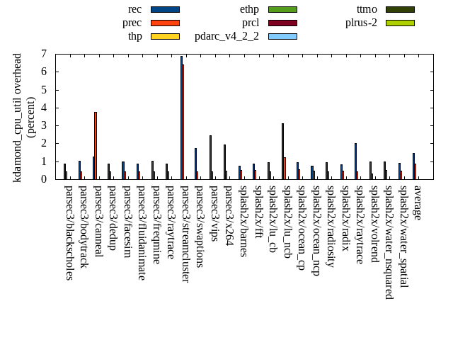 ======= Summary ======= runtime orig rec (overhead) prec (overhead) thp (overhead) ethp (overhead) prcl (overhead) pdarc_v4_2_2 (overhead) ttmo (overhead) plrus-2 (overhead) parsec3/blackscholes 139.309 139.693 (0.28) 139.655 (0.25) 138.645 (-0.48) 139.582 (0.20) 139.894 (0.42) 139.703 (0.28) 139.782 (0.34) 140.566 (0.90) parsec3/bodytrack 124.744 125.918 (0.94) 126.418 (1.34) 124.829 (0.07) 125.648 (0.73) 126.005 (1.01) 125.742 (0.80) 125.116 (0.30) 126.163 (1.14) parsec3/canneal 219.547 227.228 (3.50) 232.403 (5.86) 185.586 (-15.47) 229.858 (4.70) 228.407 (4.04) 234.675 (6.89) 227.540 (3.64) 232.987 (6.12) parsec3/dedup 18.145 18.341 (1.08) 18.266 (0.67) 18.089 (-0.31) 18.262 (0.64) 18.503 (1.97) 18.452 (1.69) 18.356 (1.16) 18.393 (1.37) parsec3/facesim 347.991 353.043 (1.45) 349.200 (0.35) 339.060 (-2.57) 347.628 (-0.10) 348.102 (0.03) 347.875 (-0.03) 348.083 (0.03) 351.396 (0.98) parsec3/fluidanimate 338.682 341.469 (0.82) 340.982 (0.68) 327.929 (-3.17) 338.641 (-0.01) 336.649 (-0.60) 337.888 (-0.23) 344.664 (1.77) 343.084 (1.30) parsec3/freqmine 435.388 437.804 (0.56) 436.344 (0.22) 436.700 (0.30) 437.048 (0.38) 436.506 (0.26) 436.905 (0.35) 436.468 (0.25) 438.401 (0.69) parsec3/raytrace 183.185 185.862 (1.46) 185.779 (1.42) 186.005 (1.54) 185.132 (1.06) 185.985 (1.53) 187.113 (2.14) 187.761 (2.50) 186.387 (1.75) parsec3/streamcluster 685.149 724.476 (5.74) 711.849 (3.90) 642.305 (-6.25) 698.173 (1.90) 723.098 (5.54) 653.093 (-4.68) 723.133 (5.54) 720.948 (5.22) parsec3/swaptions 220.472 222.728 (1.02) 222.086 (0.73) 221.524 (0.48) 222.584 (0.96) 221.615 (0.52) 221.603 (0.51) 222.891 (1.10) 222.578 (0.96) parsec3/vips 87.741 87.828 (0.10) 88.724 (1.12) 87.510 (-0.26) 87.955 (0.24) 87.310 (-0.49) 87.803 (0.07) 93.380 (6.43) 92.647 (5.59) parsec3/x264 115.529 117.106 (1.37) 108.623 (-5.98) 115.133 (-0.34) 117.557 (1.76) 122.707 (6.21) 109.132 (-5.54) 120.150 (4.00) 123.663 (7.04) splash2x/barnes 130.312 132.384 (1.59) 131.751 (1.10) 118.923 (-8.74) 131.706 (1.07) 132.755 (1.87) 132.776 (1.89) 132.014 (1.31) 133.113 (2.15) splash2x/fft 62.636 62.968 (0.53) 62.862 (0.36) 50.147 (-19.94) 63.064 (0.68) 63.477 (1.34) 62.947 (0.50) 68.238 (8.94) 67.916 (8.43) splash2x/lu_cb 133.181 133.419 (0.18) 133.195 (0.01) 133.070 (-0.08) 133.130 (-0.04) 133.057 (-0.09) 133.088 (-0.07) 134.688 (1.13) 134.275 (0.82) splash2x/lu_ncb 151.452 152.704 (0.83) 152.385 (0.62) 151.703 (0.17) 150.656 (-0.53) 153.270 (1.20) 150.510 (-0.62) 151.478 (0.02) 152.736 (0.85) splash2x/ocean_cp 85.886 84.808 (-1.25) 84.674 (-1.41) 80.591 (-6.16) 83.390 (-2.91) 84.395 (-1.73) 84.648 (-1.44) 85.041 (-0.98) 86.751 (1.01) splash2x/ocean_ncp 168.708 168.546 (-0.10) 166.540 (-1.29) 113.275 (-32.86) 171.044 (1.38) 171.891 (1.89) 170.446 (1.03) 179.211 (6.23) 176.443 (4.58) splash2x/radiosity 142.225 142.500 (0.19) 143.031 (0.57) 141.070 (-0.81) 142.029 (-0.14) 142.966 (0.52) 143.124 (0.63) 144.077 (1.30) 144.160 (1.36) splash2x/radix 52.345 52.790 (0.85) 52.682 (0.64) 45.857 (-12.40) 52.709 (0.69) 52.383 (0.07) 53.429 (2.07) 55.859 (6.71) 56.120 (7.21) splash2x/raytrace 133.236 134.200 (0.72) 133.386 (0.11) 132.477 (-0.57) 134.739 (1.13) 137.114 (2.91) 135.635 (1.80) 137.684 (3.34) 137.927 (3.52) splash2x/volrend 120.334 120.489 (0.13) 121.003 (0.56) 119.891 (-0.37) 120.335 (0.00) 120.707 (0.31) 121.248 (0.76) 120.964 (0.52) 120.206 (-0.11) splash2x/water_nsquared 370.579 373.879 (0.89) 372.709 (0.57) 354.967 (-4.21) 369.761 (-0.22) 373.719 (0.85) 372.635 (0.55) 379.161 (2.32) 380.065 (2.56) splash2x/water_spatial 135.535 135.487 (-0.04) 134.906 (-0.46) 135.715 (0.13) 134.707 (-0.61) 135.421 (-0.08) 133.787 (-1.29) 136.615 (0.80) 137.004 (1.08) total 4602.330 4675.680 (1.59) 4649.440 (1.02) 4400.990 (-4.37) 4635.340 (0.72) 4675.950 (1.60) 4594.260 (-0.18) 4712.340 (2.39) 4723.950 (2.64) average 191.764 194.820 (0.95) 193.727 (0.50) 183.375 (-4.68) 193.139 (0.54) 194.831 (1.23) 191.428 (0.34) 196.347 (2.44) 196.831 (2.77) kdamond_cpu_util orig rec (overhead) prec (overhead) thp (overhead) ethp (overhead) prcl (overhead) pdarc_v4_2_2 (overhead) ttmo (overhead) plrus-2 (overhead) parsec3/blackscholes 0.000 0.884 (0.88) 0.444 (0.44) 0.000 (0.00) 0.000 (0.00) 0.000 (0.00) 0.000 (0.00) 0.000 (0.00) 0.000 (0.00) parsec3/bodytrack 0.000 1.018 (1.02) 0.439 (0.44) 0.000 (0.00) 0.000 (0.00) 0.000 (0.00) 0.000 (0.00) 0.000 (0.00) 0.000 (0.00) parsec3/canneal 0.000 1.263 (1.26) 3.764 (3.76) 0.000 (0.00) 0.000 (0.00) 0.000 (0.00) 0.000 (0.00) 0.000 (0.00) 0.000 (0.00) parsec3/dedup 0.000 0.876 (0.88) 0.448 (0.45) 0.000 (0.00) 0.000 (0.00) 0.000 (0.00) 0.000 (0.00) 0.000 (0.00) 0.000 (0.00) parsec3/facesim 0.000 0.986 (0.99) 0.444 (0.44) 0.000 (0.00) 0.000 (0.00) 0.000 (0.00) 0.000 (0.00) 0.000 (0.00) 0.000 (0.00) parsec3/fluidanimate 0.000 0.884 (0.88) 0.449 (0.45) 0.000 (0.00) 0.000 (0.00) 0.000 (0.00) 0.000 (0.00) 0.000 (0.00) 0.000 (0.00) parsec3/freqmine 0.000 1.044 (1.04) 0.443 (0.44) 0.000 (0.00) 0.000 (0.00) 0.000 (0.00) 0.000 (0.00) 0.000 (0.00) 0.000 (0.00) parsec3/raytrace 0.000 0.872 (0.87) 0.453 (0.45) 0.000 (0.00) 0.000 (0.00) 0.000 (0.00) 0.000 (0.00) 0.000 (0.00) 0.000 (0.00) parsec3/streamcluster 0.000 6.879 (6.88) 6.407 (6.41) 0.000 (0.00) 0.000 (0.00) 0.000 (0.00) 0.000 (0.00) 0.000 (0.00) 0.000 (0.00) parsec3/swaptions 0.000 1.731 (1.73) 0.430 (0.43) 0.000 (0.00) 0.000 (0.00) 0.000 (0.00) 0.000 (0.00) 0.000 (0.00) 0.000 (0.00) parsec3/vips 0.000 2.436 (2.44) 0.421 (0.42) 0.000 (0.00) 0.000 (0.00) 0.000 (0.00) 0.000 (0.00) 0.000 (0.00) 0.000 (0.00) parsec3/x264 0.000 1.941 (1.94) 0.457 (0.46) 0.000 (0.00) 0.000 (0.00) 0.000 (0.00) 0.000 (0.00) 0.000 (0.00) 0.000 (0.00) splash2x/barnes 0.000 0.753 (0.75) 0.516 (0.52) 0.000 (0.00) 0.000 (0.00) 0.000 (0.00) 0.000 (0.00) 0.000 (0.00) 0.000 (0.00) splash2x/fft 0.000 0.884 (0.88) 0.512 (0.51) 0.000 (0.00) 0.000 (0.00) 0.000 (0.00) 0.000 (0.00) 0.000 (0.00) 0.000 (0.00) splash2x/lu_cb 0.000 0.937 (0.94) 0.448 (0.45) 0.000 (0.00) 0.000 (0.00) 0.000 (0.00) 0.000 (0.00) 0.000 (0.00) 