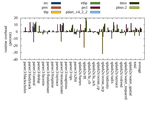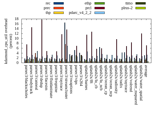 ======= Summary ======= runtime orig rec (overhead) prec (overhead) thp (overhead) ethp (overhead) prcl (overhead) pdarc_v4_2_2 (overhead) ttmo (overhead) plrus-2 (overhead) parsec3/blackscholes 139.146 139.647 (0.36) 140.128 (0.71) 139.865 (0.52) 139.619 (0.34) 148.103 (6.44) 140.484 (0.96) 139.895 (0.54) 140.411 (0.91) parsec3/bodytrack 125.255 126.390 (0.91) 124.860 (-0.31) 124.748 (-0.40) 126.469 (0.97) 142.672 (13.91) 127.621 (1.89) 125.296 (0.03) 124.916 (-0.27) parsec3/canneal 204.223 220.238 (7.84) 231.757 (13.48) 174.325 (-14.64) 216.824 (6.17) 226.694 (11.00) 229.321 (12.29) 225.345 (10.34) 233.080 (14.13) parsec3/dedup 18.488 18.565 (0.41) 18.479 (-0.05) 18.216 (-1.47) 18.374 (-0.62) 20.118 (8.82) 18.438 (-0.27) 18.327 (-0.87) 18.279 (-1.13) parsec3/facesim 349.357 347.072 (-0.65) 349.946 (0.17) 337.054 (-3.52) 341.773 (-2.17) 359.051 (2.77) 349.532 (0.05) 346.404 (-0.85) 354.294 (1.41) parsec3/fluidanimate 336.897 335.487 (-0.42) 338.437 (0.46) 326.406 (-3.11) 336.204 (-0.21) 341.566 (1.39) 343.229 (1.88) 342.348 (1.62) 342.506 (1.67) parsec3/freqmine 435.697 435.656 (-0.01) 435.833 (0.03) 435.466 (-0.05) 437.544 (0.42) 445.193 (2.18) 438.384 (0.62) 437.152 (0.33) 436.903 (0.28) parsec3/raytrace 185.098 184.427 (-0.36) 186.126 (0.56) 184.541 (-0.30) 184.109 (-0.53) 204.967 (10.73) 185.797 (0.38) 186.493 (0.75) 184.981 (-0.06) parsec3/streamcluster 638.573 709.316 (11.08) 703.462 (10.16) 549.856 (-13.89) 646.914 (1.31) 699.263 (9.50) 688.600 (7.83) 720.902 (12.89) 712.349 (11.55) parsec3/swaptions 221.837 222.969 (0.51) 221.788 (-0.02) 221.381 (-0.21) 221.894 (0.03) 226.128 (1.93) 222.233 (0.18) 224.052 (1.00) 223.702 (0.84) parsec3/vips 87.334 89.325 (2.28) 88.480 (1.31) 87.943 (0.70) 88.446 (1.27) 91.041 (4.24) 92.424 (5.83) 95.674 (9.55) 96.207 (10.16) parsec3/x264 118.385 114.706 (-3.11) 123.755 (4.54) 116.633 (-1.48) 115.196 (-2.69) 114.449 (-3.32) 114.386 (-3.38) 120.352 (1.66) 122.368 (3.36) splash2x/barnes 130.608 130.869 (0.20) 133.718 (2.38) 119.601 (-8.43) 128.695 (-1.46) 144.739 (10.82) 132.975 (1.81) 132.881 (1.74) 133.143 (1.94) splash2x/fft 61.892 62.944 (1.70) 63.494 (2.59) 47.991 (-22.46) 62.983 (1.76) 65.242 (5.41) 63.830 (3.13) 74.153 (19.81) 71.562 (15.63) splash2x/lu_cb 132.508 133.127 (0.47) 133.426 (0.69) 132.916 (0.31) 133.492 (0.74) 138.928 (4.84) 133.256 (0.56) 134.719 (1.67) 134.414 (1.44) splash2x/lu_ncb 151.756 152.344 (0.39) 152.624 (0.57) 149.724 (-1.34) 151.009 (-0.49) 152.950 (0.79) 152.145 (0.26) 152.899 (0.75) 152.707 (0.63) splash2x/ocean_cp 83.798 82.695 (-1.32) 83.206 (-0.71) 81.217 (-3.08) 80.453 (-3.99) 80.965 (-3.38) 83.990 (0.23) 87.338 (4.23) 84.474 (0.81) splash2x/ocean_ncp 162.985 167.628 (2.85) 169.809 (4.19) 111.619 (-31.52) 151.946 (-6.77) 174.862 (7.29) 175.446 (7.65) 180.853 (10.96) 182.389 (11.91) splash2x/radiosity 142.541 143.412 (0.61) 142.753 (0.15) 142.712 (0.12) 142.531 (-0.01) 151.314 (6.15) 143.762 (0.86) 145.832 (2.31) 145.239 (1.89) splash2x/radix 52.227 52.320 (0.18) 53.434 (2.31) 47.326 (-9.38) 51.820 (-0.78) 52.224 (-0.01) 54.558 (4.46) 59.544 (14.01) 56.962 (9.07) splash2x/raytrace 133.447 136.392 (2.21) 134.871 (1.07) 135.098 (1.24) 135.825 (1.78) 147.682 (10.67) 134.992 (1.16) 139.517 (4.55) 138.900 (4.09) splash2x/volrend 122.087 121.209 (-0.72) 120.889 (-0.98) 120.176 (-1.56) 120.129 (-1.60) 126.445 (3.57) 121.035 (-0.86) 121.085 (-0.82) 120.566 (-1.25) splash2x/water_nsquared 369.883 376.996 (1.92) 371.497 (0.44) 351.686 (-4.92) 362.001 (-2.13) 410.360 (10.94) 374.936 (1.37) 385.101 (4.11) 390.964 (5.70) splash2x/water_spatial 133.833 135.278 (1.08) 134.540 (0.53) 134.536 (0.53) 135.029 (0.89) 150.536 (12.48) 136.735 (2.17) 136.037 (1.65) 136.764 (2.19) total 4537.870 4639.020 (2.23) 4657.320 (2.63) 4291.050 (-5.44) 4529.270 (-0.19) 4815.490 (6.12) 4658.100 (2.65) 4732.190 (4.28) 4738.070 (4.41) average 189.078 193.293 (1.18) 194.055 (1.84) 178.794 (-4.93) 188.720 (-0.32) 200.645 (5.80) 194.088 (2.13) 197.175 (4.25) 197.420 (4.04) kdamond_cpu_util orig rec (overhead) prec (overhead) thp (overhead) ethp (overhead) prcl (overhead) pdarc_v4_2_2 (overhead) ttmo (overhead) plrus-2 (overhead) parsec3/blackscholes 0.000 1.730 (1.73) 0.956 (0.96) 0.000 (0.00) 1.359 (1.36) 7.566 (7.57) 2.654 (2.65) 0.000 (0.00) 1.547 (1.55) parsec3/bodytrack 0.000 2.136 (2.14) 0.700 (0.70) 0.000 (0.00) 1.557 (1.56) 14.523 (14.52) 3.180 (3.18) 0.000 (0.00) 1.502 (1.50) parsec3/canneal 0.000 2.417 (2.42) 3.969 (3.97) 0.000 (0.00) 1.927 (1.93) 2.310 (2.31) 4.796 (4.80) 0.000 (0.00) 0.823 (0.82) parsec3/dedup 0.000 1.700 (1.70) 0.748 (0.75) 0.000 (0.00) 1.526 (1.53) 17.724 (17.72) 2.588 (2.59) 0.000 (0.00) 0.303 (0.30) parsec3/facesim 0.000 1.897 (1.90) 0.725 (0.73) 0.000 (0.00) 2.015 (2.01) 4.793 (4.79) 3.091 (3.09) 0.000 (0.00) 0.550 (0.55) parsec3/fluidanimate 0.000 1.754 (1.75) 0.723 (0.72) 0.000 (0.00) 1.398 (1.40) 2.350 (2.35) 3.204 (3.20) 0.000 (0.00) 0.556 (0.56) parsec3/freqmine 0.000 1.779 (1.78) 0.730 (0.73) 0.000 (0.00) 1.416 (1.42) 4.705 (4.71) 2.984 (2.98) 0.000 (0.00) 0.547 (0.55) parsec3/raytrace 0.000 1.712 (1.71) 0.749 (0.75) 0.000 (0.00) 1.415 (1.41) 11.678 (11.68) 1.855 (1.85) 0.000 (0.00) 0.536 (0.54) parsec3/streamcluster 0.000 16.524 (16.52) 7.610 (7.61) 0.000 (0.00) 1.410 (1.41) 13.600 (13.60) 6.878 (6.88) 0.000 (0.00) 0.538 (0.54) parsec3/swaptions 0.000 3.485 (3.49) 0.707 (0.71) 0.000 (0.00) 2.680 (2.68) 3.025 (3.03) 3.135 (3.14) 0.000 (0.00) 0.534 (0.53) parsec3/vips 0.000 5.200 (5.20) 0.632 (0.63) 0.000 (0.00) 3.072 (3.07) 6.889 (6.89) 2.531 (2.53) 0.000 (0.00) 0.486 (0.49) parsec3/x264 0.000 4.081 (4.08) 0.716 (0.72) 0.000 (0.00) 3.167 (3.17) 3.102 (3.10) 2.612 (2.61) 0.000 (0.00) 0.513 (0.51) splash2x/barnes 0.000 1.548 (1.55) 0.775 (0.77) 0.000 (0.00) 1.269 (1.27) 11.528 (11.53) 4.531 (4.53) 0.000 (0.00) 0.523 (0.52) splash2x/fft 0.000 1.828 (1.83) 0.825 (0.83) 0.000 (0.00) 1.512 (1.51) 12.736 (12.74) 2.694 (2.69) 0.000 (0.00) 0.534 (0.53) splash2x/lu_cb 0.000 1.895 (1.90) 0.710 (0.71) 0.000 (0.00) 1.451 (1