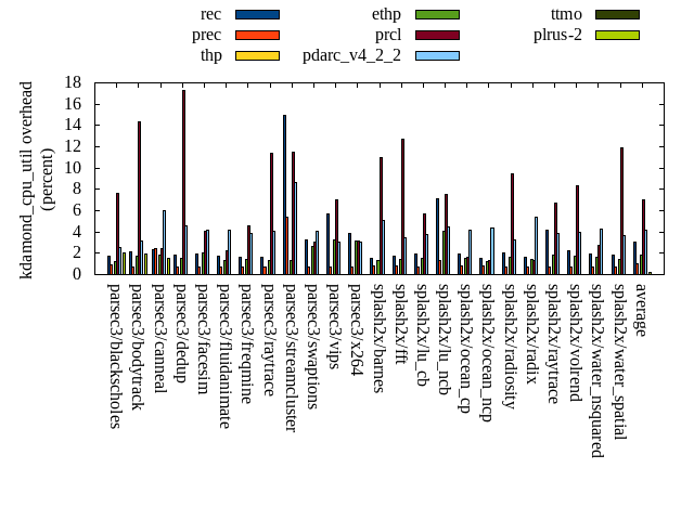======= Summary ======= runtime orig rec (overhead) prec (overhead) thp (overhead) ethp (overhead) prcl (overhead) pdarc_v4_2_2 (overhead) ttmo (overhead) plrus-2 (overhead) parsec3/blackscholes 139.390 139.732 (0.25) 139.440 (0.04) 138.676 (-0.51) 140.109 (0.52) 148.376 (6.45) 140.335 (0.68) 140.080 (0.50) 140.278 (0.64) parsec3/bodytrack 124.781 126.269 (1.19) 126.160 (1.10) 124.080 (-0.56) 125.407 (0.50) 142.320 (14.06) 127.154 (1.90) 125.071 (0.23) 125.550 (0.62) parsec3/canneal 218.655 228.232 (4.38) 221.715 (1.40) 191.045 (-12.63) 214.669 (-1.82) 233.522 (6.80) 229.265 (4.85) 238.527 (9.09) 236.444 (8.14) parsec3/dedup 18.091 18.296 (1.13) 18.403 (1.73) 17.979 (-0.62) 18.301 (1.16) 20.051 (10.83) 18.531 (2.43) 18.243 (0.84) 18.181 (0.50) parsec3/facesim 345.570 353.476 (2.29) 349.868 (1.24) 338.891 (-1.93) 341.422 (-1.20) 360.280 (4.26) 355.902 (2.99) 354.707 (2.64) 353.491 (2.29) parsec3/fluidanimate 338.546 339.959 (0.42) 335.655 (-0.85) 328.495 (-2.97) 334.661 (-1.15) 340.196 (0.49) 335.060 (-1.03) 343.172 (1.37) 339.941 (0.41) parsec3/freqmine 435.047 438.736 (0.85) 435.492 (0.10) 434.781 (-0.06) 436.564 (0.35) 445.827 (2.48) 438.648 (0.83) 438.150 (0.71) 436.810 (0.41) parsec3/raytrace 186.767 184.405 (-1.26) 187.441 (0.36) 187.083 (0.17) 184.489 (-1.22) 198.802 (6.44) 185.591 (-0.63) 184.914 (-0.99) 187.015 (0.13) parsec3/streamcluster 680.884 766.881 (12.63) 730.495 (7.29) 585.439 (-14.02) 630.470 (-7.40) 747.251 (9.75) 685.457 (0.67) 684.779 (0.57) 690.087 (1.35) parsec3/swaptions 221.167 222.130 (0.44) 221.468 (0.14) 221.595 (0.19) 221.847 (0.31) 225.911 (2.14) 222.111 (0.43) 221.010 (-0.07) 221.816 (0.29) parsec3/vips 87.373 88.825 (1.66) 88.491 (1.28) 88.013 (0.73) 88.902 (1.75) 91.005 (4.16) 93.983 (7.57) 94.703 (8.39) 95.292 (9.06) parsec3/x264 117.885 123.047 (4.38) 115.544 (-1.99) 118.201 (0.27) 113.906 (-3.38) 115.210 (-2.27) 112.728 (-4.37) 113.294 (-3.89) 122.488 (3.90) splash2x/barnes 129.459 131.110 (1.28) 132.203 (2.12) 118.845 (-8.20) 127.926 (-1.18) 145.457 (12.36) 133.138 (2.84) 133.919 (3.45) 132.931 (2.68) splash2x/fft 61.219 63.381 (3.53) 63.155 (3.16) 47.512 (-22.39) 62.146 (1.51) 66.056 (7.90) 63.458 (3.66) 69.574 (13.65) 70.166 (14.61) splash2x/lu_cb 132.941 133.229 (0.22) 133.756 (0.61) 133.608 (0.50) 134.106 (0.88) 138.952 (4.52) 133.635 (0.52) 134.961 (1.52) 133.917 (0.73) splash2x/lu_ncb 150.866 152.871 (1.33) 153.165 (1.52) 152.129 (0.84) 151.902 (0.69) 152.782 (1.27) 152.287 (0.94) 151.930 (0.70) 152.513 (1.09) splash2x/ocean_cp 85.837 82.730 (-3.62) 85.208 (-0.73) 82.933 (-3.38) 86.906 (1.25) 83.368 (-2.88) 82.330 (-4.09) 85.668 (-0.20) 90.103 (4.97) splash2x/ocean_ncp 160.927 173.738 (7.96) 171.937 (6.84) 102.158 (-36.52) 153.554 (-4.58) 173.125 (7.58) 171.232 (6.40) 183.944 (14.30) 187.141 (16.29) splash2x/radiosity 142.379 143.599 (0.86) 143.171 (0.56) 142.379 (-0.00) 142.578 (0.14) 152.224 (6.91) 144.430 (1.44) 145.857 (2.44) 146.517 (2.91) splash2x/radix 51.220 51.678 (0.89) 52.763 (3.01) 45.464 (-11.24) 50.275 (-1.85) 52.728 (2.94) 55.801 (8.94) 57.958 (13.15) 58.655 (14.51) splash2x/raytrace 134.159 134.383 (0.17) 135.824 (1.24) 134.463 (0.23) 133.065 (-0.82) 143.662 (7.08) 134.906 (0.56) 137.834 (2.74) 137.278 (2.32) splash2x/volrend 119.904 120.796 (0.74) 120.754 (0.71) 119.463 (-0.37) 120.604 (0.58) 125.663 (4.80) 121.168 (1.05) 120.742 (0.70) 120.582 (0.57) splash2x/water_nsquared 368.687 374.375 (1.54) 372.465 (1.02) 352.985 (-4.26) 362.840 (-1.59) 410.660 (11.38) 372.448 (1.02) 387.654 (5.14) 389.294 (5.59) splash2x/water_spatial 134.011 134.686 (0.50) 134.286 (0.21) 134.207 (0.15) 134.709 (0.52) 150.739 (12.48) 136.249 (1.67) 136.821 (2.10) 135.561 (1.16) total 4585.780 4726.590 (3.07) 4668.850 (1.81) 4340.410 (-5.35) 4511.360 (-1.62) 4864.180 (6.07) 4645.860 (1.31) 4703.490 (2.57) 4722.070 (2.97) average 191.074 196.941 (1.82) 194.535 (1.34) 180.850 (-4.86) 187.973 (-0.67) 202.674 (5.91) 193.577 (1.72) 195.979 (3.30) 196.753 (3.97) kdamond_cpu_util orig rec (overhead) prec (overhead) thp (overhead) ethp (overhead) prcl (overhead) pdarc_v4_2_2 (overhead) ttmo (overhead) plrus-2 (overhead) parsec3/blackscholes 0.000 1.701 (1.70) 0.929 (0.93) 0.000 (0.00) 1.271 (1.27) 7.640 (7.64) 2.542 (2.54) 0.000 (0.00) 2.065 (2.07) parsec3/bodytrack 0.000 2.155 (2.15) 0.693 (0.69) 0.000 (0.00) 1.712 (1.71) 14.372 (14.37) 3.144 (3.14) 0.000 (0.00) 1.980 (1.98) parsec3/canneal 0.000 2.385 (2.39) 2.465 (2.47) 0.000 (0.00) 1.782 (1.78) 2.444 (2.44) 6.015 (6.01) 0.000 (0.00) 1.494 (1.49) parsec3/dedup 0.000 1.876 (1.88) 0.696 (0.70) 0.000 (0.00) 1.535 (1.54) 17.254 (17.25) 4.527 (4.53) 0.000 (0.00) 0.000 (0.00) parsec3/facesim 0.000 1.931 (1.93) 0.703 (0.70) 0.000 (0.00) 2.001 (2.00) 4.051 (4.05) 4.155 (4.15) 0.000 (0.00) 0.000 (0.00) parsec3/fluidanimate 0.000 1.754 (1.75) 0.737 (0.74) 0.000 (0.00) 1.333 (1.33) 2.238 (2.24) 4.207 (4.21) 0.000 (0.00) 0.000 (0.00) parsec3/freqmine 0.000 1.672 (1.67) 0.712 (0.71) 0.000 (0.00) 1.376 (1.38) 4.581 (4.58) 3.845 (3.85) 0.000 (0.00) 0.000 (0.00) parsec3/raytrace 0.000 1.650 (1.65) 0.721 (0.72) 0.000 (0.00) 1.368 (1.37) 11.396 (11.40) 4.046 (4.05) 0.000 (0.00) 0.000 (0.00) parsec3/streamcluster 0.000 14.958 (14.96) 5.340 (5.34) 0.000 (0.00) 1.339 (1.34) 11.517 (11.52) 8.652 (8.65) 0.000 (0.00) 0.000 (0.00) parsec3/swaptions 0.000 3.274 (3.27) 0.694 (0.69) 0.000 (0.00) 2.641 (2.64) 3.083 (3.08) 4.043 (4.04) 0.000 (0.00) 0.000 (0.00) parsec3/vips 0.000 5.699 (5.70) 0.696 (0.70) 0.000 (0.00) 3.223 (3.22) 6.999 (7.00) 3.067 (3.07) 0.000 (0.00) 0.000 (0.00) parsec3/x264 0.000 3.884 (3.88) 0.711 (0.71) 0.000 (0.00) 3.188 (3.19) 3.129 (3.13) 3.081 (3.08) 0.000 (0.00) 0.000 (0.00) splash2x/barnes 0.000 1.535 (1.54) 0.812 (0.81) 0.000 (0.00) 1.316 (1.32) 10.976 (10.98) 5.119 (5.12) 0.000 (0.00) 0.000 (0.00) splash2x/fft 0.000 1.770 (1.77) 0.815 (0.82) 0.000 (0.00) 1.439 (1.44) 12.715 (12.72) 3.463 (3.46) 0.000 (0.00) 0.000 (0.00) splash2x/lu_cb 0.000 1.909 (1.91) 0.729 (0.73) 0.000 (0.00) 1.531 (1.53) 5.734 (5.73) 3.75