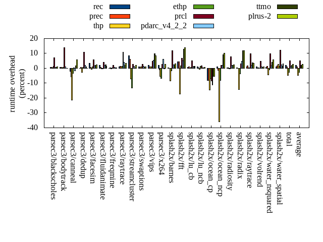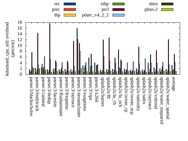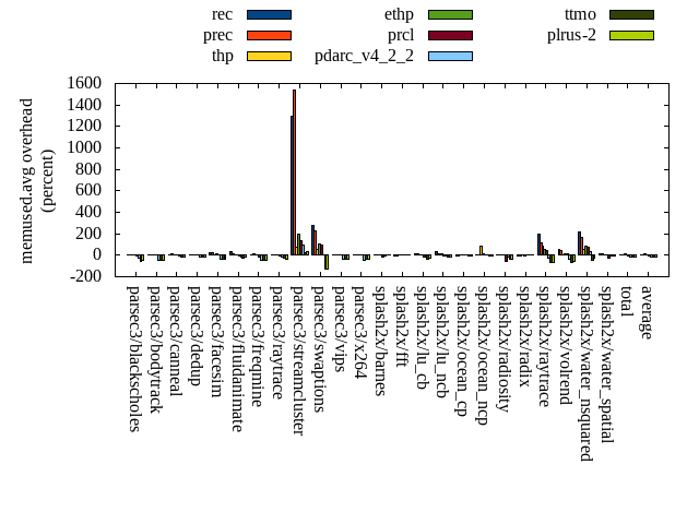 ======= Summary ======= runtime orig rec (overhead) prec (overhead) thp (overhead) ethp (overhead) prcl (overhead) pdarc_v4_2_2 (overhead) ttmo (overhead) plrus-2 (overhead) parsec3/blackscholes 139.119 139.933 (0.59) 140.172 (0.76) 139.537 (0.30) 140.854 (1.25) 148.809 (6.97) 140.103 (0.71) 140.170 (0.76) 140.477 (0.98) parsec3/bodytrack 125.288 126.264 (0.78) 125.965 (0.54) 125.507 (0.17) 126.032 (0.59) 142.874 (14.04) 126.393 (0.88) 125.301 (0.01) 125.163 (-0.10) parsec3/canneal 229.773 224.767 (-2.18) 216.653 (-5.71) 181.021 (-21.22) 221.825 (-3.46) 230.833 (0.46) 225.847 (-1.71) 233.350 (1.56) 242.708 (5.63) parsec3/dedup 18.198 18.193 (-0.03) 18.311 (0.62) 17.686 (-2.82) 18.342 (0.79) 20.175 (10.86) 18.565 (2.02) 18.362 (0.90) 18.219 (0.11) parsec3/facesim 343.487 355.573 (3.52) 345.837 (0.68) 341.012 (-0.72) 346.699 (0.94) 363.619 (5.86) 349.748 (1.82) 350.430 (2.02) 351.294 (2.27) parsec3/fluidanimate 333.932 341.097 (2.15) 336.594 (0.80) 332.704 (-0.37) 332.443 (-0.45) 347.416 (4.04) 340.823 (2.06) 341.931 (2.40) 338.664 (1.42) parsec3/freqmine 436.479 436.453 (-0.01) 437.225 (0.17) 435.013 (-0.34) 437.342 (0.20) 445.993 (2.18) 440.107 (0.83) 438.288 (0.41) 437.923 (0.33) parsec3/raytrace 182.449 184.553 (1.15) 184.972 (1.38) 184.564 (1.16) 184.779 (1.28) 202.404 (10.94) 190.081 (4.18) 185.878 (1.88) 188.485 (3.31) parsec3/streamcluster 685.032 742.258 (8.35) 727.408 (6.19) 636.562 (-7.08) 593.429 (-13.37) 702.974 (2.62) 693.353 (1.21) 687.123 (0.31) 698.229 (1.93) parsec3/swaptions 220.340 222.531 (0.99) 221.488 (0.52) 222.444 (0.95) 222.406 (0.94) 226.519 (2.80) 223.606 (1.48) 221.982 (0.75) 222.437 (0.95) parsec3/vips 87.226 88.965 (1.99) 88.015 (0.90) 88.039 (0.93) 88.151 (1.06) 91.297 (4.67) 91.861 (5.31) 95.941 (9.99) 94.618 (8.47) parsec3/x264 116.642 119.192 (2.19) 115.572 (-0.92) 110.284 (-5.45) 108.836 (-6.69) 119.981 (2.86) 123.874 (6.20) 116.164 (-0.41) 119.791 (2.70) splash2x/barnes 130.659 131.048 (0.30) 130.800 (0.11) 119.785 (-8.32) 128.226 (-1.86) 146.242 (11.93) 133.647 (2.29) 133.931 (2.50) 134.749 (3.13) splash2x/fft 61.550 64.275 (4.43) 64.241 (4.37) 50.861 (-17.37) 62.697 (1.86) 65.663 (6.68) 64.690 (5.10) 69.411 (12.77) 70.187 (14.03) splash2x/lu_cb 132.844 133.880 (0.78) 134.130 (0.97) 132.848 (0.00) 133.560 (0.54) 139.530 (5.03) 134.036 (0.90) 134.504 (1.25) 134.545 (1.28) splash2x/lu_ncb 151.285 152.846 (1.03) 151.779 (0.33) 150.495 (-0.52) 153.230 (1.29) 153.715 (1.61) 151.855 (0.38) 151.771 (0.32) 152.093 (0.53) splash2x/ocean_cp 90.700 83.426 (-8.02) 83.280 (-8.18) 77.563 (-14.48) 84.382 (-6.97) 82.896 (-8.60) 80.706 (-11.02) 85.827 (-5.37) 85.911 (-5.28) splash2x/ocean_ncp 166.977 168.665 (1.01) 164.804 (-1.30) 106.781 (-36.05) 153.407 (-8.13) 170.647 (2.20) 170.402 (2.05) 182.360 (9.21) 183.891 (10.13) splash2x/radiosity 142.759 143.419 (0.46) 143.336 (0.40) 142.330 (-0.30) 142.376 (-0.27) 153.770 (7.71) 145.494 (1.92) 145.763 (2.10) 146.271 (2.46) splash2x/radix 52.306 52.432 (0.24) 52.315 (0.02) 44.889 (-14.18) 50.309 (-3.82) 53.953 (3.15) 54.846 (4.86) 58.500 (11.84) 58.448 (11.74) splash2x/raytrace 133.410 134.833 (1.07) 135.660 (1.69) 134.046 (0.48) 133.809 (0.30) 146.734 (9.99) 136.211 (2.10) 138.309 (3.67) 137.851 (3.33) splash2x/volrend 120.250 121.465 (1.01) 120.838 (0.49) 120.485 (0.20) 120.323 (0.06) 125.959 (4.75) 121.522 (1.06) 120.913 (0.55) 121.493 (1.03) splash2x/water_nsquared 372.000 374.736 (0.74) 376.992 (1.34) 355.534 (-4.43) 368.297 (-1.00) 408.392 (9.78) 378.568 (1.77) 386.751 (3.97) 393.902 (5.89) splash2x/water_spatial 133.163 134.617 (1.09) 135.576 (1.81) 136.563 (2.55) 134.791 (1.22) 149.500 (12.27) 136.492 (2.50) 135.077 (1.44) 137.153 (3.00) total 4605.870 4695.440 (1.94) 4651.970 (1.00) 4386.530 (-4.76) 4486.560 (-2.59) 4839.890 (5.08) 4672.830 (1.45) 4698.020 (2.00) 4734.510 (2.79) average 191.911 195.643 (0.98) 193.832 (0.33) 182.772 (-5.29) 186.940 (-1.40) 201.662 (5.62) 194.701 (1.62) 195.751 (2.70) 197.271 (3.30) kdamond_cpu_util orig rec (overhead) prec (overhead) thp (overhead) ethp (overhead) prcl (overhead) pdarc_v4_2_2 (overhead) ttmo (overhead) plrus-2 (overhead) parsec3/blackscholes 0.000 1.715 (1.72) 0.935 (0.93) 0.000 (0.00) 1.362 (1.36) 7.669 (7.67) 2.522 (2.52) 0.000 (0.00) 2.099 (2.10) parsec3/bodytrack 0.000 2.208 (2.21) 0.684 (0.68) 0.000 (0.00) 1.686 (1.69) 14.315 (14.32) 3.204 (3.20) 0.000 (0.00) 1.995 (2.00) parsec3/canneal 0.000 2.431 (2.43) 3.530 (3.53) 0.000 (0.00) 1.896 (1.90) 2.560 (2.56) 6.220 (6.22) 0.000 (0.00) 1.524 (1.52) parsec3/dedup 0.000 1.709 (1.71) 0.711 (0.71) 0.000 (0.00) 1.500 (1.50) 17.588 (17.59) 5.287 (5.29) 0.000 (0.00) 0.784 (0.78) parsec3/facesim 0.000 1.967 (1.97) 0.703 (0.70) 0.000 (0.00) 1.985 (1.98) 4.830 (4.83) 4.164 (4.16) 0.000 (0.00) 1.073 (1.07) parsec3/fluidanimate 0.000 1.721 (1.72) 0.707 (0.71) 0.000 (0.00) 1.381 (1.38) 2.201 (2.20) 4.135 (4.14) 0.000 (0.00) 1.080 (1.08) parsec3/freqmine 0.000 1.834 (1.83) 0.711 (0.71) 0.000 (0.00) 1.461 (1.46) 4.651 (4.65) 3.876 (3.88) 0.000 (0.00) 1.070 (1.07) parsec3/raytrace 0.000 1.729 (1.73) 0.706 (0.71) 0.000 (0.00) 1.371 (1.37) 11.490 (11.49) 2.999 (3.00) 0.000 (0.00) 1.044 (1.04) parsec3/streamcluster 0.000 15.947 (15.95) 12.200 (12.20) 0.000 (0.00) 1.312 (1.31) 10.758 (10.76) 8.052 (8.05) 0.000 (0.00) 2.178 (2.18) parsec3/swaptions 0.000 3.091 (3.09) 0.700 (0.70) 0.000 (0.00) 2.399 (2.40) 3.205 (3.21) 4.132 (4.13) 0.000 (0.00) 0.980 (0.98) parsec3/vips 0.000 5.813 (5.81) 0.667 (0.67) 0.000 (0.00) 2.775 (2.77) 7.081 (7.08) 3.109 (3.11) 0.000 (0.00) 0.993 (0.99) parsec3/x264 0.000 4.117 (4.12) 0.701 (0.70) 0.000 (0.00) 3.113 (3.11) 3.208 (3.21) 3.422 (3.42) 0.000 (0.00) 1.004 (1.00) splash2x/barnes 0.000 1.567 (1.57) 0.764 (0.76) 0.000 (0.00) 1.357 (1.36) 12.013 (12.01) 6.181 (6.18) 0.000 (0.00) 0.936 (0.94) splash2x/fft 0.000 1.831 (1.83) 0.812 (0.81) 0.000 (0.00) 1.473 (1.47) 12.732 (12.73) 4.719 (4.72) 0.000 (0.00) 1.081 (1.08) splash2x/lu_cb 0.000 1.874 (1.87) 0.712 (0.71) 0.000 (0.00) 1.536 (1.54) 5.703 (5.70) 3.97