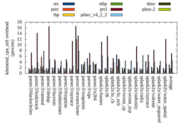 ======= Summary ======= runtime orig rec (overhead) prec (overhead) thp (overhead) ethp (overhead) prcl (overhead) pdarc_v4_2_2 (overhead) ttmo (overhead) plrus-2 (overhead) parsec3/blackscholes 139.685 139.547 (-0.10) 139.939 (0.18) 138.284 (-1.00) 139.959 (0.20) 148.140 (6.05) 140.581 (0.64) 140.666 (0.70) 140.497 (0.58) parsec3/bodytrack 125.872 125.797 (-0.06) 125.536 (-0.27) 124.536 (-1.06) 125.942 (0.06) 141.488 (12.41) 126.790 (0.73) 125.131 (-0.59) 125.318 (-0.44) parsec3/canneal 213.731 219.340 (2.62) 230.745 (7.96) 184.597 (-13.63) 215.882 (1.01) 242.349 (13.39) 245.120 (14.69) 230.813 (7.99) 220.422 (3.13) parsec3/dedup 18.053 18.400 (1.93) 18.069 (0.09) 17.969 (-0.46) 18.236 (1.01) 20.369 (12.83) 18.504 (2.50) 18.400 (1.92) 18.379 (1.81) parsec3/facesim 345.192 348.474 (0.95) 352.875 (2.23) 346.137 (0.27) 348.642 (1.00) 362.512 (5.02) 353.872 (2.51) 354.210 (2.61) 346.320 (0.33) parsec3/fluidanimate 344.346 344.757 (0.12) 337.100 (-2.10) 324.097 (-5.88) 330.866 (-3.91) 345.762 (0.41) 337.841 (-1.89) 341.713 (-0.76) 339.890 (-1.29) parsec3/freqmine 436.100 436.369 (0.06) 436.081 (-0.00) 436.871 (0.18) 436.899 (0.18) 447.068 (2.51) 438.853 (0.63) 438.871 (0.64) 437.320 (0.28) parsec3/raytrace 185.951 187.057 (0.59) 185.622 (-0.18) 186.627 (0.36) 185.751 (-0.11) 199.083 (7.06) 187.654 (0.92) 187.478 (0.82) 189.130 (1.71) parsec3/streamcluster 693.813 728.408 (4.99) 678.408 (-2.22) 585.070 (-15.67) 634.006 (-8.62) 711.996 (2.62) 684.600 (-1.33) 730.158 (5.24) 653.211 (-5.85) parsec3/swaptions 220.270 222.671 (1.09) 221.430 (0.53) 222.908 (1.20) 222.657 (1.08) 224.464 (1.90) 221.798 (0.69) 221.898 (0.74) 222.793 (1.15) parsec3/vips 87.310 88.908 (1.83) 88.023 (0.82) 87.846 (0.61) 87.746 (0.50) 91.375 (4.66) 93.041 (6.56) 94.963 (8.77) 95.579 (9.47) parsec3/x264 117.898 123.701 (4.92) 120.933 (2.57) 118.919 (0.87) 109.473 (-7.15) 116.668 (-1.04) 116.427 (-1.25) 117.749 (-0.13) 122.045 (3.52) splash2x/barnes 130.998 130.926 (-0.06) 133.371 (1.81) 120.313 (-8.16) 130.011 (-0.75) 145.660 (11.19) 135.237 (3.24) 133.686 (2.05) 132.612 (1.23) splash2x/fft 61.949 63.130 (1.91) 63.172 (1.97) 47.424 (-23.45) 61.521 (-0.69) 65.291 (5.40) 65.859 (6.31) 71.598 (15.58) 70.564 (13.91) splash2x/lu_cb 132.913 134.118 (0.91) 132.998 (0.06) 133.393 (0.36) 133.905 (0.75) 139.158 (4.70) 134.159 (0.94) 134.809 (1.43) 134.627 (1.29) splash2x/lu_ncb 151.250 152.864 (1.07) 151.785 (0.35) 152.155 (0.60) 153.945 (1.78) 153.324 (1.37) 151.934 (0.45) 152.907 (1.10) 154.701 (2.28) splash2x/ocean_cp 82.486 88.063 (6.76) 82.468 (-0.02) 88.092 (6.80) 79.355 (-3.80) 83.953 (1.78) 88.320 (7.07) 84.460 (2.39) 87.082 (5.57) splash2x/ocean_ncp 164.234 167.526 (2.00) 172.845 (5.24) 101.976 (-37.91) 150.156 (-8.57) 174.426 (6.21) 170.349 (3.72) 187.143 (13.95) 185.705 (13.07) splash2x/radiosity 142.146 142.873 (0.51) 143.377 (0.87) 142.415 (0.19) 143.324 (0.83) 152.003 (6.93) 144.914 (1.95) 146.285 (2.91) 146.215 (2.86) splash2x/radix 51.373 53.020 (3.20) 52.213 (1.63) 45.628 (-11.18) 52.141 (1.49) 54.227 (5.56) 57.286 (11.51) 58.069 (13.03) 58.966 (14.78) splash2x/raytrace 135.630 136.821 (0.88) 134.718 (-0.67) 133.639 (-1.47) 133.589 (-1.51) 145.019 (6.92) 134.527 (-0.81) 139.109 (2.57) 138.778 (2.32) splash2x/volrend 120.263 121.145 (0.73) 120.666 (0.33) 119.301 (-0.80) 120.484 (0.18) 125.759 (4.57) 121.071 (0.67) 121.232 (0.81) 120.457 (0.16) splash2x/water_nsquared 372.950 373.799 (0.23) 371.353 (-0.43) 357.734 (-4.08) 369.128 (-1.02) 418.867 (12.31) 377.516 (1.22) 385.977 (3.49) 392.172 (5.15) splash2x/water_spatial 133.805 134.861 (0.79) 135.383 (1.18) 135.638 (1.37) 135.876 (1.55) 151.848 (13.48) 136.411 (1.95) 136.796 (2.24) 136.431 (1.96) total 4608.220 4682.570 (1.61) 4629.090 (0.45) 4351.570 (-5.57) 4519.500 (-1.93) 4860.820 (5.48) 4682.670 (1.62) 4754.140 (3.17) 4669.200 (1.32) average 192.009 195.107 (1.58) 192.879 (0.91) 181.315 (-4.66) 188.312 (-1.02) 202.534 (6.18) 195.111 (2.65) 198.089 (3.73) 194.550 (3.29) kdamond_cpu_util orig rec (overhead) prec (overhead) thp (overhead) ethp (overhead) prcl (overhead) pdarc_v4_2_2 (overhead) ttmo (overhead) plrus-2 (overhead) parsec3/blackscholes 0.000 1.775 (1.78) 0.923 (0.92) 0.000 (0.00) 1.352 (1.35) 7.271 (7.27) 2.766 (2.77) 0.000 (0.00) 1.534 (1.53) parsec3/bodytrack 0.000 2.084 (2.08) 0.659 (0.66) 0.000 (0.00) 1.705 (1.71) 14.115 (14.11) 3.748 (3.75) 0.000 (0.00) 1.497 (1.50) parsec3/canneal 0.000 2.330 (2.33) 5.681 (5.68) 0.000 (0.00) 1.720 (1.72) 2.570 (2.57) 7.807 (7.81) 0.000 (0.00) 1.099 (1.10) parsec3/dedup 0.000 1.732 (1.73) 0.719 (0.72) 0.000 (0.00) 1.514 (1.51) 16.436 (16.44) 4.824 (4.82) 0.000 (0.00) 0.000 (0.00) parsec3/facesim 0.000 1.903 (1.90) 0.690 (0.69) 0.000 (0.00) 1.888 (1.89) 4.931 (4.93) 4.146 (4.15) 0.000 (0.00) 0.000 (0.00) parsec3/fluidanimate 0.000 1.746 (1.75) 0.705 (0.70) 0.000 (0.00) 1.348 (1.35) 2.387 (2.39) 4.302 (4.30) 0.000 (0.00) 0.000 (0.00) parsec3/freqmine 0.000 1.845 (1.84) 0.693 (0.69) 0.000 (0.00) 1.434 (1.43) 4.870 (4.87) 3.973 (3.97) 0.000 (0.00) 0.000 (0.00) parsec3/raytrace 0.000 1.651 (1.65) 0.714 (0.71) 0.000 (0.00) 1.350 (1.35) 11.288 (11.29) 2.525 (2.53) 0.000 (0.00) 0.000 (0.00) parsec3/streamcluster 0.000 16.532 (16.53) 12.039 (12.04) 0.000 (0.00) 1.300 (1.30) 13.264 (13.26) 7.841 (7.84) 0.000 (0.00) 0.000 (0.00) parsec3/swaptions 0.000 3.175 (3.18) 0.675 (0.68) 0.000 (0.00) 2.637 (2.64) 3.247 (3.25) 4.114 (4.11) 0.000 (0.00) 0.000 (0.00) parsec3/vips 0.000 5.253 (5.25) 0.677 (0.68) 0.000 (0.00) 2.747 (2.75) 7.160 (7.16) 2.954 (2.95) 0.000 (0.00) 0.000 (0.00) parsec3/x264 0.000 3.919 (3.92) 0.696 (0.70) 0.000 (0.00) 3.148 (3.15) 2.932 (2.93) 3.320 (3.32) 0.000 (0.00) 0.000 (0.00) splash2x/barnes 0.000 1.523 (1.52) 0.837 (0.84) 0.000 (0.00) 1.216 (1.22) 11.040 (11.04) 6.162 (6.16) 0.000 (0.00) 0.000 (0.00) splash2x/fft 0.000 1.814 (1.81) 0.778 (0.78) 0.000 (0.00) 1.485 (1.49) 13.117 (13.12) 5.748 (5.75) 0.000 (0.00) 0.000 (0.00) splash2x/lu_cb 0.000 1.903 (1.90) 0.717 (0.72) 0.000 (0.00) 1.513 (1.51) 5.311 (5.3