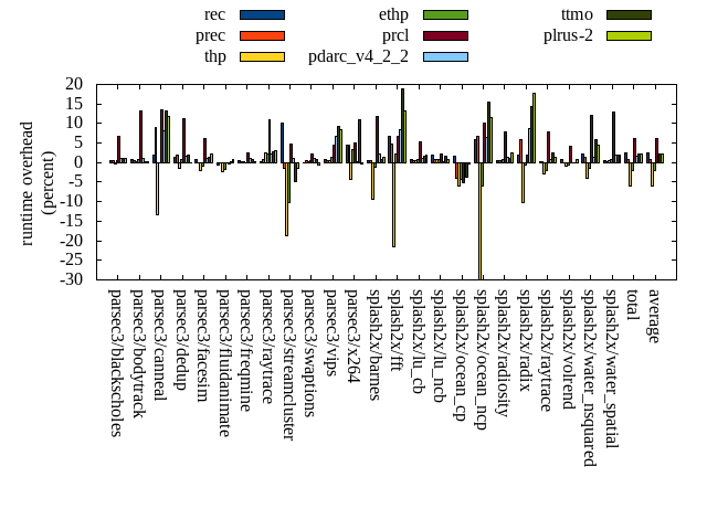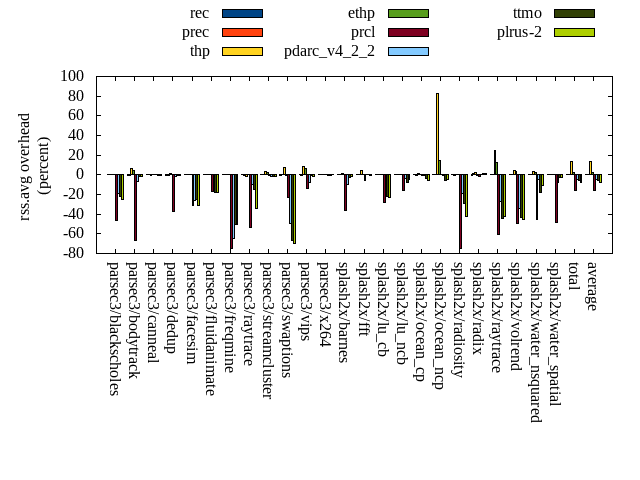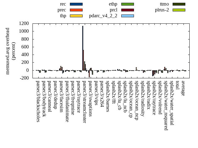 ======= Summary ======= runtime orig rec (overhead) prec (overhead) thp (overhead) ethp (overhead) prcl (overhead) pdarc_v4_2_2 (overhead) ttmo (overhead) plrus-2 (overhead) parsec3/blackscholes 139.341 139.998 (0.47) 140.007 (0.48) 138.930 (-0.29) 140.016 (0.48) 148.675 (6.70) 140.744 (1.01) 140.797 (1.04) 140.753 (1.01) parsec3/bodytrack 125.244 126.325 (0.86) 125.949 (0.56) 125.427 (0.15) 126.243 (0.80) 141.932 (13.32) 126.627 (1.10) 125.578 (0.27) 125.522 (0.22) parsec3/canneal 211.547 215.783 (2.00) 230.454 (8.94) 183.220 (-13.39) 211.272 (-0.13) 239.903 (13.40) 228.565 (8.04) 239.472 (13.20) 236.398 (11.75) parsec3/dedup 18.208 18.446 (1.31) 18.539 (1.82) 17.928 (-1.54) 18.372 (0.90) 20.246 (11.19) 18.520 (1.72) 18.533 (1.79) 18.215 (0.04) parsec3/facesim 345.847 348.906 (0.88) 345.504 (-0.10) 338.653 (-2.08) 343.203 (-0.76) 367.102 (6.15) 349.987 (1.20) 350.918 (1.47) 353.510 (2.22) parsec3/fluidanimate 340.639 338.870 (-0.52) 340.914 (0.08) 332.879 (-2.28) 334.390 (-1.83) 340.275 (-0.11) 339.333 (-0.38) 341.460 (0.24) 343.558 (0.86) parsec3/freqmine 435.303 437.748 (0.56) 436.494 (0.27) 436.290 (0.23) 435.129 (-0.04) 446.457 (2.56) 439.748 (1.02) 438.702 (0.78) 436.729 (0.33) parsec3/raytrace 182.881 183.183 (0.17) 184.386 (0.82) 187.376 (2.46) 186.820 (2.15) 202.847 (10.92) 186.746 (2.11) 188.060 (2.83) 188.632 (3.14) parsec3/streamcluster 714.844 787.994 (10.23) 703.950 (-1.52) 580.376 (-18.81) 642.674 (-10.10) 749.519 (4.85) 721.787 (0.97) 679.713 (-4.91) 704.977 (-1.38) parsec3/swaptions 221.944 222.015 (0.03) 222.775 (0.37) 222.197 (0.11) 223.289 (0.61) 227.126 (2.33) 224.061 (0.95) 223.466 (0.69) 220.788 (-0.52) parsec3/vips 87.627 88.432 (0.92) 88.139 (0.58) 88.058 (0.49) 88.717 (1.24) 91.436 (4.35) 93.594 (6.81) 95.709 (9.22) 94.899 (8.30) parsec3/x264 112.053 117.072 (4.48) 116.908 (4.33) 107.310 (-4.23) 115.900 (3.43) 117.662 (5.01) 112.298 (0.22) 124.473 (11.08) 111.572 (-0.43) splash2x/barnes 131.448 132.064 (0.47) 131.981 (0.41) 119.151 (-9.35) 129.821 (-1.24) 147.033 (11.86) 134.427 (2.27) 132.665 (0.93) 133.284 (1.40) splash2x/fft 60.944 65.074 (6.78) 63.801 (4.69) 47.895 (-21.41) 62.336 (2.28) 64.976 (6.62) 66.021 (8.33) 72.503 (18.97) 69.003 (13.23) splash2x/lu_cb 132.522 133.653 (0.85) 133.344 (0.62) 133.280 (0.57) 133.610 (0.82) 139.651 (5.38) 134.005 (1.12) 134.520 (1.51) 135.051 (1.91) splash2x/lu_ncb 151.519 154.542 (2.00) 152.621 (0.73) 152.503 (0.65) 152.541 (0.67) 154.940 (2.26) 151.893 (0.25) 153.817 (1.52) 152.832 (0.87) splash2x/ocean_cp 86.434 87.730 (1.50) 82.896 (-4.09) 81.340 (-5.89) 82.844 (-4.15) 82.006 (-5.12) 83.759 (-3.09) 83.315 (-3.61) 86.097 (-0.39) splash2x/ocean_ncp 160.865 170.185 (5.79) 171.737 (6.76) 112.695 (-29.94) 151.067 (-6.09) 176.950 (10.00) 171.425 (6.56) 185.608 (15.38) 179.630 (11.67) splash2x/radiosity 142.434 143.104 (0.47) 143.358 (0.65) 142.401 (-0.02) 143.584 (0.81) 153.458 (7.74) 144.516 (1.46) 143.823 (0.98) 146.063 (2.55) splash2x/radix 51.161 52.197 (2.02) 54.119 (5.78) 45.898 (-10.29) 50.776 (-0.75) 52.100 (1.84) 55.636 (8.75) 58.502 (14.35) 60.175 (17.62) splash2x/raytrace 136.031 136.507 (0.35) 136.167 (0.10) 132.082 (-2.90) 133.277 (-2.02) 146.603 (7.77) 137.023 (0.73) 139.283 (2.39) 137.742 (1.26) splash2x/volrend 120.780 121.844 (0.88) 120.825 (0.04) 119.596 (-0.98) 120.023 (-0.63) 125.998 (4.32) 120.696 (-0.07) 120.806 (0.02) 121.721 (0.78) splash2x/water_nsquared 369.313 377.531 (2.22) 373.810 (1.22) 354.877 (-3.91) 363.486 (-1.58) 413.795 (12.04) 373.987 (1.27) 391.421 (5.99) 385.477 (4.38) splash2x/water_spatial 134.107 134.885 (0.58) 134.516 (0.30) 134.638 (0.40) 135.072 (0.72) 151.513 (12.98) 136.721 (1.95) 136.502 (1.79) 136.559 (1.83) total 4613.010 4734.070 (2.62) 4653.210 (0.87) 4335.020 (-6.03) 4524.470 (-1.92) 4902.220 (6.27) 4692.130 (1.72) 4719.630 (2.31) 4719.190 (2.30) average 192.209 197.253 (1.89) 193.884 (1.41) 180.626 (-5.09) 188.520 (-0.60) 204.259 (6.60) 195.505 (2.26) 196.651 (4.08) 196.633 (3.44) kdamond_cpu_util orig rec (overhead) prec (overhead) thp (overhead) ethp (overhead) prcl (overhead) pdarc_v4_2_2 (overhead) ttmo (overhead) plrus-2 (overhead) parsec3/blackscholes 0.000 1.733 (1.73) 0.945 (0.94) 0.000 (0.00) 1.427 (1.43) 7.850 (7.85) 3.243 (3.24) 0.000 (0.00) 2.034 (2.03) parsec3/bodytrack 0.000 2.266 (2.27) 0.692 (0.69) 0.000 (0.00) 1.807 (1.81) 14.280 (14.28) 3.161 (3.16) 0.000 (0.00) 2.014 (2.01) parsec3/canneal 0.000 2.414 (2.41) 1.742 (1.74) 0.000 (0.00) 2.030 (2.03) 2.599 (2.60) 5.941 (5.94) 0.000 (0.00) 1.319 (1.32) parsec3/dedup 0.000 1.833 (1.83) 0.712 (0.71) 0.000 (0.00) 1.529 (1.53) 17.942 (17.94) 5.378 (5.38) 0.000 (0.00) 0.367 (0.37) parsec3/facesim 0.000 1.973 (1.97) 0.711 (0.71) 0.000 (0.00) 2.065 (2.07) 5.102 (5.10) 4.219 (4.22) 0.000 (0.00) 0.539 (0.54) parsec3/fluidanimate 0.000 1.777 (1.78) 0.723 (0.72) 0.000 (0.00) 1.396 (1.40) 1.965 (1.97) 4.233 (4.23) 0.000 (0.00) 0.532 (0.53) parsec3/freqmine 0.000 1.793 (1.79) 0.712 (0.71) 0.000 (0.00) 1.452 (1.45) 4.681 (4.68) 3.925 (3.92) 0.000 (0.00) 0.532 (0.53) parsec3/raytrace 0.000 1.721 (1.72) 0.687 (0.69) 0.000 (0.00) 1.406 (1.41) 11.612 (11.61) 3.285 (3.29) 0.000 (0.00) 0.523 (0.52) parsec3/streamcluster 0.000 16.714 (16.71) 2.692 (2.69) 0.000 (0.00) 1.276 (1.28) 13.068 (13.07) 8.416 (8.42) 0.000 (0.00) 0.108 (0.11) parsec3/swaptions 0.000 3.467 (3.47) 0.692 (0.69) 0.000 (0.00) 2.651 (2.65) 3.222 (3.22) 4.090 (4.09) 0.000 (0.00) 0.000 (0.00) parsec3/vips 0.000 5.946 (5.95) 0.685 (0.69) 0.000 (0.00) 3.125 (3.13) 7.045 (7.05) 3.359 (3.36) 0.000 (0.00) 0.000 (0.00) parsec3/x264 0.000 4.112 (4.11) 0.705 (0.71) 0.000 (0.00) 3.289 (3.29) 3.155 (3.16) 3.855 (3.86) 0.000 (0.00) 0.000 (0.00) splash2x/barnes 0.000 1.559 (1.56) 0.774 (0.77) 0.000 (0.00) 1.368 (1.37) 12.189 (12.19) 5.528 (5.53) 0.000 (0.00) 0.000 (0.00) splash2x/fft 0.000 1.835 (1.84) 0.808 (0.81) 0.000 (0.00) 1.502 (1.50) 10.254 (10.25) 5.111 (5.11) 0.000 (0.00) 0.000 (0.00) splash2x/lu_cb 0.000 1.882 (1.88) 0.721 (0.72) 0.000 (0.00) 1.501 (1.50) 5.811 (5.