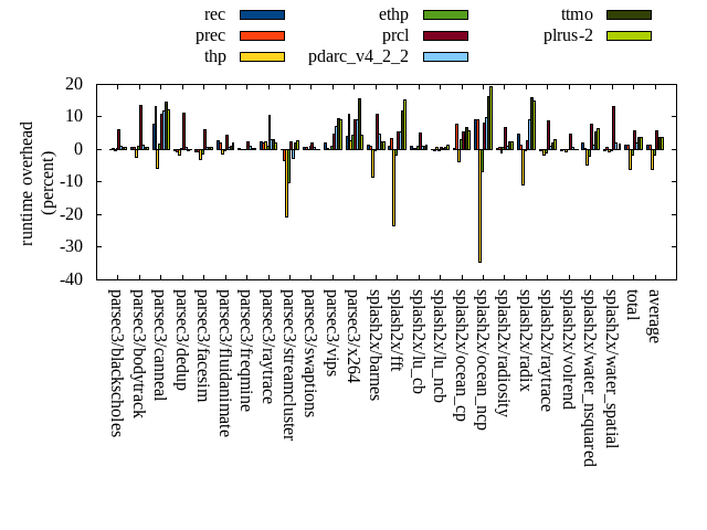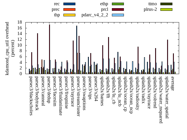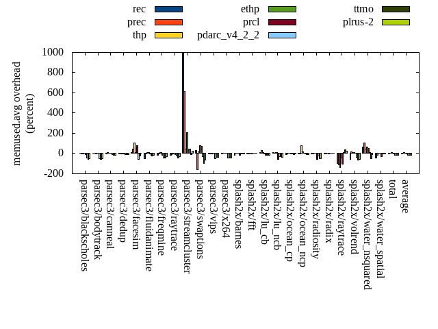 ======= Summary ======= runtime orig rec (overhead) prec (overhead) thp (overhead) ethp (overhead) prcl (overhead) pdarc_v4_2_2 (overhead) ttmo (overhead) plrus-2 (overhead) parsec3/blackscholes 139.595 139.633 (0.03) 140.093 (0.36) 138.975 (-0.44) 139.936 (0.24) 148.147 (6.13) 140.989 (1.00) 140.662 (0.76) 140.556 (0.69) parsec3/bodytrack 124.921 125.778 (0.69) 125.805 (0.71) 121.890 (-2.43) 126.347 (1.14) 141.976 (13.65) 126.558 (1.31) 125.919 (0.80) 125.813 (0.71) parsec3/canneal 209.092 225.435 (7.82) 237.057 (13.37) 196.855 (-5.85) 212.721 (1.74) 231.630 (10.78) 233.679 (11.76) 239.260 (14.43) 234.554 (12.18) parsec3/dedup 18.273 18.204 (-0.37) 18.144 (-0.70) 17.982 (-1.59) 18.346 (0.40) 20.317 (11.19) 18.427 (0.85) 18.202 (-0.39) 18.270 (-0.01) parsec3/facesim 349.244 346.574 (-0.76) 346.657 (-0.74) 339.091 (-2.91) 345.070 (-1.20) 370.233 (6.01) 351.046 (0.52) 351.993 (0.79) 351.593 (0.67) parsec3/fluidanimate 334.576 343.953 (2.80) 341.185 (1.98) 329.761 (-1.44) 333.460 (-0.33) 349.259 (4.39) 336.783 (0.66) 338.489 (1.17) 340.922 (1.90) parsec3/freqmine 437.070 438.084 (0.23) 436.722 (-0.08) 437.667 (0.14) 437.792 (0.17) 447.820 (2.46) 440.939 (0.89) 438.917 (0.42) 438.635 (0.36) parsec3/raytrace 182.110 186.412 (2.36) 185.636 (1.94) 186.431 (2.37) 183.660 (0.85) 201.392 (10.59) 187.722 (3.08) 187.960 (3.21) 185.873 (2.07) parsec3/streamcluster 710.785 710.782 (-0.00) 687.627 (-3.26) 564.497 (-20.58) 639.655 (-10.01) 728.268 (2.46) 691.734 (-2.68) 725.768 (2.11) 729.190 (2.59) parsec3/swaptions 221.394 222.862 (0.66) 223.048 (0.75) 221.392 (-0.00) 223.496 (0.95) 226.246 (2.19) 222.960 (0.71) 221.752 (0.16) 221.660 (0.12) parsec3/vips 87.577 89.504 (2.20) 87.785 (0.24) 87.680 (0.12) 88.401 (0.94) 91.862 (4.89) 93.831 (7.14) 95.956 (9.57) 95.500 (9.05) parsec3/x264 111.355 115.722 (3.92) 123.349 (10.77) 114.558 (2.88) 116.148 (4.30) 121.711 (9.30) 121.555 (9.16) 128.574 (15.46) 116.353 (4.49) splash2x/barnes 129.662 131.231 (1.21) 131.190 (1.18) 118.844 (-8.34) 129.133 (-0.41) 143.564 (10.72) 135.890 (4.80) 132.914 (2.51) 132.685 (2.33) splash2x/fft 62.388 62.990 (0.97) 64.425 (3.26) 47.778 (-23.42) 61.415 (-1.56) 65.686 (5.29) 65.854 (5.55) 69.739 (11.78) 71.988 (15.39) splash2x/lu_cb 132.987 134.114 (0.85) 133.563 (0.43) 133.394 (0.31) 134.326 (1.01) 139.536 (4.93) 134.471 (1.12) 134.363 (1.04) 134.703 (1.29) splash2x/lu_ncb 152.134 151.978 (-0.10) 151.396 (-0.48) 153.201 (0.70) 151.627 (-0.33) 153.337 (0.79) 152.710 (0.38) 153.234 (0.72) 154.081 (1.28) splash2x/ocean_cp 81.452 81.706 (0.31) 87.817 (7.81) 78.356 (-3.80) 83.999 (3.13) 85.904 (5.47) 83.588 (2.62) 86.840 (6.62) 86.110 (5.72) splash2x/ocean_ncp 158.203 172.922 (9.30) 172.676 (9.15) 103.669 (-34.47) 147.407 (-6.82) 171.339 (8.30) 173.615 (9.74) 183.682 (16.11) 188.828 (19.36) splash2x/radiosity 142.960 143.518 (0.39) 143.878 (0.64) 141.646 (-0.92) 143.707 (0.52) 152.754 (6.85) 144.534 (1.10) 146.587 (2.54) 146.201 (2.27) splash2x/radix 51.112 53.531 (4.73) 51.824 (1.39) 45.495 (-10.99) 50.975 (-0.27) 52.552 (2.82) 55.801 (9.18) 59.316 (16.05) 58.704 (14.85) splash2x/raytrace 135.084 134.728 (-0.26) 134.416 (-0.49) 132.847 (-1.66) 133.710 (-1.02) 147.067 (8.87) 136.504 (1.05) 137.910 (2.09) 139.345 (3.15) splash2x/volrend 120.979 120.663 (-0.26) 121.085 (0.09) 120.228 (-0.62) 120.813 (-0.14) 126.666 (4.70) 121.929 (0.78) 121.062 (0.07) 120.996 (0.01) splash2x/water_nsquared 370.687 378.613 (2.14) 372.508 (0.49) 353.115 (-4.74) 362.797 (-2.13) 398.997 (7.64) 376.006 (1.43) 390.172 (5.26) 394.200 (6.34) splash2x/water_spatial 134.811 134.553 (-0.19) 135.619 (0.60) 134.099 (-0.53) 134.408 (-0.30) 152.440 (13.08) 137.387 (1.91) 134.974 (0.12) 137.006 (1.63) total 4598.440 4663.470 (1.41) 4653.520 (1.20) 4319.450 (-6.07) 4519.360 (-1.72) 4868.710 (5.88) 4684.510 (1.87) 4764.240 (3.61) 4763.770 (3.60) average 191.602 194.311 (1.61) 193.897 (2.06) 179.977 (-4.93) 188.307 (-0.38) 202.863 (6.81) 195.188 (3.09) 198.510 (4.72) 198.490 (4.52) kdamond_cpu_util orig rec (overhead) prec (overhead) thp (overhead) ethp (overhead) prcl (overhead) pdarc_v4_2_2 (overhead) ttmo (overhead) plrus-2 (overhead) parsec3/blackscholes 0.000 1.723 (1.72) 0.941 (0.94) 0.000 (0.00) 1.347 (1.35) 7.575 (7.58) 2.823 (2.82) 0.000 (0.00) 2.058 (2.06) parsec3/bodytrack 0.000 2.161 (2.16) 0.695 (0.70) 0.000 (0.00) 1.625 (1.62) 14.144 (14.14) 3.214 (3.21) 0.000 (0.00) 1.998 (2.00) parsec3/canneal 0.000 2.370 (2.37) 4.995 (5.00) 0.000 (0.00) 1.894 (1.89) 2.471 (2.47) 4.818 (4.82) 0.000 (0.00) 1.331 (1.33) parsec3/dedup 0.000 1.855 (1.86) 0.731 (0.73) 0.000 (0.00) 1.601 (1.60) 17.231 (17.23) 4.730 (4.73) 0.000 (0.00) 0.337 (0.34) parsec3/facesim 0.000 1.971 (1.97) 0.719 (0.72) 0.000 (0.00) 2.050 (2.05) 4.986 (4.99) 4.174 (4.17) 0.000 (0.00) 0.531 (0.53) parsec3/fluidanimate 0.000 1.764 (1.76) 0.725 (0.73) 0.000 (0.00) 1.351 (1.35) 2.533 (2.53) 4.214 (4.21) 0.000 (0.00) 0.535 (0.54) parsec3/freqmine 0.000 1.849 (1.85) 0.718 (0.72) 0.000 (0.00) 1.426 (1.43) 4.658 (4.66) 3.969 (3.97) 0.000 (0.00) 0.547 (0.55) parsec3/raytrace 0.000 1.696 (1.70) 0.720 (0.72) 0.000 (0.00) 1.409 (1.41) 11.550 (11.55) 3.296 (3.30) 0.000 (0.00) 0.470 (0.47) parsec3/streamcluster 0.000 16.791 (16.79) 7.350 (7.35) 0.000 (0.00) 1.463 (1.46) 13.238 (13.24) 7.268 (7.27) 0.000 (0.00) 1.077 (1.08) parsec3/swaptions 0.000 3.222 (3.22) 0.701 (0.70) 0.000 (0.00) 2.742 (2.74) 3.285 (3.28) 4.071 (4.07) 0.000 (0.00) 0.533 (0.53) parsec3/vips 0.000 5.947 (5.95) 0.608 (0.61) 0.000 (0.00) 2.670 (2.67) 7.239 (7.24) 3.102 (3.10) 0.000 (0.00) 0.477 (0.48) parsec3/x264 0.000 4.126 (4.13) 0.713 (0.71) 0.000 (0.00) 3.135 (3.13) 3.147 (3.15) 3.509 (3.51) 0.000 (0.00) 0.473 (0.47) splash2x/barnes 0.000 1.630 (1.63) 0.754 (0.75) 0.000 (0.00) 1.320 (1.32) 9.952 (9.95) 5.326 (5.33) 0.000 (0.00) 0.523 (0.52) splash2x/fft 0.000 1.870 (1.87) 0.814 (0.81) 0.000 (0.00) 1.503 (1.50) 12.841 (12.84) 5.327 (5.33) 0.000 (0.00) 0.555 (0.56) splash2x/lu_cb 0.000 1.928 (1.93) 0.695 (0.69) 0.000 (0.00) 1.553 (1.55) 5.597 (5.