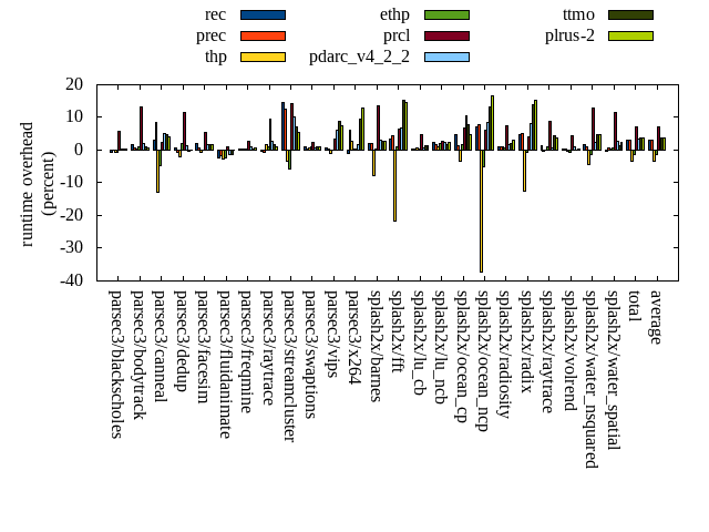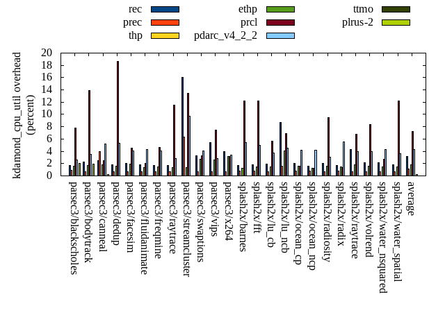 ======= Summary ======= runtime orig rec (overhead) prec (overhead) thp (overhead) ethp (overhead) prcl (overhead) pdarc_v4_2_2 (overhead) ttmo (overhead) plrus-2 (overhead) parsec3/blackscholes 140.281 139.493 (-0.56) 140.356 (0.05) 139.337 (-0.67) 139.398 (-0.63) 148.388 (5.78) 140.842 (0.40) 140.756 (0.34) 140.681 (0.28) parsec3/bodytrack 124.578 126.890 (1.86) 125.247 (0.54) 125.002 (0.34) 126.023 (1.16) 141.234 (13.37) 126.950 (1.90) 125.961 (1.11) 125.506 (0.74) parsec3/canneal 225.668 232.242 (2.91) 244.626 (8.40) 196.472 (-12.94) 214.665 (-4.88) 231.265 (2.48) 236.950 (5.00) 236.071 (4.61) 235.231 (4.24) parsec3/dedup 18.312 18.416 (0.57) 18.216 (-0.53) 17.927 (-2.10) 18.657 (1.88) 20.437 (11.61) 18.549 (1.29) 18.249 (-0.34) 18.333 (0.11) parsec3/facesim 343.869 350.433 (1.91) 346.769 (0.84) 341.531 (-0.68) 343.452 (-0.12) 362.395 (5.39) 349.230 (1.56) 349.454 (1.62) 349.533 (1.65) parsec3/fluidanimate 343.581 335.232 (-2.43) 337.949 (-1.64) 334.299 (-2.70) 334.983 (-2.50) 347.403 (1.11) 338.857 (-1.37) 338.554 (-1.46) 343.402 (-0.05) parsec3/freqmine 436.651 438.709 (0.47) 438.284 (0.37) 438.342 (0.39) 438.132 (0.34) 448.902 (2.81) 440.455 (0.87) 438.051 (0.32) 439.540 (0.66) parsec3/raytrace 184.766 184.159 (-0.33) 183.641 (-0.61) 187.643 (1.56) 186.507 (0.94) 202.185 (9.43) 189.874 (2.76) 187.595 (1.53) 186.796 (1.10) parsec3/streamcluster 651.890 747.870 (14.72) 734.264 (12.64) 629.445 (-3.44) 614.509 (-5.73) 744.665 (14.23) 717.336 (10.04) 697.226 (6.95) 687.683 (5.49) parsec3/swaptions 220.264 222.687 (1.10) 220.905 (0.29) 221.809 (0.70) 222.762 (1.13) 225.449 (2.35) 221.609 (0.61) 222.472 (1.00) 222.519 (1.02) parsec3/vips 88.364 88.907 (0.61) 88.670 (0.35) 87.414 (-1.08) 88.360 (-0.00) 91.497 (3.55) 93.660 (5.99) 96.092 (8.75) 94.956 (7.46) parsec3/x264 113.225 111.976 (-1.10) 120.226 (6.18) 116.149 (2.58) 113.488 (0.23) 113.557 (0.29) 115.077 (1.64) 123.842 (9.38) 127.794 (12.87) splash2x/barnes 129.510 132.317 (2.17) 132.119 (2.01) 119.456 (-7.76) 130.055 (0.42) 147.137 (13.61) 133.305 (2.93) 132.880 (2.60) 133.020 (2.71) splash2x/fft 61.128 63.260 (3.49) 63.871 (4.49) 47.831 (-21.75) 61.671 (0.89) 65.025 (6.37) 65.279 (6.79) 70.359 (15.10) 69.970 (14.46) splash2x/lu_cb 133.194 133.461 (0.20) 133.577 (0.29) 134.207 (0.76) 133.453 (0.19) 139.569 (4.79) 134.167 (0.73) 134.906 (1.29) 134.943 (1.31) splash2x/lu_ncb 150.326 153.935 (2.40) 152.822 (1.66) 152.085 (1.17) 153.221 (1.93) 154.503 (2.78) 154.011 (2.45) 152.967 (1.76) 153.652 (2.21) splash2x/ocean_cp 82.214 85.997 (4.60) 83.210 (1.21) 79.531 (-3.26) 83.524 (1.59) 87.713 (6.69) 90.725 (10.35) 88.685 (7.87) 86.196 (4.84) splash2x/ocean_ncp 161.513 172.991 (7.11) 174.154 (7.83) 101.550 (-37.13) 153.446 (-4.99) 171.512 (6.19) 175.377 (8.58) 182.795 (13.18) 188.185 (16.51) splash2x/radiosity 141.703 143.322 (1.14) 142.942 (0.87) 143.045 (0.95) 142.873 (0.83) 152.429 (7.57) 144.257 (1.80) 144.503 (1.98) 146.040 (3.06) splash2x/radix 51.321 53.814 (4.86) 53.981 (5.18) 44.889 (-12.53) 50.895 (-0.83) 53.475 (4.20) 55.467 (8.08) 58.407 (13.81) 59.203 (15.36) splash2x/raytrace 134.296 136.128 (1.36) 133.997 (-0.22) 134.160 (-0.10) 135.791 (1.11) 146.034 (8.74) 135.150 (0.64) 140.187 (4.39) 139.450 (3.84) splash2x/volrend 120.989 121.207 (0.18) 121.502 (0.42) 120.566 (-0.35) 120.199 (-0.65) 126.323 (4.41) 122.090 (0.91) 120.921 (-0.06) 121.373 (0.32) splash2x/water_nsquared 369.674 376.474 (1.84) 373.906 (1.15) 353.766 (-4.30) 364.702 (-1.34) 416.855 (12.76) 377.935 (2.23) 387.631 (4.86) 387.482 (4.82) splash2x/water_spatial 134.423 134.110 (-0.23) 135.476 (0.78) 135.022 (0.45) 135.421 (0.74) 150.036 (11.62) 138.081 (2.72) 136.288 (1.39) 137.425 (2.23) total 4561.730 4704.050 (3.12) 4700.710 (3.05) 4401.470 (-3.51) 4506.180 (-1.22) 4887.980 (7.15) 4715.260 (3.37) 4724.860 (3.58) 4728.910 (3.66) average 190.072 196.002 (2.04) 195.863 (2.19) 183.395 (-4.25) 187.758 (-0.35) 203.666 (6.75) 196.469 (3.29) 196.869 (4.25) 197.038 (4.47) kdamond_cpu_util orig rec (overhead) prec (overhead) thp (overhead) ethp (overhead) prcl (overhead) pdarc_v4_2_2 (overhead) ttmo (overhead) plrus-2 (overhead) parsec3/blackscholes 0.000 1.724 (1.72) 0.952 (0.95) 0.000 (0.00) 1.572 (1.57) 7.822 (7.82) 2.610 (2.61) 0.000 (0.00) 2.040 (2.04) parsec3/bodytrack 0.000 2.261 (2.26) 0.698 (0.70) 0.000 (0.00) 1.731 (1.73) 13.941 (13.94) 3.499 (3.50) 0.000 (0.00) 1.932 (1.93) parsec3/canneal 0.000 2.485 (2.48) 4.007 (4.01) 0.000 (0.00) 1.849 (1.85) 2.526 (2.53) 5.145 (5.14) 0.000 (0.00) 0.267 (0.27) parsec3/dedup 0.000 1.846 (1.85) 0.714 (0.71) 0.000 (0.00) 1.601 (1.60) 18.641 (18.64) 5.317 (5.32) 0.000 (0.00) 0.000 (0.00) parsec3/facesim 0.000 2.007 (2.01) 0.704 (0.70) 0.000 (0.00) 1.969 (1.97) 4.544 (4.54) 4.017 (4.02) 0.000 (0.00) 0.000 (0.00) parsec3/fluidanimate 0.000 1.762 (1.76) 0.692 (0.69) 0.000 (0.00) 1.361 (1.36) 2.087 (2.09) 4.278 (4.28) 0.000 (0.00) 0.000 (0.00) parsec3/freqmine 0.000 1.747 (1.75) 0.707 (0.71) 0.000 (0.00) 1.428 (1.43) 4.638 (4.64) 4.044 (4.04) 0.000 (0.00) 0.000 (0.00) parsec3/raytrace 0.000 1.714 (1.71) 0.722 (0.72) 0.000 (0.00) 1.394 (1.39) 11.475 (11.48) 2.839 (2.84) 0.000 (0.00) 0.000 (0.00) parsec3/streamcluster 0.000 16.007 (16.01) 6.375 (6.37) 0.000 (0.00) 1.319 (1.32) 13.481 (13.48) 9.733 (9.73) 0.000 (0.00) 0.000 (0.00) parsec3/swaptions 0.000 3.224 (3.22) 0.694 (0.69) 0.000 (0.00) 2.719 (2.72) 3.225 (3.22) 4.052 (4.05) 0.000 (0.00) 0.000 (0.00) parsec3/vips 0.000 5.469 (5.47) 0.696 (0.70) 0.000 (0.00) 2.577 (2.58) 7.509 (7.51) 2.855 (2.86) 0.000 (0.00) 0.000 (0.00) parsec3/x264 0.000 3.990 (3.99) 0.717 (0.72) 0.000 (0.00) 3.144 (3.14) 3.172 (3.17) 3.443 (3.44) 0.000 (0.00) 0.000 (0.00) splash2x/barnes 0.000 1.649 (1.65) 0.811 (0.81) 0.000 (0.00) 1.253 (1.25) 12.189 (12.19) 5.403 (5.40) 0.000 (0.00) 0.000 (0.00) splash2x/fft 0.000 1.829 (1.83) 0.808 (0.81) 0.000 (0.00) 1.484 (1.48) 12.237 (12.24) 5.018 (5.02) 0.000 (0.00) 0.000 (0.00) splash2x/lu_cb 0.000 1.949 (1.95) 0.723 (0.72) 0.000 (0.00) 1.504 (1.50) 5.598 (5.60) 3.7