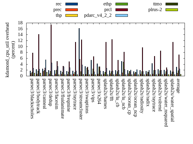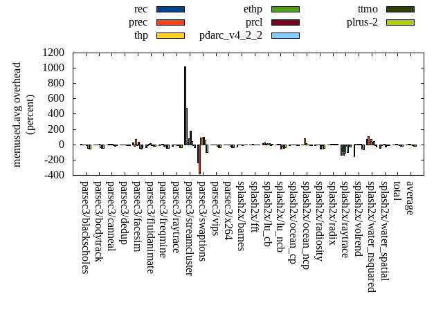======= Summary ======= runtime orig rec (overhead) prec (overhead) thp (overhead) ethp (overhead) prcl (overhead) pdarc_v4_2_2 (overhead) ttmo (overhead) plrus-2 (overhead) parsec3/blackscholes 139.549 139.934 (0.28) 139.875 (0.23) 139.007 (-0.39) 140.006 (0.33) 148.613 (6.50) 140.524 (0.70) 140.056 (0.36) 140.951 (1.00) parsec3/bodytrack 125.184 125.558 (0.30) 126.480 (1.03) 124.808 (-0.30) 125.862 (0.54) 142.255 (13.64) 127.040 (1.48) 125.491 (0.24) 126.055 (0.70) parsec3/canneal 212.214 230.750 (8.73) 242.228 (14.14) 188.000 (-11.41) 214.982 (1.30) 239.077 (12.66) 228.989 (7.90) 246.770 (16.28) 237.634 (11.98) parsec3/dedup 18.089 18.321 (1.28) 18.132 (0.23) 17.795 (-1.63) 18.217 (0.71) 20.258 (11.99) 18.808 (3.97) 18.138 (0.27) 18.344 (1.41) parsec3/facesim 350.026 346.037 (-1.14) 347.049 (-0.85) 340.425 (-2.74) 342.296 (-2.21) 362.600 (3.59) 353.060 (0.87) 351.987 (0.56) 348.564 (-0.42) parsec3/fluidanimate 335.178 344.570 (2.80) 343.851 (2.59) 329.533 (-1.68) 339.140 (1.18) 355.803 (6.15) 342.931 (2.31) 347.080 (3.55) 346.770 (3.46) parsec3/freqmine 435.935 437.627 (0.39) 437.499 (0.36) 437.370 (0.33) 436.943 (0.23) 447.143 (2.57) 438.054 (0.49) 439.120 (0.73) 440.683 (1.09) parsec3/raytrace 182.145 185.245 (1.70) 184.568 (1.33) 185.694 (1.95) 187.228 (2.79) 201.616 (10.69) 185.086 (1.61) 189.178 (3.86) 185.699 (1.95) parsec3/streamcluster 724.426 772.986 (6.70) 702.327 (-3.05) 587.716 (-18.87) 625.727 (-13.62) 747.296 (3.16) 680.959 (-6.00) 706.929 (-2.42) 693.544 (-4.26) parsec3/swaptions 220.391 221.887 (0.68) 222.306 (0.87) 222.546 (0.98) 222.457 (0.94) 225.361 (2.26) 221.060 (0.30) 221.985 (0.72) 221.778 (0.63) parsec3/vips 88.660 89.118 (0.52) 88.612 (-0.05) 87.844 (-0.92) 87.741 (-1.04) 91.112 (2.77) 90.613 (2.20) 95.594 (7.82) 96.156 (8.45) parsec3/x264 124.239 116.271 (-6.41) 113.094 (-8.97) 109.578 (-11.80) 117.657 (-5.30) 118.594 (-4.54) 114.556 (-7.79) 116.953 (-5.86) 119.222 (-4.04) splash2x/barnes 130.216 131.333 (0.86) 132.326 (1.62) 119.111 (-8.53) 129.729 (-0.37) 146.774 (12.72) 131.987 (1.36) 133.983 (2.89) 132.810 (1.99) splash2x/fft 61.374 63.850 (4.03) 63.811 (3.97) 47.427 (-22.72) 61.900 (0.86) 66.491 (8.34) 63.704 (3.80) 70.922 (15.56) 72.436 (18.02) splash2x/lu_cb 132.954 133.905 (0.72) 133.427 (0.36) 132.959 (0.00) 134.287 (1.00) 139.735 (5.10) 133.550 (0.45) 134.636 (1.26) 134.949 (1.50) splash2x/lu_ncb 151.890 153.268 (0.91) 152.948 (0.70) 151.754 (-0.09) 152.563 (0.44) 155.769 (2.55) 151.596 (-0.19) 152.877 (0.65) 153.879 (1.31) splash2x/ocean_cp 82.717 80.908 (-2.19) 82.141 (-0.70) 82.645 (-0.09) 82.041 (-0.82) 82.394 (-0.39) 82.872 (0.19) 89.666 (8.40) 84.857 (2.59) splash2x/ocean_ncp 164.662 171.118 (3.92) 169.029 (2.65) 102.765 (-37.59) 151.806 (-7.81) 171.938 (4.42) 176.267 (7.05) 191.381 (16.23) 186.388 (13.19) splash2x/radiosity 142.071 143.523 (1.02) 142.945 (0.62) 141.688 (-0.27) 143.388 (0.93) 153.500 (8.04) 144.412 (1.65) 146.072 (2.82) 145.660 (2.53) splash2x/radix 50.874 52.288 (2.78) 52.578 (3.35) 46.868 (-7.88) 51.762 (1.75) 53.389 (4.94) 54.264 (6.66) 58.784 (15.55) 57.263 (12.56) splash2x/raytrace 134.384 134.075 (-0.23) 135.031 (0.48) 132.936 (-1.08) 134.743 (0.27) 148.687 (10.64) 136.064 (1.25) 140.354 (4.44) 138.189 (2.83) splash2x/volrend 120.631 121.495 (0.72) 121.120 (0.41) 119.691 (-0.78) 120.312 (-0.26) 126.633 (4.98) 121.473 (0.70) 120.801 (0.14) 121.150 (0.43) splash2x/water_nsquared 369.731 375.967 (1.69) 374.538 (1.30) 353.972 (-4.26) 362.999 (-1.82) 409.399 (10.73) 375.984 (1.69) 386.743 (4.60) 391.389 (5.86) splash2x/water_spatial 133.964 135.226 (0.94) 135.351 (1.03) 134.638 (0.50) 134.771 (0.60) 151.372 (12.99) 135.684 (1.28) 137.176 (2.40) 136.626 (1.99) total 4631.480 4725.290 (2.03) 4661.280 (0.64) 4336.780 (-6.36) 4518.560 (-2.44) 4905.800 (5.92) 4649.520 (0.39) 4762.660 (2.83) 4731.010 (2.15) average 192.978 196.887 (1.29) 194.220 (0.99) 180.699 (-5.39) 188.273 (-0.81) 204.408 (6.52) 193.730 (1.41) 198.444 (4.21) 197.125 (3.61) kdamond_cpu_util orig rec (overhead) prec (overhead) thp (overhead) ethp (overhead) prcl (overhead) pdarc_v4_2_2 (overhead) ttmo (overhead) plrus-2 (overhead) parsec3/blackscholes 0.000 1.739 (1.74) 0.935 (0.93) 0.000 (0.00) 1.364 (1.36) 7.826 (7.83) 2.606 (2.61) 0.000 (0.00) 1.029 (1.03) parsec3/bodytrack 0.000 2.195 (2.19) 0.684 (0.68) 0.000 (0.00) 1.778 (1.78) 14.115 (14.12) 2.368 (2.37) 0.000 (0.00) 1.026 (1.03) parsec3/canneal 0.000 2.459 (2.46) 1.612 (1.61) 0.000 (0.00) 1.894 (1.89) 2.777 (2.78) 5.500 (5.50) 0.000 (0.00) 1.273 (1.27) parsec3/dedup 0.000 1.947 (1.95) 0.733 (0.73) 0.000 (0.00) 1.594 (1.59) 17.437 (17.44) 4.516 (4.52) 0.000 (0.00) 0.189 (0.19) parsec3/facesim 0.000 1.959 (1.96) 0.714 (0.71) 0.000 (0.00) 2.047 (2.05) 5.006 (5.01) 3.205 (3.21) 0.000 (0.00) 0.535 (0.54) parsec3/fluidanimate 0.000 1.761 (1.76) 0.718 (0.72) 0.000 (0.00) 1.351 (1.35) 3.316 (3.32) 3.148 (3.15) 0.000 (0.00) 0.524 (0.52) parsec3/freqmine 0.000 1.593 (1.59) 0.653 (0.65) 0.000 (0.00) 1.472 (1.47) 4.842 (4.84) 2.886 (2.89) 0.000 (0.00) 0.540 (0.54) parsec3/raytrace 0.000 1.683 (1.68) 0.729 (0.73) 0.000 (0.00) 1.358 (1.36) 11.458 (11.46) 1.687 (1.69) 0.000 (0.00) 0.537 (0.54) parsec3/streamcluster 0.000 16.169 (16.17) 5.741 (5.74) 0.000 (0.00) 1.478 (1.48) 12.332 (12.33) 3.778 (3.78) 0.000 (0.00) 0.617 (0.62) parsec3/swaptions 0.000 3.278 (3.28) 0.611 (0.61) 0.000 (0.00) 2.740 (2.74) 3.083 (3.08) 2.028 (2.03) 0.000 (0.00) 0.514 (0.51) parsec3/vips 0.000 5.422 (5.42) 0.672 (0.67) 0.000 (0.00) 2.439 (2.44) 6.584 (6.58) 1.416 (1.42) 0.000 (0.00) 0.461 (0.46) parsec3/x264 0.000 4.144 (4.14) 0.702 (0.70) 0.000 (0.00) 3.202 (3.20) 3.177 (3.18) 1.693 (1.69) 0.000 (0.00) 0.525 (0.52) splash2x/barnes 0.000 1.581 (1.58) 0.742 (0.74) 0.000 (0.00) 1.276 (1.28) 11.473 (11.47) 2.641 (2.64) 0.000 (0.00) 0.482 (0.48) splash2x/fft 0.000 1.853 (1.85) 0.800 (0.80) 0.000 (0.00) 1.489 (1.49) 12.434 (12.43) 1.708 (1.71) 0.000 (0.00) 0.557 (0.56) splash2x/lu_cb 0.000 1.923 (1.92) 0.721 (0.72) 0.000 (0.00) 1.503 (1.50) 5.360 