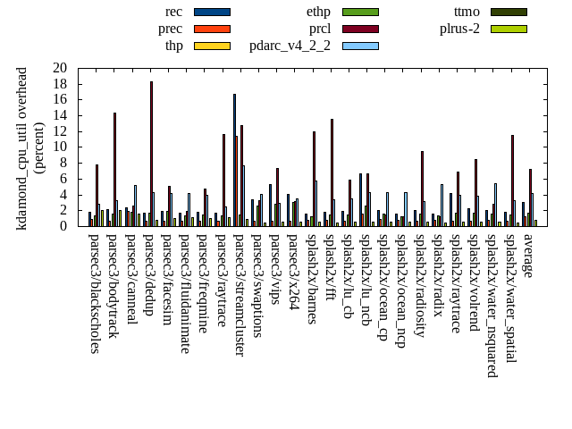 ======= Summary ======= runtime orig rec (overhead) prec (overhead) thp (overhead) ethp (overhead) prcl (overhead) pdarc_v4_2_2 (overhead) ttmo (overhead) plrus-2 (overhead) parsec3/blackscholes 139.076 139.972 (0.64) 139.910 (0.60) 138.974 (-0.07) 139.370 (0.21) 148.543 (6.81) 140.725 (1.19) 140.781 (1.23) 140.403 (0.95) parsec3/bodytrack 125.948 126.862 (0.73) 125.765 (-0.15) 124.872 (-0.85) 125.975 (0.02) 142.004 (12.75) 126.290 (0.27) 125.813 (-0.11) 126.302 (0.28) parsec3/canneal 221.108 214.860 (-2.83) 221.162 (0.02) 180.236 (-18.49) 209.776 (-5.12) 234.209 (5.92) 237.127 (7.24) 228.071 (3.15) 233.191 (5.46) parsec3/dedup 18.270 18.403 (0.73) 18.418 (0.81) 18.142 (-0.70) 18.355 (0.47) 20.352 (11.40) 18.474 (1.12) 18.293 (0.13) 18.422 (0.84) parsec3/facesim 345.645 350.907 (1.52) 347.539 (0.55) 338.620 (-2.03) 347.138 (0.43) 365.859 (5.85) 348.655 (0.87) 350.482 (1.40) 353.233 (2.20) parsec3/fluidanimate 335.889 341.144 (1.56) 341.543 (1.68) 330.553 (-1.59) 332.183 (-1.10) 345.222 (2.78) 338.380 (0.74) 337.165 (0.38) 336.488 (0.18) parsec3/freqmine 435.706 438.183 (0.57) 436.266 (0.13) 436.932 (0.28) 437.978 (0.52) 445.052 (2.14) 440.096 (1.01) 439.008 (0.76) 438.877 (0.73) parsec3/raytrace 182.875 184.666 (0.98) 184.164 (0.71) 186.819 (2.16) 184.620 (0.95) 202.909 (10.96) 187.768 (2.68) 185.955 (1.68) 184.252 (0.75) parsec3/streamcluster 636.674 753.414 (18.34) 666.777 (4.73) 624.335 (-1.94) 644.993 (1.31) 681.238 (7.00) 695.492 (9.24) 686.581 (7.84) 722.184 (13.43) parsec3/swaptions 221.069 223.060 (0.90) 221.710 (0.29) 221.724 (0.30) 223.005 (0.88) 225.849 (2.16) 221.368 (0.14) 223.452 (1.08) 222.161 (0.49) parsec3/vips 87.905 88.602 (0.79) 88.762 (0.97) 87.497 (-0.46) 88.521 (0.70) 91.542 (4.14) 93.251 (6.08) 95.827 (9.01) 95.870 (9.06) parsec3/x264 106.752 116.933 (9.54) 114.289 (7.06) 120.078 (12.48) 118.506 (11.01) 122.493 (14.75) 117.665 (10.22) 121.633 (13.94) 115.895 (8.56) splash2x/barnes 129.811 131.555 (1.34) 130.979 (0.90) 119.316 (-8.08) 131.279 (1.13) 146.243 (12.66) 133.459 (2.81) 134.142 (3.34) 132.773 (2.28) splash2x/fft 61.590 62.717 (1.83) 62.759 (1.90) 48.389 (-21.43) 61.955 (0.59) 65.352 (6.11) 64.080 (4.04) 72.401 (17.55) 70.289 (14.12) splash2x/lu_cb 133.291 134.362 (0.80) 133.668 (0.28) 132.822 (-0.35) 134.175 (0.66) 139.933 (4.98) 133.914 (0.47) 134.419 (0.85) 134.722 (1.07) splash2x/lu_ncb 150.407 153.172 (1.84) 151.050 (0.43) 151.579 (0.78) 152.766 (1.57) 152.779 (1.58) 152.513 (1.40) 152.746 (1.56) 154.161 (2.50) splash2x/ocean_cp 81.078 84.820 (4.62) 82.363 (1.59) 81.573 (0.61) 81.388 (0.38) 83.384 (2.84) 83.031 (2.41) 85.565 (5.53) 86.712 (6.95) splash2x/ocean_ncp 162.745 169.124 (3.92) 168.479 (3.52) 111.015 (-31.79) 147.580 (-9.32) 172.118 (5.76) 170.431 (4.72) 183.000 (12.45) 184.326 (13.26) splash2x/radiosity 142.932 143.103 (0.12) 142.600 (-0.23) 142.128 (-0.56) 144.144 (0.85) 152.649 (6.80) 144.196 (0.88) 144.870 (1.36) 146.812 (2.71) splash2x/radix 51.432 51.825 (0.76) 52.525 (2.13) 45.517 (-11.50) 52.230 (1.55) 51.512 (0.16) 55.874 (8.64) 59.478 (15.64) 60.255 (17.16) splash2x/raytrace 133.905 135.851 (1.45) 134.286 (0.28) 133.210 (-0.52) 134.233 (0.24) 146.200 (9.18) 137.573 (2.74) 137.818 (2.92) 138.966 (3.78) splash2x/volrend 120.591 120.597 (0.00) 120.704 (0.09) 119.977 (-0.51) 120.295 (-0.25) 126.234 (4.68) 121.113 (0.43) 120.649 (0.05) 121.181 (0.49) splash2x/water_nsquared 368.446 381.141 (3.45) 374.998 (1.78) 354.599 (-3.76) 363.089 (-1.45) 404.707 (9.84) 380.234 (3.20) 390.524 (5.99) 391.700 (6.31) splash2x/water_spatial 133.492 134.609 (0.84) 134.501 (0.76) 134.852 (1.02) 134.502 (0.76) 150.806 (12.97) 137.134 (2.73) 136.048 (1.91) 135.540 (1.53) total 4526.640 4699.860 (3.83) 4595.220 (1.52) 4383.780 (-3.16) 4528.060 (0.03) 4817.180 (6.42) 4678.830 (3.36) 4704.730 (3.93) 4744.720 (4.82) average 188.610 195.827 (2.27) 191.468 (1.28) 182.657 (-3.63) 188.669 (0.29) 200.716 (6.84) 194.951 (3.14) 196.030 (4.57) 197.697 (4.80) kdamond_cpu_util orig rec (overhead) prec (overhead) thp (overhead) ethp (overhead) prcl (overhead) pdarc_v4_2_2 (overhead) ttmo (overhead) plrus-2 (overhead) parsec3/blackscholes 0.000 1.770 (1.77) 0.926 (0.93) 0.000 (0.00) 1.377 (1.38) 7.798 (7.80) 2.842 (2.84) 0.000 (0.00) 2.026 (2.03) parsec3/bodytrack 0.000 2.168 (2.17) 0.702 (0.70) 0.000 (0.00) 1.602 (1.60) 14.382 (14.38) 3.221 (3.22) 0.000 (0.00) 1.986 (1.99) parsec3/canneal 0.000 2.401 (2.40) 1.903 (1.90) 0.000 (0.00) 1.793 (1.79) 2.602 (2.60) 5.220 (5.22) 0.000 (0.00) 1.604 (1.60) parsec3/dedup 0.000 1.743 (1.74) 0.690 (0.69) 0.000 (0.00) 1.648 (1.65) 18.354 (18.35) 4.321 (4.32) 0.000 (0.00) 0.760 (0.76) parsec3/facesim 0.000 1.957 (1.96) 0.712 (0.71) 0.000 (0.00) 1.976 (1.98) 5.080 (5.08) 4.208 (4.21) 0.000 (0.00) 1.065 (1.06) parsec3/fluidanimate 0.000 1.743 (1.74) 0.723 (0.72) 0.000 (0.00) 1.377 (1.38) 1.954 (1.95) 4.150 (4.15) 0.000 (0.00) 1.079 (1.08) parsec3/freqmine 0.000 1.864 (1.86) 0.729 (0.73) 0.000 (0.00) 1.503 (1.50) 4.791 (4.79) 3.938 (3.94) 0.000 (0.00) 1.073 (1.07) parsec3/raytrace 0.000 1.700 (1.70) 0.730 (0.73) 0.000 (0.00) 1.304 (1.30) 11.596 (11.60) 2.484 (2.48) 0.000 (0.00) 1.074 (1.07) parsec3/streamcluster 0.000 16.769 (16.77) 11.412 (11.41) 0.000 (0.00) 1.439 (1.44) 12.799 (12.80) 7.708 (7.71) 0.000 (0.00) 0.893 (0.89) parsec3/swaptions 0.000 3.389 (3.39) 0.702 (0.70) 0.000 (0.00) 2.624 (2.62) 3.261 (3.26) 4.109 (4.11) 0.000 (0.00) 0.445 (0.44) parsec3/vips 0.000 5.336 (5.34) 0.687 (0.69) 0.000 (0.00) 2.845 (2.84) 7.396 (7.40) 2.950 (2.95) 0.000 (0.00) 0.519 (0.52) parsec3/x264 0.000 4.081 (4.08) 0.714 (0.71) 0.000 (0.00) 3.104 (3.10) 3.183 (3.18) 3.477 (3.48) 0.000 (0.00) 0.518 (0.52) splash2x/barnes 0.000 1.597 (1.60) 0.783 (0.78) 0.000 (0.00) 1.285 (1.29) 12.021 (12.02) 5.785 (5.79) 0.000 (0.00) 0.543 (0.54) splash2x/fft 0.000 1.853 (1.85) 0.787 (0.79) 0.000 (0.00) 1.506 (1.51) 13.604 (13.60) 3.370 (3.37) 0.000 (0.00) 0.493 (0.49) splash2x/lu_cb 0.000 1.906 (1.91) 0.704 (0.70) 0.000 (0.00) 1.485 (1.48) 5.921 (5.92) 3.555 (3.56) 0.