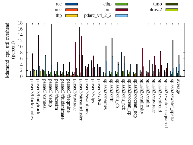 ======= Summary ======= runtime orig rec (overhead) prec (overhead) thp (overhead) ethp (overhead) prcl (overhead) pdarc_v4_2_2 (overhead) ttmo (overhead) plrus-2 (overhead) parsec3/blackscholes 138.942 140.087 (0.82) 140.053 (0.80) 138.862 (-0.06) 139.820 (0.63) 148.585 (6.94) 140.660 (1.24) 140.972 (1.46) 140.381 (1.04) parsec3/bodytrack 125.080 127.074 (1.59) 126.524 (1.15) 124.358 (-0.58) 126.362 (1.02) 142.390 (13.84) 127.097 (1.61) 126.164 (0.87) 126.390 (1.05) parsec3/canneal 217.228 220.559 (1.53) 232.746 (7.14) 182.190 (-16.13) 231.039 (6.36) 221.669 (2.04) 224.084 (3.16) 242.488 (11.63) 250.542 (15.34) parsec3/dedup 18.338 18.250 (-0.48) 18.252 (-0.47) 17.849 (-2.67) 18.249 (-0.49) 20.303 (10.71) 18.525 (1.02) 18.336 (-0.01) 18.218 (-0.65) parsec3/facesim 345.900 348.003 (0.61) 343.880 (-0.58) 343.021 (-0.83) 344.620 (-0.37) 364.533 (5.39) 349.503 (1.04) 350.580 (1.35) 351.567 (1.64) parsec3/fluidanimate 337.361 341.677 (1.28) 343.252 (1.75) 327.092 (-3.04) 336.368 (-0.29) 345.621 (2.45) 336.158 (-0.36) 346.184 (2.62) 339.398 (0.60) parsec3/freqmine 436.268 437.873 (0.37) 437.451 (0.27) 437.214 (0.22) 438.234 (0.45) 450.600 (3.29) 439.277 (0.69) 439.246 (0.68) 439.036 (0.63) parsec3/raytrace 182.898 184.853 (1.07) 184.465 (0.86) 186.895 (2.19) 184.602 (0.93) 200.236 (9.48) 187.193 (2.35) 186.890 (2.18) 185.334 (1.33) parsec3/streamcluster 706.773 760.851 (7.65) 711.076 (0.61) 603.470 (-14.62) 612.910 (-13.28) 730.721 (3.39) 689.926 (-2.38) 695.409 (-1.61) 681.931 (-3.51) parsec3/swaptions 220.449 223.859 (1.55) 224.309 (1.75) 221.233 (0.36) 222.269 (0.83) 224.735 (1.94) 222.567 (0.96) 220.940 (0.22) 223.143 (1.22) parsec3/vips 87.600 88.887 (1.47) 88.807 (1.38) 87.857 (0.29) 88.528 (1.06) 91.661 (4.64) 92.442 (5.53) 95.496 (9.01) 94.817 (8.24) parsec3/x264 118.355 117.960 (-0.33) 115.843 (-2.12) 112.305 (-5.11) 116.541 (-1.53) 111.718 (-5.61) 117.477 (-0.74) 113.685 (-3.95) 118.805 (0.38) splash2x/barnes 131.596 131.997 (0.30) 132.600 (0.76) 119.821 (-8.95) 130.123 (-1.12) 143.970 (9.40) 133.989 (1.82) 132.899 (0.99) 133.057 (1.11) splash2x/fft 61.422 63.604 (3.55) 62.830 (2.29) 48.124 (-21.65) 62.292 (1.42) 65.398 (6.47) 65.154 (6.08) 73.451 (19.58) 65.651 (6.88) splash2x/lu_cb 133.490 135.213 (1.29) 133.534 (0.03) 133.142 (-0.26) 133.500 (0.01) 138.522 (3.77) 133.585 (0.07) 134.916 (1.07) 135.379 (1.41) splash2x/lu_ncb 150.959 153.246 (1.51) 152.626 (1.10) 151.775 (0.54) 151.088 (0.09) 153.688 (1.81) 151.834 (0.58) 152.730 (1.17) 153.334 (1.57) splash2x/ocean_cp 86.058 82.447 (-4.20) 84.761 (-1.51) 82.459 (-4.18) 82.275 (-4.40) 82.174 (-4.51) 86.456 (0.46) 87.004 (1.10) 88.949 (3.36) splash2x/ocean_ncp 160.607 170.522 (6.17) 169.507 (5.54) 104.305 (-35.06) 151.061 (-5.94) 169.603 (5.60) 169.052 (5.26) 183.876 (14.49) 180.625 (12.46) splash2x/radiosity 143.203 142.955 (-0.17) 143.322 (0.08) 141.531 (-1.17) 142.450 (-0.53) 152.891 (6.76) 144.383 (0.82) 145.946 (1.91) 146.291 (2.16) splash2x/radix 52.102 52.603 (0.96) 52.393 (0.56) 46.770 (-10.23) 51.503 (-1.15) 53.026 (1.77) 54.743 (5.07) 60.862 (16.81) 58.877 (13.00) splash2x/raytrace 132.606 135.706 (2.34) 134.833 (1.68) 133.235 (0.47) 135.786 (2.40) 145.646 (9.83) 135.094 (1.88) 139.087 (4.89) 141.330 (6.58) splash2x/volrend 120.654 121.393 (0.61) 121.320 (0.55) 119.841 (-0.67) 119.597 (-0.88) 126.169 (4.57) 121.746 (0.91) 120.920 (0.22) 121.342 (0.57) splash2x/water_nsquared 369.424 378.002 (2.32) 372.471 (0.82) 351.329 (-4.90) 367.092 (-0.63) 418.232 (13.21) 376.206 (1.84) 391.461 (5.97) 390.126 (5.60) splash2x/water_spatial 135.264 135.573 (0.23) 134.646 (-0.46) 134.205 (-0.78) 135.262 (-0.00) 150.524 (11.28) 136.859 (1.18) 136.475 (0.90) 136.977 (1.27) total 4612.580 4713.180 (2.18) 4661.500 (1.06) 4348.860 (-5.72) 4521.560 (-1.97) 4852.610 (5.20) 4654.010 (0.90) 4736.040 (2.68) 4721.500 (2.36) average 192.191 196.383 (1.34) 194.229 (1.00) 181.202 (-5.28) 188.398 (-0.64) 202.192 (5.35) 193.917 (1.67) 197.335 (3.90) 196.729 (3.47) kdamond_cpu_util orig rec (overhead) prec (overhead) thp (overhead) ethp (overhead) prcl (overhead) pdarc_v4_2_2 (overhead) ttmo (overhead) plrus-2 (overhead) parsec3/blackscholes 0.000 1.700 (1.70) 0.955 (0.96) 0.000 (0.00) 1.365 (1.36) 7.714 (7.71) 2.526 (2.53) 0.000 (0.00) 2.048 (2.05) parsec3/bodytrack 0.000 2.233 (2.23) 0.701 (0.70) 0.000 (0.00) 1.706 (1.71) 13.961 (13.96) 3.444 (3.44) 0.000 (0.00) 1.960 (1.96) parsec3/canneal 0.000 2.378 (2.38) 2.161 (2.16) 0.000 (0.00) 1.878 (1.88) 2.408 (2.41) 7.129 (7.13) 0.000 (0.00) 0.684 (0.68) parsec3/dedup 0.000 1.765 (1.76) 0.734 (0.73) 0.000 (0.00) 1.549 (1.55) 17.572 (17.57) 3.962 (3.96) 0.000 (0.00) 0.343 (0.34) parsec3/facesim 0.000 1.983 (1.98) 0.704 (0.70) 0.000 (0.00) 1.969 (1.97) 4.916 (4.92) 4.196 (4.20) 0.000 (0.00) 0.543 (0.54) parsec3/fluidanimate 0.000 1.781 (1.78) 0.723 (0.72) 0.000 (0.00) 1.340 (1.34) 1.813 (1.81) 4.030 (4.03) 0.000 (0.00) 0.551 (0.55) parsec3/freqmine 0.000 1.734 (1.73) 0.719 (0.72) 0.000 (0.00) 1.453 (1.45) 4.739 (4.74) 4.015 (4.02) 0.000 (0.00) 0.517 (0.52) parsec3/raytrace 0.000 1.663 (1.66) 0.736 (0.74) 0.000 (0.00) 1.405 (1.41) 11.666 (11.67) 2.845 (2.85) 0.000 (0.00) 0.540 (0.54) parsec3/streamcluster 0.000 16.644 (16.64) 7.075 (7.07) 0.000 (0.00) 1.334 (1.33) 13.581 (13.58) 7.162 (7.16) 0.000 (0.00) 0.162 (0.16) parsec3/swaptions 0.000 3.451 (3.45) 0.691 (0.69) 0.000 (0.00) 2.619 (2.62) 3.301 (3.30) 4.114 (4.11) 0.000 (0.00) 0.000 (0.00) parsec3/vips 0.000 5.430 (5.43) 0.690 (0.69) 0.000 (0.00) 2.839 (2.84) 7.033 (7.03) 3.017 (3.02) 0.000 (0.00) 0.000 (0.00) parsec3/x264 0.000 4.090 (4.09) 0.717 (0.72) 0.000 (0.00) 3.076 (3.08) 3.135 (3.13) 3.252 (3.25) 0.000 (0.00) 0.000 (0.00) splash2x/barnes 0.000 1.523 (1.52) 0.770 (0.77) 0.000 (0.00) 1.257 (1.26) 10.398 (10.40) 5.218 (5.22) 0.000 (0.00) 0.000 (0.00) splash2x/fft 0.000 1.819 (1.82) 0.816 (0.82) 0.000 (0.00) 1.485 (1.49) 12.912 (12.91) 6.688 (6.69) 0.000 (0.00) 0.000 (0.00) splash2x/lu_cb 0.000 1.868 (1.87) 0.698 (0.70) 0.000 (0.00) 1.504 (1.50) 4.985 (4.