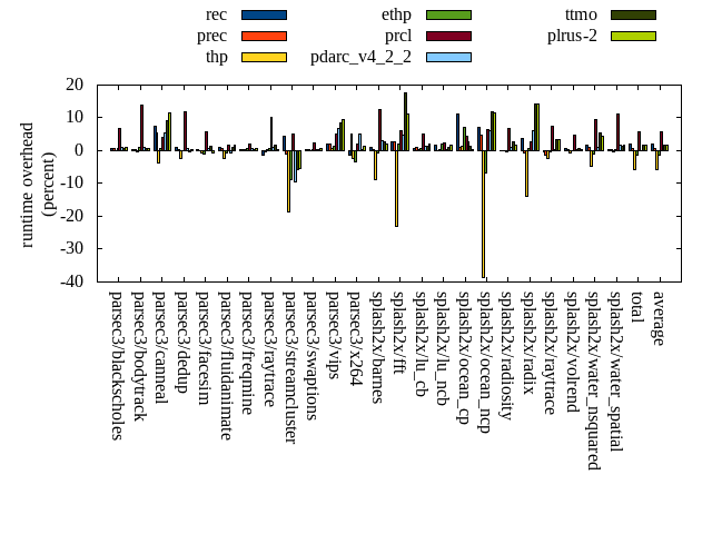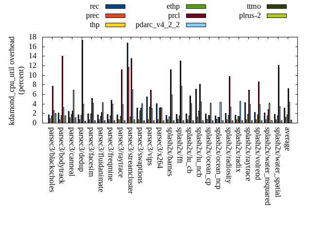 ======= Summary ======= runtime orig rec (overhead) prec (overhead) thp (overhead) ethp (overhead) prcl (overhead) pdarc_v4_2_2 (overhead) ttmo (overhead) plrus-2 (overhead) parsec3/blackscholes 138.925 139.966 (0.75) 139.740 (0.59) 138.813 (-0.08) 139.755 (0.60) 148.431 (6.84) 140.158 (0.89) 140.012 (0.78) 140.508 (1.14) parsec3/bodytrack 125.159 125.649 (0.39) 125.666 (0.40) 124.738 (-0.34) 126.400 (0.99) 142.399 (13.77) 126.542 (1.11) 125.999 (0.67) 126.033 (0.70) parsec3/canneal 212.983 229.161 (7.60) 224.730 (5.52) 204.906 (-3.79) 214.398 (0.66) 221.973 (4.22) 224.487 (5.40) 232.152 (9.00) 237.478 (11.50) parsec3/dedup 18.259 18.453 (1.06) 18.345 (0.47) 17.856 (-2.21) 18.278 (0.10) 20.418 (11.82) 18.360 (0.55) 18.191 (-0.37) 18.345 (0.47) parsec3/facesim 348.972 349.666 (0.20) 349.398 (0.12) 346.355 (-0.75) 345.142 (-1.10) 369.402 (5.85) 351.923 (0.85) 354.014 (1.44) 346.723 (-0.64) parsec3/fluidanimate 338.035 341.119 (0.91) 339.929 (0.56) 329.536 (-2.51) 336.127 (-0.56) 343.446 (1.60) 335.941 (-0.62) 341.947 (1.16) 344.044 (1.78) parsec3/freqmine 436.235 437.138 (0.21) 438.103 (0.43) 437.946 (0.39) 439.085 (0.65) 445.116 (2.04) 438.741 (0.57) 438.003 (0.41) 438.714 (0.57) parsec3/raytrace 184.320 181.920 (-1.30) 183.554 (-0.42) 185.198 (0.48) 185.315 (0.54) 203.224 (10.26) 186.137 (0.99) 187.402 (1.67) 184.888 (0.31) parsec3/streamcluster 728.291 759.843 (4.33) 720.228 (-1.11) 592.244 (-18.68) 664.690 (-8.73) 764.628 (4.99) 658.645 (-9.56) 686.643 (-5.72) 687.997 (-5.53) parsec3/swaptions 221.258 221.960 (0.32) 221.977 (0.33) 221.229 (-0.01) 221.745 (0.22) 226.199 (2.23) 221.969 (0.32) 221.960 (0.32) 222.526 (0.57) parsec3/vips 87.273 89.111 (2.11) 89.130 (2.13) 87.937 (0.76) 88.589 (1.51) 91.658 (5.02) 93.157 (6.74) 94.808 (8.63) 95.586 (9.53) parsec3/x264 117.063 115.452 (-1.38) 122.888 (4.98) 114.154 (-2.48) 113.119 (-3.37) 119.418 (2.01) 122.858 (4.95) 117.568 (0.43) 118.684 (1.38) splash2x/barnes 130.070 131.279 (0.93) 130.406 (0.26) 118.467 (-8.92) 129.316 (-0.58) 146.319 (12.49) 134.188 (3.17) 133.582 (2.70) 132.754 (2.06) splash2x/fft 61.801 63.487 (2.73) 63.574 (2.87) 47.503 (-23.14) 63.045 (2.01) 65.674 (6.27) 64.823 (4.89) 72.746 (17.71) 68.705 (11.17) splash2x/lu_cb 132.581 133.624 (0.79) 134.004 (1.07) 133.183 (0.45) 133.675 (0.83) 139.126 (4.94) 134.214 (1.23) 134.349 (1.33) 135.058 (1.87) splash2x/lu_ncb 150.501 153.295 (1.86) 150.596 (0.06) 150.867 (0.24) 153.325 (1.88) 154.127 (2.41) 150.966 (0.31) 152.274 (1.18) 152.882 (1.58) splash2x/ocean_cp 82.735 91.929 (11.11) 83.597 (1.04) 83.967 (1.49) 88.544 (7.02) 86.483 (4.53) 84.982 (2.72) 83.964 (1.49) 82.993 (0.31) splash2x/ocean_ncp 163.047 174.469 (7.01) 170.707 (4.70) 100.312 (-38.48) 151.953 (-6.80) 173.739 (6.56) 173.097 (6.16) 182.596 (11.99) 181.725 (11.46) splash2x/radiosity 142.832 142.787 (-0.03) 142.925 (0.07) 142.633 (-0.14) 142.520 (-0.22) 152.382 (6.69) 144.439 (1.13) 146.573 (2.62) 145.479 (1.85) splash2x/radix 51.704 53.557 (3.58) 51.312 (-0.76) 44.546 (-13.84) 52.104 (0.77) 53.120 (2.74) 54.916 (6.21) 59.066 (14.24) 59.026 (14.16) splash2x/raytrace 135.842 135.400 (-0.33) 134.093 (-1.29) 132.540 (-2.43) 135.181 (-0.49) 145.871 (7.38) 136.093 (0.18) 140.495 (3.43) 140.478 (3.41) splash2x/volrend 120.517 121.165 (0.54) 121.106 (0.49) 119.627 (-0.74) 120.576 (0.05) 126.273 (4.78) 120.833 (0.26) 121.179 (0.55) 121.078 (0.47) splash2x/water_nsquared 371.183 377.762 (1.77) 375.175 (1.08) 353.875 (-4.66) 368.033 (-0.85) 406.847 (9.61) 375.243 (1.09) 391.586 (5.50) 387.905 (4.51) splash2x/water_spatial 134.402 135.056 (0.49) 135.083 (0.51) 134.009 (-0.29) 135.020 (0.46) 149.657 (11.35) 136.573 (1.62) 136.328 (1.43) 136.456 (1.53) total 4633.970 4723.250 (1.93) 4666.280 (0.70) 4362.450 (-5.86) 4565.910 (-1.47) 4895.940 (5.65) 4629.280 (-0.10) 4713.440 (1.71) 4706.080 (1.56) average 193.082 196.802 (1.90) 194.428 (1.00) 181.769 (-4.99) 190.246 (-0.18) 203.997 (6.27) 192.887 (1.71) 196.393 (3.44) 196.087 (3.17) kdamond_cpu_util orig rec (overhead) prec (overhead) thp (overhead) ethp (overhead) prcl (overhead) pdarc_v4_2_2 (overhead) ttmo (overhead) plrus-2 (overhead) parsec3/blackscholes 0.000 1.727 (1.73) 0.934 (0.93) 0.000 (0.00) 1.503 (1.50) 7.762 (7.76) 2.689 (2.69) 0.000 (0.00) 2.045 (2.04) parsec3/bodytrack 0.000 2.183 (2.18) 0.708 (0.71) 0.000 (0.00) 1.659 (1.66) 14.028 (14.03) 3.224 (3.22) 0.000 (0.00) 1.513 (1.51) parsec3/canneal 0.000 2.447 (2.45) 1.080 (1.08) 0.000 (0.00) 1.856 (1.86) 2.521 (2.52) 6.921 (6.92) 0.000 (0.00) 1.078 (1.08) parsec3/dedup 0.000 1.742 (1.74) 0.737 (0.74) 0.000 (0.00) 1.589 (1.59) 17.378 (17.38) 3.937 (3.94) 0.000 (0.00) 0.376 (0.38) parsec3/facesim 0.000 1.921 (1.92) 0.712 (0.71) 0.000 (0.00) 1.964 (1.96) 5.222 (5.22) 4.187 (4.19) 0.000 (0.00) 0.540 (0.54) parsec3/fluidanimate 0.000 1.774 (1.77) 0.743 (0.74) 0.000 (0.00) 1.395 (1.40) 2.260 (2.26) 4.316 (4.32) 0.000 (0.00) 0.545 (0.54) parsec3/freqmine 0.000 1.812 (1.81) 0.693 (0.69) 0.000 (0.00) 1.492 (1.49) 4.825 (4.82) 3.929 (3.93) 0.000 (0.00) 0.538 (0.54) parsec3/raytrace 0.000 1.710 (1.71) 0.716 (0.72) 0.000 (0.00) 1.376 (1.38) 11.208 (11.21) 3.898 (3.90) 0.000 (0.00) 0.529 (0.53) parsec3/streamcluster 0.000 16.821 (16.82) 11.656 (11.66) 0.000 (0.00) 1.361 (1.36) 13.569 (13.57) 6.991 (6.99) 0.000 (0.00) 0.671 (0.67) parsec3/swaptions 0.000 3.148 (3.15) 0.696 (0.70) 0.000 (0.00) 2.591 (2.59) 3.130 (3.13) 4.115 (4.12) 0.000 (0.00) 0.528 (0.53) parsec3/vips 0.000 5.499 (5.50) 0.693 (0.69) 0.000 (0.00) 3.386 (3.39) 6.869 (6.87) 3.091 (3.09) 0.000 (0.00) 0.497 (0.50) parsec3/x264 0.000 4.106 (4.11) 0.708 (0.71) 0.000 (0.00) 3.132 (3.13) 3.225 (3.22) 3.114 (3.11) 0.000 (0.00) 0.521 (0.52) splash2x/barnes 0.000 1.622 (1.62) 0.759 (0.76) 0.000 (0.00) 1.340 (1.34) 11.205 (11.20) 5.911 (5.91) 0.000 (0.00) 0.551 (0.55) splash2x/fft 0.000 1.825 (1.82) 0.812 (0.81) 0.000 (0.00) 1.482 (1.48) 13.030 (13.03) 7.704 (7.70) 0.000 (0.00) 0.501 (0.50) splash2x/lu_cb 0.000 1.882 (1.88) 0.721 (0.72) 0.000 (0.00) 1.521 (1.52) 5.663 (5.66) 4.