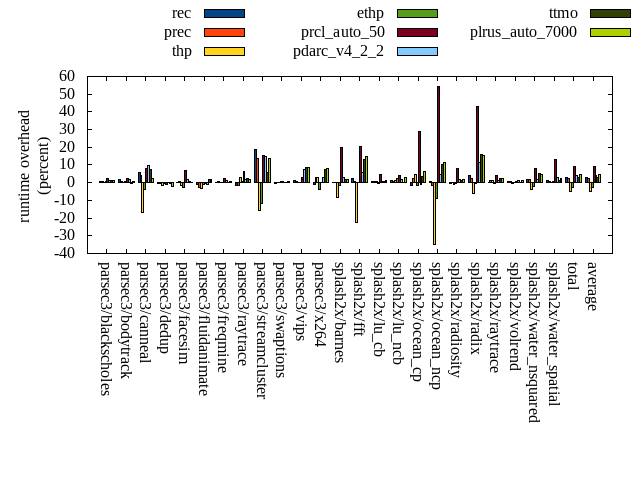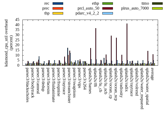 ======= Summary ======= runtime orig rec (overhead) prec (overhead) thp (overhead) ethp (overhead) prcl_auto_50 (overhead) pdarc_v4_2_2 (overhead) ttmo (overhead) plrus_auto_7000 (overhead) parsec3/blackscholes 138.610 139.339 (0.53) 139.246 (0.46) 138.442 (-0.12) 139.611 (0.72) 142.192 (2.58) 140.546 (1.40) 140.099 (1.07) 140.005 (1.01) parsec3/bodytrack 124.506 126.633 (1.71) 125.644 (0.91) 124.453 (-0.04) 125.380 (0.70) 127.406 (2.33) 127.087 (2.07) 124.235 (-0.22) 125.448 (0.76) parsec3/canneal 214.095 225.886 (5.51) 222.281 (3.82) 178.050 (-16.84) 206.053 (-3.76) 231.213 (8.00) 234.520 (9.54) 230.539 (7.68) 219.736 (2.64) parsec3/dedup 18.430 18.300 (-0.70) 18.339 (-0.49) 18.144 (-1.55) 18.314 (-0.63) 18.266 (-0.89) 18.425 (-0.02) 18.341 (-0.48) 18.044 (-2.09) parsec3/facesim 346.151 346.865 (0.21) 348.506 (0.68) 340.771 (-1.55) 336.218 (-2.87) 369.870 (6.85) 352.998 (1.98) 348.055 (0.55) 347.342 (0.34) parsec3/fluidanimate 338.957 334.747 (-1.24) 330.162 (-2.59) 327.840 (-3.28) 335.237 (-1.10) 336.530 (-0.72) 335.789 (-0.93) 344.167 (1.54) 346.006 (2.08) parsec3/freqmine 435.099 434.936 (-0.04) 436.856 (0.40) 434.937 (-0.04) 434.856 (-0.06) 444.990 (2.27) 439.397 (0.99) 434.763 (-0.08) 437.553 (0.56) parsec3/raytrace 182.921 180.328 (-1.42) 179.806 (-1.70) 188.320 (2.95) 183.914 (0.54) 195.002 (6.60) 186.179 (1.78) 186.954 (2.21) 185.916 (1.64) parsec3/streamcluster 603.251 717.746 (18.98) 687.194 (13.92) 510.008 (-15.46) 532.497 (-11.73) 694.587 (15.14) 690.961 (14.54) 637.715 (5.71) 684.222 (13.42) parsec3/swaptions 221.962 221.149 (-0.37) 221.808 (-0.07) 222.207 (0.11) 223.534 (0.71) 222.914 (0.43) 221.867 (-0.04) 221.642 (-0.14) 223.200 (0.56) parsec3/vips 87.766 88.729 (1.10) 88.284 (0.59) 87.640 (-0.14) 87.756 (-0.01) 90.097 (2.66) 94.303 (7.45) 95.282 (8.56) 95.182 (8.45) parsec3/x264 116.447 115.360 (-0.93) 120.137 (3.17) 119.687 (2.78) 111.768 (-4.02) 116.350 (-0.08) 119.982 (3.04) 125.151 (7.47) 125.760 (8.00) splash2x/barnes 130.144 130.600 (0.35) 130.246 (0.08) 119.549 (-8.14) 127.932 (-1.70) 155.692 (19.63) 133.893 (2.88) 132.237 (1.61) 132.704 (1.97) splash2x/fft 60.620 61.961 (2.21) 61.153 (0.88) 47.096 (-22.31) 60.618 (-0.00) 73.005 (20.43) 64.259 (6.00) 68.413 (12.85) 69.671 (14.93) splash2x/lu_cb 132.660 133.840 (0.89) 133.341 (0.51) 133.425 (0.58) 132.186 (-0.36) 138.925 (4.72) 133.636 (0.74) 133.659 (0.75) 134.112 (1.09) splash2x/lu_ncb 149.226 151.249 (1.36) 150.073 (0.57) 150.799 (1.05) 152.801 (2.40) 155.363 (4.11) 152.289 (2.05) 149.441 (0.14) 153.626 (2.95) splash2x/ocean_cp 79.899 78.693 (-1.51) 82.012 (2.64) 83.626 (4.66) 78.811 (-1.36) 102.993 (28.90) 79.256 (-0.81) 82.749 (3.57) 84.887 (6.24) splash2x/ocean_ncp 161.129 161.980 (0.53) 158.531 (-1.61) 104.956 (-34.86) 146.341 (-9.18) 248.630 (54.30) 169.036 (4.91) 177.327 (10.05) 179.807 (11.59) splash2x/radiosity 142.991 142.362 (-0.44) 142.752 (-0.17) 141.282 (-1.20) 142.631 (-0.25) 154.386 (7.97) 145.383 (1.67) 144.501 (1.06) 145.406 (1.69) splash2x/radix 49.503 51.501 (4.04) 50.780 (2.58) 46.598 (-5.87) 49.184 (-0.64) 70.702 (42.82) 55.056 (11.22) 57.317 (15.78) 56.995 (15.14) splash2x/raytrace 133.948 134.447 (0.37) 135.415 (1.10) 135.633 (1.26) 133.572 (-0.28) 139.617 (4.23) 135.549 (1.19) 136.914 (2.21) 136.992 (2.27) splash2x/volrend 119.826 120.514 (0.57) 120.752 (0.77) 119.237 (-0.49) 119.971 (0.12) 120.904 (0.90) 121.052 (1.02) 120.271 (0.37) 121.583 (1.47) splash2x/water_nsquared 369.079 375.128 (1.64) 375.038 (1.61) 354.649 (-3.91) 362.117 (-1.89) 398.951 (8.09) 374.904 (1.58) 387.854 (5.09) 386.922 (4.83) splash2x/water_spatial 133.559 134.876 (0.99) 134.620 (0.79) 133.394 (-0.12) 134.621 (0.80) 151.328 (13.30) 137.216 (2.74) 134.956 (1.05) 136.500 (2.20) total 4490.790 4627.180 (3.04) 4592.980 (2.28) 4260.770 (-5.12) 4375.920 (-2.56) 4899.900 (9.11) 4663.590 (3.85) 4632.580 (3.16) 4687.620 (4.38) average 187.116 192.799 (1.43) 191.374 (1.20) 177.532 (-4.27) 182.330 (-1.41) 204.162 (10.61) 194.316 (3.21) 193.024 (3.68) 195.317 (4.32) kdamond_cpu_util orig rec (overhead) prec (overhead) thp (overhead) ethp (overhead) prcl_auto_50 (overhead) pdarc_v4_2_2 (overhead) ttmo (overhead) plrus_auto_7000 (overhead) parsec3/blackscholes 0.000 1.731 (1.73) 0.888 (0.89) 0.000 (0.00) 1.775 (1.78) 4.353 (4.35) 3.478 (3.48) 0.000 (0.00) 2.129 (2.13) parsec3/bodytrack 0.000 2.181 (2.18) 0.861 (0.86) 0.000 (0.00) 2.066 (2.07) 3.507 (3.51) 3.997 (4.00) 0.000 (0.00) 2.022 (2.02) parsec3/canneal 0.000 2.424 (2.42) 3.651 (3.65) 0.000 (0.00) 2.312 (2.31) 5.623 (5.62) 8.882 (8.88) 0.000 (0.00) 2.336 (2.34) parsec3/dedup 0.000 1.755 (1.75) 0.885 (0.89) 0.000 (0.00) 1.809 (1.81) 1.848 (1.85) 4.102 (4.10) 0.000 (0.00) 0.844 (0.84) parsec3/facesim 0.000 2.024 (2.02) 0.885 (0.89) 0.000 (0.00) 2.562 (2.56) 5.148 (5.15) 4.923 (4.92) 0.000 (0.00) 1.966 (1.97) parsec3/fluidanimate 0.000 1.768 (1.77) 0.879 (0.88) 0.000 (0.00) 1.716 (1.72) 1.957 (1.96) 5.162 (5.16) 0.000 (0.00) 2.109 (2.11) parsec3/freqmine 0.000 1.655 (1.65) 0.872 (0.87) 0.000 (0.00) 1.646 (1.65) 5.006 (5.01) 4.621 (4.62) 0.000 (0.00) 2.417 (2.42) parsec3/raytrace 0.000 1.663 (1.66) 0.897 (0.90) 0.000 (0.00) 1.793 (1.79) 8.616 (8.62) 3.509 (3.51) 0.000 (0.00) 2.219 (2.22) parsec3/streamcluster 0.000 17.180 (17.18) 10.286 (10.29) 0.000 (0.00) 1.704 (1.70) 14.442 (14.44) 12.251 (12.25) 0.000 (0.00) 3.880 (3.88) parsec3/swaptions 0.000 2.872 (2.87) 0.906 (0.91) 0.000 (0.00) 2.862 (2.86) 3.084 (3.08) 4.931 (4.93) 0.000 (0.00) 1.753 (1.75) parsec3/vips 0.000 5.047 (5.05) 0.862 (0.86) 0.000 (0.00) 3.881 (3.88) 5.883 (5.88) 3.768 (3.77) 0.000 (0.00) 1.843 (1.84) parsec3/x264 0.000 3.989 (3.99) 0.874 (0.87) 0.000 (0.00) 4.171 (4.17) 3.938 (3.94) 3.893 (3.89) 0.000 (0.00) 2.048 (2.05) splash2x/barnes 0.000 1.604 (1.60) 1.042 (1.04) 0.000 (0.00) 1.614 (1.61) 17.089 (17.09) 6.134 (6.13) 0.000 (0.00) 1.726 (1.73) splash2x/fft 0.000 1.878 (1.88) 0.989 (0.99) 0.000 (0.00) 1.867 (1.87) 36.664 (36.66) 5.858 (5.86) 0.000 (0.00) 1.864 (1.86) splash2x/lu_cb 0.000 1.906 (1.91) 