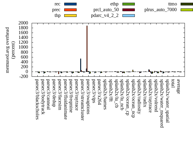======= Summary ======= runtime orig rec (overhead) prec (overhead) thp (overhead) ethp (overhead) prcl_auto_50 (overhead) pdarc_v4_2_2 (overhead) ttmo (overhead) plrus_auto_7000 (overhead) parsec3/blackscholes 139.361 139.434 (0.05) 139.004 (-0.26) 138.838 (-0.37) 139.100 (-0.19) 143.263 (2.80) 140.563 (0.86) 139.864 (0.36) 140.409 (0.75) parsec3/bodytrack 124.852 125.182 (0.26) 126.340 (1.19) 123.947 (-0.72) 125.630 (0.62) 127.153 (1.84) 127.205 (1.88) 124.471 (-0.31) 125.622 (0.62) parsec3/canneal 207.669 212.179 (2.17) 213.609 (2.86) 204.120 (-1.71) 209.949 (1.10) 244.127 (17.56) 237.964 (14.59) 232.540 (11.98) 237.537 (14.38) parsec3/dedup 18.086 18.645 (3.09) 18.337 (1.38) 17.995 (-0.50) 18.569 (2.67) 18.316 (1.27) 18.525 (2.43) 18.328 (1.34) 18.147 (0.34) parsec3/facesim 346.466 346.259 (-0.06) 350.009 (1.02) 339.385 (-2.04) 338.299 (-2.36) 358.800 (3.56) 349.852 (0.98) 348.909 (0.71) 352.161 (1.64) parsec3/fluidanimate 334.691 337.316 (0.78) 331.587 (-0.93) 328.369 (-1.89) 335.261 (0.17) 335.131 (0.13) 339.158 (1.33) 337.617 (0.87) 338.546 (1.15) parsec3/freqmine 435.346 434.805 (-0.12) 436.693 (0.31) 435.300 (-0.01) 434.640 (-0.16) 446.577 (2.58) 438.704 (0.77) 437.656 (0.53) 439.105 (0.86) parsec3/raytrace 179.304 183.373 (2.27) 181.693 (1.33) 187.907 (4.80) 181.624 (1.29) 200.535 (11.84) 187.420 (4.53) 189.234 (5.54) 184.552 (2.93) parsec3/streamcluster 671.786 766.888 (14.16) 702.903 (4.63) 568.631 (-15.36) 649.163 (-3.37) 742.118 (10.47) 697.462 (3.82) 709.414 (5.60) 658.200 (-2.02) parsec3/swaptions 220.450 222.333 (0.85) 222.204 (0.80) 222.448 (0.91) 221.514 (0.48) 223.483 (1.38) 221.139 (0.31) 221.744 (0.59) 224.285 (1.74) parsec3/vips 87.829 88.765 (1.07) 88.400 (0.65) 87.495 (-0.38) 88.914 (1.23) 90.156 (2.65) 93.844 (6.85) 94.401 (7.48) 94.632 (7.75) parsec3/x264 116.961 117.571 (0.52) 121.085 (3.53) 119.364 (2.05) 117.541 (0.50) 113.888 (-2.63) 120.152 (2.73) 115.097 (-1.59) 115.853 (-0.95) splash2x/barnes 130.261 130.391 (0.10) 130.820 (0.43) 120.009 (-7.87) 127.611 (-2.03) 155.377 (19.28) 135.719 (4.19) 133.652 (2.60) 134.273 (3.08) splash2x/fft 61.608 62.189 (0.94) 62.464 (1.39) 48.653 (-21.03) 60.961 (-1.05) 72.912 (18.35) 64.490 (4.68) 71.768 (16.49) 69.902 (13.46) splash2x/lu_cb 132.812 132.872 (0.05) 133.069 (0.19) 133.060 (0.19) 132.759 (-0.04) 139.097 (4.73) 133.522 (0.53) 134.123 (0.99) 134.682 (1.41) splash2x/lu_ncb 149.642 151.492 (1.24) 151.224 (1.06) 149.522 (-0.08) 152.166 (1.69) 154.665 (3.36) 152.189 (1.70) 151.162 (1.02) 152.775 (2.09) splash2x/ocean_cp 90.476 82.631 (-8.67) 78.993 (-12.69) 79.810 (-11.79) 79.560 (-12.06) 104.433 (15.43) 82.146 (-9.21) 84.366 (-6.75) 80.872 (-10.62) splash2x/ocean_ncp 165.106 162.678 (-1.47) 163.170 (-1.17) 99.658 (-39.64) 145.361 (-11.96) 245.295 (48.57) 168.326 (1.95) 178.824 (8.31) 172.087 (4.23) splash2x/radiosity 142.204 142.722 (0.36) 142.716 (0.36) 140.977 (-0.86) 142.560 (0.25) 153.979 (8.28) 144.728 (1.77) 145.127 (2.06) 144.846 (1.86) splash2x/radix 51.929 50.666 (-2.43) 51.522 (-0.78) 46.256 (-10.92) 49.319 (-5.03) 71.378 (37.45) 56.069 (7.97) 56.033 (7.90) 58.322 (12.31) splash2x/raytrace 134.151 134.179 (0.02) 134.635 (0.36) 132.191 (-1.46) 133.460 (-0.51) 142.814 (6.46) 136.212 (1.54) 138.895 (3.54) 136.863 (2.02) splash2x/volrend 119.980 120.877 (0.75) 121.069 (0.91) 119.122 (-0.72) 119.427 (-0.46) 121.496 (1.26) 120.826 (0.70) 120.392 (0.34) 121.180 (1.00) splash2x/water_nsquared 368.334 373.830 (1.49) 374.467 (1.67) 354.091 (-3.87) 361.443 (-1.87) 398.240 (8.12) 373.159 (1.31) 385.596 (4.69) 387.847 (5.30) splash2x/water_spatial 133.676 135.205 (1.14) 135.620 (1.45) 133.837 (0.12) 134.228 (0.41) 150.517 (12.60) 137.759 (3.05) 135.233 (1.17) 136.538 (2.14) total 4562.980 4672.490 (2.40) 4611.630 (1.07) 4330.990 (-5.08) 4499.050 (-1.40) 4953.760 (8.56) 4677.140 (2.50) 4704.440 (3.10) 4659.240 (2.11) average 190.124 194.687 (0.77) 192.151 (0.40) 180.458 (-4.72) 187.460 (-1.28) 206.407 (9.89) 194.881 (2.55) 196.018 (3.14) 194.135 (2.81) kdamond_cpu_util orig rec (overhead) prec (overhead) thp (overhead) ethp (overhead) prcl_auto_50 (overhead) pdarc_v4_2_2 (overhead) ttmo (overhead) plrus_auto_7000 (overhead) parsec3/blackscholes 0.000 1.775 (1.78) 0.924 (0.92) 0.000 (0.00) 1.766 (1.77) 4.256 (4.26) 3.334 (3.33) 0.000 (0.00) 2.181 (2.18) parsec3/bodytrack 0.000 2.194 (2.19) 0.879 (0.88) 0.000 (0.00) 2.143 (2.14) 3.403 (3.40) 4.142 (4.14) 0.000 (0.00) 2.052 (2.05) parsec3/canneal 0.000 2.457 (2.46) 4.182 (4.18) 0.000 (0.00) 2.251 (2.25) 5.863 (5.86) 9.968 (9.97) 0.000 (0.00) 2.361 (2.36) parsec3/dedup 0.000 1.942 (1.94) 0.904 (0.90) 0.000 (0.00) 2.015 (2.01) 1.742 (1.74) 4.821 (4.82) 0.000 (0.00) 0.843 (0.84) parsec3/facesim 0.000 1.968 (1.97) 0.888 (0.89) 0.000 (0.00) 2.435 (2.44) 5.104 (5.10) 5.221 (5.22) 0.000 (0.00) 2.237 (2.24) parsec3/fluidanimate 0.000 1.756 (1.76) 0.890 (0.89) 0.000 (0.00) 1.703 (1.70) 2.010 (2.01) 5.039 (5.04) 0.000 (0.00) 2.145 (2.14) parsec3/freqmine 0.000 1.685 (1.69) 0.903 (0.90) 0.000 (0.00) 1.649 (1.65) 4.790 (4.79) 4.690 (4.69) 0.000 (0.00) 2.373 (2.37) parsec3/raytrace 0.000 1.735 (1.74) 0.931 (0.93) 0.000 (0.00) 1.704 (1.70) 8.270 (8.27) 3.071 (3.07) 0.000 (0.00) 2.136 (2.14) parsec3/streamcluster 0.000 16.681 (16.68) 8.918 (8.92) 0.000 (0.00) 1.583 (1.58) 14.295 (14.29) 10.855 (10.85) 0.000 (0.00) 2.839 (2.84) parsec3/swaptions 0.000 3.078 (3.08) 0.909 (0.91) 0.000 (0.00) 3.190 (3.19) 3.146 (3.15) 4.967 (4.97) 0.000 (0.00) 1.881 (1.88) parsec3/vips 0.000 5.207 (5.21) 0.857 (0.86) 0.000 (0.00) 3.308 (3.31) 5.912 (5.91) 3.744 (3.74) 0.000 (0.00) 1.854 (1.85) parsec3/x264 0.000 3.953 (3.95) 0.879 (0.88) 0.000 (0.00) 3.703 (3.70) 4.013 (4.01) 3.934 (3.93) 0.000 (0.00) 2.013 (2.01) splash2x/barnes 0.000 1.509 (1.51) 0.950 (0.95) 0.000 (0.00) 1.563 (1.56) 17.613 (17.61) 6.997 (7.00) 0.000 (0.00) 1.711 (1.71) splash2x/fft 0.000 1.815 (1.82) 1.013 (1.01) 0.000 (0.00) 1.828 (1.83) 33.668 (33.67) 4.240 (4.24) 0.000 (0.00) 1.834 (1.83) splash2x/lu_cb 0.000 1.893 (1.89) 0.720 (0.72)
