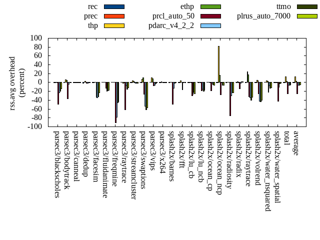 ======= Summary ======= runtime orig rec (overhead) prec (overhead) thp (overhead) ethp (overhead) prcl_auto_50 (overhead) pdarc_v4_2_2 (overhead) ttmo (overhead) plrus_auto_7000 (overhead) parsec3/blackscholes 139.129 140.354 (0.88) 139.809 (0.49) 138.509 (-0.45) 139.123 (-0.00) 143.313 (3.01) 140.761 (1.17) 139.588 (0.33) 140.763 (1.17) parsec3/bodytrack 126.363 125.537 (-0.65) 125.372 (-0.78) 124.313 (-1.62) 125.056 (-1.03) 127.166 (0.63) 126.357 (-0.00) 124.979 (-1.10) 126.237 (-0.10) parsec3/canneal 221.792 213.093 (-3.92) 215.488 (-2.84) 180.982 (-18.40) 195.937 (-11.66) 227.984 (2.79) 227.412 (2.53) 233.770 (5.40) 221.266 (-0.24) parsec3/dedup 18.046 18.383 (1.87) 18.284 (1.32) 17.979 (-0.37) 18.418 (2.06) 18.452 (2.25) 18.582 (2.97) 18.238 (1.06) 18.222 (0.97) parsec3/facesim 346.266 348.219 (0.56) 345.467 (-0.23) 335.011 (-3.25) 344.498 (-0.51) 361.971 (4.54) 351.476 (1.50) 348.463 (0.63) 350.593 (1.25) parsec3/fluidanimate 339.162 337.084 (-0.61) 342.836 (1.08) 324.989 (-4.18) 335.407 (-1.11) 345.262 (1.80) 334.362 (-1.42) 344.620 (1.61) 339.469 (0.09) parsec3/freqmine 434.568 436.669 (0.48) 436.261 (0.39) 435.569 (0.23) 436.078 (0.35) 444.952 (2.39) 440.123 (1.28) 436.062 (0.34) 439.981 (1.25) parsec3/raytrace 184.056 183.263 (-0.43) 183.493 (-0.31) 185.256 (0.65) 182.191 (-1.01) 198.078 (7.62) 187.412 (1.82) 186.618 (1.39) 188.226 (2.27) parsec3/streamcluster 614.123 704.517 (14.72) 663.237 (8.00) 575.909 (-6.22) 585.661 (-4.63) 717.504 (16.83) 675.726 (10.03) 688.763 (12.15) 674.709 (9.87) parsec3/swaptions 221.798 221.929 (0.06) 221.639 (-0.07) 220.840 (-0.43) 223.667 (0.84) 223.513 (0.77) 224.768 (1.34) 221.544 (-0.11) 221.887 (0.04) parsec3/vips 87.924 88.593 (0.76) 88.476 (0.63) 87.674 (-0.29) 87.849 (-0.09) 89.755 (2.08) 94.871 (7.90) 94.977 (8.02) 95.730 (8.88) parsec3/x264 120.236 120.711 (0.39) 118.299 (-1.61) 115.520 (-3.92) 117.383 (-2.37) 116.578 (-3.04) 119.677 (-0.47) 121.592 (1.13) 122.303 (1.72) splash2x/barnes 132.565 130.425 (-1.61) 131.826 (-0.56) 119.290 (-10.01) 128.645 (-2.96) 162.550 (22.62) 132.847 (0.21) 132.323 (-0.18) 134.620 (1.55) splash2x/fft 60.471 61.622 (1.90) 62.301 (3.03) 47.116 (-22.08) 60.921 (0.74) 68.107 (12.63) 65.170 (7.77) 69.673 (15.22) 69.486 (14.91) splash2x/lu_cb 132.323 133.273 (0.72) 132.683 (0.27) 132.949 (0.47) 133.218 (0.68) 138.483 (4.66) 133.853 (1.16) 134.176 (1.40) 134.538 (1.67) splash2x/lu_ncb 149.666 150.961 (0.87) 151.367 (1.14) 150.791 (0.75) 152.595 (1.96) 152.768 (2.07) 152.820 (2.11) 152.236 (1.72) 153.275 (2.41) splash2x/ocean_cp 78.453 84.573 (7.80) 79.378 (1.18) 81.426 (3.79) 79.999 (1.97) 102.280 (30.37) 84.550 (7.77) 86.897 (10.76) 84.000 (7.07) splash2x/ocean_ncp 155.557 159.149 (2.31) 162.966 (4.76) 109.842 (-29.39) 145.363 (-6.55) 237.728 (52.82) 166.725 (7.18) 174.029 (11.87) 173.489 (11.53) splash2x/radiosity 142.379 143.028 (0.46) 143.159 (0.55) 142.001 (-0.27) 142.245 (-0.09) 154.009 (8.17) 145.052 (1.88) 144.519 (1.50) 144.693 (1.63) splash2x/radix 50.555 51.612 (2.09) 51.096 (1.07) 44.800 (-11.38) 51.514 (1.90) 75.850 (50.04) 56.124 (11.02) 55.578 (9.94) 55.408 (9.60) splash2x/raytrace 133.341 135.767 (1.82) 135.672 (1.75) 133.796 (0.34) 134.896 (1.17) 140.378 (5.28) 134.425 (0.81) 136.749 (2.56) 136.276 (2.20) splash2x/volrend 120.177 120.863 (0.57) 121.010 (0.69) 119.942 (-0.20) 119.542 (-0.53) 121.580 (1.17) 120.896 (0.60) 120.128 (-0.04) 121.239 (0.88) splash2x/water_nsquared 370.797 373.969 (0.86) 374.830 (1.09) 355.635 (-4.09) 357.978 (-3.46) 395.243 (6.59) 375.108 (1.16) 385.606 (3.99) 385.114 (3.86) splash2x/water_spatial 133.514 135.458 (1.46) 134.059 (0.41) 133.866 (0.26) 134.683 (0.88) 150.481 (12.71) 137.636 (3.09) 136.304 (2.09) 136.211 (2.02) total 4513.260 4619.050 (2.34) 4579.030 (1.46) 4314.020 (-4.41) 4432.860 (-1.78) 4913.990 (8.88) 4646.740 (2.96) 4687.440 (3.86) 4667.750 (3.42) average 188.053 192.460 (1.39) 190.793 (0.89) 179.751 (-4.59) 184.702 (-0.98) 204.750 (10.45) 193.614 (3.06) 195.310 (3.82) 194.490 (3.60) kdamond_cpu_util orig rec (overhead) prec (overhead) thp (overhead) ethp (overhead) prcl_auto_50 (overhead) pdarc_v4_2_2 (overhead) ttmo (overhead) plrus_auto_7000 (overhead) parsec3/blackscholes 0.000 1.606 (1.61) 0.869 (0.87) 0.000 (0.00) 1.692 (1.69) 4.328 (4.33) 3.519 (3.52) 0.000 (0.00) 2.119 (2.12) parsec3/bodytrack 0.000 2.217 (2.22) 0.866 (0.87) 0.000 (0.00) 2.016 (2.02) 3.372 (3.37) 3.987 (3.99) 0.000 (0.00) 2.048 (2.05) parsec3/canneal 0.000 2.445 (2.44) 1.922 (1.92) 0.000 (0.00) 2.255 (2.25) 5.300 (5.30) 9.443 (9.44) 0.000 (0.00) 2.921 (2.92) parsec3/dedup 0.000 1.953 (1.95) 0.876 (0.88) 0.000 (0.00) 1.795 (1.79) 2.017 (2.02) 5.304 (5.30) 0.000 (0.00) 0.846 (0.85) parsec3/facesim 0.000 1.933 (1.93) 0.876 (0.88) 0.000 (0.00) 2.448 (2.45) 4.712 (4.71) 5.198 (5.20) 0.000 (0.00) 1.933 (1.93) parsec3/fluidanimate 0.000 1.757 (1.76) 0.896 (0.90) 0.000 (0.00) 1.699 (1.70) 1.949 (1.95) 5.151 (5.15) 0.000 (0.00) 2.004 (2.00) parsec3/freqmine 0.000 1.832 (1.83) 0.887 (0.89) 0.000 (0.00) 1.759 (1.76) 5.106 (5.11) 4.800 (4.80) 0.000 (0.00) 2.297 (2.30) parsec3/raytrace 0.000 1.664 (1.66) 0.900 (0.90) 0.000 (0.00) 1.756 (1.76) 8.662 (8.66) 3.518 (3.52) 0.000 (0.00) 2.173 (2.17) parsec3/streamcluster 0.000 16.660 (16.66) 9.385 (9.39) 0.000 (0.00) 1.640 (1.64) 14.501 (14.50) 12.675 (12.68) 0.000 (0.00) 6.160 (6.16) parsec3/swaptions 0.000 3.102 (3.10) 0.909 (0.91) 0.000 (0.00) 3.270 (3.27) 3.190 (3.19) 5.080 (5.08) 0.000 (0.00) 1.783 (1.78) parsec3/vips 0.000 5.132 (5.13) 0.854 (0.85) 0.000 (0.00) 3.269 (3.27) 6.428 (6.43) 3.542 (3.54) 0.000 (0.00) 1.878 (1.88) parsec3/x264 0.000 3.964 (3.96) 0.873 (0.87) 0.000 (0.00) 3.817 (3.82) 4.058 (4.06) 4.078 (4.08) 0.000 (0.00) 2.098 (2.10) splash2x/barnes 0.000 1.545 (1.54) 0.965 (0.97) 0.000 (0.00) 1.545 (1.55) 21.225 (21.22) 7.231 (7.23) 0.000 (0.00) 1.711 (1.71) splash2x/fft 0.000 1.808 (1.81) 0.988 (0.99) 0.000 (0.00) 1.868 (1.87) 26.249 (26.25) 5.896 (5.90) 0.000 (0.00) 1.825 (1.83) splash2x/lu_cb 0.000 1.895 (1.89) 0.898 (0.9