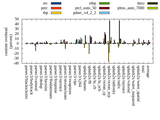 ======= Summary ======= runtime orig rec (overhead) prec (overhead) thp (overhead) ethp (overhead) prcl_auto_50 (overhead) pdarc_v4_2_2 (overhead) ttmo (overhead) plrus_auto_7000 (overhead) parsec3/blackscholes 139.371 139.477 (0.08) 139.510 (0.10) 137.974 (-1.00) 139.471 (0.07) 142.353 (2.14) 140.494 (0.81) 139.586 (0.15) 140.222 (0.61) parsec3/bodytrack 125.097 125.754 (0.53) 125.794 (0.56) 124.261 (-0.67) 125.593 (0.40) 127.884 (2.23) 127.000 (1.52) 124.092 (-0.80) 126.714 (1.29) parsec3/canneal 217.961 210.159 (-3.58) 210.166 (-3.58) 186.116 (-14.61) 216.510 (-0.67) 224.238 (2.88) 215.604 (-1.08) 226.539 (3.94) 215.888 (-0.95) parsec3/dedup 18.200 18.304 (0.57) 18.656 (2.51) 18.169 (-0.17) 18.389 (1.04) 18.477 (1.52) 18.411 (1.16) 18.471 (1.49) 18.167 (-0.18) parsec3/facesim 342.401 351.922 (2.78) 347.450 (1.47) 340.507 (-0.55) 339.190 (-0.94) 361.205 (5.49) 349.288 (2.01) 350.676 (2.42) 346.283 (1.13) parsec3/fluidanimate 334.362 333.891 (-0.14) 339.887 (1.65) 327.826 (-1.95) 328.208 (-1.84) 338.854 (1.34) 335.752 (0.42) 334.794 (0.13) 339.177 (1.44) parsec3/freqmine 433.274 436.127 (0.66) 435.139 (0.43) 436.720 (0.80) 436.570 (0.76) 448.056 (3.41) 438.153 (1.13) 436.720 (0.80) 438.667 (1.24) parsec3/raytrace 181.995 182.141 (0.08) 182.235 (0.13) 185.536 (1.95) 181.846 (-0.08) 196.443 (7.94) 186.612 (2.54) 185.710 (2.04) 189.071 (3.89) parsec3/streamcluster 642.853 692.944 (7.79) 697.048 (8.43) 646.199 (0.52) 579.182 (-9.90) 674.956 (4.99) 647.454 (0.72) 658.440 (2.42) 670.891 (4.36) parsec3/swaptions 220.402 220.504 (0.05) 221.932 (0.69) 221.626 (0.56) 221.292 (0.40) 221.227 (0.37) 225.084 (2.12) 221.651 (0.57) 223.034 (1.19) parsec3/vips 88.068 89.142 (1.22) 88.094 (0.03) 88.313 (0.28) 87.601 (-0.53) 89.942 (2.13) 94.493 (7.30) 95.913 (8.91) 95.201 (8.10) parsec3/x264 111.962 116.873 (4.39) 121.945 (8.92) 114.390 (2.17) 119.769 (6.97) 115.878 (3.50) 125.490 (12.08) 111.796 (-0.15) 121.933 (8.91) splash2x/barnes 130.135 129.655 (-0.37) 129.632 (-0.39) 119.040 (-8.53) 128.044 (-1.61) 152.200 (16.96) 134.701 (3.51) 132.849 (2.09) 131.804 (1.28) splash2x/fft 61.137 61.488 (0.57) 61.816 (1.11) 48.948 (-19.94) 61.300 (0.27) 71.055 (16.22) 64.252 (5.10) 69.585 (13.82) 69.093 (13.01) splash2x/lu_cb 132.115 133.220 (0.84) 132.830 (0.54) 132.643 (0.40) 133.373 (0.95) 138.756 (5.03) 134.162 (1.55) 134.491 (1.80) 134.591 (1.87) splash2x/lu_ncb 149.400 151.733 (1.56) 150.723 (0.89) 149.896 (0.33) 153.381 (2.66) 154.918 (3.69) 151.056 (1.11) 150.818 (0.95) 152.893 (2.34) splash2x/ocean_cp 80.750 81.486 (0.91) 83.671 (3.62) 88.970 (10.18) 79.271 (-1.83) 99.525 (23.25) 83.262 (3.11) 95.749 (18.58) 83.896 (3.90) splash2x/ocean_ncp 163.086 161.757 (-0.82) 171.795 (5.34) 102.701 (-37.03) 133.711 (-18.01) 239.831 (47.06) 168.452 (3.29) 172.641 (5.86) 184.448 (13.10) splash2x/radiosity 142.119 143.124 (0.71) 143.082 (0.68) 141.185 (-0.66) 142.809 (0.49) 153.317 (7.88) 146.035 (2.76) 144.029 (1.34) 144.101 (1.40) splash2x/radix 50.633 50.986 (0.70) 52.076 (2.85) 46.782 (-7.61) 48.136 (-4.93) 74.471 (47.08) 55.787 (10.18) 55.636 (9.88) 55.613 (9.83) splash2x/raytrace 132.837 134.770 (1.46) 135.035 (1.65) 131.979 (-0.65) 134.447 (1.21) 140.601 (5.84) 135.558 (2.05) 136.228 (2.55) 136.653 (2.87) splash2x/volrend 119.935 121.094 (0.97) 120.170 (0.20) 119.179 (-0.63) 119.289 (-0.54) 120.387 (0.38) 120.709 (0.65) 120.509 (0.48) 121.165 (1.03) splash2x/water_nsquared 371.111 373.753 (0.71) 374.068 (0.80) 352.314 (-5.06) 360.960 (-2.74) 400.318 (7.87) 375.858 (1.28) 383.072 (3.22) 387.450 (4.40) splash2x/water_spatial 134.813 133.533 (-0.95) 134.572 (-0.18) 133.398 (-1.05) 134.026 (-0.58) 149.050 (10.56) 137.026 (1.64) 134.525 (-0.21) 136.204 (1.03) total 4523.990 4593.820 (1.54) 4617.320 (2.06) 4394.680 (-2.86) 4422.370 (-2.25) 4853.950 (7.29) 4610.680 (1.92) 4634.530 (2.44) 4663.140 (3.08) average 188.500 191.409 (0.86) 192.388 (1.60) 183.112 (-3.46) 184.265 (-1.21) 202.248 (9.57) 192.112 (2.79) 193.105 (3.43) 194.298 (3.63) kdamond_cpu_util orig rec (overhead) prec (overhead) thp (overhead) ethp (overhead) prcl_auto_50 (overhead) pdarc_v4_2_2 (overhead) ttmo (overhead) plrus_auto_7000 (overhead) parsec3/blackscholes 0.000 1.686 (1.69) 0.900 (0.90) 0.000 (0.00) 1.729 (1.73) 4.312 (4.31) 3.240 (3.24) 0.000 (0.00) 2.066 (2.07) parsec3/bodytrack 0.000 2.253 (2.25) 0.875 (0.87) 0.000 (0.00) 2.100 (2.10) 3.513 (3.51) 4.099 (4.10) 0.000 (0.00) 2.043 (2.04) parsec3/canneal 0.000 2.429 (2.43) 4.540 (4.54) 0.000 (0.00) 2.302 (2.30) 5.348 (5.35) 6.917 (6.92) 0.000 (0.00) 2.190 (2.19) parsec3/dedup 0.000 2.044 (2.04) 0.869 (0.87) 0.000 (0.00) 1.830 (1.83) 1.771 (1.77) 5.518 (5.52) 0.000 (0.00) 0.866 (0.87) parsec3/facesim 0.000 2.027 (2.03) 0.884 (0.88) 0.000 (0.00) 2.611 (2.61) 4.857 (4.86) 5.195 (5.20) 0.000 (0.00) 1.622 (1.62) parsec3/fluidanimate 0.000 1.777 (1.78) 0.910 (0.91) 0.000 (0.00) 1.728 (1.73) 2.141 (2.14) 5.217 (5.22) 0.000 (0.00) 1.705 (1.70) parsec3/freqmine 0.000 1.599 (1.60) 0.893 (0.89) 0.000 (0.00) 1.822 (1.82) 5.037 (5.04) 4.962 (4.96) 0.000 (0.00) 2.296 (2.30) parsec3/raytrace 0.000 1.778 (1.78) 0.893 (0.89) 0.000 (0.00) 1.666 (1.67) 8.696 (8.70) 4.148 (4.15) 0.000 (0.00) 2.204 (2.20) parsec3/streamcluster 0.000 16.932 (16.93) 6.318 (6.32) 0.000 (0.00) 1.814 (1.81) 17.032 (17.03) 12.982 (12.98) 0.000 (0.00) 3.689 (3.69) parsec3/swaptions 0.000 2.800 (2.80) 0.894 (0.89) 0.000 (0.00) 2.770 (2.77) 2.891 (2.89) 4.987 (4.99) 0.000 (0.00) 1.914 (1.91) parsec3/vips 0.000 5.133 (5.13) 0.859 (0.86) 0.000 (0.00) 3.892 (3.89) 6.253 (6.25) 3.976 (3.98) 0.000 (0.00) 1.820 (1.82) parsec3/x264 0.000 3.861 (3.86) 0.878 (0.88) 0.000 (0.00) 3.976 (3.98) 4.086 (4.09) 4.523 (4.52) 0.000 (0.00) 2.120 (2.12) splash2x/barnes 0.000 1.536 (1.54) 0.950 (0.95) 0.000 (0.00) 1.612 (1.61) 17.204 (17.20) 6.289 (6.29) 0.000 (0.00) 1.759 (1.76) splash2x/fft 0.000 1.821 (1.82) 0.989 (0.99) 0.000 (0.00) 1.901 (1.90) 32.458 (32.46) 6.024 (6.02) 0.000 (0.00) 1.791 (1.79) splash2x/lu_cb 0.000 1.911 (1.91) 0.843 (0.84) 0.000 (0.00) 1.