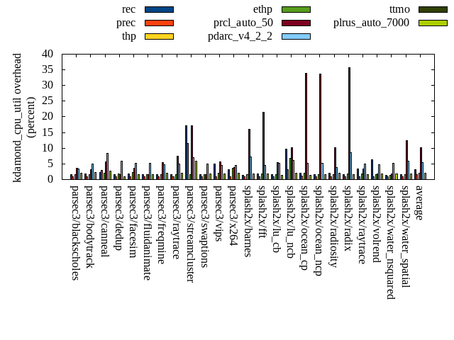 ======= Summary ======= runtime orig rec (overhead) prec (overhead) thp (overhead) ethp (overhead) prcl_auto_50 (overhead) pdarc_v4_2_2 (overhead) ttmo (overhead) plrus_auto_7000 (overhead) parsec3/blackscholes 139.729 140.707 (0.70) 140.126 (0.28) 138.678 (-0.75) 139.473 (-0.18) 143.284 (2.54) 140.535 (0.58) 139.766 (0.03) 140.698 (0.69) parsec3/bodytrack 126.786 126.010 (-0.61) 126.219 (-0.45) 125.105 (-1.33) 127.770 (0.78) 128.068 (1.01) 126.252 (-0.42) 125.549 (-0.98) 127.015 (0.18) parsec3/canneal 200.340 213.159 (6.40) 213.872 (6.75) 192.790 (-3.77) 211.966 (5.80) 236.797 (18.20) 236.702 (18.15) 227.920 (13.77) 229.335 (14.47) parsec3/dedup 18.498 18.629 (0.71) 18.456 (-0.23) 18.141 (-1.93) 18.423 (-0.41) 18.932 (2.35) 19.001 (2.72) 18.485 (-0.07) 18.319 (-0.97) parsec3/facesim 344.136 344.438 (0.09) 339.595 (-1.32) 337.391 (-1.96) 341.602 (-0.74) 361.530 (5.05) 350.770 (1.93) 355.122 (3.19) 350.966 (1.98) parsec3/fluidanimate 340.035 333.890 (-1.81) 345.415 (1.58) 326.671 (-3.93) 329.573 (-3.08) 336.985 (-0.90) 338.260 (-0.52) 331.388 (-2.54) 339.685 (-0.10) parsec3/freqmine 434.407 438.372 (0.91) 436.195 (0.41) 435.676 (0.29) 436.044 (0.38) 445.041 (2.45) 439.972 (1.28) 436.427 (0.46) 438.931 (1.04) parsec3/raytrace 182.025 182.047 (0.01) 183.360 (0.73) 186.301 (2.35) 182.401 (0.21) 195.000 (7.13) 185.943 (2.15) 182.273 (0.14) 185.995 (2.18) parsec3/streamcluster 691.722 702.188 (1.51) 685.787 (-0.86) 546.500 (-20.99) 554.162 (-19.89) 760.210 (9.90) 635.191 (-8.17) 709.883 (2.63) 677.005 (-2.13) parsec3/swaptions 220.859 221.421 (0.25) 221.051 (0.09) 221.181 (0.15) 222.016 (0.52) 221.161 (0.14) 221.481 (0.28) 221.379 (0.24) 225.462 (2.08) parsec3/vips 87.975 89.082 (1.26) 88.811 (0.95) 88.062 (0.10) 88.370 (0.45) 90.659 (3.05) 95.855 (8.96) 95.912 (9.02) 96.094 (9.23) parsec3/x264 118.859 112.668 (-5.21) 115.001 (-3.25) 114.604 (-3.58) 113.808 (-4.25) 123.767 (4.13) 107.820 (-9.29) 115.438 (-2.88) 121.238 (2.00) splash2x/barnes 130.688 132.433 (1.33) 132.386 (1.30) 118.084 (-9.64) 125.927 (-3.64) 152.098 (16.38) 134.664 (3.04) 132.369 (1.29) 133.525 (2.17) splash2x/fft 61.181 62.105 (1.51) 62.741 (2.55) 48.480 (-20.76) 60.773 (-0.67) 65.644 (7.29) 66.578 (8.82) 66.165 (8.15) 69.137 (13.00) splash2x/lu_cb 134.738 133.239 (-1.11) 133.457 (-0.95) 133.097 (-1.22) 133.347 (-1.03) 139.414 (3.47) 134.082 (-0.49) 134.113 (-0.46) 134.587 (-0.11) splash2x/lu_ncb 149.678 152.646 (1.98) 153.478 (2.54) 149.700 (0.01) 150.764 (0.73) 154.869 (3.47) 155.438 (3.85) 153.045 (2.25) 152.567 (1.93) splash2x/ocean_cp 85.908 79.171 (-7.84) 82.515 (-3.95) 84.706 (-1.40) 81.231 (-5.44) 112.367 (30.80) 83.891 (-2.35) 84.794 (-1.30) 82.811 (-3.61) splash2x/ocean_ncp 160.317 167.564 (4.52) 166.944 (4.13) 105.060 (-34.47) 145.202 (-9.43) 271.610 (69.42) 170.948 (6.63) 171.851 (7.19) 174.617 (8.92) splash2x/radiosity 142.671 143.416 (0.52) 142.974 (0.21) 141.125 (-1.08) 143.470 (0.56) 153.032 (7.26) 145.286 (1.83) 143.347 (0.47) 144.712 (1.43) splash2x/radix 51.021 53.773 (5.39) 53.373 (4.61) 44.910 (-11.98) 49.862 (-2.27) 69.494 (36.21) 58.867 (15.38) 53.085 (4.05) 55.486 (8.75) splash2x/raytrace 134.994 134.935 (-0.04) 135.896 (0.67) 134.703 (-0.22) 136.089 (0.81) 144.782 (7.25) 137.535 (1.88) 139.288 (3.18) 138.524 (2.61) splash2x/volrend 121.403 121.129 (-0.23) 120.793 (-0.50) 120.256 (-0.94) 120.576 (-0.68) 121.343 (-0.05) 121.027 (-0.31) 120.215 (-0.98) 121.651 (0.20) splash2x/water_nsquared 371.267 380.538 (2.50) 384.180 (3.48) 353.744 (-4.72) 363.638 (-2.06) 395.656 (6.57) 382.408 (3.00) 385.075 (3.72) 392.358 (5.68) splash2x/water_spatial 135.337 135.093 (-0.18) 137.122 (1.32) 134.347 (-0.73) 135.170 (-0.12) 151.162 (11.69) 139.356 (2.97) 134.856 (-0.36) 135.738 (0.30) total 4584.580 4618.650 (0.74) 4619.750 (0.77) 4299.320 (-6.22) 4411.660 (-3.77) 4992.900 (8.91) 4627.870 (0.94) 4677.750 (2.03) 4686.460 (2.22) average 191.024 192.444 (0.52) 192.490 (0.84) 179.138 (-5.10) 183.819 (-1.82) 208.037 (10.62) 192.828 (2.58) 194.906 (2.09) 195.269 (3.00) kdamond_cpu_util orig rec (overhead) prec (overhead) thp (overhead) ethp (overhead) prcl_auto_50 (overhead) pdarc_v4_2_2 (overhead) ttmo (overhead) plrus_auto_7000 (overhead) parsec3/blackscholes 0.000 1.654 (1.65) 0.900 (0.90) 0.000 (0.00) 1.618 (1.62) 3.651 (3.65) 3.352 (3.35) 0.000 (0.00) 2.070 (2.07) parsec3/bodytrack 0.000 1.857 (1.86) 0.885 (0.88) 0.000 (0.00) 1.625 (1.63) 3.193 (3.19) 4.882 (4.88) 0.000 (0.00) 2.150 (2.15) parsec3/canneal 0.000 2.363 (2.36) 2.835 (2.84) 0.000 (0.00) 2.085 (2.09) 5.761 (5.76) 8.389 (8.39) 0.000 (0.00) 2.702 (2.70) parsec3/dedup 0.000 1.615 (1.62) 0.834 (0.83) 0.000 (0.00) 1.842 (1.84) 1.577 (1.58) 5.913 (5.91) 0.000 (0.00) 0.886 (0.89) parsec3/facesim 0.000 1.791 (1.79) 0.848 (0.85) 0.000 (0.00) 2.289 (2.29) 3.677 (3.68) 5.135 (5.14) 0.000 (0.00) 1.484 (1.48) parsec3/fluidanimate 0.000 1.525 (1.52) 0.902 (0.90) 0.000 (0.00) 1.497 (1.50) 1.545 (1.54) 5.291 (5.29) 0.000 (0.00) 1.610 (1.61) parsec3/freqmine 0.000 1.682 (1.68) 0.885 (0.89) 0.000 (0.00) 1.573 (1.57) 5.341 (5.34) 4.845 (4.85) 0.000 (0.00) 2.031 (2.03) parsec3/raytrace 0.000 1.479 (1.48) 0.894 (0.89) 0.000 (0.00) 1.623 (1.62) 7.515 (7.52) 5.055 (5.06) 0.000 (0.00) 2.057 (2.06) parsec3/streamcluster 0.000 17.132 (17.13) 11.562 (11.56) 0.000 (0.00) 1.583 (1.58) 17.206 (17.21) 6.953 (6.95) 0.000 (0.00) 5.800 (5.80) parsec3/swaptions 0.000 1.627 (1.63) 0.916 (0.92) 0.000 (0.00) 1.531 (1.53) 1.531 (1.53) 5.017 (5.02) 0.000 (0.00) 1.835 (1.83) parsec3/vips 0.000 4.936 (4.94) 0.804 (0.80) 0.000 (0.00) 2.042 (2.04) 5.736 (5.74) 4.586 (4.59) 0.000 (0.00) 1.827 (1.83) parsec3/x264 0.000 3.165 (3.16) 0.900 (0.90) 0.000 (0.00) 3.606 (3.61) 3.803 (3.80) 4.522 (4.52) 0.000 (0.00) 2.046 (2.05) splash2x/barnes 0.000 1.427 (1.43) 0.942 (0.94) 0.000 (0.00) 1.590 (1.59) 16.091 (16.09) 7.290 (7.29) 0.000 (0.00) 1.764 (1.76) splash2x/fft 0.000 1.839 (1.84) 1.001 (1.00) 0.000 (0.00) 1.791 (1.79) 21.463 (21.46) 4.591 (4.59) 0.000 (0.00) 1.898 (1.90) splash2x/lu_cb 0.000 1.526 (1.5