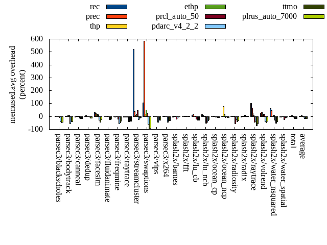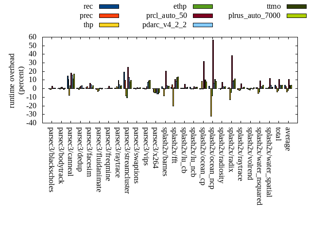 ======= Summary ======= runtime orig rec (overhead) prec (overhead) thp (overhead) ethp (overhead) prcl_auto_50 (overhead) pdarc_v4_2_2 (overhead) ttmo (overhead) plrus_auto_7000 (overhead) parsec3/blackscholes 140.091 140.112 (0.02) 139.758 (-0.24) 138.967 (-0.80) 140.493 (0.29) 143.824 (2.67) 140.852 (0.54) 140.672 (0.41) 140.762 (0.48) parsec3/bodytrack 125.726 125.853 (0.10) 126.530 (0.64) 124.912 (-0.65) 127.051 (1.05) 127.869 (1.70) 126.920 (0.95) 124.686 (-0.83) 126.625 (0.72) parsec3/canneal 198.213 227.421 (14.74) 220.078 (11.03) 182.266 (-8.05) 205.382 (3.62) 233.731 (17.92) 229.611 (15.84) 221.295 (11.65) 231.503 (16.80) parsec3/dedup 18.163 18.322 (0.87) 18.326 (0.89) 17.937 (-1.24) 18.505 (1.88) 18.693 (2.92) 18.808 (3.55) 18.280 (0.64) 18.251 (0.48) parsec3/facesim 342.165 346.873 (1.38) 350.714 (2.50) 343.438 (0.37) 344.187 (0.59) 364.512 (6.53) 357.568 (4.50) 347.131 (1.45) 354.956 (3.74) parsec3/fluidanimate 336.034 334.487 (-0.46) 333.340 (-0.80) 325.621 (-3.10) 328.169 (-2.34) 337.869 (0.55) 337.598 (0.47) 334.876 (-0.34) 337.881 (0.55) parsec3/freqmine 436.523 437.119 (0.14) 437.827 (0.30) 437.273 (0.17) 439.011 (0.57) 449.556 (2.99) 439.742 (0.74) 438.511 (0.46) 440.483 (0.91) parsec3/raytrace 182.269 183.826 (0.85) 183.476 (0.66) 186.576 (2.36) 184.306 (1.12) 199.702 (9.56) 190.286 (4.40) 187.561 (2.90) 188.210 (3.26) parsec3/streamcluster 605.980 723.931 (19.46) 664.193 (9.61) 555.224 (-8.38) 542.774 (-10.43) 756.969 (24.92) 685.100 (13.06) 656.017 (8.26) 665.397 (9.81) parsec3/swaptions 221.434 223.120 (0.76) 222.339 (0.41) 220.861 (-0.26) 221.703 (0.12) 223.572 (0.97) 222.436 (0.45) 222.848 (0.64) 223.633 (0.99) parsec3/vips 88.520 88.967 (0.51) 88.947 (0.48) 88.334 (-0.21) 88.080 (-0.50) 90.723 (2.49) 95.274 (7.63) 96.533 (9.05) 96.949 (9.52) parsec3/x264 121.292 121.107 (-0.15) 116.644 (-3.83) 116.078 (-4.30) 115.163 (-5.05) 115.754 (-4.57) 113.646 (-6.30) 114.101 (-5.93) 115.893 (-4.45) splash2x/barnes 129.331 132.590 (2.52) 129.867 (0.41) 118.742 (-8.19) 129.076 (-0.20) 155.868 (20.52) 133.976 (3.59) 132.952 (2.80) 132.959 (2.81) splash2x/fft 60.878 62.147 (2.08) 63.780 (4.77) 48.595 (-20.18) 61.720 (1.38) 67.483 (10.85) 65.943 (8.32) 68.921 (13.21) 69.238 (13.73) splash2x/lu_cb 132.624 133.631 (0.76) 133.597 (0.73) 133.414 (0.60) 133.859 (0.93) 139.353 (5.07) 134.157 (1.16) 133.927 (0.98) 135.239 (1.97) splash2x/lu_ncb 151.068 153.433 (1.57) 149.973 (-0.72) 151.149 (0.05) 150.667 (-0.26) 154.801 (2.47) 151.869 (0.53) 153.970 (1.92) 154.108 (2.01) splash2x/ocean_cp 79.941 79.762 (-0.22) 79.487 (-0.57) 86.852 (8.64) 79.588 (-0.44) 105.475 (31.94) 81.439 (1.87) 88.048 (10.14) 86.182 (7.81) splash2x/ocean_ncp 160.801 165.728 (3.06) 161.306 (0.31) 109.506 (-31.90) 147.603 (-8.21) 251.881 (56.64) 170.684 (6.15) 178.434 (10.97) 174.787 (8.70) splash2x/radiosity 142.751 143.050 (0.21) 143.160 (0.29) 141.634 (-0.78) 143.950 (0.84) 153.106 (7.25) 146.269 (2.46) 144.990 (1.57) 145.801 (2.14) splash2x/radix 51.287 51.724 (0.85) 52.050 (1.49) 44.732 (-12.78) 49.009 (-4.44) 70.958 (38.35) 55.631 (8.47) 56.257 (9.69) 57.094 (11.32) splash2x/raytrace 136.401 135.205 (-0.88) 135.029 (-1.01) 133.575 (-2.07) 134.495 (-1.40) 144.574 (5.99) 136.881 (0.35) 138.235 (1.34) 138.844 (1.79) splash2x/volrend 121.294 122.299 (0.83) 120.973 (-0.26) 120.272 (-0.84) 119.593 (-1.40) 121.871 (0.48) 121.614 (0.26) 120.796 (-0.41) 122.672 (1.14) splash2x/water_nsquared 377.335 381.251 (1.04) 382.945 (1.49) 356.737 (-5.46) 362.040 (-4.05) 410.965 (8.91) 385.982 (2.29) 387.085 (2.58) 392.279 (3.96) splash2x/water_spatial 134.551 135.722 (0.87) 134.571 (0.02) 135.212 (0.49) 136.771 (1.65) 150.718 (12.02) 140.055 (4.09) 136.786 (1.66) 136.741 (1.63) total 4494.650 4667.680 (3.85) 4588.920 (2.10) 4317.880 (-3.93) 4403.200 (-2.03) 4989.820 (11.02) 4682.350 (4.18) 4642.920 (3.30) 4686.480 (4.27) average 187.277 194.487 (2.12) 191.205 (1.19) 179.912 (-4.02) 183.467 (-1.03) 207.909 (11.21) 195.098 (3.56) 193.455 (3.53) 195.270 (4.24) kdamond_cpu_util orig rec (overhead) prec (overhead) thp (overhead) ethp (overhead) prcl_auto_50 (overhead) pdarc_v4_2_2 (overhead) ttmo (overhead) plrus_auto_7000 (overhead) parsec3/blackscholes 0.000 1.531 (1.53) 0.896 (0.90) 0.000 (0.00) 1.619 (1.62) 3.894 (3.89) 3.942 (3.94) 0.000 (0.00) 2.176 (2.18) parsec3/bodytrack 0.000 1.943 (1.94) 0.841 (0.84) 0.000 (0.00) 1.936 (1.94) 3.212 (3.21) 4.350 (4.35) 0.000 (0.00) 1.562 (1.56) parsec3/canneal 0.000 2.265 (2.27) 3.690 (3.69) 0.000 (0.00) 1.892 (1.89) 5.692 (5.69) 11.309 (11.31) 0.000 (0.00) 1.659 (1.66) parsec3/dedup 0.000 1.689 (1.69) 0.869 (0.87) 0.000 (0.00) 1.619 (1.62) 1.836 (1.84) 4.377 (4.38) 0.000 (0.00) 0.621 (0.62) parsec3/facesim 0.000 1.558 (1.56) 0.891 (0.89) 0.000 (0.00) 2.362 (2.36) 4.107 (4.11) 5.312 (5.31) 0.000 (0.00) 1.487 (1.49) parsec3/fluidanimate 0.000 1.539 (1.54) 0.897 (0.90) 0.000 (0.00) 1.477 (1.48) 1.779 (1.78) 5.131 (5.13) 0.000 (0.00) 1.503 (1.50) parsec3/freqmine 0.000 1.804 (1.80) 0.893 (0.89) 0.000 (0.00) 1.563 (1.56) 4.840 (4.84) 4.671 (4.67) 0.000 (0.00) 1.806 (1.81) parsec3/raytrace 0.000 1.587 (1.59) 0.900 (0.90) 0.000 (0.00) 1.629 (1.63) 8.428 (8.43) 5.458 (5.46) 0.000 (0.00) 1.494 (1.49) parsec3/streamcluster 0.000 12.707 (12.71) 6.617 (6.62) 0.000 (0.00) 1.569 (1.57) 17.117 (17.12) 8.111 (8.11) 0.000 (0.00) 2.755 (2.76) parsec3/swaptions 0.000 1.861 (1.86) 0.879 (0.88) 0.000 (0.00) 1.496 (1.50) 1.431 (1.43) 4.961 (4.96) 0.000 (0.00) 1.438 (1.44) parsec3/vips 0.000 4.263 (4.26) 0.846 (0.85) 0.000 (0.00) 1.959 (1.96) 5.485 (5.48) 4.749 (4.75) 0.000 (0.00) 1.403 (1.40) parsec3/x264 0.000 3.287 (3.29) 0.903 (0.90) 0.000 (0.00) 3.733 (3.73) 3.455 (3.46) 4.822 (4.82) 0.000 (0.00) 1.489 (1.49) splash2x/barnes 0.000 1.494 (1.49) 1.002 (1.00) 0.000 (0.00) 1.597 (1.60) 17.252 (17.25) 6.268 (6.27) 0.000 (0.00) 1.314 (1.31) splash2x/fft 0.000 1.812 (1.81) 1.005 (1.01) 0.000 (0.00) 1.760 (1.76) 22.158 (22.16) 7.887 (7.89) 0.000 (0.00) 1.275 (1.28) splash2x/lu_cb 0.000 1.726 (1.73) 0.897 (0.90) 