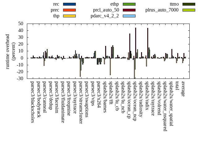 ======= Summary ======= runtime orig rec (overhead) prec (overhead) thp (overhead) ethp (overhead) prcl_auto_50 (overhead) pdarc_v4_2_2 (overhead) ttmo (overhead) plrus_auto_7000 (overhead) parsec3/blackscholes 138.598 139.322 (0.52) 139.200 (0.43) 138.848 (0.18) 139.375 (0.56) 143.100 (3.25) 140.105 (1.09) 139.852 (0.90) 140.099 (1.08) parsec3/bodytrack 124.882 126.302 (1.14) 125.920 (0.83) 124.412 (-0.38) 124.979 (0.08) 127.381 (2.00) 126.554 (1.34) 124.435 (-0.36) 126.198 (1.05) parsec3/canneal 208.641 215.642 (3.36) 226.209 (8.42) 185.677 (-11.01) 200.506 (-3.90) 229.718 (10.10) 214.138 (2.63) 224.877 (7.78) 235.899 (13.06) parsec3/dedup 18.036 18.430 (2.19) 18.428 (2.17) 18.017 (-0.10) 18.130 (0.52) 18.444 (2.27) 18.636 (3.33) 18.230 (1.08) 18.103 (0.37) parsec3/facesim 346.123 342.901 (-0.93) 349.388 (0.94) 337.597 (-2.46) 346.661 (0.16) 361.180 (4.35) 354.455 (2.41) 352.415 (1.82) 354.985 (2.56) parsec3/fluidanimate 336.477 342.406 (1.76) 337.521 (0.31) 327.765 (-2.59) 332.528 (-1.17) 346.908 (3.10) 334.985 (-0.44) 333.995 (-0.74) 333.770 (-0.80) parsec3/freqmine 436.276 435.935 (-0.08) 435.568 (-0.16) 434.738 (-0.35) 436.249 (-0.01) 445.647 (2.15) 438.714 (0.56) 437.125 (0.19) 438.917 (0.61) parsec3/raytrace 180.027 184.471 (2.47) 182.750 (1.51) 188.764 (4.85) 184.645 (2.56) 199.844 (11.01) 184.402 (2.43) 190.881 (6.03) 184.189 (2.31) parsec3/streamcluster 710.274 751.823 (5.85) 700.640 (-1.36) 518.308 (-27.03) 583.191 (-17.89) 731.573 (3.00) 675.651 (-4.87) 645.987 (-9.05) 659.391 (-7.16) parsec3/swaptions 219.896 221.464 (0.71) 221.468 (0.72) 222.957 (1.39) 223.581 (1.68) 222.398 (1.14) 222.191 (1.04) 220.635 (0.34) 222.222 (1.06) parsec3/vips 87.532 88.480 (1.08) 88.666 (1.30) 87.776 (0.28) 88.236 (0.80) 89.540 (2.29) 93.765 (7.12) 96.236 (9.94) 96.355 (10.08) parsec3/x264 125.645 114.058 (-9.22) 116.413 (-7.35) 114.232 (-9.08) 117.894 (-6.17) 119.343 (-5.02) 114.521 (-8.85) 114.575 (-8.81) 118.981 (-5.30) splash2x/barnes 129.684 132.084 (1.85) 130.610 (0.71) 118.580 (-8.56) 127.953 (-1.34) 152.501 (17.59) 133.669 (3.07) 133.559 (2.99) 133.378 (2.85) splash2x/fft 61.508 63.140 (2.65) 62.614 (1.80) 46.306 (-24.72) 61.235 (-0.44) 71.522 (16.28) 64.323 (4.58) 72.912 (18.54) 71.234 (15.81) splash2x/lu_cb 132.520 133.120 (0.45) 133.270 (0.57) 132.852 (0.25) 133.671 (0.87) 138.023 (4.15) 134.095 (1.19) 134.529 (1.52) 134.116 (1.20) splash2x/lu_ncb 150.984 149.894 (-0.72) 151.439 (0.30) 152.537 (1.03) 151.159 (0.12) 153.447 (1.63) 150.897 (-0.06) 152.672 (1.12) 152.353 (0.91) splash2x/ocean_cp 80.684 81.038 (0.44) 78.709 (-2.45) 87.158 (8.02) 78.567 (-2.62) 109.255 (35.41) 81.628 (1.17) 88.786 (10.04) 85.678 (6.19) splash2x/ocean_ncp 162.507 158.352 (-2.56) 167.467 (3.05) 114.394 (-29.61) 135.431 (-16.66) 234.499 (44.30) 164.309 (1.11) 175.396 (7.93) 182.518 (12.31) splash2x/radiosity 142.028 142.224 (0.14) 143.565 (1.08) 141.253 (-0.55) 142.326 (0.21) 153.776 (8.27) 145.033 (2.12) 145.098 (2.16) 144.457 (1.71) splash2x/radix 50.698 50.993 (0.58) 52.359 (3.28) 44.551 (-12.13) 50.591 (-0.21) 72.758 (43.51) 54.556 (7.61) 58.344 (15.08) 56.891 (12.21) splash2x/raytrace 133.695 135.156 (1.09) 136.195 (1.87) 132.655 (-0.78) 134.050 (0.27) 139.746 (4.53) 134.478 (0.59) 141.158 (5.58) 138.467 (3.57) splash2x/volrend 120.188 120.774 (0.49) 121.369 (0.98) 119.835 (-0.29) 119.229 (-0.80) 120.076 (-0.09) 120.466 (0.23) 120.948 (0.63) 121.475 (1.07) splash2x/water_nsquared 369.368 376.192 (1.85) 374.902 (1.50) 353.102 (-4.40) 357.985 (-3.08) 395.339 (7.03) 371.103 (0.47) 392.416 (6.24) 388.694 (5.23) splash2x/water_spatial 133.819 134.497 (0.51) 134.141 (0.24) 133.781 (-0.03) 134.080 (0.20) 150.950 (12.80) 138.517 (3.51) 135.989 (1.62) 136.549 (2.04) total 4600.110 4658.670 (1.27) 4628.820 (0.62) 4276.110 (-7.04) 4422.250 (-3.87) 4926.980 (7.11) 4611.190 (0.24) 4651.070 (1.11) 4674.930 (1.63) average 191.671 194.111 (0.65) 192.867 (0.86) 178.171 (-4.92) 184.260 (-1.93) 205.291 (9.79) 192.133 (1.39) 193.795 (3.44) 194.789 (3.50) kdamond_cpu_util orig rec (overhead) prec (overhead) thp (overhead) ethp (overhead) prcl_auto_50 (overhead) pdarc_v4_2_2 (overhead) ttmo (overhead) plrus_auto_7000 (overhead) parsec3/blackscholes 0.000 1.711 (1.71) 0.900 (0.90) 0.000 (0.00) 1.737 (1.74) 4.189 (4.19) 3.321 (3.32) 0.000 (0.00) 1.635 (1.64) parsec3/bodytrack 0.000 2.174 (2.17) 0.874 (0.87) 0.000 (0.00) 2.104 (2.10) 3.410 (3.41) 3.806 (3.81) 0.000 (0.00) 1.864 (1.86) parsec3/canneal 0.000 2.315 (2.31) 2.266 (2.27) 0.000 (0.00) 2.318 (2.32) 5.227 (5.23) 6.760 (6.76) 0.000 (0.00) 2.768 (2.77) parsec3/dedup 0.000 1.928 (1.93) 0.891 (0.89) 0.000 (0.00) 1.982 (1.98) 2.142 (2.14) 3.302 (3.30) 0.000 (0.00) 0.810 (0.81) parsec3/facesim 0.000 1.988 (1.99) 0.896 (0.90) 0.000 (0.00) 2.573 (2.57) 5.424 (5.42) 4.965 (4.96) 0.000 (0.00) 1.826 (1.83) parsec3/fluidanimate 0.000 1.805 (1.80) 0.908 (0.91) 0.000 (0.00) 1.746 (1.75) 2.206 (2.21) 5.046 (5.05) 0.000 (0.00) 2.294 (2.29) parsec3/freqmine 0.000 1.650 (1.65) 0.916 (0.92) 0.000 (0.00) 1.616 (1.62) 4.991 (4.99) 4.544 (4.54) 0.000 (0.00) 2.429 (2.43) parsec3/raytrace 0.000 1.711 (1.71) 0.922 (0.92) 0.000 (0.00) 1.686 (1.69) 9.019 (9.02) 3.641 (3.64) 0.000 (0.00) 2.040 (2.04) parsec3/streamcluster 0.000 16.295 (16.29) 8.636 (8.64) 0.000 (0.00) 1.609 (1.61) 14.826 (14.83) 10.908 (10.91) 0.000 (0.00) 2.912 (2.91) parsec3/swaptions 0.000 3.052 (3.05) 0.919 (0.92) 0.000 (0.00) 3.279 (3.28) 3.167 (3.17) 4.862 (4.86) 0.000 (0.00) 2.036 (2.04) parsec3/vips 0.000 4.777 (4.78) 0.870 (0.87) 0.000 (0.00) 3.310 (3.31) 5.783 (5.78) 3.558 (3.56) 0.000 (0.00) 1.912 (1.91) parsec3/x264 0.000 3.956 (3.96) 0.876 (0.88) 0.000 (0.00) 4.139 (4.14) 4.054 (4.05) 3.809 (3.81) 0.000 (0.00) 2.071 (2.07) splash2x/barnes 0.000 1.518 (1.52) 0.998 (1.00) 0.000 (0.00) 1.609 (1.61) 16.491 (16.49) 6.119 (6.12) 0.000 (0.00) 1.927 (1.93) splash2x/fft 0.000 1.841 (1.84) 1.011 (1.01) 0.000 (0.00) 1.877 (1.88) 35.396 (35.40) 6.463 (6.46) 0.000 (0.00) 1.883 (1.88) splash2x/lu_cb 0.000 1.885 (1.88) 0.901 (0.90)