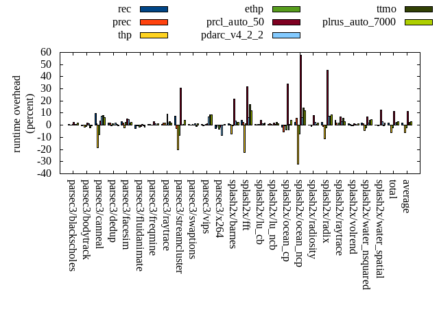 ======= Summary ======= runtime orig rec (overhead) prec (overhead) thp (overhead) ethp (overhead) prcl_auto_50 (overhead) pdarc_v4_2_2 (overhead) ttmo (overhead) plrus_auto_7000 (overhead) parsec3/blackscholes 138.888 139.711 (0.59) 139.255 (0.26) 138.873 (-0.01) 139.876 (0.71) 142.391 (2.52) 140.209 (0.95) 140.086 (0.86) 141.018 (1.53) parsec3/bodytrack 126.473 125.627 (-0.67) 126.673 (0.16) 124.772 (-1.34) 125.336 (-0.90) 128.458 (1.57) 128.017 (1.22) 123.992 (-1.96) 125.804 (-0.53) parsec3/canneal 216.644 237.811 (9.77) 218.927 (1.05) 177.058 (-18.27) 199.201 (-8.05) 224.442 (3.60) 232.450 (7.30) 233.469 (7.77) 230.775 (6.52) parsec3/dedup 18.222 18.573 (1.93) 18.563 (1.87) 18.130 (-0.51) 18.438 (1.19) 18.281 (0.32) 18.541 (1.75) 18.385 (0.89) 18.098 (-0.68) parsec3/facesim 341.684 351.448 (2.86) 346.908 (1.53) 335.154 (-1.91) 349.502 (2.29) 360.165 (5.41) 357.668 (4.68) 347.064 (1.57) 350.328 (2.53) parsec3/fluidanimate 341.516 332.111 (-2.75) 339.944 (-0.46) 339.124 (-0.70) 335.291 (-1.82) 338.472 (-0.89) 343.789 (0.67) 340.201 (-0.38) 335.340 (-1.81) parsec3/freqmine 434.796 437.197 (0.55) 436.864 (0.48) 434.997 (0.05) 436.192 (0.32) 446.512 (2.69) 439.654 (1.12) 436.450 (0.38) 439.706 (1.13) parsec3/raytrace 181.904 183.050 (0.63) 185.231 (1.83) 185.502 (1.98) 182.574 (0.37) 198.638 (9.20) 184.953 (1.68) 187.587 (3.12) 185.171 (1.80) parsec3/streamcluster 654.741 702.008 (7.22) 635.340 (-2.96) 522.101 (-20.26) 600.349 (-8.31) 854.402 (30.49) 653.748 (-0.15) 659.316 (0.70) 680.410 (3.92) parsec3/swaptions 222.058 223.188 (0.51) 222.649 (0.27) 222.770 (0.32) 223.177 (0.50) 221.933 (-0.06) 225.171 (1.40) 220.228 (-0.82) 224.526 (1.11) parsec3/vips 88.020 88.713 (0.79) 87.863 (-0.18) 87.898 (-0.14) 88.566 (0.62) 89.359 (1.52) 93.876 (6.65) 95.483 (8.48) 95.332 (8.31) parsec3/x264 119.030 115.948 (-2.59) 117.025 (-1.68) 119.494 (0.39) 114.901 (-3.47) 116.890 (-1.80) 108.742 (-8.64) 119.324 (0.25) 119.854 (0.69) splash2x/barnes 130.145 131.917 (1.36) 131.324 (0.91) 120.629 (-7.31) 129.430 (-0.55) 158.459 (21.76) 134.429 (3.29) 133.176 (2.33) 133.593 (2.65) splash2x/fft 60.527 62.887 (3.90) 61.978 (2.40) 46.818 (-22.65) 61.126 (0.99) 79.871 (31.96) 64.225 (6.11) 70.990 (17.29) 67.633 (11.74) splash2x/lu_cb 132.488 133.568 (0.81) 132.349 (-0.11) 133.558 (0.81) 133.520 (0.78) 137.974 (4.14) 134.050 (1.18) 133.908 (1.07) 135.197 (2.04) splash2x/lu_ncb 151.261 152.494 (0.82) 153.170 (1.26) 152.589 (0.88) 151.101 (-0.11) 153.779 (1.66) 151.879 (0.41) 154.908 (2.41) 152.995 (1.15) splash2x/ocean_cp 84.608 83.309 (-1.54) 79.839 (-5.64) 84.161 (-0.53) 81.378 (-3.82) 113.217 (33.81) 81.317 (-3.89) 85.044 (0.51) 88.018 (4.03) splash2x/ocean_ncp 156.579 160.413 (2.45) 165.180 (5.49) 106.150 (-32.21) 145.498 (-7.08) 246.822 (57.63) 166.585 (6.39) 178.433 (13.96) 174.953 (11.73) splash2x/radiosity 142.774 143.075 (0.21) 143.333 (0.39) 141.674 (-0.77) 142.569 (-0.14) 154.340 (8.10) 145.900 (2.19) 143.901 (0.79) 145.402 (1.84) splash2x/radix 52.108 53.270 (2.23) 51.492 (-1.18) 46.322 (-11.11) 50.919 (-2.28) 75.799 (45.46) 55.942 (7.36) 56.110 (7.68) 56.682 (8.78) splash2x/raytrace 133.131 138.199 (3.81) 135.325 (1.65) 133.170 (0.03) 135.655 (1.90) 142.428 (6.98) 137.278 (3.12) 140.859 (5.81) 136.792 (2.75) splash2x/volrend 120.178 121.452 (1.06) 120.699 (0.43) 119.775 (-0.34) 119.799 (-0.32) 121.484 (1.09) 120.729 (0.46) 120.398 (0.18) 121.556 (1.15) splash2x/water_nsquared 370.786 376.951 (1.66) 375.667 (1.32) 354.288 (-4.45) 363.177 (-2.05) 397.005 (7.07) 377.672 (1.86) 386.210 (4.16) 387.534 (4.52) splash2x/water_spatial 134.962 135.069 (0.08) 135.326 (0.27) 134.308 (-0.48) 135.072 (0.08) 151.635 (12.35) 138.844 (2.88) 134.207 (-0.56) 137.179 (1.64) total 4553.540 4648.000 (2.07) 4560.930 (0.16) 4279.310 (-6.02) 4462.660 (-2.00) 5072.750 (11.40) 4635.660 (1.80) 4659.740 (2.33) 4683.880 (2.86) average 189.731 193.667 (1.49) 190.039 (0.39) 178.305 (-4.94) 185.944 (-1.21) 211.365 (11.94) 193.153 (2.08) 194.156 (3.19) 195.162 (3.27) kdamond_cpu_util orig rec (overhead) prec (overhead) thp (overhead) ethp (overhead) prcl_auto_50 (overhead) pdarc_v4_2_2 (overhead) ttmo (overhead) plrus_auto_7000 (overhead) parsec3/blackscholes 0.000 1.767 (1.77) 0.878 (0.88) 0.000 (0.00) 1.753 (1.75) 4.246 (4.25) 3.189 (3.19) 0.000 (0.00) 2.136 (2.14) parsec3/bodytrack 0.000 2.206 (2.21) 0.857 (0.86) 0.000 (0.00) 2.158 (2.16) 3.454 (3.45) 3.942 (3.94) 0.000 (0.00) 2.042 (2.04) parsec3/canneal 0.000 2.394 (2.39) 2.756 (2.76) 0.000 (0.00) 2.244 (2.24) 5.309 (5.31) 12.295 (12.30) 0.000 (0.00) 2.475 (2.48) parsec3/dedup 0.000 1.896 (1.90) 0.845 (0.84) 0.000 (0.00) 1.970 (1.97) 1.791 (1.79) 4.028 (4.03) 0.000 (0.00) 0.877 (0.88) parsec3/facesim 0.000 2.008 (2.01) 0.893 (0.89) 0.000 (0.00) 2.556 (2.56) 5.150 (5.15) 5.062 (5.06) 0.000 (0.00) 1.588 (1.59) parsec3/fluidanimate 0.000 1.801 (1.80) 0.912 (0.91) 0.000 (0.00) 1.686 (1.69) 2.008 (2.01) 5.040 (5.04) 0.000 (0.00) 1.920 (1.92) parsec3/freqmine 0.000 1.771 (1.77) 0.895 (0.90) 0.000 (0.00) 1.760 (1.76) 5.052 (5.05) 4.487 (4.49) 0.000 (0.00) 2.459 (2.46) parsec3/raytrace 0.000 1.712 (1.71) 0.897 (0.90) 0.000 (0.00) 1.708 (1.71) 8.593 (8.59) 3.976 (3.98) 0.000 (0.00) 2.194 (2.19) parsec3/streamcluster 0.000 17.063 (17.06) 8.119 (8.12) 0.000 (0.00) 1.632 (1.63) 15.739 (15.74) 13.319 (13.32) 0.000 (0.00) 3.879 (3.88) parsec3/swaptions 0.000 3.267 (3.27) 0.840 (0.84) 0.000 (0.00) 3.183 (3.18) 3.041 (3.04) 4.881 (4.88) 0.000 (0.00) 1.786 (1.79) parsec3/vips 0.000 5.111 (5.11) 0.869 (0.87) 0.000 (0.00) 3.230 (3.23) 5.988 (5.99) 3.532 (3.53) 0.000 (0.00) 1.836 (1.84) parsec3/x264 0.000 3.987 (3.99) 0.875 (0.87) 0.000 (0.00) 4.058 (4.06) 4.006 (4.01) 3.896 (3.90) 0.000 (0.00) 1.999 (2.00) splash2x/barnes 0.000 1.604 (1.60) 0.962 (0.96) 0.000 (0.00) 1.631 (1.63) 18.038 (18.04) 6.914 (6.91) 0.000 (0.00) 1.722 (1.72) splash2x/fft 0.000 1.850 (1.85) 0.962 (0.96) 0.000 (0.00) 1.795 (1.79) 49.586 (49.59) 5.373 (5.37) 0.000 (0.00) 1.817 (1.82) splash2x/lu_cb 0.000 1.943 (1.94) 0.890 (0.89)