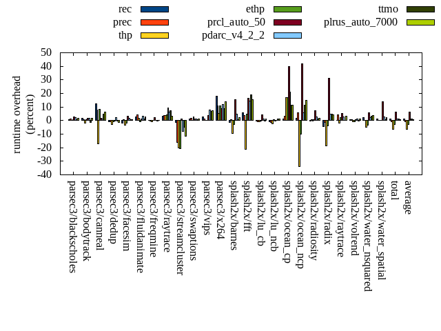 ======= Summary ======= runtime orig rec (overhead) prec (overhead) thp (overhead) ethp (overhead) prcl_auto_50 (overhead) pdarc_v4_2_2 (overhead) ttmo (overhead) plrus_auto_7000 (overhead) parsec3/blackscholes 138.256 139.293 (0.75) 139.808 (1.12) 138.571 (0.23) 139.462 (0.87) 142.310 (2.93) 141.003 (1.99) 138.962 (0.51) 140.421 (1.57) parsec3/bodytrack 126.924 128.820 (1.49) 127.941 (0.80) 124.614 (-1.82) 127.545 (0.49) 129.011 (1.64) 128.920 (1.57) 125.315 (-1.27) 129.154 (1.76) parsec3/canneal 211.422 237.441 (12.31) 228.147 (7.91) 175.159 (-17.15) 228.457 (8.06) 215.227 (1.80) 213.748 (1.10) 221.429 (4.73) 224.186 (6.04) parsec3/dedup 18.358 18.171 (-1.02) 18.211 (-0.80) 17.862 (-2.70) 18.204 (-0.84) 18.268 (-0.49) 18.751 (2.14) 18.272 (-0.47) 18.118 (-1.31) parsec3/facesim 346.806 340.495 (-1.82) 349.996 (0.92) 335.737 (-3.19) 340.741 (-1.75) 358.725 (3.44) 352.547 (1.66) 348.994 (0.63) 348.331 (0.44) parsec3/fluidanimate 330.400 340.131 (2.95) 345.065 (4.44) 336.081 (1.72) 327.859 (-0.77) 334.294 (1.18) 341.800 (3.45) 334.248 (1.16) 339.107 (2.64) parsec3/freqmine 436.463 437.815 (0.31) 435.671 (-0.18) 433.552 (-0.67) 438.257 (0.41) 445.611 (2.10) 437.312 (0.19) 435.319 (-0.26) 437.864 (0.32) parsec3/raytrace 178.412 183.870 (3.06) 184.675 (3.51) 185.354 (3.89) 185.661 (4.06) 195.263 (9.44) 189.576 (6.26) 191.523 (7.35) 183.723 (2.98) parsec3/streamcluster 757.484 748.898 (-1.13) 636.639 (-15.95) 604.650 (-20.18) 602.054 (-20.52) 765.204 (1.02) 698.300 (-7.81) 721.224 (-4.79) 669.193 (-11.66) parsec3/swaptions 219.919 222.314 (1.09) 223.092 (1.44) 220.090 (0.08) 225.767 (2.66) 222.174 (1.02) 222.478 (1.16) 221.113 (0.54) 223.014 (1.41) parsec3/vips 86.762 89.274 (2.90) 87.862 (1.27) 87.070 (0.35) 86.727 (-0.04) 90.216 (3.98) 93.702 (8.00) 92.624 (6.76) 93.058 (7.26) parsec3/x264 107.362 126.737 (18.05) 119.203 (11.03) 113.165 (5.41) 118.758 (10.62) 117.011 (8.99) 120.327 (12.08) 116.733 (8.73) 122.248 (13.87) splash2x/barnes 130.849 128.814 (-1.56) 131.727 (0.67) 118.504 (-9.43) 126.772 (-3.12) 151.082 (15.46) 136.862 (4.60) 131.799 (0.73) 133.474 (2.01) splash2x/fft 58.908 62.184 (5.56) 61.114 (3.74) 46.361 (-21.30) 61.707 (4.75) 68.715 (16.65) 67.292 (14.23) 70.182 (19.14) 68.018 (15.46) splash2x/lu_cb 133.377 132.657 (-0.54) 132.555 (-0.62) 132.522 (-0.64) 132.992 (-0.29) 138.932 (4.17) 135.043 (1.25) 133.120 (-0.19) 134.849 (1.10) splash2x/lu_ncb 152.239 150.669 (-1.03) 150.337 (-1.25) 148.971 (-2.15) 152.905 (0.44) 151.755 (-0.32) 152.171 (-0.04) 153.666 (0.94) 154.071 (1.20) splash2x/ocean_cp 77.130 78.087 (1.24) 79.602 (3.20) 90.164 (16.90) 90.316 (17.10) 108.019 (40.05) 93.427 (21.13) 85.826 (11.27) 85.783 (11.22) splash2x/ocean_ncp 153.045 155.523 (1.62) 161.521 (5.54) 101.449 (-33.71) 137.518 (-10.15) 217.024 (41.80) 162.203 (5.98) 170.802 (11.60) 175.837 (14.89) splash2x/radiosity 142.118 141.854 (-0.19) 143.061 (0.66) 141.322 (-0.56) 143.212 (0.77) 152.483 (7.29) 145.646 (2.48) 143.762 (1.16) 144.311 (1.54) splash2x/radix 54.002 51.704 (-4.26) 53.141 (-1.60) 43.815 (-18.86) 51.912 (-3.87) 70.899 (31.29) 56.698 (4.99) 56.681 (4.96) 56.253 (4.17) splash2x/raytrace 132.915 133.373 (0.34) 138.791 (4.42) 130.737 (-1.64) 135.803 (2.17) 139.636 (5.06) 136.338 (2.58) 132.829 (-0.06) 137.314 (3.31) splash2x/volrend 119.994 120.596 (0.50) 120.727 (0.61) 119.165 (-0.69) 118.840 (-0.96) 120.913 (0.77) 121.137 (0.95) 119.571 (-0.35) 121.349 (1.13) splash2x/water_nsquared 370.019 378.020 (2.16) 370.364 (0.09) 352.354 (-4.77) 357.584 (-3.36) 392.038 (5.95) 378.671 (2.34) 382.212 (3.30) 383.663 (3.69) splash2x/water_spatial 134.059 135.342 (0.96) 134.335 (0.21) 134.180 (0.09) 134.199 (0.10) 152.784 (13.97) 137.630 (2.66) 135.089 (0.77) 136.677 (1.95) total 4617.220 4682.060 (1.40) 4573.560 (-0.95) 4331.420 (-6.19) 4483.260 (-2.90) 4897.570 (6.07) 4681.590 (1.39) 4681.280 (1.39) 4660.000 (0.93) average 192.384 195.086 (1.82) 190.565 (1.30) 180.476 (-4.62) 186.803 (0.28) 204.065 (9.13) 195.066 (3.96) 195.053 (3.20) 194.167 (3.62) kdamond_cpu_util orig rec (overhead) prec (overhead) thp (overhead) ethp (overhead) prcl_auto_50 (overhead) pdarc_v4_2_2 (overhead) ttmo (overhead) plrus_auto_7000 (overhead) parsec3/blackscholes 0.000 1.725 (1.72) 0.896 (0.90) 0.000 (0.00) 1.808 (1.81) 4.125 (4.13) 3.620 (3.62) 0.000 (0.00) 2.158 (2.16) parsec3/bodytrack 0.000 2.256 (2.26) 0.883 (0.88) 0.000 (0.00) 2.294 (2.29) 3.483 (3.48) 3.586 (3.59) 0.000 (0.00) 2.105 (2.10) parsec3/canneal 0.000 2.457 (2.46) 2.054 (2.05) 0.000 (0.00) 2.195 (2.19) 5.297 (5.30) 11.192 (11.19) 0.000 (0.00) 2.344 (2.34) parsec3/dedup 0.000 2.150 (2.15) 0.880 (0.88) 0.000 (0.00) 1.842 (1.84) 1.857 (1.86) 5.248 (5.25) 0.000 (0.00) 0.896 (0.90) parsec3/facesim 0.000 2.020 (2.02) 0.901 (0.90) 0.000 (0.00) 2.516 (2.52) 4.916 (4.92) 5.249 (5.25) 0.000 (0.00) 2.476 (2.48) parsec3/fluidanimate 0.000 1.794 (1.79) 0.930 (0.93) 0.000 (0.00) 1.739 (1.74) 2.050 (2.05) 5.030 (5.03) 0.000 (0.00) 2.260 (2.26) parsec3/freqmine 0.000 1.644 (1.64) 0.906 (0.91) 0.000 (0.00) 1.741 (1.74) 5.090 (5.09) 4.865 (4.86) 0.000 (0.00) 2.300 (2.30) parsec3/raytrace 0.000 1.708 (1.71) 0.908 (0.91) 0.000 (0.00) 1.751 (1.75) 8.790 (8.79) 4.290 (4.29) 0.000 (0.00) 2.193 (2.19) parsec3/streamcluster 0.000 11.439 (11.44) 10.116 (10.12) 0.000 (0.00) 1.819 (1.82) 13.924 (13.92) 10.671 (10.67) 0.000 (0.00) 4.822 (4.82) parsec3/swaptions 0.000 3.229 (3.23) 0.919 (0.92) 0.000 (0.00) 3.257 (3.26) 3.337 (3.34) 5.056 (5.06) 0.000 (0.00) 1.683 (1.68) parsec3/vips 0.000 5.605 (5.61) 0.864 (0.86) 0.000 (0.00) 3.905 (3.90) 6.427 (6.43) 3.490 (3.49) 0.000 (0.00) 1.828 (1.83) parsec3/x264 0.000 3.968 (3.97) 0.887 (0.89) 0.000 (0.00) 4.112 (4.11) 3.947 (3.95) 4.526 (4.53) 0.000 (0.00) 2.071 (2.07) splash2x/barnes 0.000 1.738 (1.74) 1.269 (1.27) 0.000 (0.00) 1.748 (1.75) 15.920 (15.92) 6.984 (6.98) 0.000 (0.00) 1.951 (1.95) splash2x/fft 0.000 1.867 (1.87) 1.007 (1.01) 0.000 (0.00) 1.928 (1.93) 26.331 (26.33) 7.390 (7.39) 0.000 (0.00) 1.972 (1.97) splash2x/lu_cb 0.000 1.742 (1.7