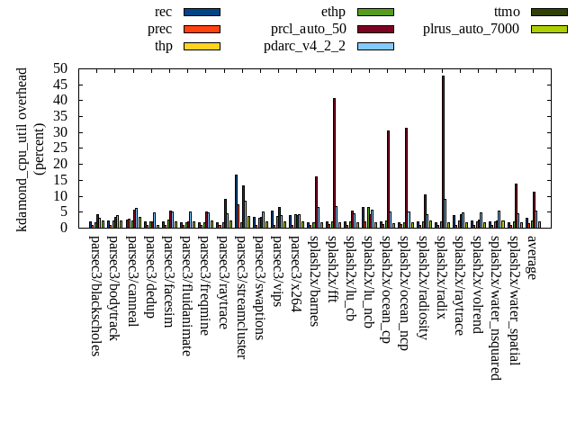 ======= Summary ======= runtime orig rec (overhead) prec (overhead) thp (overhead) ethp (overhead) prcl_auto_50 (overhead) pdarc_v4_2_2 (overhead) ttmo (overhead) plrus_auto_7000 (overhead) parsec3/blackscholes 138.675 139.035 (0.26) 139.098 (0.31) 138.171 (-0.36) 139.211 (0.39) 142.721 (2.92) 140.189 (1.09) 139.352 (0.49) 140.415 (1.25) parsec3/bodytrack 124.455 125.795 (1.08) 124.919 (0.37) 123.941 (-0.41) 126.504 (1.65) 128.349 (3.13) 127.122 (2.14) 124.940 (0.39) 125.412 (0.77) parsec3/canneal 224.972 222.442 (-1.12) 223.988 (-0.44) 171.421 (-23.80) 220.735 (-1.88) 225.084 (0.05) 237.295 (5.48) 221.936 (-1.35) 221.791 (-1.41) parsec3/dedup 17.895 18.274 (2.12) 18.241 (1.93) 18.052 (0.88) 18.121 (1.26) 18.521 (3.50) 18.534 (3.57) 18.192 (1.66) 18.039 (0.80) parsec3/facesim 340.753 351.003 (3.01) 345.247 (1.32) 340.720 (-0.01) 343.048 (0.67) 360.277 (5.73) 351.406 (3.13) 350.316 (2.81) 343.978 (0.95) parsec3/fluidanimate 347.334 334.265 (-3.76) 342.579 (-1.37) 331.115 (-4.67) 331.073 (-4.68) 343.491 (-1.11) 335.384 (-3.44) 335.978 (-3.27) 341.064 (-1.81) parsec3/freqmine 435.187 438.462 (0.75) 436.216 (0.24) 435.613 (0.10) 436.255 (0.25) 445.199 (2.30) 438.845 (0.84) 436.131 (0.22) 438.876 (0.85) parsec3/raytrace 183.367 183.758 (0.21) 186.001 (1.44) 186.594 (1.76) 184.404 (0.57) 198.995 (8.52) 188.983 (3.06) 185.678 (1.26) 184.042 (0.37) parsec3/streamcluster 726.981 703.998 (-3.16) 736.671 (1.33) 608.964 (-16.23) 536.903 (-26.15) 773.366 (6.38) 663.358 (-8.75) 729.038 (0.28) 701.691 (-3.48) parsec3/swaptions 220.739 222.704 (0.89) 221.979 (0.56) 220.576 (-0.07) 222.784 (0.93) 223.800 (1.39) 221.370 (0.29) 221.305 (0.26) 222.705 (0.89) parsec3/vips 87.004 88.632 (1.87) 87.425 (0.48) 87.869 (0.99) 88.367 (1.57) 89.367 (2.72) 95.301 (9.54) 95.731 (10.03) 96.388 (10.79) parsec3/x264 114.865 116.830 (1.71) 119.967 (4.44) 112.143 (-2.37) 120.967 (5.31) 116.649 (1.55) 123.083 (7.16) 112.846 (-1.76) 118.047 (2.77) splash2x/barnes 131.440 131.088 (-0.27) 131.208 (-0.18) 118.534 (-9.82) 128.120 (-2.53) 152.941 (16.36) 134.136 (2.05) 131.786 (0.26) 133.135 (1.29) splash2x/fft 60.820 62.401 (2.60) 62.112 (2.12) 46.693 (-23.23) 61.720 (1.48) 75.199 (23.64) 66.492 (9.33) 69.950 (15.01) 66.862 (9.93) splash2x/lu_cb 132.221 133.120 (0.68) 132.704 (0.36) 132.397 (0.13) 133.513 (0.98) 137.700 (4.14) 133.741 (1.15) 133.892 (1.26) 134.257 (1.54) splash2x/lu_ncb 150.208 153.037 (1.88) 151.024 (0.54) 149.870 (-0.22) 152.303 (1.39) 153.805 (2.39) 151.263 (0.70) 153.607 (2.26) 153.059 (1.90) splash2x/ocean_cp 84.561 84.536 (-0.03) 82.327 (-2.64) 89.543 (5.89) 84.480 (-0.10) 112.022 (32.47) 87.560 (3.55) 83.088 (-1.74) 85.430 (1.03) splash2x/ocean_ncp 167.436 164.790 (-1.58) 166.145 (-0.77) 114.488 (-31.62) 143.254 (-14.44) 253.269 (51.26) 171.026 (2.14) 172.765 (3.18) 172.847 (3.23) splash2x/radiosity 142.023 142.434 (0.29) 143.231 (0.85) 141.612 (-0.29) 142.798 (0.55) 153.159 (7.84) 145.100 (2.17) 144.502 (1.75) 145.466 (2.42) splash2x/radix 52.381 52.269 (-0.21) 52.286 (-0.18) 44.954 (-14.18) 49.896 (-4.74) 76.587 (46.21) 55.820 (6.57) 56.949 (8.72) 54.269 (3.61) splash2x/raytrace 135.274 136.576 (0.96) 136.430 (0.85) 133.500 (-1.31) 134.281 (-0.73) 141.223 (4.40) 136.183 (0.67) 138.556 (2.43) 137.942 (1.97) splash2x/volrend 119.714 121.131 (1.18) 120.995 (1.07) 119.644 (-0.06) 119.406 (-0.26) 120.905 (1.00) 120.645 (0.78) 120.497 (0.65) 121.199 (1.24) splash2x/water_nsquared 372.677 372.516 (-0.04) 374.920 (0.60) 356.233 (-4.41) 362.422 (-2.75) 402.126 (7.90) 376.689 (1.08) 386.643 (3.75) 384.639 (3.21) splash2x/water_spatial 133.855 134.257 (0.30) 134.354 (0.37) 134.931 (0.80) 134.931 (0.80) 150.556 (12.48) 138.687 (3.61) 134.464 (0.45) 137.677 (2.86) total 4644.830 4633.360 (-0.25) 4670.080 (0.54) 4357.550 (-6.18) 4415.490 (-4.94) 4995.330 (7.55) 4658.200 (0.29) 4698.140 (1.15) 4679.250 (0.74) average 193.535 193.057 (0.40) 194.587 (0.57) 181.565 (-5.11) 183.979 (-1.69) 208.139 (10.30) 194.092 (2.41) 195.756 (2.04) 194.969 (1.96) kdamond_cpu_util orig rec (overhead) prec (overhead) thp (overhead) ethp (overhead) prcl_auto_50 (overhead) pdarc_v4_2_2 (overhead) ttmo (overhead) plrus_auto_7000 (overhead) parsec3/blackscholes 0.000 1.850 (1.85) 0.890 (0.89) 0.000 (0.00) 1.755 (1.76) 4.163 (4.16) 3.064 (3.06) 0.000 (0.00) 2.129 (2.13) parsec3/bodytrack 0.000 2.235 (2.23) 0.863 (0.86) 0.000 (0.00) 2.169 (2.17) 3.422 (3.42) 3.948 (3.95) 0.000 (0.00) 2.139 (2.14) parsec3/canneal 0.000 2.464 (2.46) 2.719 (2.72) 0.000 (0.00) 2.305 (2.30) 5.558 (5.56) 6.238 (6.24) 0.000 (0.00) 3.431 (3.43) parsec3/dedup 0.000 1.852 (1.85) 0.883 (0.88) 0.000 (0.00) 2.006 (2.01) 1.934 (1.93) 4.863 (4.86) 0.000 (0.00) 0.865 (0.87) parsec3/facesim 0.000 2.029 (2.03) 0.911 (0.91) 0.000 (0.00) 2.550 (2.55) 5.340 (5.34) 5.185 (5.18) 0.000 (0.00) 2.085 (2.08) parsec3/fluidanimate 0.000 1.784 (1.78) 0.916 (0.92) 0.000 (0.00) 1.744 (1.74) 1.929 (1.93) 5.190 (5.19) 0.000 (0.00) 1.957 (1.96) parsec3/freqmine 0.000 1.797 (1.80) 0.927 (0.93) 0.000 (0.00) 1.765 (1.76) 5.045 (5.05) 4.710 (4.71) 0.000 (0.00) 2.353 (2.35) parsec3/raytrace 0.000 1.710 (1.71) 0.931 (0.93) 0.000 (0.00) 1.760 (1.76) 8.945 (8.94) 4.498 (4.50) 0.000 (0.00) 2.171 (2.17) parsec3/streamcluster 0.000 16.714 (16.71) 7.257 (7.26) 0.000 (0.00) 1.637 (1.64) 13.206 (13.21) 8.609 (8.61) 0.000 (0.00) 3.645 (3.65) parsec3/swaptions 0.000 3.322 (3.32) 0.927 (0.93) 0.000 (0.00) 2.967 (2.97) 3.286 (3.29) 5.079 (5.08) 0.000 (0.00) 1.991 (1.99) parsec3/vips 0.000 5.496 (5.50) 0.848 (0.85) 0.000 (0.00) 3.612 (3.61) 6.474 (6.47) 3.998 (4.00) 0.000 (0.00) 2.010 (2.01) parsec3/x264 0.000 3.860 (3.86) 0.935 (0.94) 0.000 (0.00) 4.137 (4.14) 4.053 (4.05) 4.355 (4.36) 0.000 (0.00) 1.989 (1.99) splash2x/barnes 0.000 1.731 (1.73) 0.938 (0.94) 0.000 (0.00) 1.622 (1.62) 16.124 (16.12) 6.465 (6.46) 0.000 (0.00) 1.719 (1.72) splash2x/fft 0.000 1.846 (1.85) 1.002 (1.00) 0.000 (0.00) 1.840 (1.84) 40.612 (40.61) 6.787 (6.79) 0.000 (0.00) 1.817 (1.82) splash2x/lu_cb 0.000 1.981 (1.98) 0.907 (0.91) 0.000 