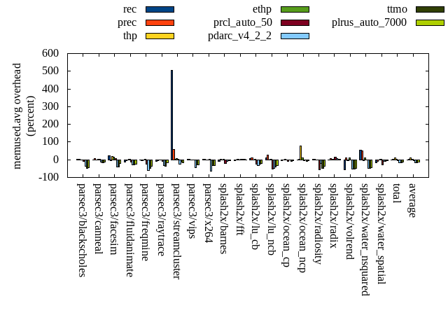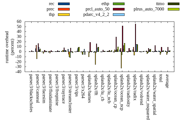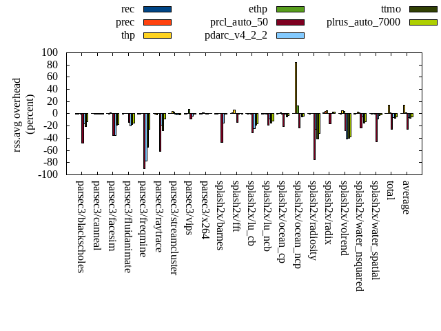 ======= Summary ======= runtime orig rec (overhead) prec (overhead) thp (overhead) ethp (overhead) prcl_auto_50 (overhead) pdarc_v4_2_2 (overhead) ttmo (overhead) plrus_auto_7000 (overhead) parsec3/blackscholes 139.111 139.463 (0.25) 140.239 (0.81) 138.911 (-0.14) 139.361 (0.18) 142.586 (2.50) 139.955 (0.61) 139.433 (0.23) 139.941 (0.60) parsec3/canneal 206.973 220.358 (6.47) 233.942 (13.03) 178.432 (-13.79) 206.805 (-0.08) 241.451 (16.66) 225.403 (8.90) 215.484 (4.11) 219.170 (5.89) parsec3/facesim 350.214 347.760 (-0.70) 350.636 (0.12) 338.298 (-3.40) 346.278 (-1.12) 360.781 (3.02) 355.399 (1.48) 349.554 (-0.19) 353.606 (0.97) parsec3/fluidanimate 337.488 334.861 (-0.78) 340.794 (0.98) 327.659 (-2.91) 336.033 (-0.43) 346.130 (2.56) 340.487 (0.89) 338.521 (0.31) 340.373 (0.85) parsec3/freqmine 433.919 435.724 (0.42) 436.067 (0.50) 435.124 (0.28) 436.822 (0.67) 445.383 (2.64) 438.785 (1.12) 435.736 (0.42) 439.052 (1.18) parsec3/raytrace 181.961 183.966 (1.10) 182.393 (0.24) 187.528 (3.06) 186.034 (2.24) 196.517 (8.00) 187.417 (3.00) 186.809 (2.66) 185.648 (2.03) parsec3/streamcluster 690.847 726.703 (5.19) 654.975 (-5.19) 620.934 (-10.12) 608.135 (-11.97) 741.291 (7.30) 682.995 (-1.14) 694.359 (0.51) 677.635 (-1.91) parsec3/vips 87.861 87.824 (-0.04) 87.942 (0.09) 87.224 (-0.73) 88.190 (0.37) 89.686 (2.08) 93.457 (6.37) 95.603 (8.81) 95.815 (9.05) parsec3/x264 121.081 120.285 (-0.66) 120.202 (-0.73) 115.246 (-4.82) 114.128 (-5.74) 122.022 (0.78) 127.072 (4.95) 114.664 (-5.30) 121.094 (0.01) splash2x/barnes 132.248 132.387 (0.11) 132.351 (0.08) 118.678 (-10.26) 130.062 (-1.65) 157.205 (18.87) 133.938 (1.28) 131.491 (-0.57) 133.771 (1.15) splash2x/fft 62.989 62.078 (-1.45) 63.460 (0.75) 47.162 (-25.13) 61.765 (-1.94) 72.984 (15.87) 66.876 (6.17) 68.821 (9.26) 68.848 (9.30) splash2x/lu_cb 133.010 132.804 (-0.16) 132.455 (-0.42) 132.521 (-0.37) 132.886 (-0.09) 137.960 (3.72) 134.004 (0.75) 134.410 (1.05) 134.874 (1.40) splash2x/lu_ncb 150.315 152.380 (1.37) 152.409 (1.39) 151.398 (0.72) 152.936 (1.74) 154.429 (2.74) 150.905 (0.39) 151.115 (0.53) 154.656 (2.89) splash2x/ocean_cp 82.160 81.892 (-0.33) 81.443 (-0.87) 85.680 (4.28) 84.322 (2.63) 106.620 (29.77) 84.554 (2.91) 85.937 (4.60) 90.285 (9.89) splash2x/ocean_ncp 157.919 163.961 (3.83) 169.161 (7.12) 106.280 (-32.70) 148.289 (-6.10) 238.870 (51.26) 165.995 (5.11) 178.053 (12.75) 184.508 (16.84) splash2x/radiosity 142.383 142.267 (-0.08) 143.113 (0.51) 140.849 (-1.08) 143.001 (0.43) 152.265 (6.94) 145.259 (2.02) 145.463 (2.16) 145.665 (2.31) splash2x/radix 49.396 51.483 (4.23) 53.991 (9.30) 46.098 (-6.68) 50.111 (1.45) 76.843 (55.56) 56.826 (15.04) 56.740 (14.87) 56.415 (14.21) splash2x/volrend 119.816 120.919 (0.92) 120.581 (0.64) 119.244 (-0.48) 119.472 (-0.29) 120.242 (0.36) 120.032 (0.18) 120.841 (0.86) 121.104 (1.07) splash2x/water_nsquared 368.393 373.157 (1.29) 375.488 (1.93) 353.815 (-3.96) 361.376 (-1.90) 394.129 (6.99) 374.991 (1.79) 384.880 (4.48) 387.254 (5.12) splash2x/water_spatial 134.140 134.712 (0.43) 134.417 (0.21) 133.811 (-0.24) 135.077 (0.70) 151.207 (12.72) 137.150 (2.24) 135.915 (1.32) 135.170 (0.77) total 4082.240 4144.980 (1.54) 4106.050 (0.58) 3864.880 (-5.32) 3981.100 (-2.48) 4448.600 (8.97) 4161.480 (1.94) 4163.820 (2.00) 4184.870 (2.51) average 204.112 207.249 (1.07) 205.303 (1.52) 193.244 (-5.42) 199.055 (-1.05) 222.430 (12.52) 208.074 (3.20) 208.191 (3.14) 209.243 (4.18) kdamond_cpu_util orig rec (overhead) prec (overhead) thp (overhead) ethp (overhead) prcl_auto_50 (overhead) pdarc_v4_2_2 (overhead) ttmo (overhead) plrus_auto_7000 (overhead) parsec3/blackscholes 0.000 1.886 (1.89) 0.817 (0.82) 0.000 (0.00) 1.796 (1.80) 4.211 (4.21) 3.099 (3.10) 0.000 (0.00) 2.146 (2.15) parsec3/canneal 0.000 2.370 (2.37) 5.540 (5.54) 0.000 (0.00) 2.307 (2.31) 5.531 (5.53) 8.233 (8.23) 0.000 (0.00) 2.040 (2.04) parsec3/facesim 0.000 2.042 (2.04) 0.905 (0.91) 0.000 (0.00) 2.606 (2.61) 4.847 (4.85) 4.993 (4.99) 0.000 (0.00) 1.770 (1.77) parsec3/fluidanimate 0.000 1.804 (1.80) 0.898 (0.90) 0.000 (0.00) 1.739 (1.74) 2.032 (2.03) 5.002 (5.00) 0.000 (0.00) 1.897 (1.90) parsec3/freqmine 0.000 1.698 (1.70) 0.895 (0.90) 0.000 (0.00) 1.705 (1.71) 5.149 (5.15) 4.684 (4.68) 0.000 (0.00) 2.429 (2.43) parsec3/raytrace 0.000 1.753 (1.75) 0.910 (0.91) 0.000 (0.00) 1.721 (1.72) 8.620 (8.62) 4.128 (4.13) 0.000 (0.00) 2.206 (2.21) parsec3/streamcluster 0.000 17.123 (17.12) 7.208 (7.21) 0.000 (0.00) 1.605 (1.60) 13.498 (13.50) 14.289 (14.29) 0.000 (0.00) 3.372 (3.37) parsec3/vips 0.000 5.618 (5.62) 0.874 (0.87) 0.000 (0.00) 3.465 (3.46) 6.183 (6.18) 3.489 (3.49) 0.000 (0.00) 1.844 (1.84) parsec3/x264 0.000 4.009 (4.01) 0.895 (0.89) 0.000 (0.00) 4.165 (4.16) 3.786 (3.79) 4.434 (4.43) 0.000 (0.00) 2.028 (2.03) splash2x/barnes 0.000 1.598 (1.60) 0.991 (0.99) 0.000 (0.00) 1.634 (1.63) 18.765 (18.76) 6.670 (6.67) 0.000 (0.00) 1.754 (1.75) splash2x/fft 0.000 1.860 (1.86) 1.013 (1.01) 0.000 (0.00) 1.940 (1.94) 33.682 (33.68) 6.971 (6.97) 0.000 (0.00) 1.771 (1.77) splash2x/lu_cb 0.000 1.883 (1.88) 0.910 (0.91) 0.000 (0.00) 1.820 (1.82) 5.281 (5.28) 4.517 (4.52) 0.000 (0.00) 1.667 (1.67) splash2x/lu_ncb 0.000 10.360 (10.36) 1.597 (1.60) 0.000 (0.00) 3.451 (3.45) 10.432 (10.43) 5.194 (5.19) 0.000 (0.00) 1.905 (1.91) splash2x/ocean_cp 0.000 2.058 (2.06) 0.984 (0.98) 0.000 (0.00) 2.060 (2.06) 31.334 (31.33) 4.843 (4.84) 0.000 (0.00) 1.500 (1.50) splash2x/ocean_ncp 0.000 1.672 (1.67) 1.003 (1.00) 0.000 (0.00) 1.583 (1.58) 23.302 (23.30) 5.171 (5.17) 0.000 (0.00) 1.851 (1.85) splash2x/radiosity 0.000 2.001 (2.00) 0.912 (0.91) 0.000 (0.00) 2.098 (2.10) 10.590 (10.59) 3.839 (3.84) 0.000 (0.00) 2.153 (2.15) splash2x/radix 0.000 1.677 (1.68) 0.942 (0.94) 0.000 (0.00) 1.776 (1.78) 46.937 (46.94) 7.926 (7.93) 0.000 (0.00) 1.534 (1.53) splash2x/volrend 0.000 2.059 (2.06) 0.872 (0.87) 0.000 (0.00) 2.034 (2.03) 2.176 (2.18) 4.636 (4.64) 0.000 (0.00) 1.602 (1.60) splash2x/water_nsquared 0.000 1.877 (1.88) 0.902 (0.90) 0.000 (0.00) 1.915 (1.92) 2.172 (2.17) 5.372 (5.37