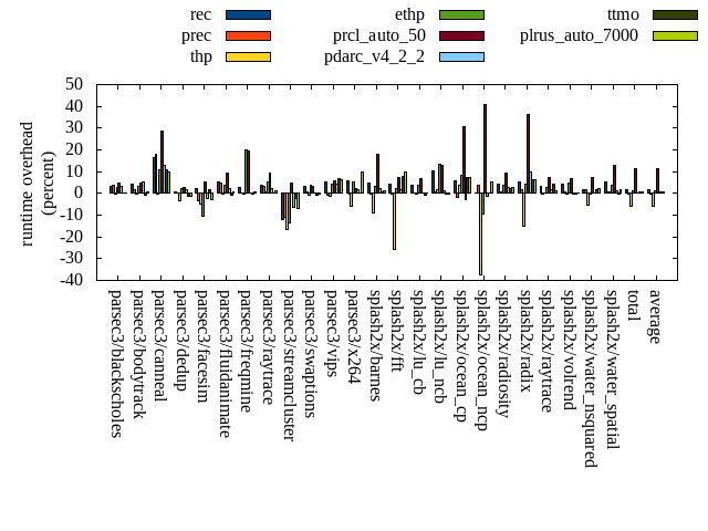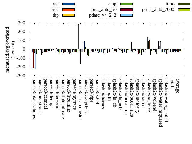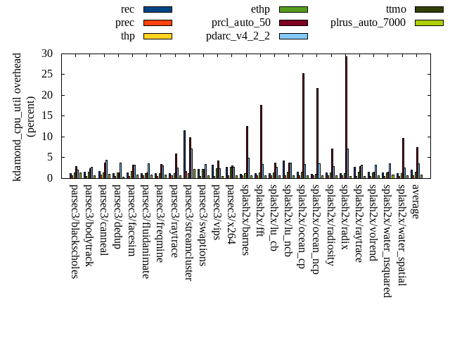 ======= Summary ======= runtime orig rec (overhead) prec (overhead) thp (overhead) ethp (overhead) prcl_auto_50 (overhead) pdarc_v4_2_2 (overhead) ttmo (overhead) plrus_auto_7000 (overhead) parsec3/blackscholes 139.205 143.338 (2.97) 144.669 (3.92) 138.872 (-0.24) 142.858 (2.62) 145.875 (4.79) 143.956 (3.41) 139.169 (-0.03) 139.508 (0.22) parsec3/bodytrack 125.427 130.641 (4.16) 127.347 (1.53) 125.260 (-0.13) 129.220 (3.02) 131.491 (4.83) 131.793 (5.08) 124.272 (-0.92) 126.276 (0.68) parsec3/canneal 212.546 247.512 (16.45) 250.539 (17.88) 211.859 (-0.32) 235.192 (10.65) 273.058 (28.47) 240.003 (12.92) 235.729 (10.91) 233.030 (9.64) parsec3/dedup 18.432 18.573 (0.76) 18.418 (-0.08) 17.829 (-3.27) 18.844 (2.24) 18.939 (2.75) 18.746 (1.70) 18.221 (-1.14) 18.217 (-1.17) parsec3/facesim 357.356 364.662 (2.04) 344.420 (-3.62) 340.353 (-4.76) 320.475 (-10.32) 376.578 (5.38) 347.973 (-2.63) 362.809 (1.53) 347.497 (-2.76) parsec3/fluidanimate 334.277 352.203 (5.36) 350.165 (4.75) 332.442 (-0.55) 346.159 (3.55) 365.783 (9.43) 342.452 (2.45) 330.964 (-0.99) 336.915 (0.79) parsec3/freqmine 435.871 447.213 (2.60) 435.740 (-0.03) 434.904 (-0.22) 522.261 (19.82) 521.819 (19.72) 437.682 (0.42) 434.852 (-0.23) 439.602 (0.86) parsec3/raytrace 184.207 190.799 (3.58) 190.301 (3.31) 185.593 (0.75) 194.163 (5.40) 201.242 (9.25) 188.435 (2.30) 184.238 (0.02) 186.524 (1.26) parsec3/streamcluster 732.992 646.000 (-11.87) 652.001 (-11.05) 610.105 (-16.77) 635.093 (-13.36) 766.679 (4.60) 686.653 (-6.32) 713.992 (-2.59) 683.416 (-6.76) parsec3/swaptions 221.938 229.185 (3.27) 222.964 (0.46) 220.215 (-0.78) 229.974 (3.62) 228.805 (3.09) 221.853 (-0.04) 220.389 (-0.70) 220.728 (-0.55) parsec3/vips 89.263 93.914 (5.21) 88.436 (-0.93) 87.984 (-1.43) 93.168 (4.37) 94.624 (6.01) 93.194 (4.40) 95.218 (6.67) 94.884 (6.30) parsec3/x264 118.713 125.315 (5.56) 118.336 (-0.32) 111.803 (-5.82) 124.796 (5.12) 121.494 (2.34) 121.018 (1.94) 119.089 (0.32) 130.132 (9.62) splash2x/barnes 131.058 137.025 (4.55) 130.836 (-0.17) 118.989 (-9.21) 135.098 (3.08) 154.895 (18.19) 134.045 (2.28) 132.149 (0.83) 132.589 (1.17) splash2x/fft 63.405 66.045 (4.16) 63.155 (-0.39) 47.180 (-25.59) 64.821 (2.23) 68.175 (7.52) 64.500 (1.73) 68.457 (7.97) 69.710 (9.94) splash2x/lu_cb 133.495 138.480 (3.73) 133.767 (0.20) 132.924 (-0.43) 138.736 (3.93) 142.838 (7.00) 133.669 (0.13) 132.513 (-0.74) 133.828 (0.25) splash2x/lu_ncb 150.670 166.630 (10.59) 152.028 (0.90) 153.037 (1.57) 171.213 (13.63) 170.317 (13.04) 152.500 (1.21) 149.995 (-0.45) 150.520 (-0.10) splash2x/ocean_cp 82.728 87.561 (5.84) 80.979 (-2.11) 85.682 (3.57) 89.478 (8.16) 108.187 (30.78) 80.166 (-3.10) 88.679 (7.19) 88.744 (7.27) splash2x/ocean_ncp 176.433 177.076 (0.36) 183.144 (3.80) 110.633 (-37.29) 159.528 (-9.58) 248.418 (40.80) 174.313 (-1.20) 176.950 (0.29) 185.826 (5.32) splash2x/radiosity 141.624 147.680 (4.28) 142.565 (0.66) 141.605 (-0.01) 146.839 (3.68) 154.492 (9.09) 145.241 (2.55) 144.753 (2.21) 145.639 (2.83) splash2x/radix 52.198 54.955 (5.28) 53.151 (1.83) 44.206 (-15.31) 54.300 (4.03) 71.030 (36.08) 57.367 (9.90) 55.543 (6.41) 55.388 (6.11) splash2x/raytrace 135.146 139.545 (3.26) 134.770 (-0.28) 135.411 (0.20) 139.137 (2.95) 145.153 (7.40) 137.458 (1.71) 140.696 (4.11) 136.942 (1.33) splash2x/volrend 120.905 126.226 (4.40) 121.784 (0.73) 120.217 (-0.57) 126.900 (4.96) 129.102 (6.78) 120.436 (-0.39) 120.265 (-0.53) 121.224 (0.26) splash2x/water_nsquared 376.681 383.619 (1.84) 383.412 (1.79) 356.972 (-5.23) 375.496 (-0.31) 403.660 (7.16) 376.504 (-0.05) 383.025 (1.68) 385.607 (2.37) splash2x/water_spatial 134.793 141.682 (5.11) 135.638 (0.63) 135.810 (0.75) 140.118 (3.95) 151.907 (12.70) 136.388 (1.18) 134.602 (-0.14) 136.811 (1.50) total 4669.360 4755.850 (1.85) 4658.580 (-0.23) 4399.860 (-5.77) 4733.880 (1.38) 5194.540 (11.25) 4686.330 (0.36) 4706.560 (0.80) 4699.550 (0.65) average 194.557 198.160 (3.90) 194.107 (0.98) 183.327 (-5.05) 197.245 (3.23) 216.439 (12.38) 195.264 (1.73) 196.107 (1.74) 195.815 (2.35) kdamond_cpu_util orig rec (overhead) prec (overhead) thp (overhead) ethp (overhead) prcl_auto_50 (overhead) pdarc_v4_2_2 (overhead) ttmo (overhead) plrus_auto_7000 (overhead) parsec3/blackscholes 0.000 1.171 (1.17) 0.596 (0.60) 0.000 (0.00) 1.282 (1.28) 2.887 (2.89) 2.114 (2.11) 0.000 (0.00) 1.421 (1.42) parsec3/bodytrack 0.000 1.517 (1.52) 0.571 (0.57) 0.000 (0.00) 1.448 (1.45) 2.316 (2.32) 2.728 (2.73) 0.000 (0.00) 0.708 (0.71) parsec3/canneal 0.000 1.612 (1.61) 0.812 (0.81) 0.000 (0.00) 1.404 (1.40) 3.683 (3.68) 4.350 (4.35) 0.000 (0.00) 1.046 (1.05) parsec3/dedup 0.000 1.180 (1.18) 0.548 (0.55) 0.000 (0.00) 1.346 (1.35) 1.298 (1.30) 3.757 (3.76) 0.000 (0.00) 0.292 (0.29) parsec3/facesim 0.000 1.391 (1.39) 0.592 (0.59) 0.000 (0.00) 1.741 (1.74) 3.257 (3.26) 3.287 (3.29) 0.000 (0.00) 0.816 (0.82) parsec3/fluidanimate 0.000 1.197 (1.20) 0.600 (0.60) 0.000 (0.00) 1.158 (1.16) 1.389 (1.39) 3.479 (3.48) 0.000 (0.00) 0.820 (0.82) parsec3/freqmine 0.000 1.188 (1.19) 0.588 (0.59) 0.000 (0.00) 1.219 (1.22) 3.388 (3.39) 3.046 (3.05) 0.000 (0.00) 0.809 (0.81) parsec3/raytrace 0.000 1.164 (1.16) 0.600 (0.60) 0.000 (0.00) 1.168 (1.17) 5.870 (5.87) 2.492 (2.49) 0.000 (0.00) 0.726 (0.73) parsec3/streamcluster 0.000 11.520 (11.52) 1.763 (1.76) 0.000 (0.00) 1.149 (1.15) 9.756 (9.76) 7.069 (7.07) 0.000 (0.00) 2.172 (2.17) parsec3/swaptions 0.000 2.210 (2.21) 0.593 (0.59) 0.000 (0.00) 2.176 (2.18) 2.205 (2.21) 3.379 (3.38) 0.000 (0.00) 0.676 (0.68) parsec3/vips 0.000 3.299 (3.30) 0.573 (0.57) 0.000 (0.00) 2.442 (2.44) 4.229 (4.23) 2.436 (2.44) 0.000 (0.00) 0.534 (0.53) parsec3/x264 0.000 2.742 (2.74) 0.605 (0.60) 0.000 (0.00) 2.794 (2.79) 3.020 (3.02) 2.755 (2.75) 0.000 (0.00) 0.693 (0.69) splash2x/barnes 0.000 1.067 (1.07) 0.610 (0.61) 0.000 (0.00) 1.133 (1.13) 12.491 (12.49) 4.896 (4.90) 0.000 (0.00) 0.715 (0.71) splash2x/fft 0.000 1.117 (1.12) 0.672 (0.67) 0.000 (0.00) 1.286 (1.29) 17.570 (17.57) 3.453 (3.45) 0.000 (0.00) 0.637 (0.64) splash2x/lu_cb 0.000 1.107 (1.11) 0.602 (0