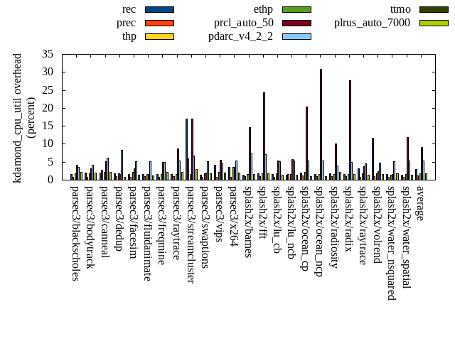 ======= Summary ======= runtime orig rec (overhead) prec (overhead) thp (overhead) ethp (overhead) prcl_auto_50 (overhead) pdarc_v4_2_2 (overhead) ttmo (overhead) plrus_auto_7000 (overhead) parsec3/blackscholes 139.728 140.920 (0.85) 139.622 (-0.08) 139.925 (0.14) 140.397 (0.48) 143.142 (2.44) 141.202 (1.06) 139.472 (-0.18) 140.802 (0.77) parsec3/bodytrack 125.553 125.438 (-0.09) 125.471 (-0.07) 124.132 (-1.13) 124.520 (-0.82) 125.939 (0.31) 125.885 (0.26) 125.666 (0.09) 126.650 (0.87) parsec3/canneal 204.603 217.807 (6.45) 208.741 (2.02) 165.822 (-18.95) 204.840 (0.12) 216.652 (5.89) 235.816 (15.26) 221.371 (8.20) 216.237 (5.69) parsec3/dedup 17.952 18.102 (0.83) 18.690 (4.11) 17.726 (-1.26) 18.102 (0.83) 18.733 (4.34) 18.747 (4.42) 18.577 (3.48) 18.315 (2.02) parsec3/facesim 347.233 350.767 (1.02) 349.572 (0.67) 337.182 (-2.89) 340.396 (-1.97) 356.519 (2.67) 353.509 (1.81) 357.592 (2.98) 352.369 (1.48) parsec3/fluidanimate 338.198 336.503 (-0.50) 332.704 (-1.62) 324.410 (-4.08) 327.972 (-3.02) 336.412 (-0.53) 330.738 (-2.21) 335.291 (-0.86) 340.928 (0.81) parsec3/freqmine 435.998 437.433 (0.33) 435.934 (-0.01) 435.831 (-0.04) 438.427 (0.56) 446.523 (2.41) 438.038 (0.47) 439.557 (0.82) 440.226 (0.97) parsec3/raytrace 182.060 184.706 (1.45) 185.457 (1.87) 187.816 (3.16) 181.122 (-0.52) 199.755 (9.72) 186.773 (2.59) 188.411 (3.49) 188.811 (3.71) parsec3/streamcluster 616.478 660.731 (7.18) 656.098 (6.43) 541.452 (-12.17) 548.339 (-11.05) 709.866 (15.15) 617.481 (0.16) 648.763 (5.24) 703.844 (14.17) parsec3/swaptions 220.932 221.378 (0.20) 220.690 (-0.11) 222.128 (0.54) 221.892 (0.43) 223.778 (1.29) 229.190 (3.74) 221.355 (0.19) 224.601 (1.66) parsec3/vips 87.896 88.197 (0.34) 87.855 (-0.05) 87.272 (-0.71) 89.018 (1.28) 89.574 (1.91) 90.523 (2.99) 100.598 (14.45) 100.557 (14.40) parsec3/x264 113.256 114.534 (1.13) 108.298 (-4.38) 116.218 (2.61) 114.234 (0.86) 121.617 (7.38) 117.093 (3.39) 116.541 (2.90) 116.918 (3.23) splash2x/barnes 130.099 130.387 (0.22) 129.630 (-0.36) 118.500 (-8.92) 127.377 (-2.09) 148.786 (14.36) 135.633 (4.25) 132.717 (2.01) 132.756 (2.04) splash2x/fft 63.893 61.562 (-3.65) 61.179 (-4.25) 46.412 (-27.36) 61.072 (-4.42) 65.042 (1.80) 64.877 (1.54) 70.355 (10.11) 68.033 (6.48) splash2x/lu_cb 132.659 132.771 (0.08) 132.989 (0.25) 132.771 (0.08) 134.010 (1.02) 138.724 (4.57) 134.507 (1.39) 134.910 (1.70) 134.562 (1.43) splash2x/lu_ncb 148.727 150.916 (1.47) 152.028 (2.22) 149.699 (0.65) 150.974 (1.51) 153.185 (3.00) 150.448 (1.16) 152.186 (2.33) 152.584 (2.59) splash2x/ocean_cp 81.460 79.559 (-2.33) 78.309 (-3.87) 83.659 (2.70) 80.721 (-0.91) 94.840 (16.43) 80.598 (-1.06) 93.824 (15.18) 82.389 (1.14) splash2x/ocean_ncp 157.469 156.926 (-0.35) 163.977 (4.13) 103.506 (-34.27) 140.588 (-10.72) 253.162 (60.77) 168.241 (6.84) 173.113 (9.93) 180.760 (14.79) splash2x/radiosity 143.454 143.831 (0.26) 143.156 (-0.21) 141.020 (-1.70) 143.772 (0.22) 154.299 (7.56) 145.246 (1.25) 146.222 (1.93) 146.604 (2.20) splash2x/radix 50.815 52.696 (3.70) 51.927 (2.19) 45.948 (-9.58) 48.678 (-4.21) 65.505 (28.91) 54.052 (6.37) 56.939 (12.05) 53.584 (5.45) splash2x/raytrace 133.309 132.983 (-0.24) 134.964 (1.24) 133.633 (0.24) 134.599 (0.97) 136.893 (2.69) 134.713 (1.05) 141.618 (6.23) 136.993 (2.76) splash2x/volrend 120.616 121.556 (0.78) 120.476 (-0.12) 119.645 (-0.80) 120.184 (-0.36) 121.362 (0.62) 121.073 (0.38) 120.365 (-0.21) 121.399 (0.65) splash2x/water_nsquared 372.921 381.111 (2.20) 388.018 (4.05) 352.995 (-5.34) 358.418 (-3.89) 413.634 (10.92) 377.569 (1.25) 389.766 (4.52) 394.435 (5.77) splash2x/water_spatial 132.215 132.894 (0.51) 132.304 (0.07) 133.302 (0.82) 134.449 (1.69) 145.699 (10.20) 137.401 (3.92) 134.233 (1.53) 135.348 (2.37) total 4497.550 4573.720 (1.69) 4558.100 (1.35) 4261.020 (-5.26) 4384.100 (-2.52) 4879.640 (8.50) 4589.350 (2.04) 4659.440 (3.60) 4709.700 (4.72) average 187.398 190.572 (0.91) 189.921 (0.59) 177.543 (-4.93) 182.671 (-1.42) 203.318 (8.95) 191.223 (2.59) 194.143 (4.50) 196.237 (4.06) kdamond_cpu_util orig rec (overhead) prec (overhead) thp (overhead) ethp (overhead) prcl_auto_50 (overhead) pdarc_v4_2_2 (overhead) ttmo (overhead) plrus_auto_7000 (overhead) parsec3/blackscholes 0.000 1.497 (1.50) 0.858 (0.86) 0.000 (0.00) 1.763 (1.76) 4.122 (4.12) 3.472 (3.47) 0.000 (0.00) 2.237 (2.24) parsec3/bodytrack 0.000 1.916 (1.92) 0.840 (0.84) 0.000 (0.00) 1.866 (1.87) 3.236 (3.24) 4.171 (4.17) 0.000 (0.00) 2.048 (2.05) parsec3/canneal 0.000 2.034 (2.03) 2.805 (2.80) 0.000 (0.00) 2.154 (2.15) 5.222 (5.22) 6.077 (6.08) 0.000 (0.00) 2.229 (2.23) parsec3/dedup 0.000 1.835 (1.84) 0.927 (0.93) 0.000 (0.00) 1.696 (1.70) 1.549 (1.55) 8.326 (8.33) 0.000 (0.00) 0.866 (0.87) parsec3/facesim 0.000 1.636 (1.64) 0.885 (0.88) 0.000 (0.00) 2.232 (2.23) 3.190 (3.19) 5.213 (5.21) 0.000 (0.00) 1.357 (1.36) parsec3/fluidanimate 0.000 1.489 (1.49) 0.896 (0.90) 0.000 (0.00) 1.595 (1.60) 1.584 (1.58) 5.204 (5.20) 0.000 (0.00) 1.220 (1.22) parsec3/freqmine 0.000 1.602 (1.60) 0.883 (0.88) 0.000 (0.00) 1.618 (1.62) 4.940 (4.94) 4.935 (4.93) 0.000 (0.00) 2.215 (2.21) parsec3/raytrace 0.000 1.518 (1.52) 0.953 (0.95) 0.000 (0.00) 1.560 (1.56) 8.774 (8.77) 5.265 (5.26) 0.000 (0.00) 2.099 (2.10) parsec3/streamcluster 0.000 16.939 (16.94) 5.845 (5.84) 0.000 (0.00) 1.493 (1.49) 16.926 (16.93) 6.724 (6.72) 0.000 (0.00) 2.899 (2.90) parsec3/swaptions 0.000 1.336 (1.34) 0.871 (0.87) 0.000 (0.00) 1.779 (1.78) 1.927 (1.93) 5.145 (5.15) 0.000 (0.00) 1.834 (1.83) parsec3/vips 0.000 4.129 (4.13) 0.860 (0.86) 0.000 (0.00) 2.233 (2.23) 5.464 (5.46) 4.600 (4.60) 0.000 (0.00) 1.907 (1.91) parsec3/x264 0.000 3.576 (3.58) 0.872 (0.87) 0.000 (0.00) 3.553 (3.55) 3.618 (3.62) 5.264 (5.26) 0.000 (0.00) 2.068 (2.07) splash2x/barnes 0.000 1.345 (1.34) 1.080 (1.08) 0.000 (0.00) 1.527 (1.53) 14.653 (14.65) 7.225 (7.22) 0.000 (0.00) 1.662 (1.66) splash2x/fft 0.000 1.802 (1.80) 1.009 (1.01) 0.000 (0.00) 1.837 (1.84) 24.324 (24.32) 7.154 (7.15) 0.000 (0.00) 1.839 (1.84) splash2x/lu_cb 0.000 1.560 (1.56) 0.878 (0.88) 0.