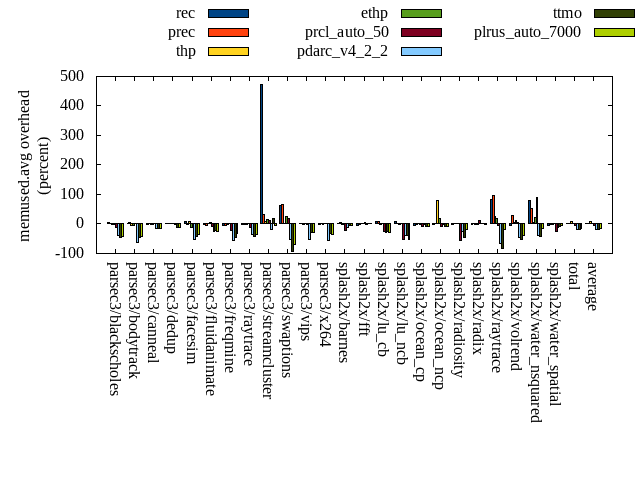 ======= Summary ======= runtime orig rec (overhead) prec (overhead) thp (overhead) ethp (overhead) prcl_auto_50 (overhead) pdarc_v4_2_2 (overhead) ttmo (overhead) plrus_auto_7000 (overhead) parsec3/blackscholes 138.858 139.763 (0.65) 139.822 (0.69) 138.930 (0.05) 139.866 (0.73) 142.629 (2.72) 141.446 (1.86) 140.573 (1.24) 140.492 (1.18) parsec3/bodytrack 126.810 126.892 (0.06) 125.499 (-1.03) 124.705 (-1.66) 127.144 (0.26) 127.941 (0.89) 127.804 (0.78) 124.989 (-1.44) 127.457 (0.51) parsec3/canneal 216.345 213.186 (-1.46) 213.350 (-1.38) 177.061 (-18.16) 201.339 (-6.94) 219.837 (1.61) 234.826 (8.54) 221.258 (2.27) 236.970 (9.53) parsec3/dedup 18.281 18.477 (1.07) 18.388 (0.58) 17.571 (-3.89) 18.564 (1.55) 18.604 (1.77) 18.692 (2.25) 18.530 (1.36) 18.424 (0.78) parsec3/facesim 343.365 349.559 (1.80) 348.663 (1.54) 337.287 (-1.77) 344.014 (0.19) 359.058 (4.57) 350.699 (2.14) 351.451 (2.35) 352.550 (2.68) parsec3/fluidanimate 332.169 339.974 (2.35) 336.947 (1.44) 323.228 (-2.69) 334.965 (0.84) 337.672 (1.66) 336.922 (1.43) 333.819 (0.50) 336.544 (1.32) parsec3/freqmine 435.788 437.401 (0.37) 439.703 (0.90) 435.728 (-0.01) 437.544 (0.40) 448.519 (2.92) 440.371 (1.05) 438.234 (0.56) 440.218 (1.02) parsec3/raytrace 182.617 182.706 (0.05) 182.959 (0.19) 184.865 (1.23) 184.990 (1.30) 198.130 (8.49) 189.974 (4.03) 188.061 (2.98) 184.604 (1.09) parsec3/streamcluster 627.893 666.232 (6.11) 635.222 (1.17) 550.111 (-12.39) 555.498 (-11.53) 714.745 (13.83) 687.886 (9.55) 643.689 (2.52) 670.717 (6.82) parsec3/swaptions 221.409 223.424 (0.91) 225.155 (1.69) 222.936 (0.69) 222.138 (0.33) 224.094 (1.21) 223.501 (0.95) 222.022 (0.28) 223.639 (1.01) parsec3/vips 88.353 89.380 (1.16) 88.202 (-0.17) 88.286 (-0.08) 88.535 (0.21) 90.718 (2.68) 96.769 (9.53) 96.524 (9.25) 97.954 (10.87) parsec3/x264 120.087 113.145 (-5.78) 121.927 (1.53) 108.578 (-9.58) 124.911 (4.02) 120.159 (0.06) 111.607 (-7.06) 115.061 (-4.19) 114.316 (-4.81) splash2x/barnes 129.967 131.205 (0.95) 130.117 (0.11) 118.658 (-8.70) 129.164 (-0.62) 148.415 (14.19) 134.599 (3.56) 133.609 (2.80) 133.602 (2.80) splash2x/fft 60.521 61.702 (1.95) 62.354 (3.03) 46.716 (-22.81) 60.990 (0.77) 70.346 (16.23) 67.667 (11.81) 68.934 (13.90) 70.751 (16.90) splash2x/lu_cb 132.745 133.462 (0.54) 133.480 (0.55) 133.018 (0.21) 133.458 (0.54) 139.985 (5.45) 133.962 (0.92) 133.895 (0.87) 134.685 (1.46) splash2x/lu_ncb 150.922 153.086 (1.43) 152.509 (1.05) 149.558 (-0.90) 150.247 (-0.45) 153.785 (1.90) 154.338 (2.26) 152.392 (0.97) 155.968 (3.34) splash2x/ocean_cp 80.264 78.988 (-1.59) 81.507 (1.55) 85.816 (6.92) 80.232 (-0.04) 109.120 (35.95) 86.758 (8.09) 89.919 (12.03) 86.340 (7.57) splash2x/ocean_ncp 159.460 165.826 (3.99) 162.490 (1.90) 105.006 (-34.15) 141.092 (-11.52) 262.463 (64.59) 167.952 (5.33) 177.384 (11.24) 178.309 (11.82) splash2x/radiosity 142.951 142.938 (-0.01) 142.913 (-0.03) 142.142 (-0.57) 143.621 (0.47) 154.188 (7.86) 145.877 (2.05) 146.367 (2.39) 144.210 (0.88) splash2x/radix 51.033 51.296 (0.52) 52.290 (2.47) 44.046 (-13.69) 50.183 (-1.66) 70.471 (38.09) 56.978 (11.65) 56.842 (11.38) 54.999 (7.77) splash2x/raytrace 133.939 136.322 (1.78) 137.280 (2.49) 134.226 (0.21) 134.741 (0.60) 141.776 (5.85) 137.535 (2.68) 140.727 (5.07) 136.182 (1.67) splash2x/volrend 120.804 121.206 (0.33) 121.693 (0.74) 120.293 (-0.42) 120.215 (-0.49) 121.048 (0.20) 121.501 (0.58) 121.054 (0.21) 121.818 (0.84) splash2x/water_nsquared 376.130 377.773 (0.44) 381.698 (1.48) 354.746 (-5.69) 361.826 (-3.80) 414.774 (10.27) 380.826 (1.25) 390.681 (3.87) 390.919 (3.93) splash2x/water_spatial 134.433 135.006 (0.43) 134.713 (0.21) 135.030 (0.44) 135.192 (0.56) 151.422 (12.64) 139.362 (3.67) 136.076 (1.22) 136.456 (1.50) total 4525.140 4588.960 (1.41) 4568.880 (0.97) 4278.580 (-5.45) 4420.450 (-2.31) 4939.900 (9.17) 4687.860 (3.60) 4642.070 (2.58) 4688.140 (3.60) average 188.548 191.207 (0.75) 190.370 (0.95) 178.274 (-5.31) 184.185 (-1.01) 205.829 (10.65) 195.327 (3.70) 193.420 (3.48) 195.339 (3.85) kdamond_cpu_util orig rec (overhead) prec (overhead) thp (overhead) ethp (overhead) prcl_auto_50 (overhead) pdarc_v4_2_2 (overhead) ttmo (overhead) plrus_auto_7000 (overhead) parsec3/blackscholes 0.000 1.675 (1.67) 0.894 (0.89) 0.000 (0.00) 1.580 (1.58) 3.932 (3.93) 3.408 (3.41) 0.000 (0.00) 2.037 (2.04) parsec3/bodytrack 0.000 1.942 (1.94) 0.858 (0.86) 0.000 (0.00) 1.701 (1.70) 3.278 (3.28) 4.442 (4.44) 0.000 (0.00) 2.081 (2.08) parsec3/canneal 0.000 2.042 (2.04) 3.057 (3.06) 0.000 (0.00) 1.948 (1.95) 5.236 (5.24) 8.168 (8.17) 0.000 (0.00) 3.939 (3.94) parsec3/dedup 0.000 1.578 (1.58) 0.865 (0.87) 0.000 (0.00) 1.507 (1.51) 1.681 (1.68) 5.761 (5.76) 0.000 (0.00) 0.897 (0.90) parsec3/facesim 0.000 1.834 (1.83) 0.883 (0.88) 0.000 (0.00) 2.430 (2.43) 2.521 (2.52) 5.232 (5.23) 0.000 (0.00) 1.545 (1.55) parsec3/fluidanimate 0.000 1.476 (1.48) 0.902 (0.90) 0.000 (0.00) 1.646 (1.65) 1.861 (1.86) 5.181 (5.18) 0.000 (0.00) 1.553 (1.55) parsec3/freqmine 0.000 1.561 (1.56) 0.882 (0.88) 0.000 (0.00) 1.576 (1.58) 4.993 (4.99) 4.734 (4.73) 0.000 (0.00) 2.352 (2.35) parsec3/raytrace 0.000 1.639 (1.64) 0.872 (0.87) 0.000 (0.00) 1.508 (1.51) 8.823 (8.82) 4.989 (4.99) 0.000 (0.00) 2.249 (2.25) parsec3/streamcluster 0.000 17.118 (17.12) 3.653 (3.65) 0.000 (0.00) 1.753 (1.75) 16.221 (16.22) 6.338 (6.34) 0.000 (0.00) 5.804 (5.80) parsec3/swaptions 0.000 1.463 (1.46) 0.832 (0.83) 0.000 (0.00) 1.746 (1.75) 2.220 (2.22) 5.073 (5.07) 0.000 (0.00) 1.770 (1.77) parsec3/vips 0.000 4.754 (4.75) 0.843 (0.84) 0.000 (0.00) 2.268 (2.27) 6.068 (6.07) 4.939 (4.94) 0.000 (0.00) 1.856 (1.86) parsec3/x264 0.000 3.473 (3.47) 0.857 (0.86) 0.000 (0.00) 3.457 (3.46) 3.411 (3.41) 5.064 (5.06) 0.000 (0.00) 2.031 (2.03) splash2x/barnes 0.000 1.417 (1.42) 0.952 (0.95) 0.000 (0.00) 1.597 (1.60) 13.911 (13.91) 6.954 (6.95) 0.000 (0.00) 1.774 (1.77) splash2x/fft 0.000 1.751 (1.75) 0.997 (1.00) 0.000 (0.00) 1.789 (1.79) 29.628 (29.63) 6.687 (6.69) 0.000 (0.00) 1.779 (1.78) splash2x/lu_cb 0.000 1.630 (1.63) 0.890 (0.89) 0.000 (0.00)