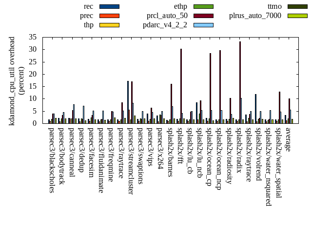 ======= Summary ======= runtime orig rec (overhead) prec (overhead) thp (overhead) ethp (overhead) prcl_auto_50 (overhead) pdarc_v4_2_2 (overhead) ttmo (overhead) plrus_auto_7000 (overhead) parsec3/blackscholes 139.348 139.996 (0.47) 140.374 (0.74) 138.578 (-0.55) 140.322 (0.70) 143.456 (2.95) 141.170 (1.31) 140.441 (0.78) 141.168 (1.31) parsec3/bodytrack 126.318 126.580 (0.21) 126.559 (0.19) 125.386 (-0.74) 126.876 (0.44) 128.845 (2.00) 126.963 (0.51) 125.042 (-1.01) 127.235 (0.73) parsec3/canneal 201.072 218.493 (8.66) 216.588 (7.72) 190.050 (-5.48) 217.325 (8.08) 230.861 (14.81) 221.570 (10.19) 234.492 (16.62) 227.342 (13.06) parsec3/dedup 18.355 18.738 (2.09) 18.446 (0.49) 18.006 (-1.90) 18.380 (0.14) 18.636 (1.53) 19.181 (4.50) 18.309 (-0.25) 18.394 (0.21) parsec3/facesim 344.906 349.015 (1.19) 348.041 (0.91) 341.912 (-0.87) 343.246 (-0.48) 361.097 (4.69) 352.955 (2.33) 351.578 (1.93) 357.480 (3.65) parsec3/fluidanimate 332.284 338.318 (1.82) 337.900 (1.69) 324.641 (-2.30) 331.522 (-0.23) 342.281 (3.01) 337.663 (1.62) 335.059 (0.84) 340.065 (2.34) parsec3/freqmine 435.062 437.599 (0.58) 437.553 (0.57) 436.847 (0.41) 443.052 (1.84) 448.667 (3.13) 440.243 (1.19) 438.786 (0.86) 442.258 (1.65) parsec3/raytrace 181.527 184.183 (1.46) 184.620 (1.70) 184.405 (1.59) 183.668 (1.18) 198.343 (9.26) 189.211 (4.23) 185.886 (2.40) 187.180 (3.11) parsec3/streamcluster 646.335 701.190 (8.49) 622.655 (-3.66) 546.319 (-15.47) 551.406 (-14.69) 758.577 (17.37) 674.050 (4.29) 653.476 (1.10) 671.538 (3.90) parsec3/swaptions 221.394 223.418 (0.91) 222.093 (0.32) 222.042 (0.29) 223.473 (0.94) 223.542 (0.97) 223.354 (0.89) 223.695 (1.04) 223.102 (0.77) parsec3/vips 88.162 89.814 (1.87) 88.805 (0.73) 87.963 (-0.23) 88.226 (0.07) 91.213 (3.46) 96.024 (8.92) 96.591 (9.56) 97.453 (10.54) parsec3/x264 112.966 109.789 (-2.81) 111.534 (-1.27) 120.557 (6.72) 117.496 (4.01) 120.906 (7.03) 117.689 (4.18) 106.973 (-5.31) 120.929 (7.05) splash2x/barnes 130.111 131.001 (0.68) 130.649 (0.41) 119.490 (-8.16) 129.830 (-0.22) 154.144 (18.47) 134.664 (3.50) 132.619 (1.93) 134.300 (3.22) splash2x/fft 61.434 62.404 (1.58) 62.653 (1.98) 46.902 (-23.65) 61.687 (0.41) 68.405 (11.35) 64.586 (5.13) 65.797 (7.10) 69.030 (12.37) splash2x/lu_cb 133.071 134.165 (0.82) 134.181 (0.83) 133.006 (-0.05) 133.747 (0.51) 137.995 (3.70) 134.169 (0.82) 133.707 (0.48) 135.320 (1.69) splash2x/lu_ncb 151.211 153.400 (1.45) 150.424 (-0.52) 151.070 (-0.09) 151.769 (0.37) 155.358 (2.74) 150.654 (-0.37) 152.580 (0.91) 153.601 (1.58) splash2x/ocean_cp 79.362 85.657 (7.93) 83.251 (4.90) 85.037 (7.15) 81.711 (2.96) 101.830 (28.31) 87.330 (10.04) 81.469 (2.66) 82.004 (3.33) splash2x/ocean_ncp 160.955 165.675 (2.93) 166.833 (3.65) 105.922 (-34.19) 153.672 (-4.52) 272.756 (69.46) 167.455 (4.04) 174.309 (8.30) 178.389 (10.83) splash2x/radiosity 143.082 144.089 (0.70) 143.795 (0.50) 142.005 (-0.75) 143.905 (0.58) 153.547 (7.31) 145.069 (1.39) 146.473 (2.37) 146.124 (2.13) splash2x/radix 51.720 53.725 (3.88) 52.754 (2.00) 45.710 (-11.62) 48.523 (-6.18) 69.866 (35.09) 57.650 (11.47) 55.347 (7.01) 55.643 (7.59) splash2x/raytrace 136.162 138.786 (1.93) 134.396 (-1.30) 134.786 (-1.01) 135.744 (-0.31) 141.516 (3.93) 138.463 (1.69) 140.251 (3.00) 138.025 (1.37) splash2x/volrend 121.077 122.203 (0.93) 121.065 (-0.01) 119.508 (-1.30) 120.570 (-0.42) 122.000 (0.76) 121.824 (0.62) 121.165 (0.07) 121.232 (0.13) splash2x/water_nsquared 377.197 388.422 (2.98) 382.992 (1.54) 357.594 (-5.20) 363.628 (-3.60) 405.481 (7.50) 380.510 (0.88) 390.828 (3.61) 387.706 (2.79) splash2x/water_spatial 135.525 135.536 (0.01) 135.596 (0.05) 135.074 (-0.33) 135.267 (-0.19) 152.251 (12.34) 139.493 (2.93) 135.205 (-0.24) 136.010 (0.36) total 4528.620 4652.200 (2.73) 4553.740 (0.55) 4312.820 (-4.77) 4445.050 (-1.85) 5001.590 (10.44) 4661.920 (2.94) 4640.100 (2.46) 4691.520 (3.60) average 188.692 193.842 (2.12) 189.739 (1.01) 179.701 (-4.07) 185.210 (-0.36) 208.400 (11.30) 194.247 (3.60) 193.338 (2.74) 195.480 (3.99) kdamond_cpu_util orig rec (overhead) prec (overhead) thp (overhead) ethp (overhead) prcl_auto_50 (overhead) pdarc_v4_2_2 (overhead) ttmo (overhead) plrus_auto_7000 (overhead) parsec3/blackscholes 0.000 1.561 (1.56) 0.956 (0.96) 0.000 (0.00) 1.737 (1.74) 3.876 (3.88) 3.874 (3.87) 0.000 (0.00) 2.230 (2.23) parsec3/bodytrack 0.000 2.095 (2.09) 0.858 (0.86) 0.000 (0.00) 1.976 (1.98) 3.327 (3.33) 4.504 (4.50) 0.000 (0.00) 2.031 (2.03) parsec3/canneal 0.000 2.197 (2.20) 1.961 (1.96) 0.000 (0.00) 1.981 (1.98) 5.395 (5.39) 7.791 (7.79) 0.000 (0.00) 2.051 (2.05) parsec3/dedup 0.000 1.879 (1.88) 0.870 (0.87) 0.000 (0.00) 1.940 (1.94) 1.694 (1.69) 7.050 (7.05) 0.000 (0.00) 1.194 (1.19) parsec3/facesim 0.000 1.741 (1.74) 0.894 (0.89) 0.000 (0.00) 2.397 (2.40) 3.372 (3.37) 5.187 (5.19) 0.000 (0.00) 1.484 (1.48) parsec3/fluidanimate 0.000 1.496 (1.50) 0.869 (0.87) 0.000 (0.00) 1.572 (1.57) 1.749 (1.75) 5.153 (5.15) 0.000 (0.00) 1.458 (1.46) parsec3/freqmine 0.000 1.578 (1.58) 0.904 (0.90) 0.000 (0.00) 1.634 (1.63) 5.033 (5.03) 4.839 (4.84) 0.000 (0.00) 2.394 (2.39) parsec3/raytrace 0.000 1.648 (1.65) 0.923 (0.92) 0.000 (0.00) 1.561 (1.56) 8.514 (8.51) 5.238 (5.24) 0.000 (0.00) 2.078 (2.08) parsec3/streamcluster 0.000 17.215 (17.21) 5.608 (5.61) 0.000 (0.00) 1.615 (1.61) 17.073 (17.07) 8.320 (8.32) 0.000 (0.00) 3.242 (3.24) parsec3/swaptions 0.000 1.763 (1.76) 0.893 (0.89) 0.000 (0.00) 1.997 (2.00) 1.816 (1.82) 5.039 (5.04) 0.000 (0.00) 2.006 (2.01) parsec3/vips 0.000 3.959 (3.96) 0.913 (0.91) 0.000 (0.00) 1.807 (1.81) 6.233 (6.23) 4.582 (4.58) 0.000 (0.00) 1.879 (1.88) parsec3/x264 0.000 3.213 (3.21) 0.869 (0.87) 0.000 (0.00) 3.581 (3.58) 3.369 (3.37) 4.996 (5.00) 0.000 (0.00) 2.042 (2.04) splash2x/barnes 0.000 1.431 (1.43) 0.957 (0.96) 0.000 (0.00) 1.589 (1.59) 15.925 (15.93) 6.866 (6.87) 0.000 (0.00) 1.920 (1.92) splash2x/fft 0.000 1.812 (1.81) 0.985 (0.99) 0.000 (0.00) 1.894 (1.89) 30.197 (30.20) 4.234 (4.23) 0.000 (0.00) 1.933 (1.93) splash2x/lu_cb 0.000 1.603 (1.60) 0.942 (0.94) 0.000 (0.00)