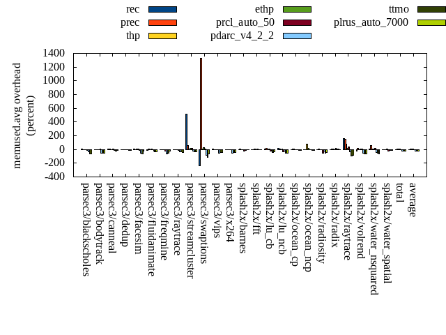======= Summary ======= runtime orig rec (overhead) prec (overhead) thp (overhead) ethp (overhead) prcl_auto_50 (overhead) pdarc_v4_2_2 (overhead) ttmo (overhead) plrus_auto_7000 (overhead) parsec3/blackscholes 139.423 139.897 (0.34) 139.498 (0.05) 139.235 (-0.14) 139.885 (0.33) 143.255 (2.75) 140.944 (1.09) 140.445 (0.73) 141.024 (1.15) parsec3/bodytrack 125.147 125.646 (0.40) 126.406 (1.01) 123.964 (-0.95) 125.689 (0.43) 126.581 (1.15) 125.469 (0.26) 124.304 (-0.67) 125.837 (0.55) parsec3/canneal 202.375 212.884 (5.19) 201.437 (-0.46) 177.043 (-12.52) 208.934 (3.24) 243.906 (20.52) 221.163 (9.28) 221.982 (9.69) 231.075 (14.18) parsec3/dedup 18.240 18.517 (1.52) 18.332 (0.50) 18.056 (-1.01) 18.567 (1.79) 18.655 (2.28) 19.050 (4.44) 18.537 (1.63) 18.458 (1.20) parsec3/facesim 349.517 343.837 (-1.63) 343.913 (-1.60) 343.737 (-1.65) 341.064 (-2.42) 363.620 (4.04) 353.677 (1.19) 352.265 (0.79) 345.078 (-1.27) parsec3/fluidanimate 336.775 336.344 (-0.13) 335.914 (-0.26) 327.476 (-2.76) 329.448 (-2.18) 342.234 (1.62) 332.328 (-1.32) 334.489 (-0.68) 335.213 (-0.46) parsec3/freqmine 435.439 436.144 (0.16) 438.296 (0.66) 435.966 (0.12) 439.018 (0.82) 449.339 (3.19) 441.133 (1.31) 437.356 (0.44) 441.113 (1.30) parsec3/raytrace 180.047 181.663 (0.90) 182.464 (1.34) 184.301 (2.36) 183.978 (2.18) 198.545 (10.27) 188.833 (4.88) 184.755 (2.62) 187.395 (4.08) parsec3/streamcluster 633.024 659.986 (4.26) 634.496 (0.23) 545.902 (-13.76) 536.183 (-15.30) 708.811 (11.97) 663.476 (4.81) 659.572 (4.19) 630.005 (-0.48) parsec3/swaptions 222.521 221.587 (-0.42) 224.345 (0.82) 221.203 (-0.59) 222.188 (-0.15) 223.888 (0.61) 222.421 (-0.04) 220.776 (-0.78) 225.193 (1.20) parsec3/vips 88.138 88.885 (0.85) 88.328 (0.21) 87.982 (-0.18) 88.414 (0.31) 90.138 (2.27) 97.258 (10.35) 99.405 (12.78) 99.602 (13.01) parsec3/x264 118.733 115.066 (-3.09) 120.289 (1.31) 111.667 (-5.95) 117.180 (-1.31) 107.770 (-9.23) 118.866 (0.11) 110.693 (-6.77) 114.347 (-3.69) splash2x/barnes 129.954 130.563 (0.47) 130.877 (0.71) 118.244 (-9.01) 125.626 (-3.33) 149.219 (14.82) 135.049 (3.92) 131.488 (1.18) 132.751 (2.15) splash2x/fft 60.196 61.756 (2.59) 61.744 (2.57) 46.859 (-22.16) 59.953 (-0.40) 67.503 (12.14) 64.002 (6.32) 65.366 (8.59) 74.932 (24.48) splash2x/lu_cb 131.952 133.281 (1.01) 132.746 (0.60) 133.557 (1.22) 132.551 (0.45) 137.498 (4.20) 133.839 (1.43) 133.852 (1.44) 135.701 (2.84) splash2x/lu_ncb 150.861 152.186 (0.88) 149.107 (-1.16) 151.132 (0.18) 149.825 (-0.69) 152.894 (1.35) 152.449 (1.05) 152.367 (1.00) 154.968 (2.72) splash2x/ocean_cp 78.720 82.079 (4.27) 79.524 (1.02) 83.133 (5.61) 78.692 (-0.04) 106.443 (35.22) 82.305 (4.55) 81.288 (3.26) 83.402 (5.95) splash2x/ocean_ncp 155.445 167.361 (7.67) 165.345 (6.37) 106.560 (-31.45) 151.319 (-2.65) 272.773 (75.48) 170.990 (10.00) 172.082 (10.70) 185.127 (19.09) splash2x/radiosity 142.556 143.194 (0.45) 142.504 (-0.04) 143.079 (0.37) 142.734 (0.12) 152.942 (7.29) 145.609 (2.14) 146.878 (3.03) 145.102 (1.79) splash2x/radix 50.394 50.391 (-0.01) 51.721 (2.63) 44.760 (-11.18) 48.385 (-3.99) 72.348 (43.57) 55.643 (10.42) 56.807 (12.73) 54.449 (8.05) splash2x/raytrace 136.874 135.104 (-1.29) 136.024 (-0.62) 131.546 (-3.89) 133.273 (-2.63) 143.177 (4.60) 135.210 (-1.22) 142.058 (3.79) 137.177 (0.22) splash2x/volrend 120.724 120.180 (-0.45) 120.432 (-0.24) 120.016 (-0.59) 119.599 (-0.93) 121.541 (0.68) 121.278 (0.46) 120.386 (-0.28) 121.671 (0.78) splash2x/water_nsquared 378.439 386.515 (2.13) 386.024 (2.00) 354.208 (-6.40) 358.330 (-5.31) 407.979 (7.81) 385.429 (1.85) 392.422 (3.69) 390.215 (3.11) splash2x/water_spatial 133.974 134.016 (0.03) 134.123 (0.11) 135.389 (1.06) 134.183 (0.16) 152.081 (13.52) 138.570 (3.43) 135.329 (1.01) 137.117 (2.35) total 4519.460 4577.090 (1.28) 4543.880 (0.54) 4285.020 (-5.19) 4385.020 (-2.97) 4953.140 (9.60) 4644.990 (2.78) 4634.920 (2.55) 4646.940 (2.82) average 188.311 190.712 (1.09) 189.328 (0.74) 178.543 (-4.72) 182.709 (-1.31) 206.381 (11.34) 193.541 (3.36) 193.122 (3.09) 193.622 (4.35) kdamond_cpu_util orig rec (overhead) prec (overhead) thp (overhead) ethp (overhead) prcl_auto_50 (overhead) pdarc_v4_2_2 (overhead) ttmo (overhead) plrus_auto_7000 (overhead) parsec3/blackscholes 0.000 1.704 (1.70) 0.898 (0.90) 0.000 (0.00) 1.658 (1.66) 3.754 (3.75) 3.771 (3.77) 0.000 (0.00) 2.018 (2.02) parsec3/bodytrack 0.000 1.871 (1.87) 0.955 (0.95) 0.000 (0.00) 1.767 (1.77) 3.342 (3.34) 4.279 (4.28) 0.000 (0.00) 1.923 (1.92) parsec3/canneal 0.000 2.202 (2.20) 2.842 (2.84) 0.000 (0.00) 1.979 (1.98) 5.597 (5.60) 6.367 (6.37) 0.000 (0.00) 2.483 (2.48) parsec3/dedup 0.000 1.577 (1.58) 0.789 (0.79) 0.000 (0.00) 1.739 (1.74) 1.639 (1.64) 8.058 (8.06) 0.000 (0.00) 0.877 (0.88) parsec3/facesim 0.000 1.730 (1.73) 0.894 (0.89) 0.000 (0.00) 2.262 (2.26) 2.936 (2.94) 5.228 (5.23) 0.000 (0.00) 2.089 (2.09) parsec3/fluidanimate 0.000 1.498 (1.50) 0.890 (0.89) 0.000 (0.00) 1.529 (1.53) 1.428 (1.43) 5.278 (5.28) 0.000 (0.00) 1.601 (1.60) parsec3/freqmine 0.000 1.563 (1.56) 0.877 (0.88) 0.000 (0.00) 1.586 (1.59) 4.911 (4.91) 4.971 (4.97) 0.000 (0.00) 2.526 (2.53) parsec3/raytrace 0.000 1.540 (1.54) 0.900 (0.90) 0.000 (0.00) 1.575 (1.58) 9.025 (9.03) 4.754 (4.75) 0.000 (0.00) 2.184 (2.18) parsec3/streamcluster 0.000 17.083 (17.08) 6.966 (6.97) 0.000 (0.00) 1.632 (1.63) 17.278 (17.28) 9.748 (9.75) 0.000 (0.00) 4.222 (4.22) parsec3/swaptions 0.000 1.447 (1.45) 0.853 (0.85) 0.000 (0.00) 1.631 (1.63) 1.352 (1.35) 5.085 (5.08) 0.000 (0.00) 2.002 (2.00) parsec3/vips 0.000 4.804 (4.80) 0.826 (0.83) 0.000 (0.00) 2.795 (2.79) 5.071 (5.07) 4.977 (4.98) 0.000 (0.00) 1.896 (1.90) parsec3/x264 0.000 3.217 (3.22) 0.871 (0.87) 0.000 (0.00) 3.594 (3.59) 3.340 (3.34) 4.963 (4.96) 0.000 (0.00) 2.000 (2.00) splash2x/barnes 0.000 1.409 (1.41) 0.983 (0.98) 0.000 (0.00) 1.767 (1.77) 14.735 (14.73) 7.258 (7.26) 0.000 (0.00) 1.816 (1.82) splash2x/fft 0.000 1.798 (1.80) 0.999 (1.00) 0.000 (0.00) 1.825 (1.83) 28.656 (28.66) 5.034 (5.03) 0.000 (0.00) 1.895 (1.90) splash2x/lu_cb 0.000 1.618 (1.62) 0.88
