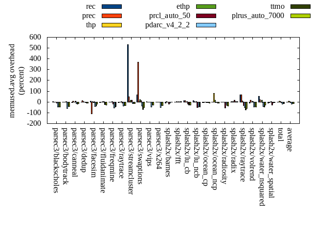 ======= Summary ======= runtime orig rec (overhead) prec (overhead) thp (overhead) ethp (overhead) prcl_auto_50 (overhead) pdarc_v4_2_2 (overhead) ttmo (overhead) plrus_auto_7000 (overhead) parsec3/blackscholes 139.309 139.736 (0.31) 140.082 (0.55) 138.539 (-0.55) 139.732 (0.30) 142.927 (2.60) 140.721 (1.01) 139.983 (0.48) 140.900 (1.14) parsec3/bodytrack 127.313 127.347 (0.03) 126.728 (-0.46) 125.868 (-1.13) 126.538 (-0.61) 127.650 (0.26) 127.000 (-0.25) 124.880 (-1.91) 127.006 (-0.24) parsec3/canneal 219.729 215.316 (-2.01) 220.245 (0.23) 169.874 (-22.69) 225.786 (2.76) 228.476 (3.98) 219.969 (0.11) 230.241 (4.78) 229.886 (4.62) parsec3/dedup 18.119 18.285 (0.92) 18.396 (1.53) 17.975 (-0.79) 18.397 (1.54) 18.696 (3.19) 18.671 (3.05) 18.417 (1.65) 18.446 (1.81) parsec3/facesim 349.178 344.802 (-1.25) 346.587 (-0.74) 341.283 (-2.26) 342.040 (-2.04) 362.833 (3.91) 354.871 (1.63) 351.879 (0.77) 355.210 (1.73) parsec3/fluidanimate 335.017 332.977 (-0.61) 338.236 (0.96) 324.439 (-3.16) 329.904 (-1.53) 341.779 (2.02) 334.194 (-0.25) 341.089 (1.81) 343.039 (2.39) parsec3/freqmine 436.857 436.733 (-0.03) 436.152 (-0.16) 435.866 (-0.23) 437.629 (0.18) 445.826 (2.05) 438.836 (0.45) 437.091 (0.05) 440.787 (0.90) parsec3/raytrace 181.173 183.010 (1.01) 184.271 (1.71) 185.365 (2.31) 183.232 (1.14) 197.513 (9.02) 188.214 (3.89) 187.164 (3.31) 186.326 (2.84) parsec3/streamcluster 696.776 690.186 (-0.95) 674.854 (-3.15) 545.106 (-21.77) 544.801 (-21.81) 734.403 (5.40) 692.404 (-0.63) 685.290 (-1.65) 690.893 (-0.84) parsec3/swaptions 223.886 221.463 (-1.08) 221.758 (-0.95) 222.120 (-0.79) 223.357 (-0.24) 223.574 (-0.14) 223.453 (-0.19) 220.683 (-1.43) 225.222 (0.60) parsec3/vips 88.237 89.155 (1.04) 88.752 (0.58) 88.103 (-0.15) 87.865 (-0.42) 90.271 (2.30) 94.943 (7.60) 96.349 (9.19) 96.750 (9.65) parsec3/x264 117.461 125.035 (6.45) 112.420 (-4.29) 114.979 (-2.11) 125.260 (6.64) 123.780 (5.38) 112.509 (-4.22) 111.092 (-5.42) 121.210 (3.19) splash2x/barnes 129.247 130.967 (1.33) 132.174 (2.26) 118.644 (-8.20) 128.691 (-0.43) 152.365 (17.89) 133.287 (3.13) 132.314 (2.37) 132.708 (2.68) splash2x/fft 61.551 62.889 (2.17) 62.325 (1.26) 48.022 (-21.98) 61.007 (-0.88) 70.783 (15.00) 65.188 (5.91) 71.566 (16.27) 72.694 (18.10) splash2x/lu_cb 132.288 132.639 (0.27) 134.229 (1.47) 132.995 (0.53) 133.436 (0.87) 138.735 (4.87) 134.405 (1.60) 134.553 (1.71) 134.840 (1.93) splash2x/lu_ncb 153.336 151.461 (-1.22) 151.454 (-1.23) 151.538 (-1.17) 151.294 (-1.33) 154.503 (0.76) 153.344 (0.01) 152.228 (-0.72) 155.295 (1.28) splash2x/ocean_cp 79.701 81.027 (1.66) 81.457 (2.20) 85.304 (7.03) 81.418 (2.15) 106.403 (33.50) 81.689 (2.49) 84.536 (6.07) 88.056 (10.48) splash2x/ocean_ncp 157.620 164.328 (4.26) 164.814 (4.56) 110.065 (-30.17) 143.102 (-9.21) 272.381 (72.81) 175.794 (11.53) 177.756 (12.77) 183.488 (16.41) splash2x/radiosity 142.680 143.695 (0.71) 143.261 (0.41) 141.140 (-1.08) 143.826 (0.80) 154.225 (8.09) 145.731 (2.14) 144.228 (1.09) 146.495 (2.67) splash2x/radix 50.775 52.186 (2.78) 51.924 (2.26) 44.952 (-11.47) 49.500 (-2.51) 70.705 (39.25) 56.734 (11.74) 55.455 (9.22) 56.407 (11.09) splash2x/raytrace 135.764 138.017 (1.66) 136.680 (0.67) 132.827 (-2.16) 135.865 (0.07) 142.003 (4.59) 136.193 (0.32) 137.664 (1.40) 137.890 (1.57) splash2x/volrend 120.633 121.785 (0.95) 120.855 (0.18) 119.533 (-0.91) 120.007 (-0.52) 121.408 (0.64) 121.746 (0.92) 121.051 (0.35) 121.488 (0.71) splash2x/water_nsquared 375.581 382.066 (1.73) 388.284 (3.38) 354.658 (-5.57) 363.873 (-3.12) 406.978 (8.36) 383.399 (2.08) 388.208 (3.36) 384.234 (2.30) splash2x/water_spatial 134.964 135.039 (0.06) 134.336 (-0.47) 134.782 (-0.13) 134.597 (-0.27) 150.527 (11.53) 138.497 (2.62) 135.807 (0.62) 136.754 (1.33) total 4607.210 4620.160 (0.28) 4610.260 (0.07) 4283.960 (-7.02) 4431.160 (-3.82) 4978.710 (8.06) 4671.780 (1.40) 4679.530 (1.57) 4726.030 (2.58) average 191.967 192.507 (0.84) 192.094 (0.53) 178.498 (-5.36) 184.632 (-1.19) 207.446 (10.72) 194.657 (2.36) 194.980 (2.76) 196.918 (4.10) kdamond_cpu_util orig rec (overhead) prec (overhead) thp (overhead) ethp (overhead) prcl_auto_50 (overhead) pdarc_v4_2_2 (overhead) ttmo (overhead) plrus_auto_7000 (overhead) parsec3/blackscholes 0.000 1.587 (1.59) 0.889 (0.89) 0.000 (0.00) 1.621 (1.62) 3.818 (3.82) 3.850 (3.85) 0.000 (0.00) 2.033 (2.03) parsec3/bodytrack 0.000 1.984 (1.98) 0.846 (0.85) 0.000 (0.00) 1.764 (1.76) 3.309 (3.31) 4.510 (4.51) 0.000 (0.00) 2.055 (2.05) parsec3/canneal 0.000 2.101 (2.10) 6.969 (6.97) 0.000 (0.00) 2.035 (2.04) 5.543 (5.54) 5.758 (5.76) 0.000 (0.00) 2.279 (2.28) parsec3/dedup 0.000 1.679 (1.68) 0.888 (0.89) 0.000 (0.00) 1.598 (1.60) 1.542 (1.54) 4.506 (4.51) 0.000 (0.00) 0.820 (0.82) parsec3/facesim 0.000 1.636 (1.64) 0.882 (0.88) 0.000 (0.00) 2.243 (2.24) 2.963 (2.96) 5.188 (5.19) 0.000 (0.00) 2.055 (2.06) parsec3/fluidanimate 0.000 1.473 (1.47) 0.863 (0.86) 0.000 (0.00) 1.638 (1.64) 1.492 (1.49) 5.160 (5.16) 0.000 (0.00) 1.499 (1.50) parsec3/freqmine 0.000 1.727 (1.73) 0.883 (0.88) 0.000 (0.00) 1.545 (1.55) 4.940 (4.94) 4.911 (4.91) 0.000 (0.00) 2.291 (2.29) parsec3/raytrace 0.000 1.597 (1.60) 0.923 (0.92) 0.000 (0.00) 1.640 (1.64) 8.597 (8.60) 5.518 (5.52) 0.000 (0.00) 2.114 (2.11) parsec3/streamcluster 0.000 17.121 (17.12) 4.347 (4.35) 0.000 (0.00) 1.527 (1.53) 17.070 (17.07) 10.344 (10.34) 0.000 (0.00) 7.615 (7.62) parsec3/swaptions 0.000 1.766 (1.77) 0.856 (0.86) 0.000 (0.00) 1.636 (1.64) 1.483 (1.48) 4.979 (4.98) 0.000 (0.00) 1.927 (1.93) parsec3/vips 0.000 4.935 (4.94) 0.821 (0.82) 0.000 (0.00) 1.985 (1.98) 5.490 (5.49) 4.847 (4.85) 0.000 (0.00) 1.859 (1.86) parsec3/x264 0.000 3.094 (3.09) 0.873 (0.87) 0.000 (0.00) 3.527 (3.53) 3.381 (3.38) 4.450 (4.45) 0.000 (0.00) 2.043 (2.04) splash2x/barnes 0.000 1.402 (1.40) 1.034 (1.03) 0.000 (0.00) 1.589 (1.59) 14.787 (14.79) 5.950 (5.95) 0.000 (0.00) 1.825 (1.82) splash2x/fft 0.000 1.854 (1.85) 1.003 (1.00) 0.000 (0.00) 1.776 (1.78) 28.699 (28.70) 4.790 (4.79) 0.000 (0.00) 1.901 (1.90) splash2x/lu_cb 0.000 1.661 (1.66) 0.